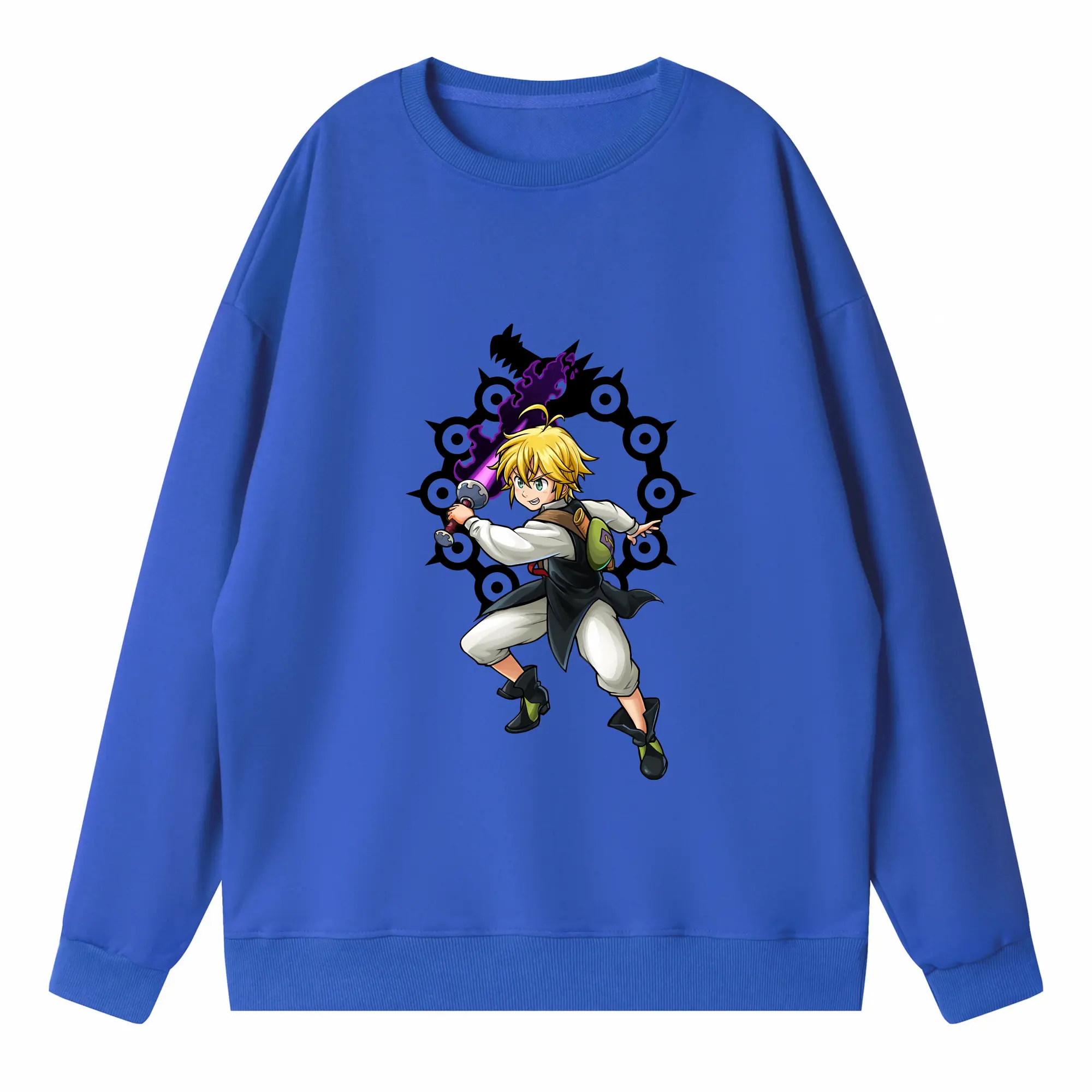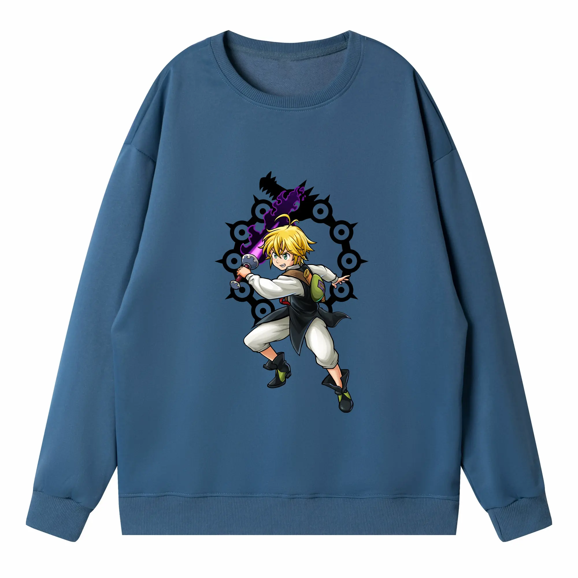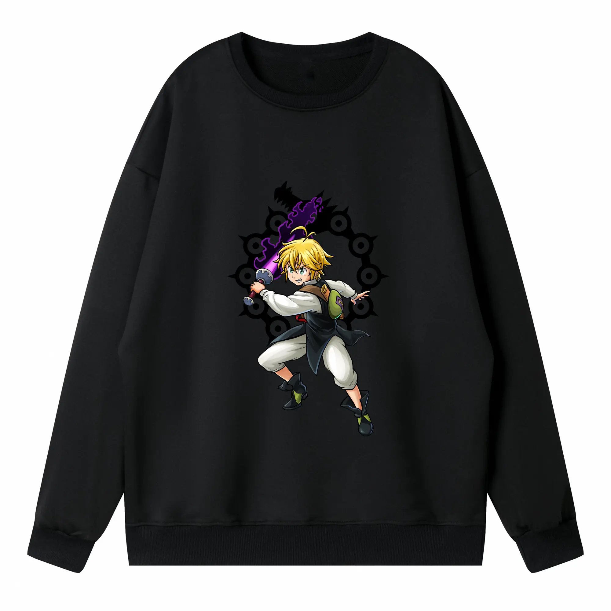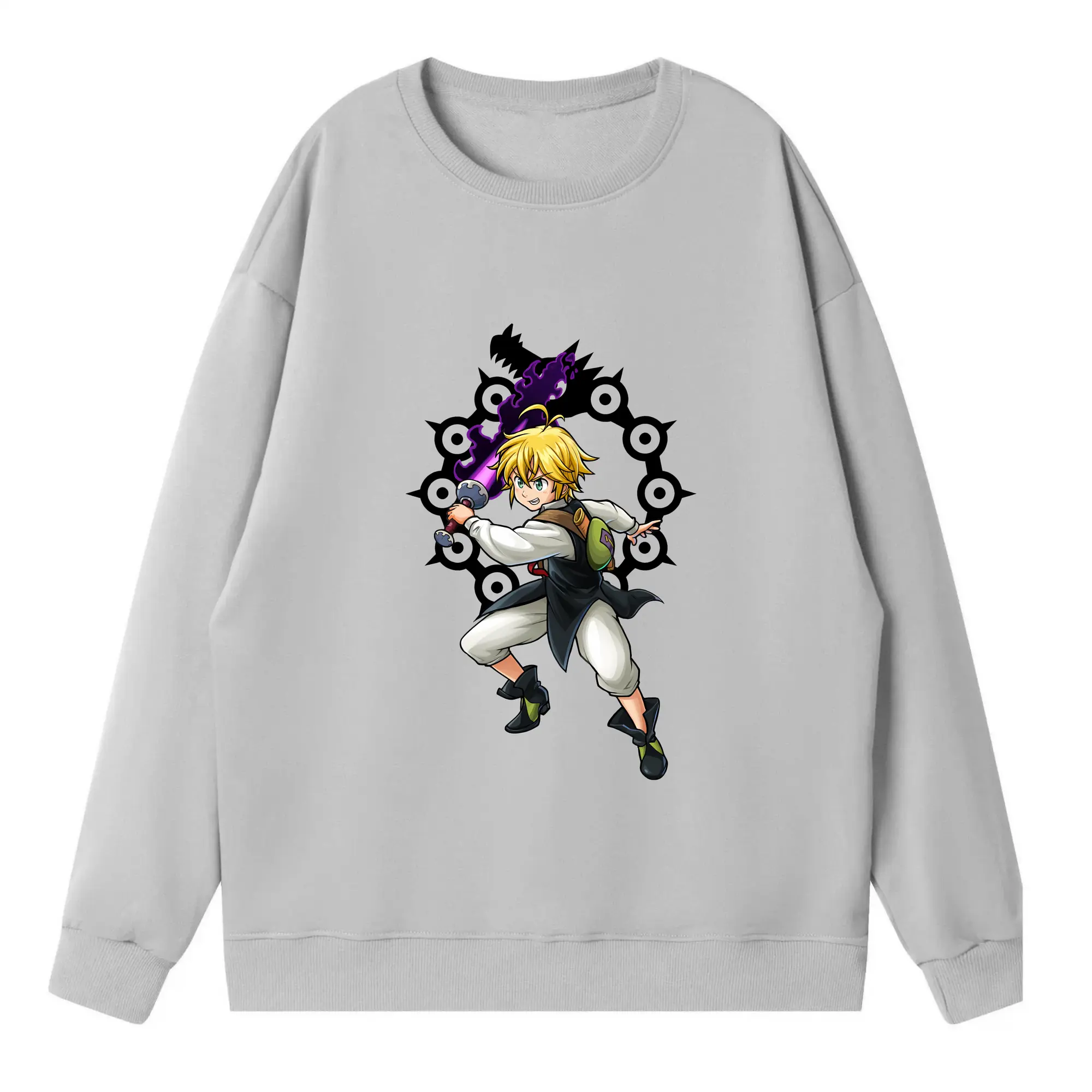 七つの大罪 グッズ メリオダス - 高品質 クルーネック スウェット ・ コットン59% ポリエステル41% ・ ユニセックス 長袖 トレーナー ・ カジュアル デイリー スポーツ 散歩用