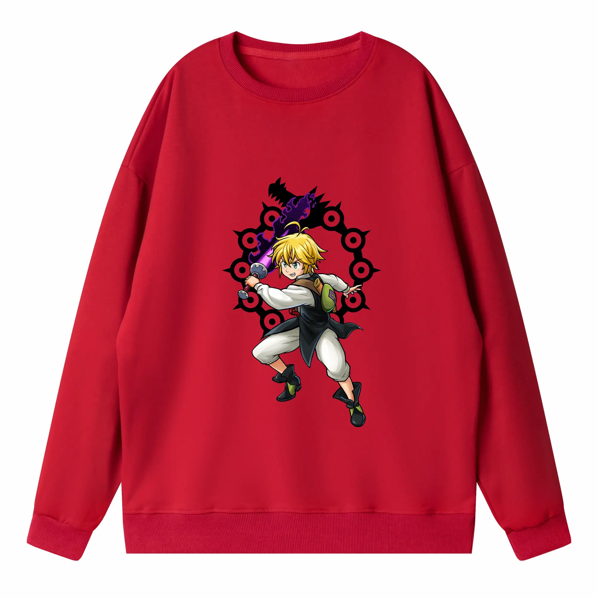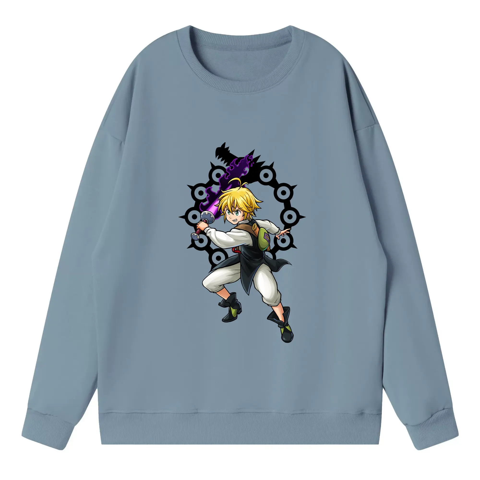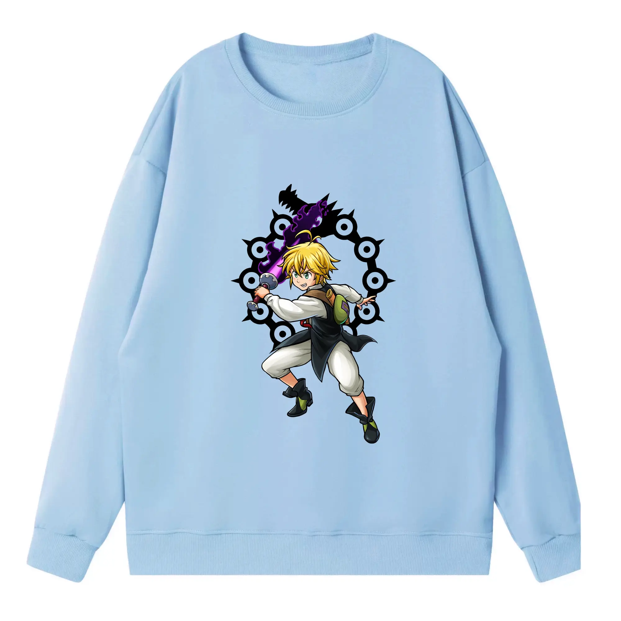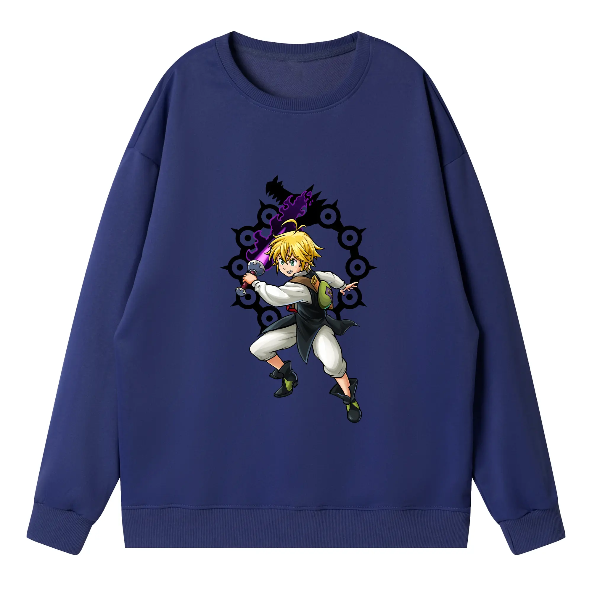 七つの大罪 グッズ メリオダス - 高品質 クルーネック スウェット ・ コットン59% ポリエステル41% ・ ユニセックス 長袖 トレーナー ・ カジュアル デイリー スポーツ 散歩用