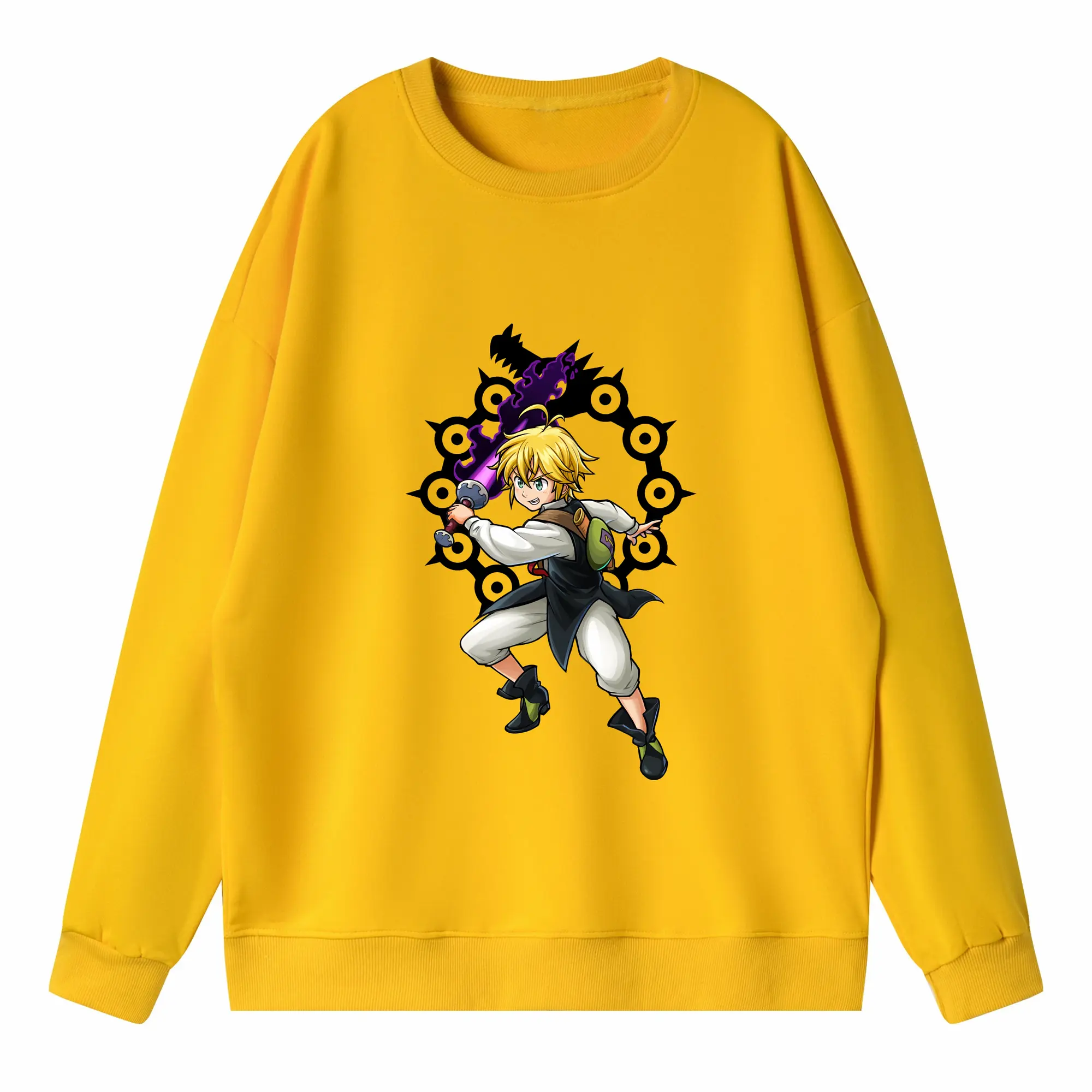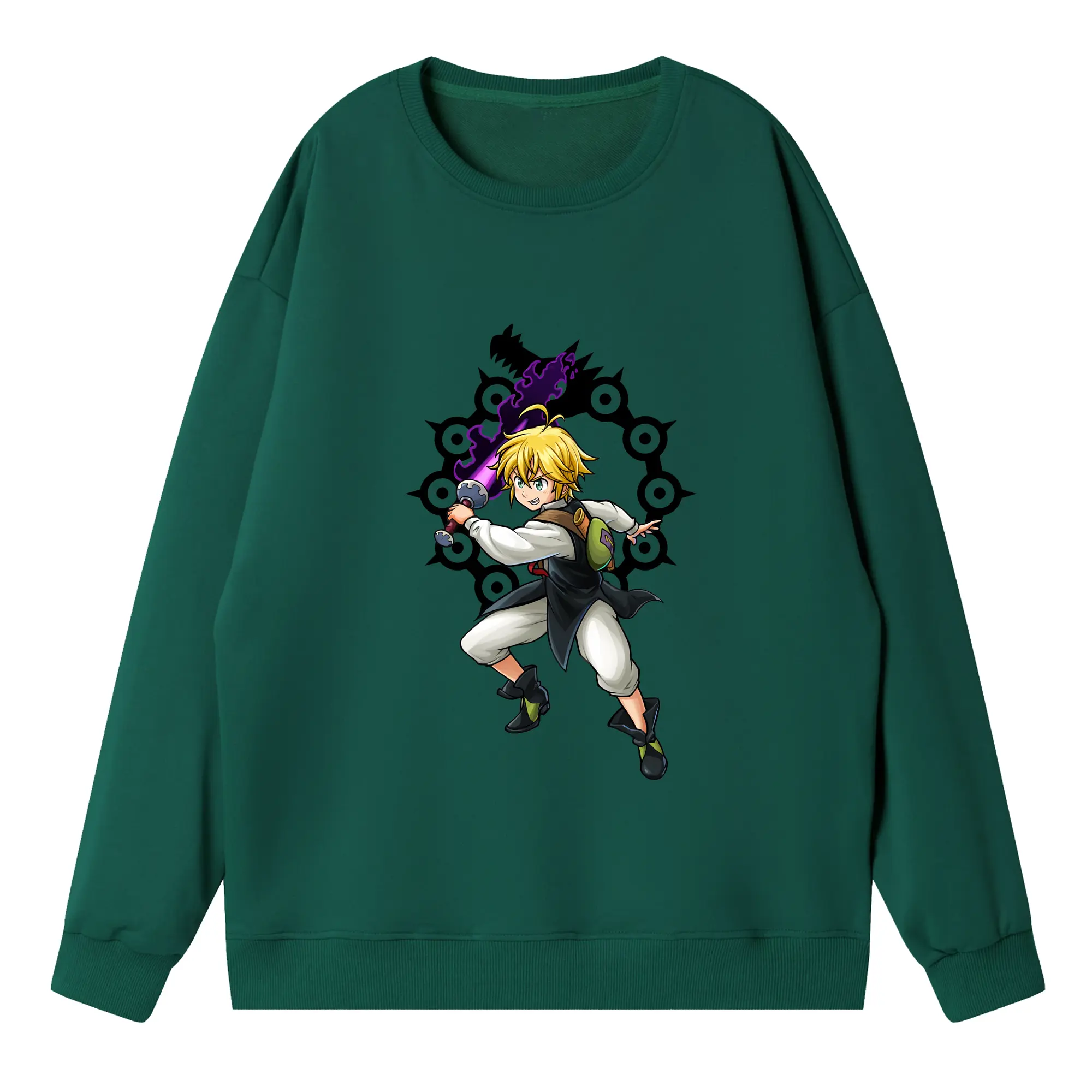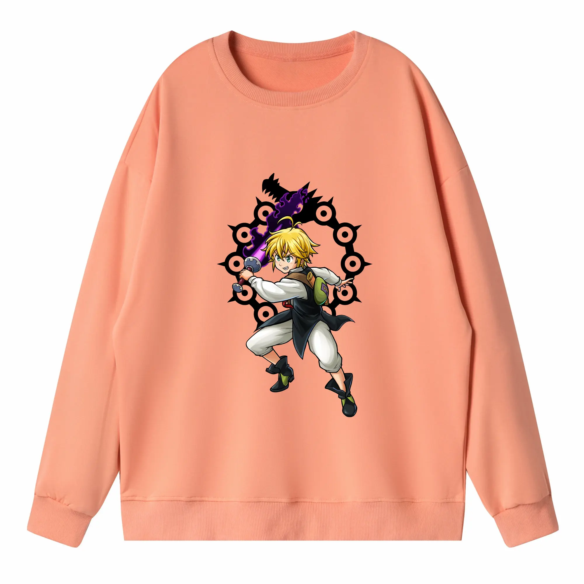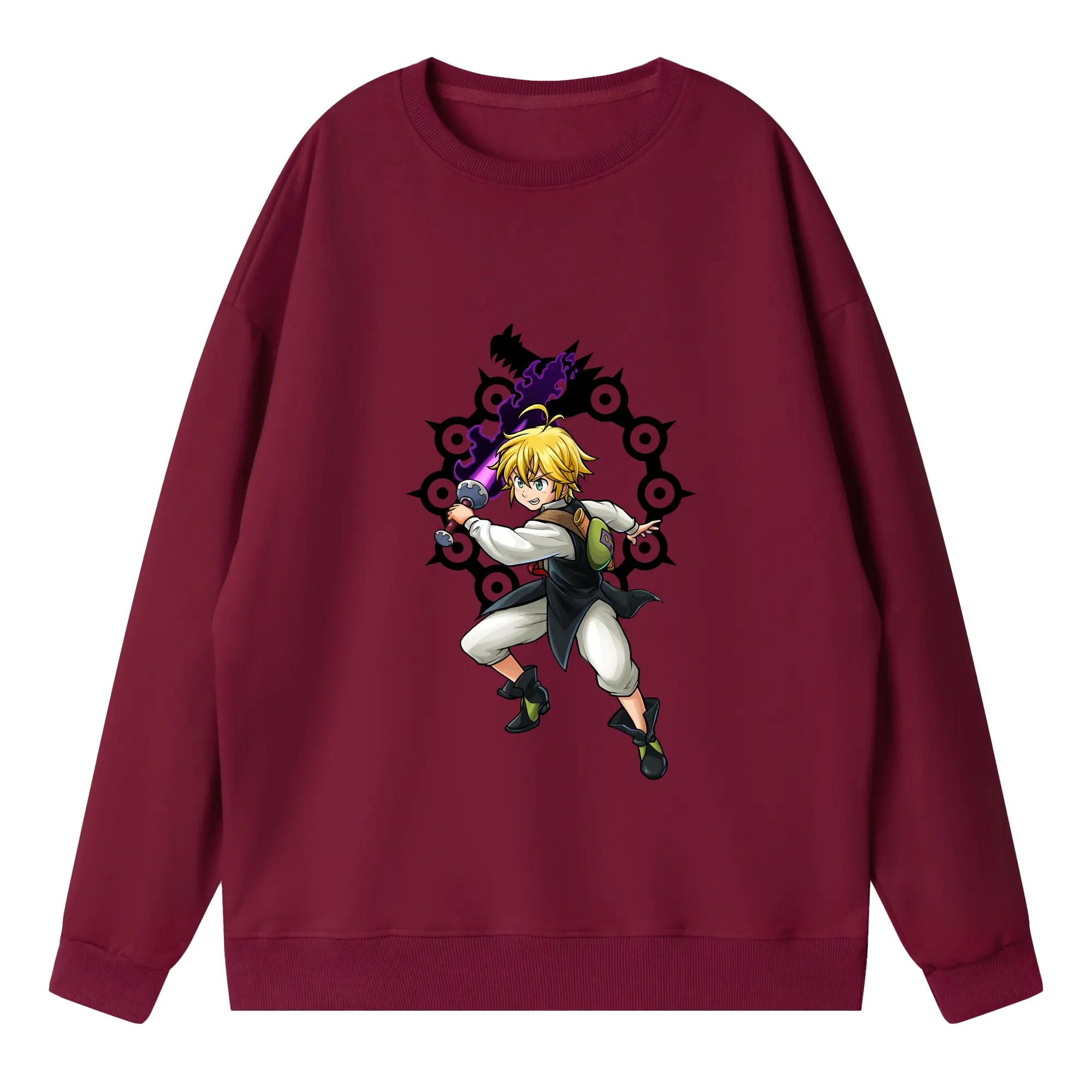 七つの大罪 グッズ メリオダス - 高品質 クルーネック スウェット ・ コットン59% ポリエステル41% ・ ユニセックス 長袖 トレーナー ・ カジュアル デイリー スポーツ 散歩用