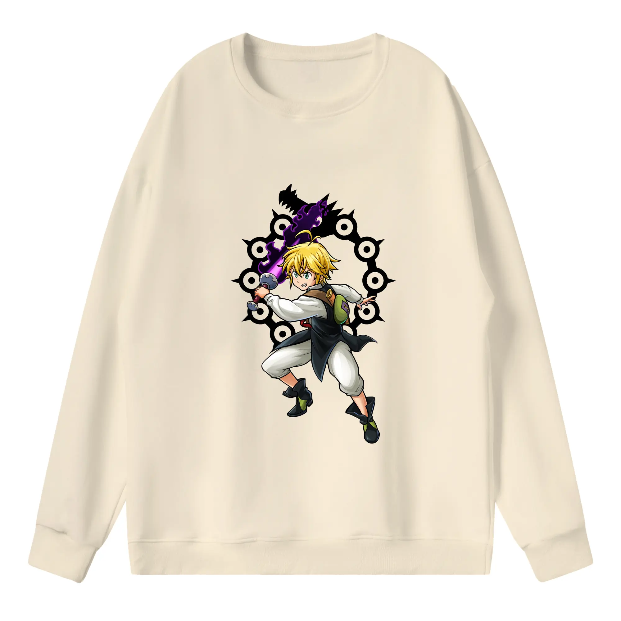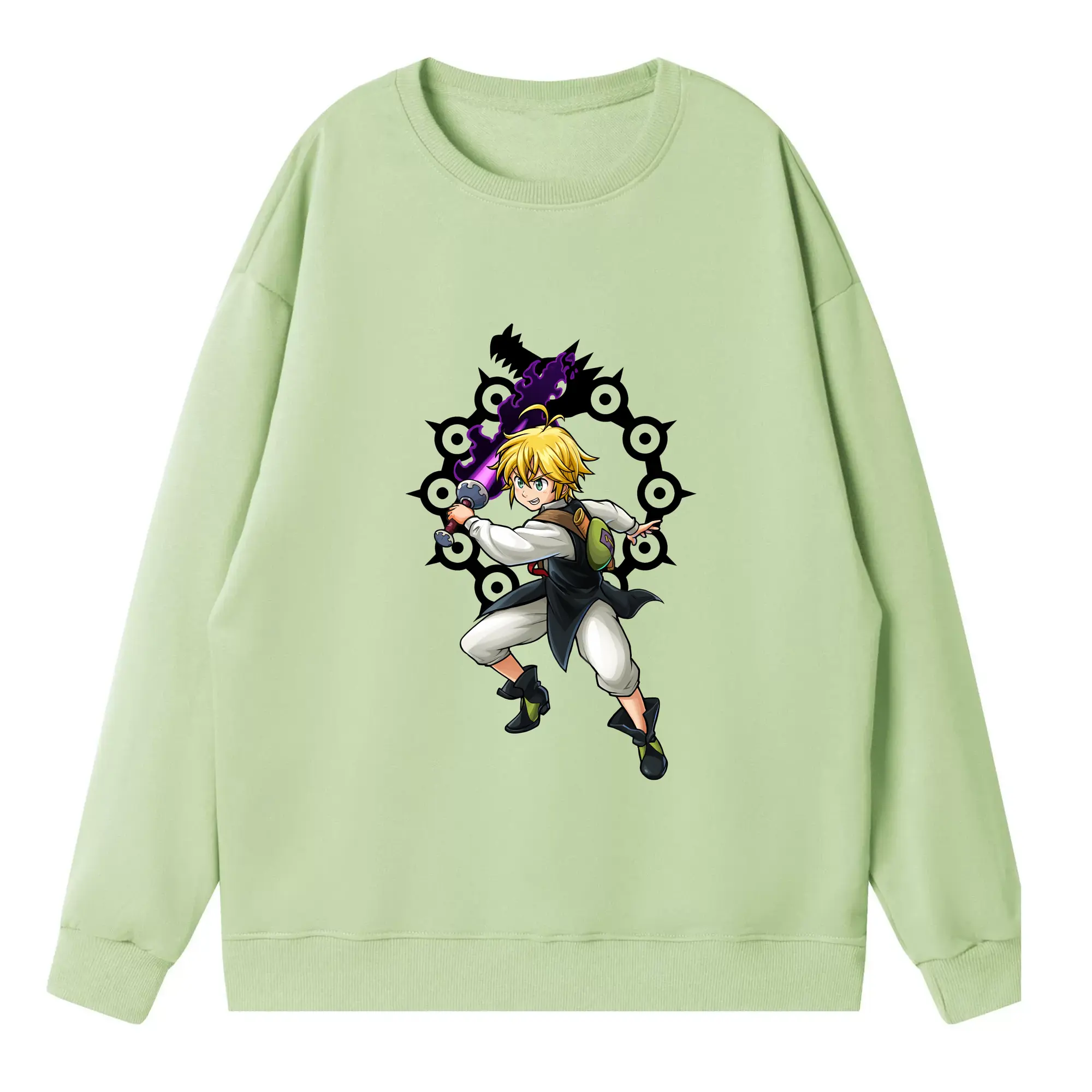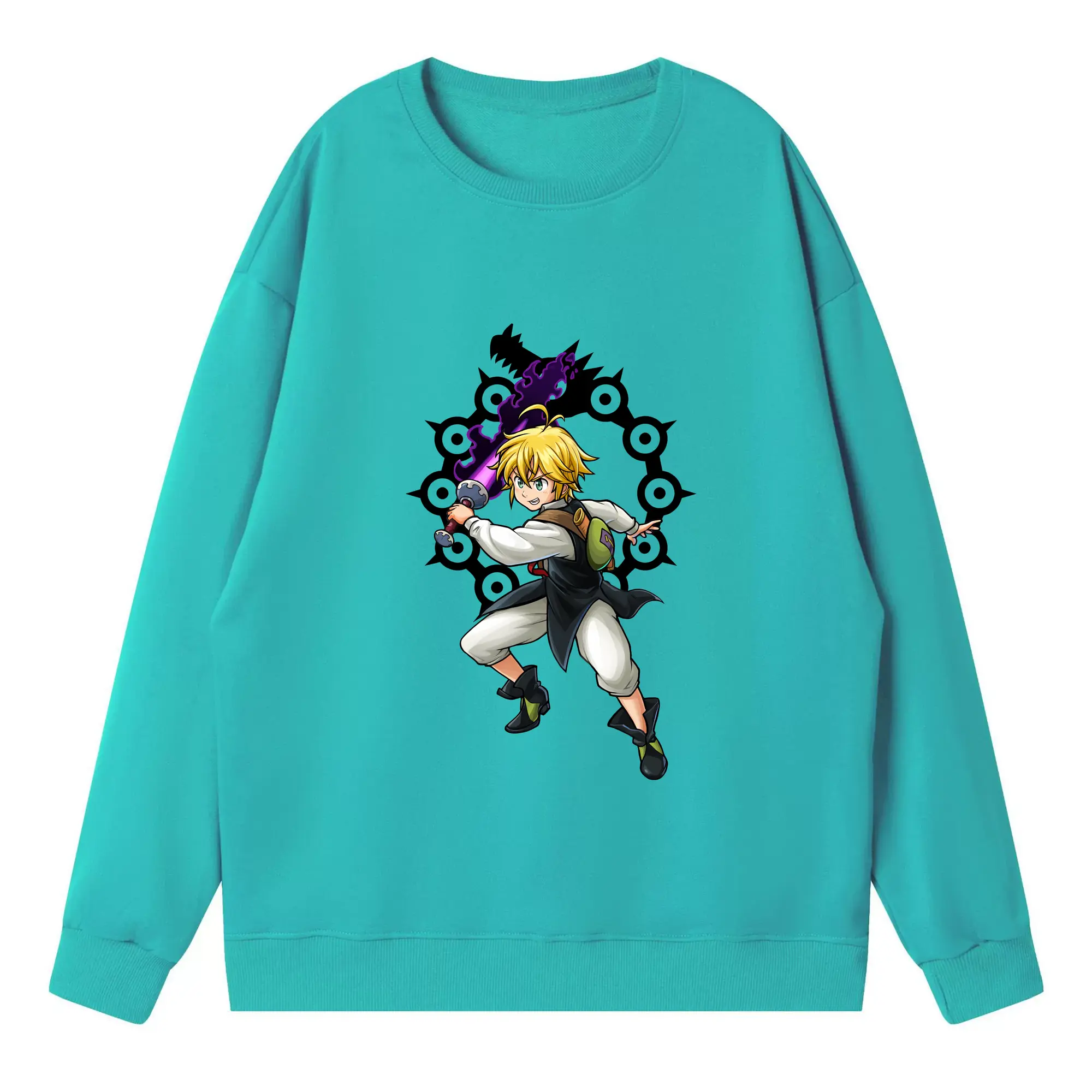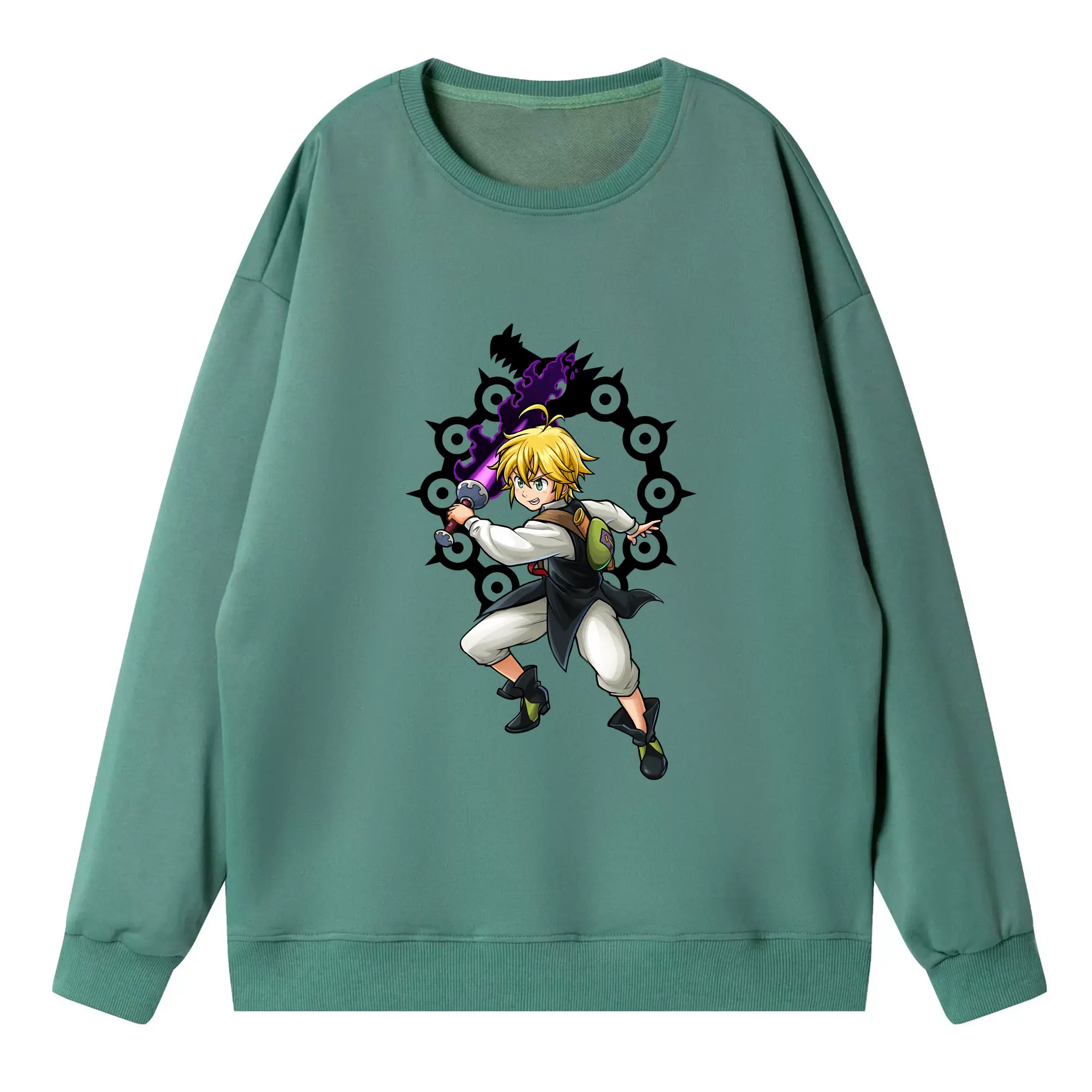 七つの大罪 グッズ メリオダス - 高品質 クルーネック スウェット ・ コットン59% ポリエステル41% ・ ユニセックス 長袖 トレーナー ・ カジュアル デイリー スポーツ 散歩用