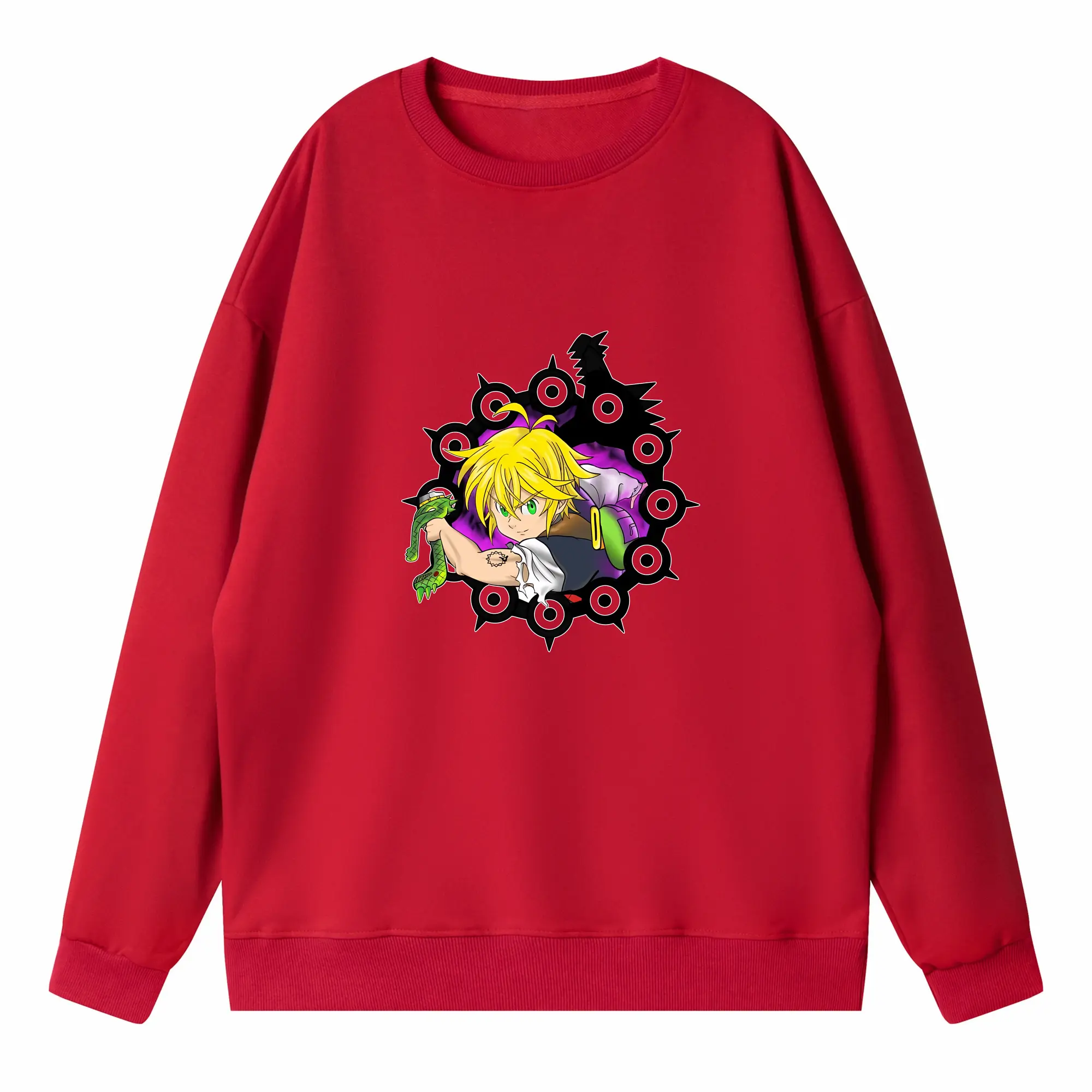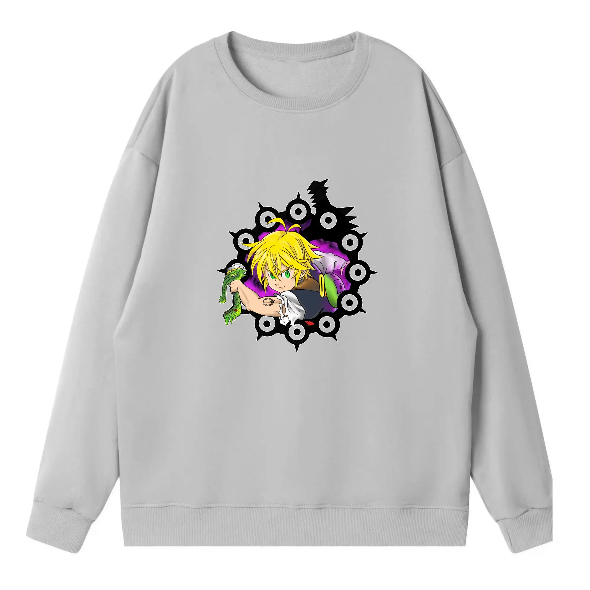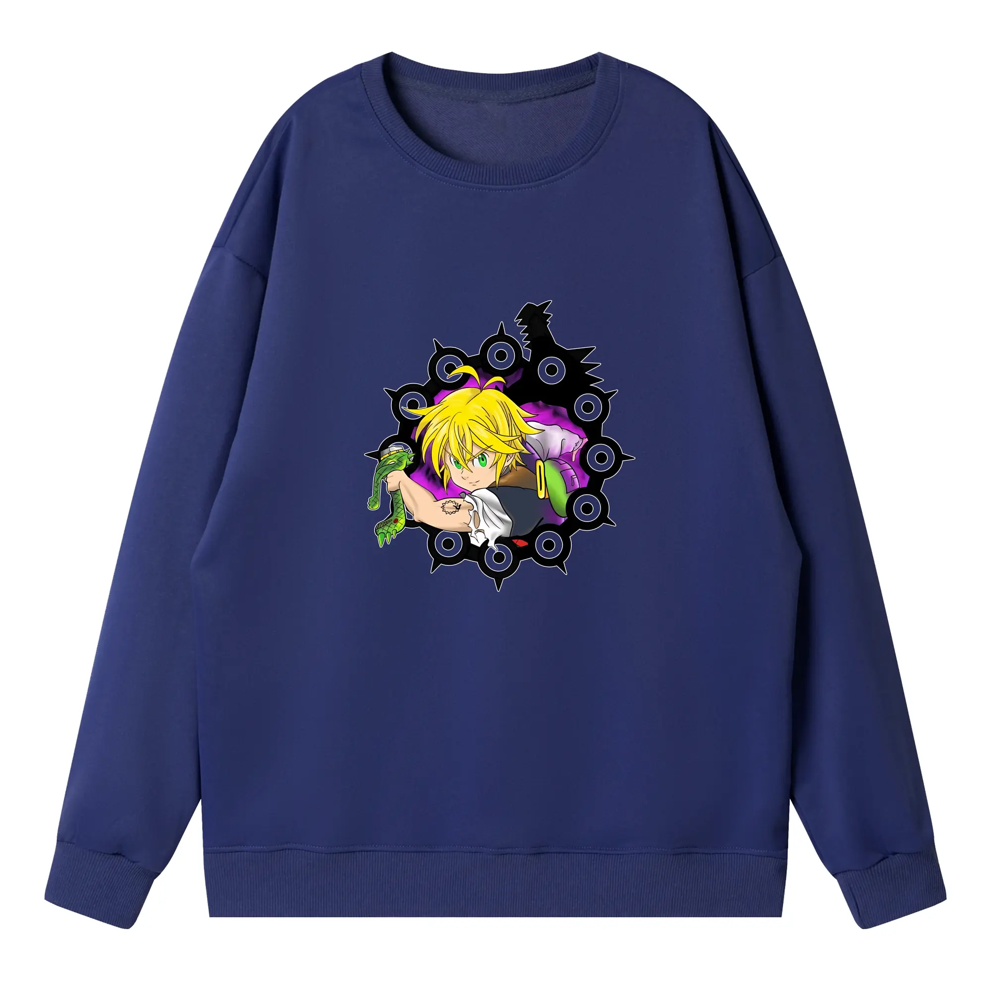 七つの大罪 グッズ メリオダス - 高品質 クルーネック スウェット ・ コットン59% ポリエステル41% ・ ユニセックス 長袖 トレーナー ・ カジュアル デイリー スポーツ 散歩用