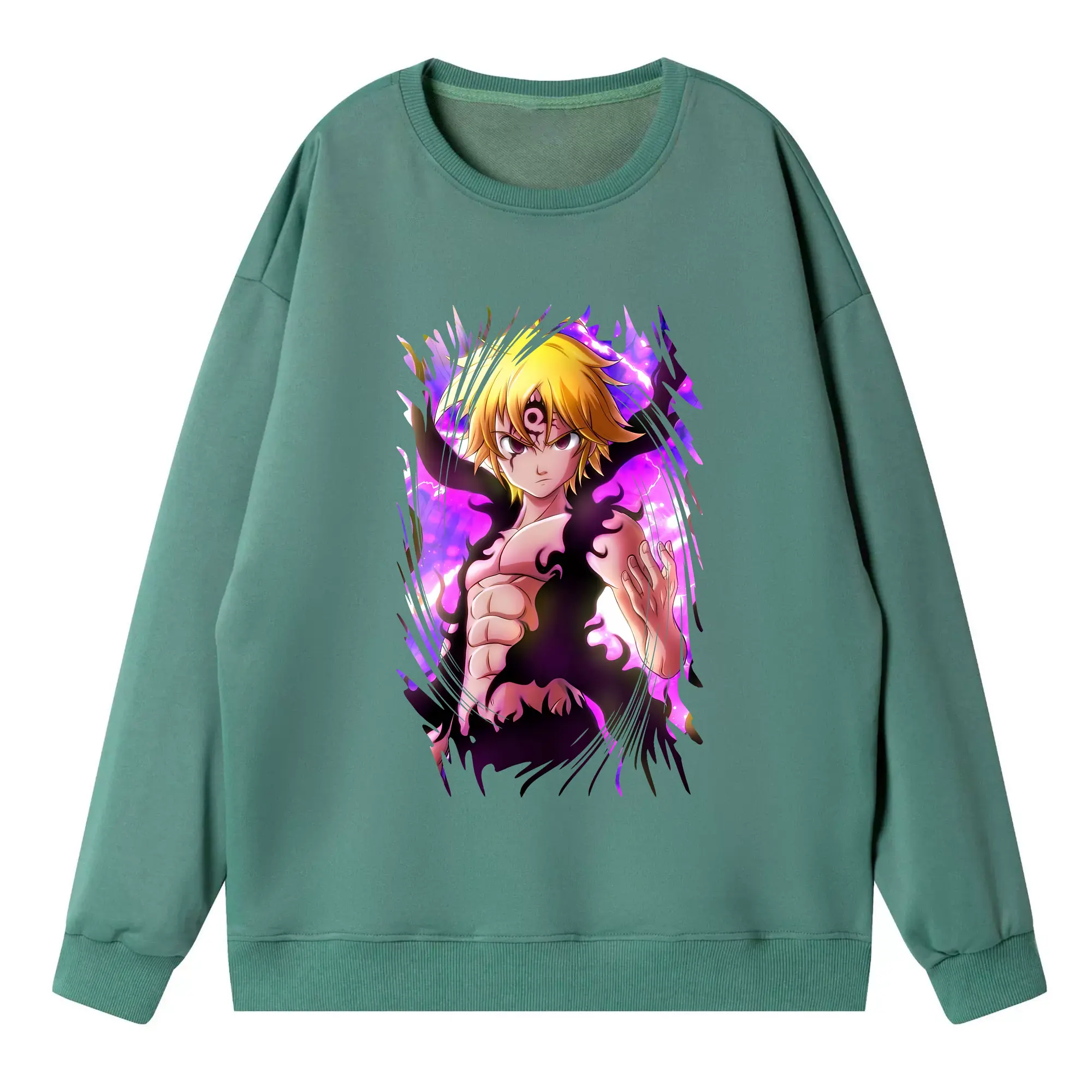 七つの大罪 グッズ メリオダス - 高品質 クルーネック スウェット ・ コットン59% ポリエステル41% ・ ユニセックス 長袖 トレーナー ・ カジュアル デイリー スポーツ 散歩用