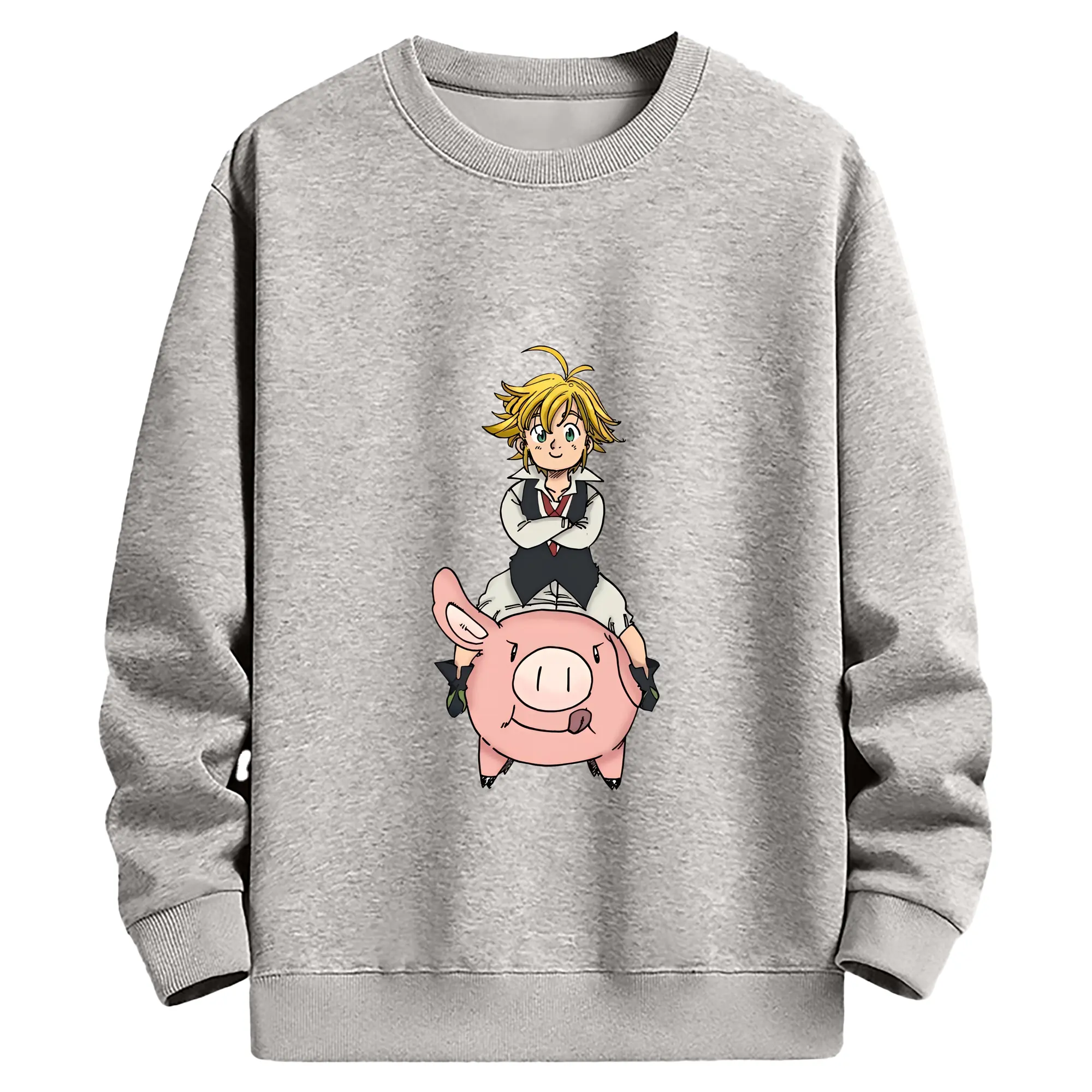 七つの大罪 グッズ メリオダス - 高品質 クルーネック スウェット ・ コットン59% ポリエステル41% ・ ユニセックス 長袖 トレーナー ・ カジュアル デイリー スポーツ 散歩用