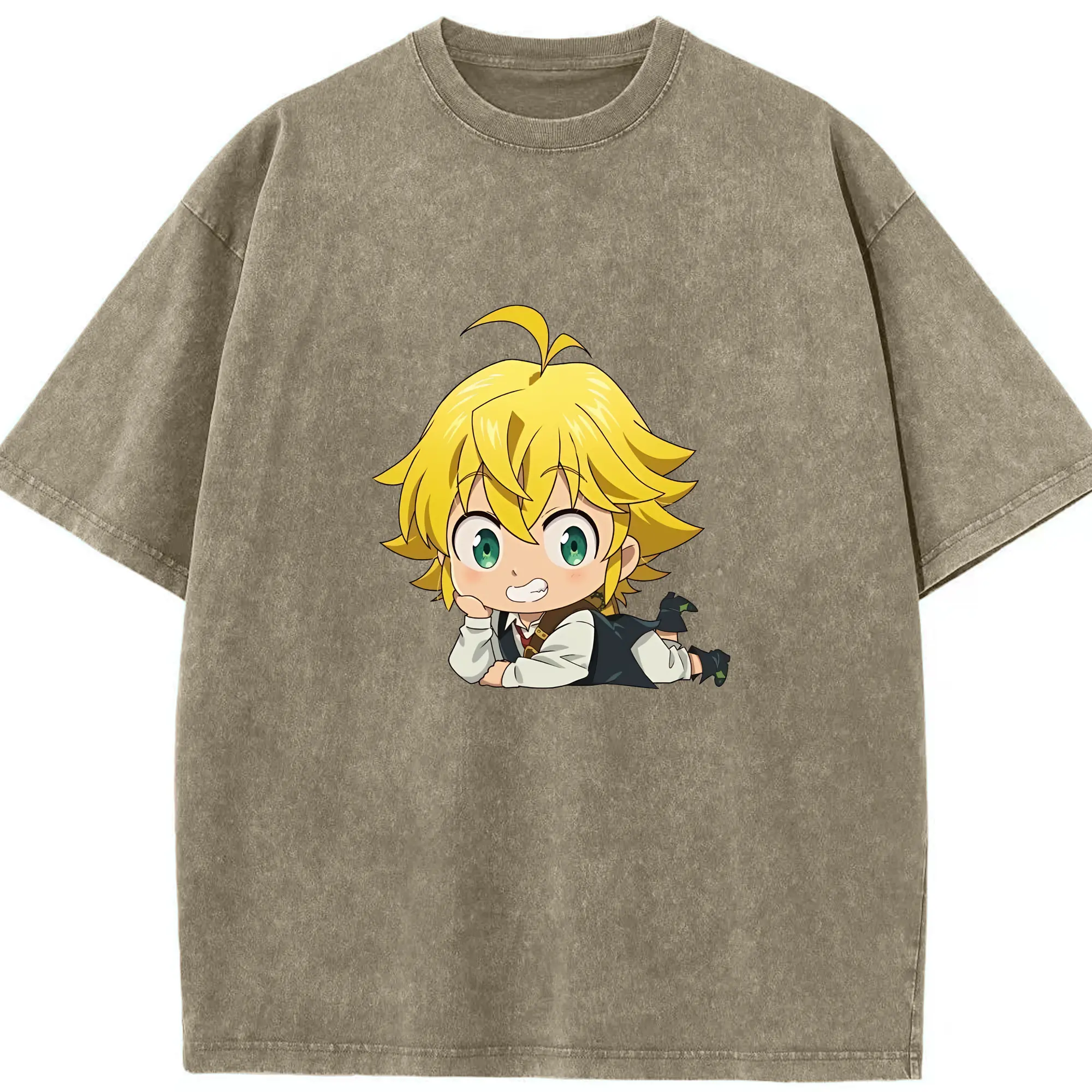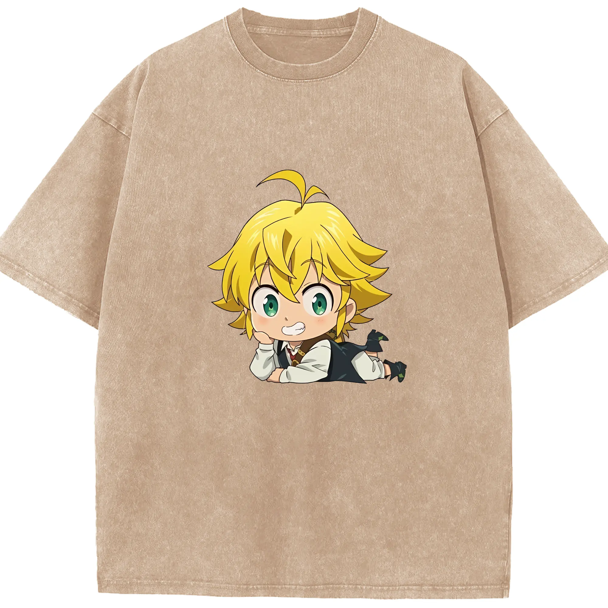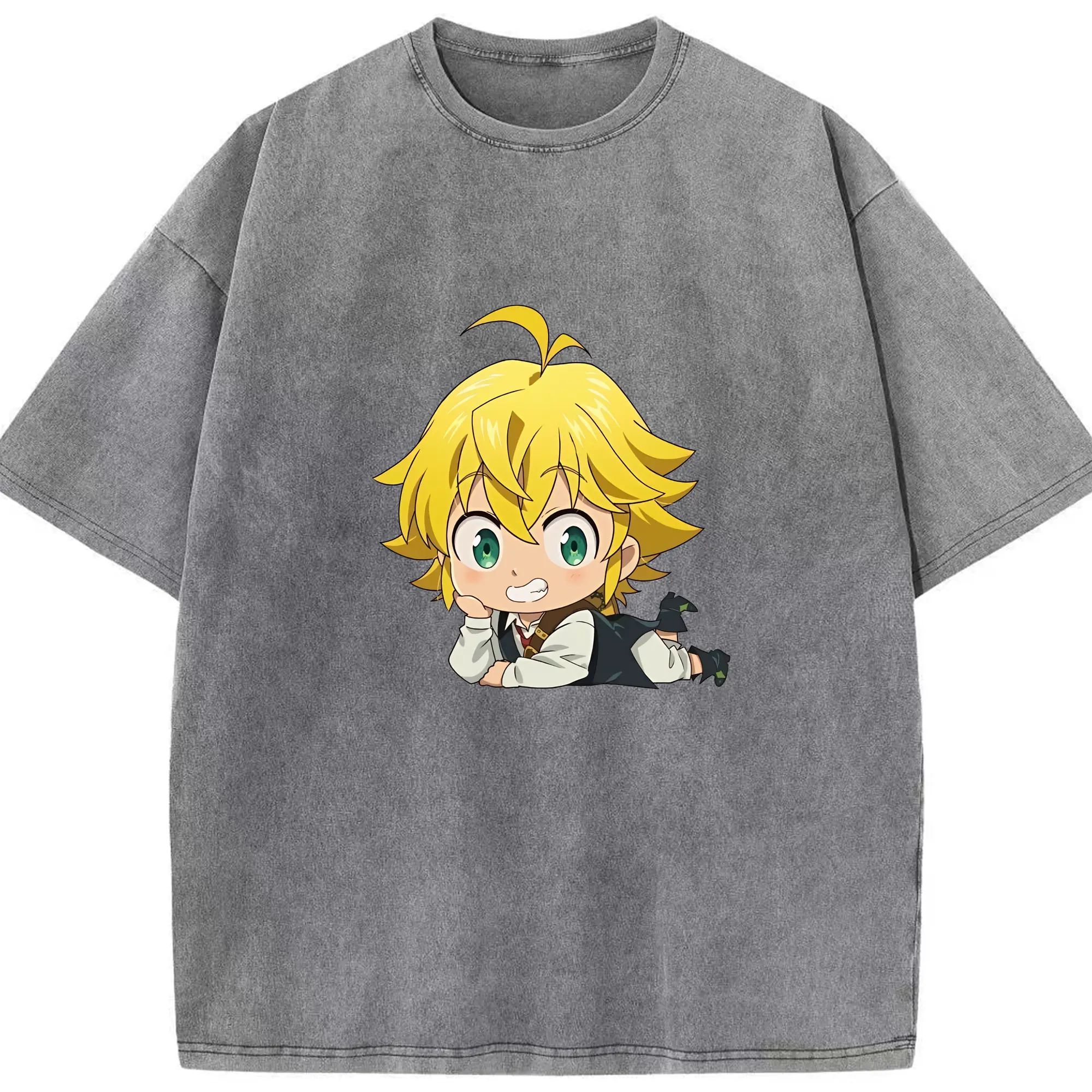 七つの大罪 グッズ メリオダス - 綿100% ヴィンテージ風 半袖Tシャツ ・ 背面プリント ・ 柔らか肌触り ・ 通気性 快適 ・ スポーツ カジュアル 外出用