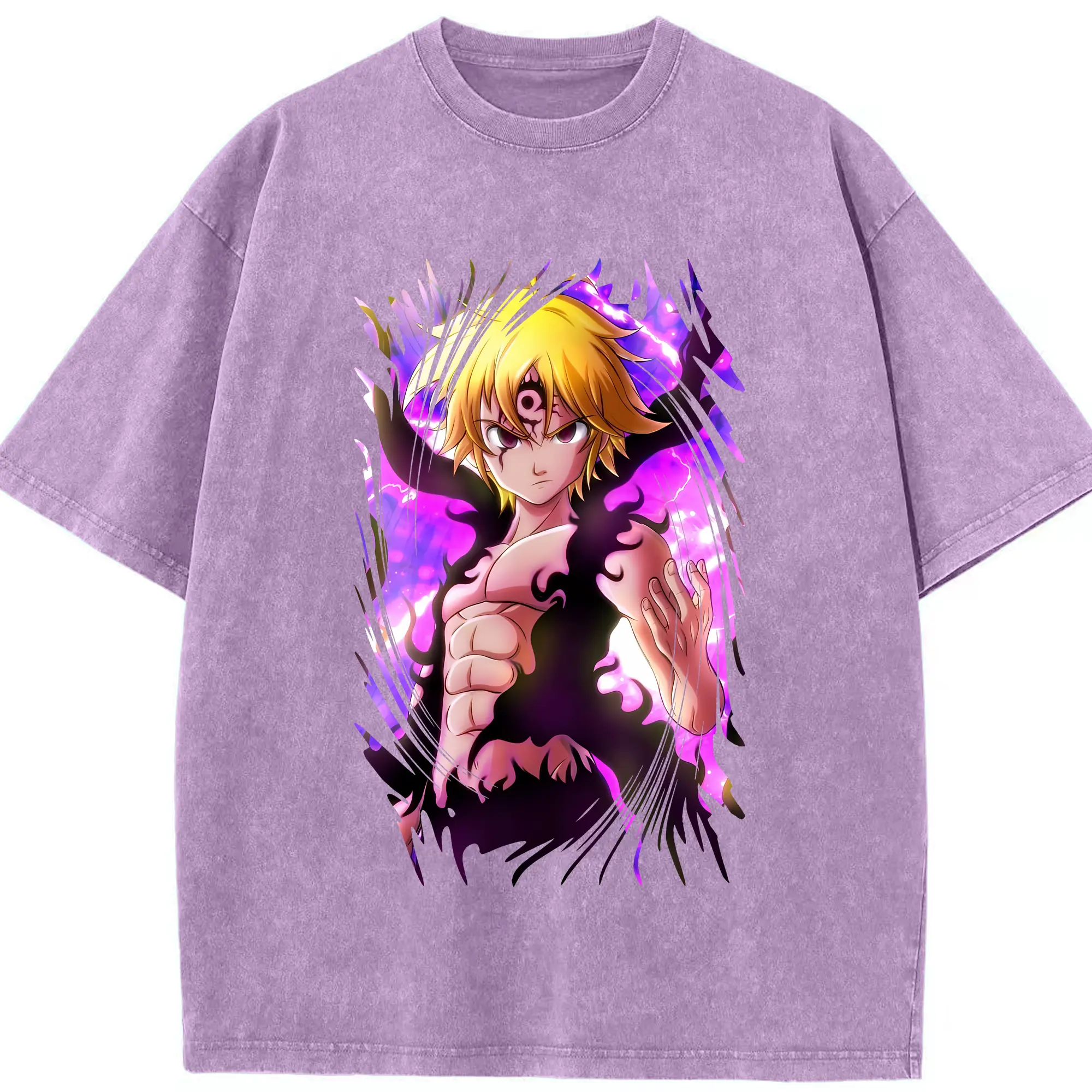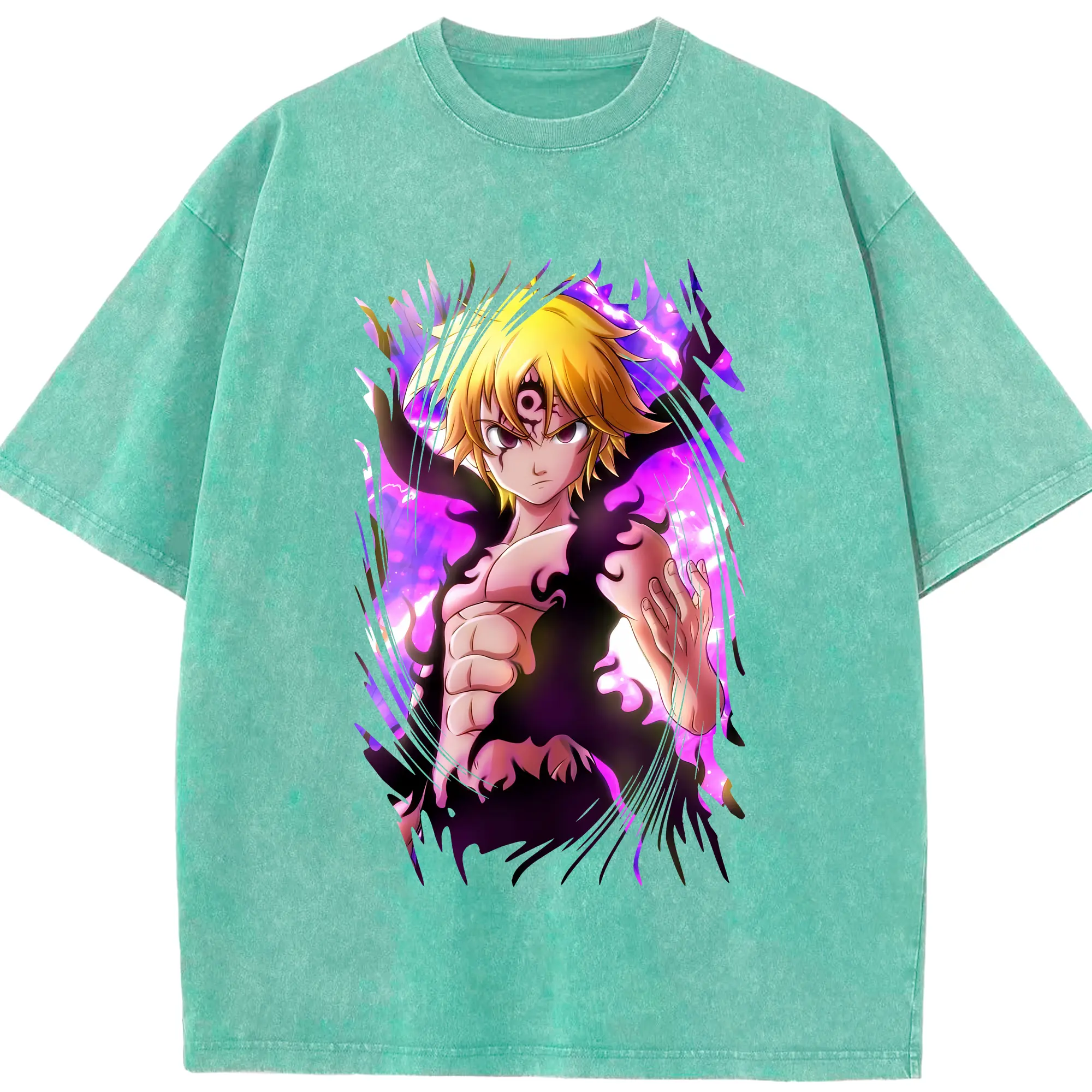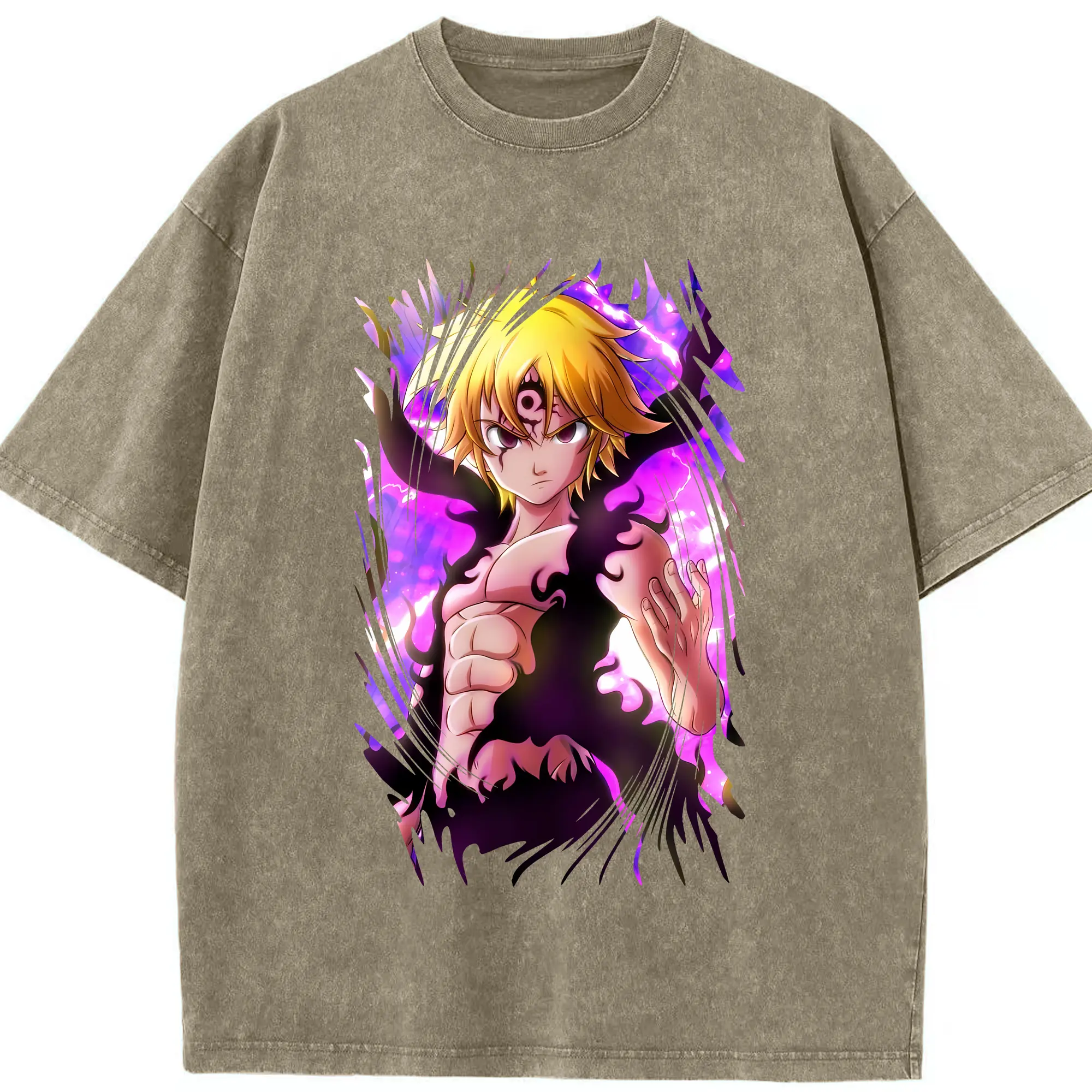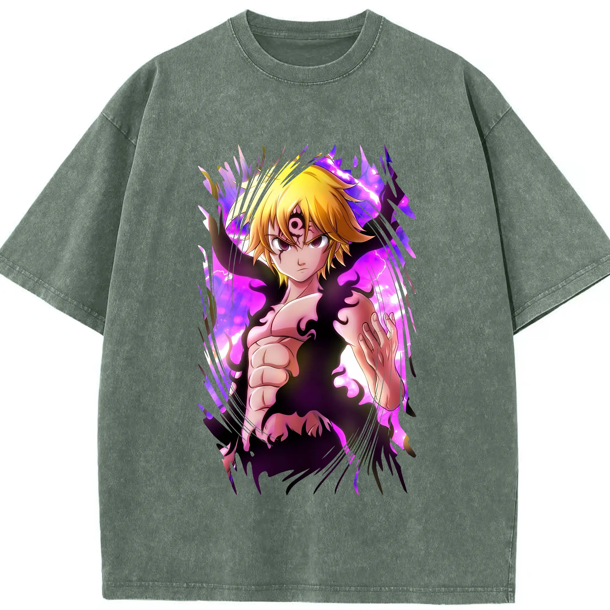 七つの大罪 グッズ メリオダス - 綿100% ヴィンテージ風 半袖Tシャツ ・ 背面プリント ・ 柔らか肌触り ・ 通気性 快適 ・ スポーツ カジュアル 外出用