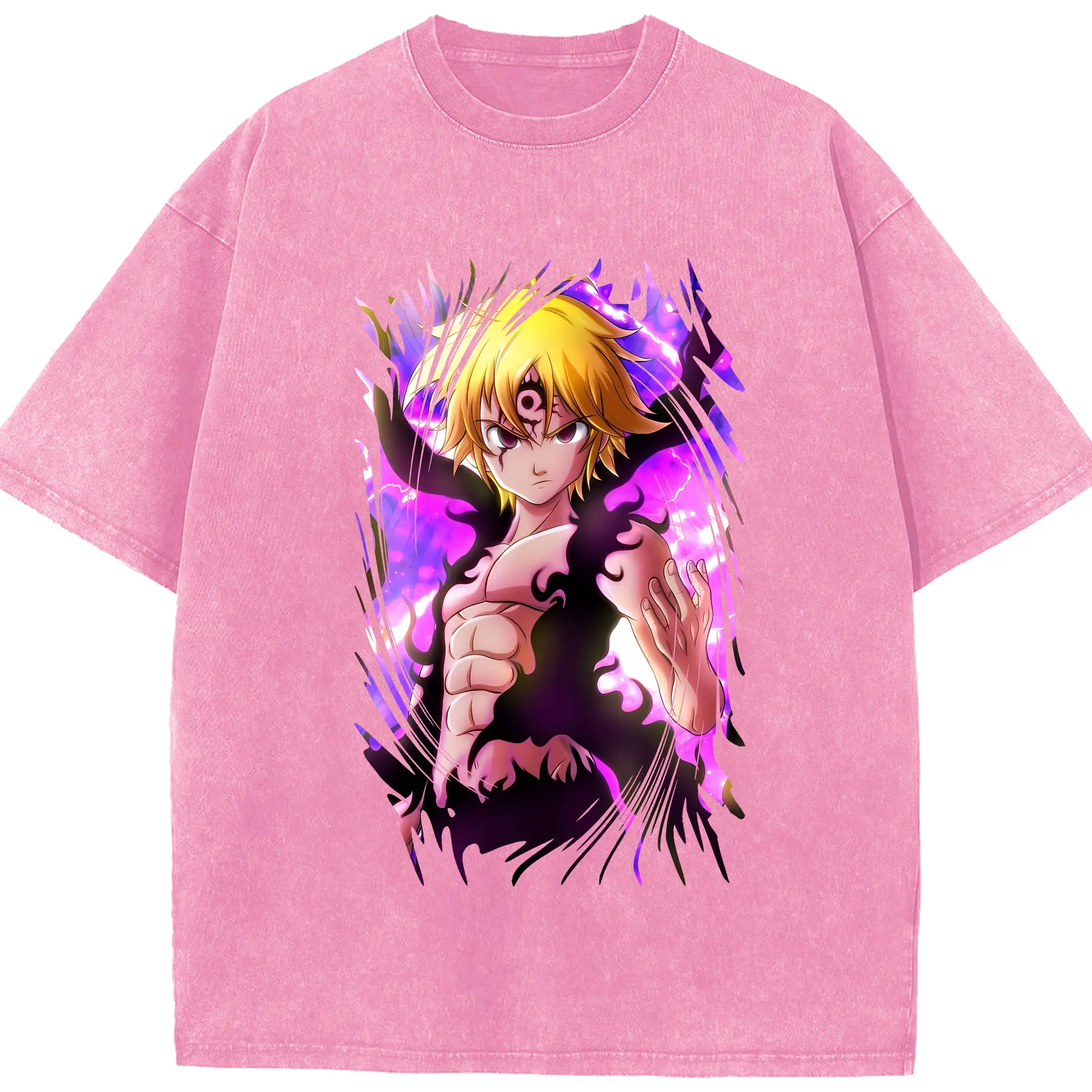 七つの大罪 グッズ メリオダス - 綿100% 半袖Tシャツ ・ フロントプリント ・ 快適 通気性 ・ 日常使い 散歩 スポーツ用