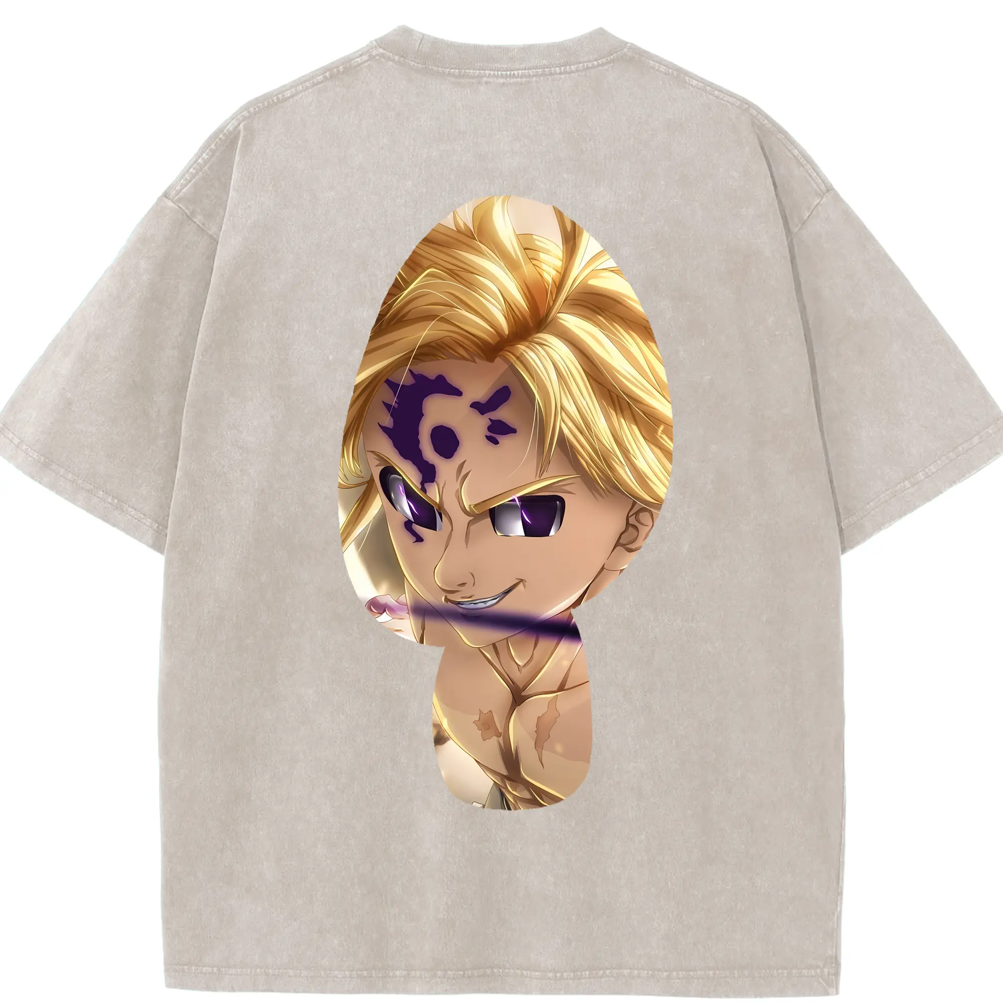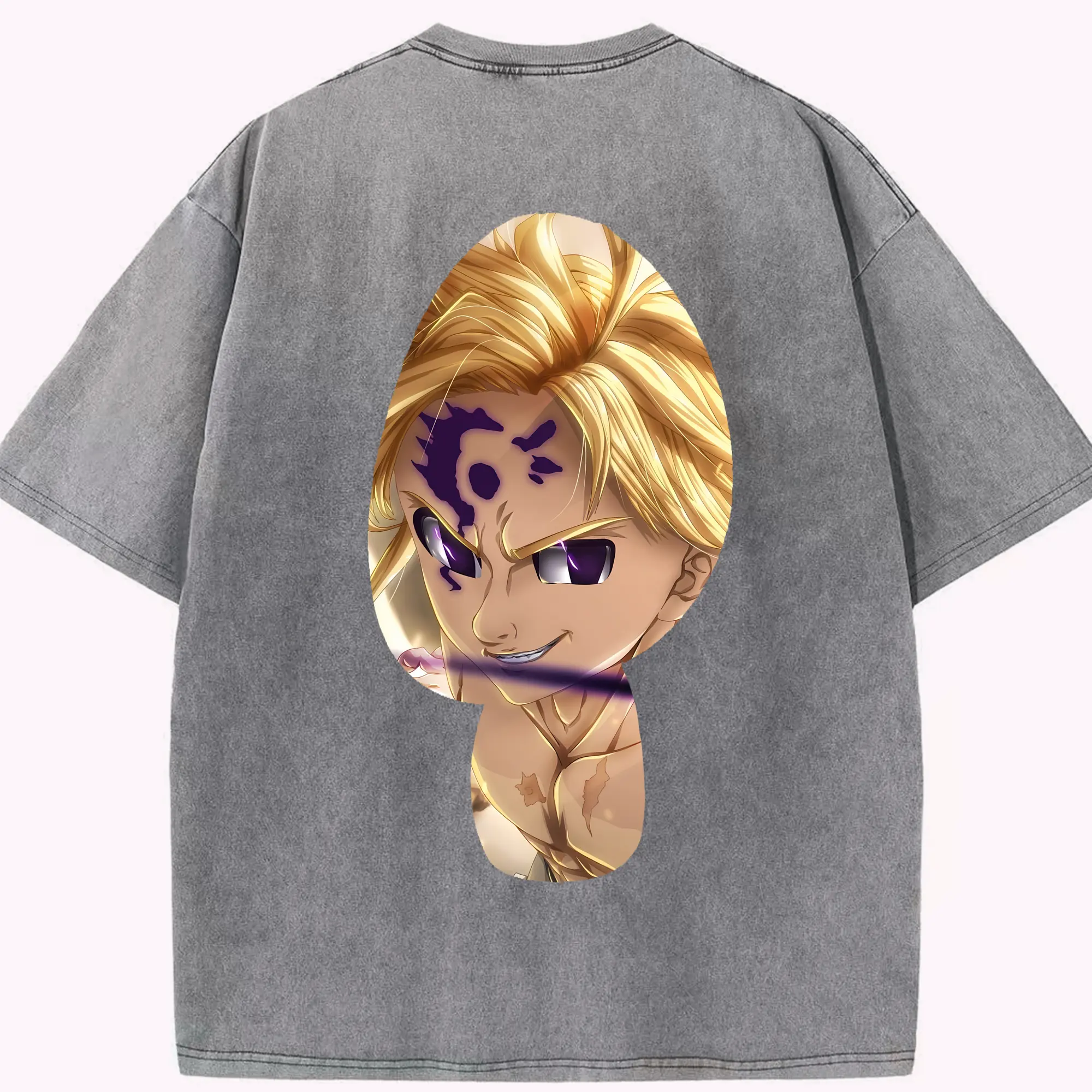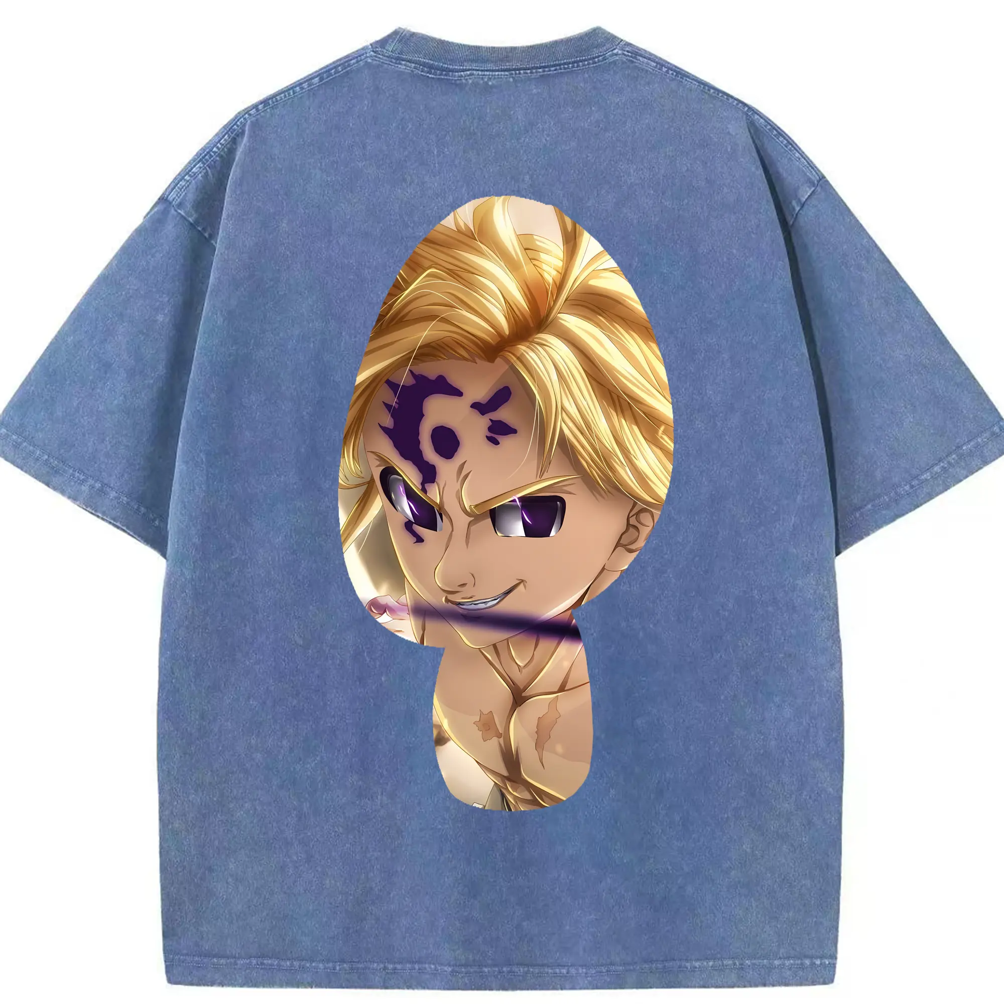 七つの大罪 グッズ メリオダス - 綿100% ヴィンテージ風 半袖Tシャツ ・ フロントプリント ・ 柔らか肌触り ・ 通気性 快適 ・ スポーツ カジュアル 外出用