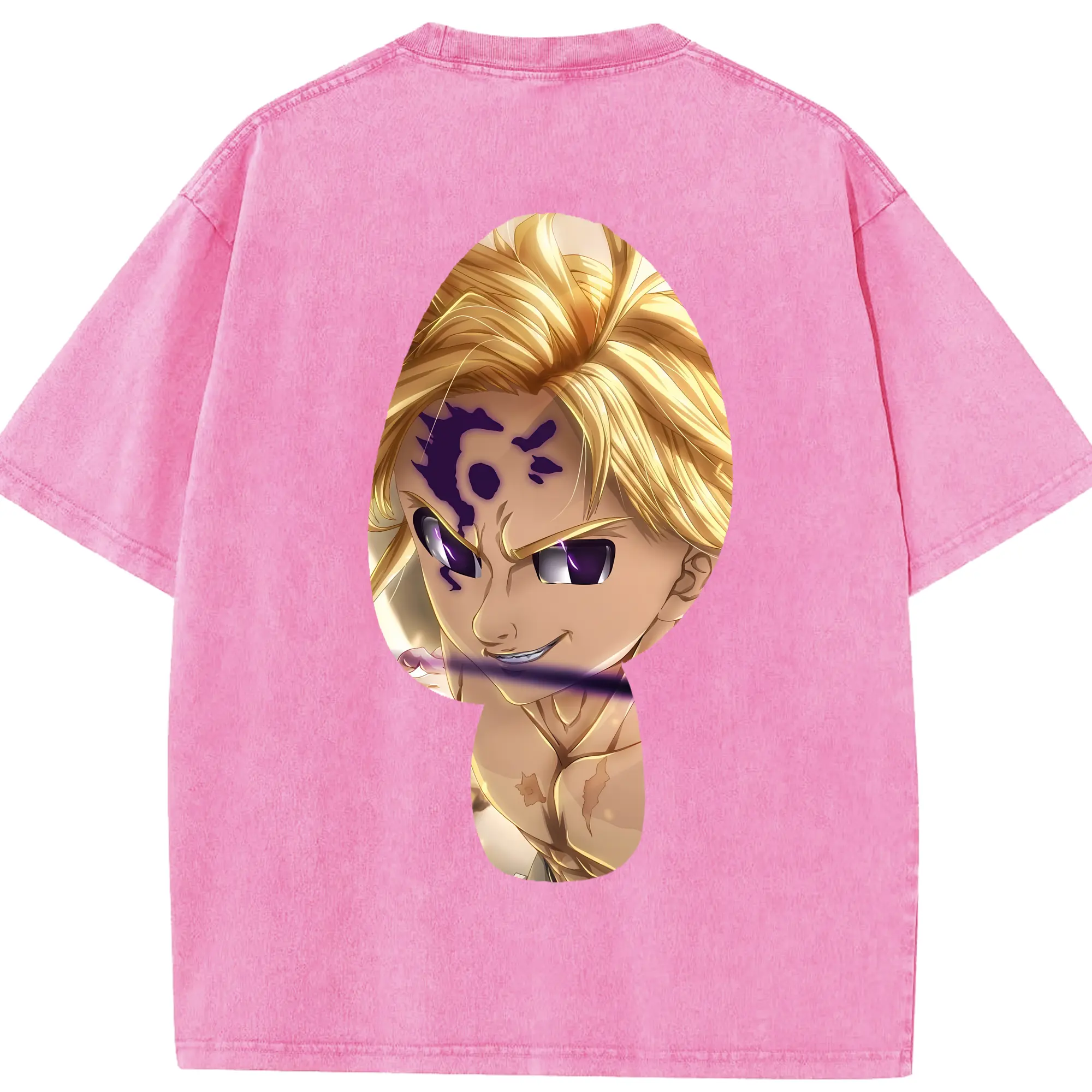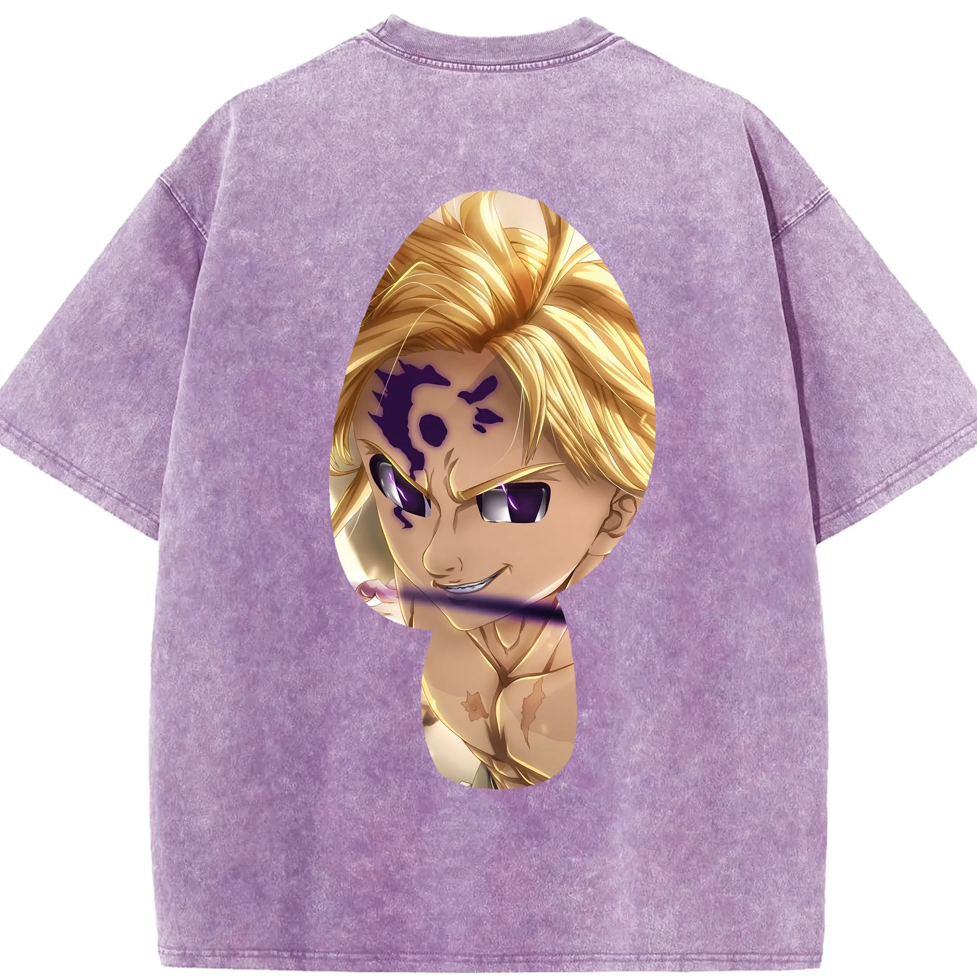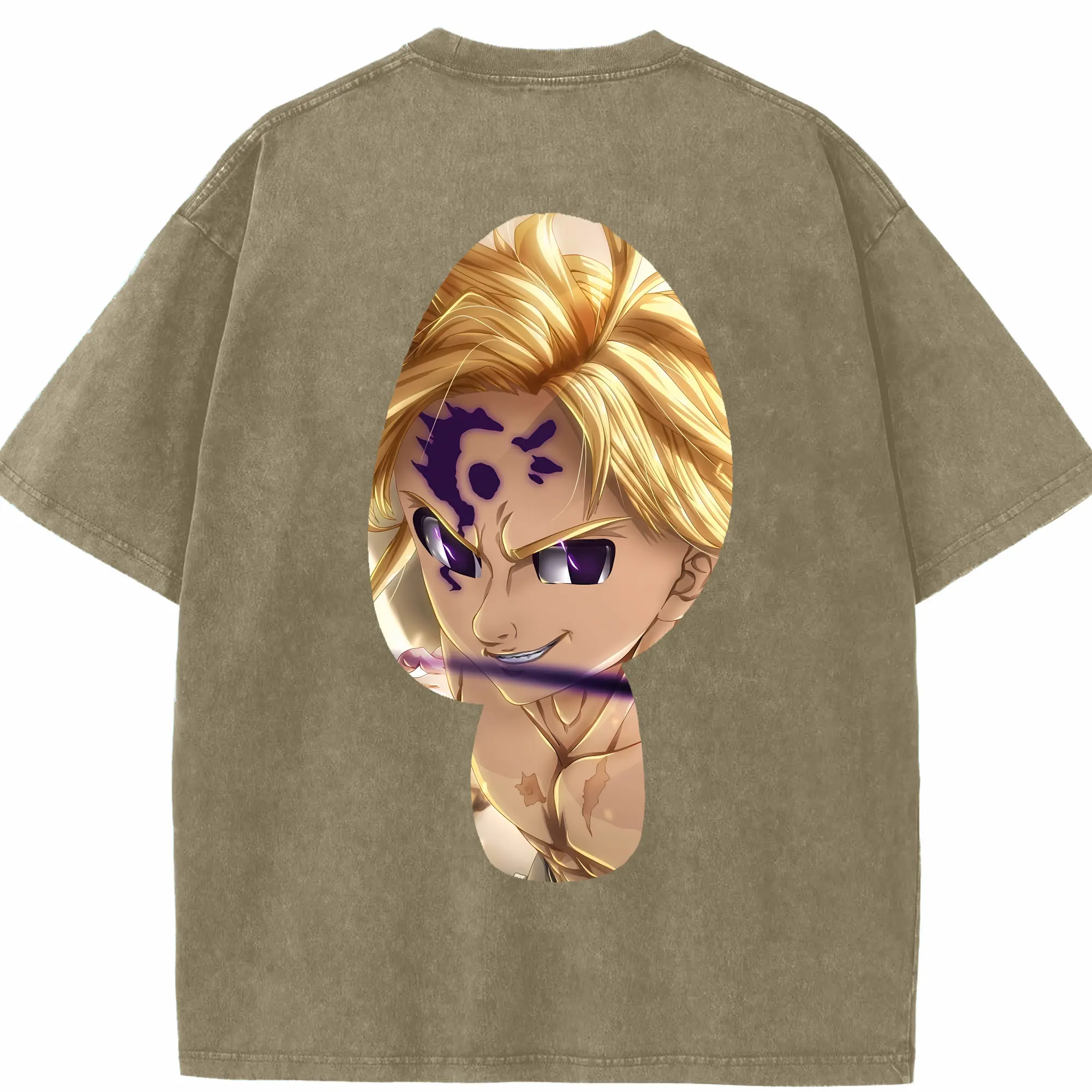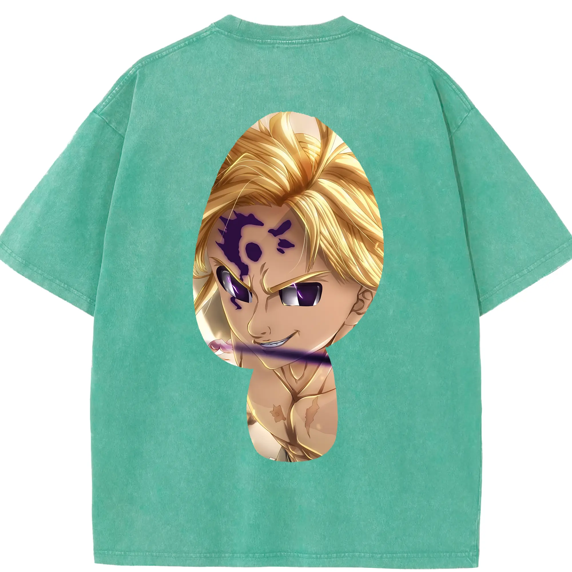 七つの大罪 グッズ メリオダス - 綿100% ヴィンテージ風 半袖Tシャツ ・ フロントプリント ・ 柔らか肌触り ・ 通気性 快適 ・ スポーツ カジュアル 外出用