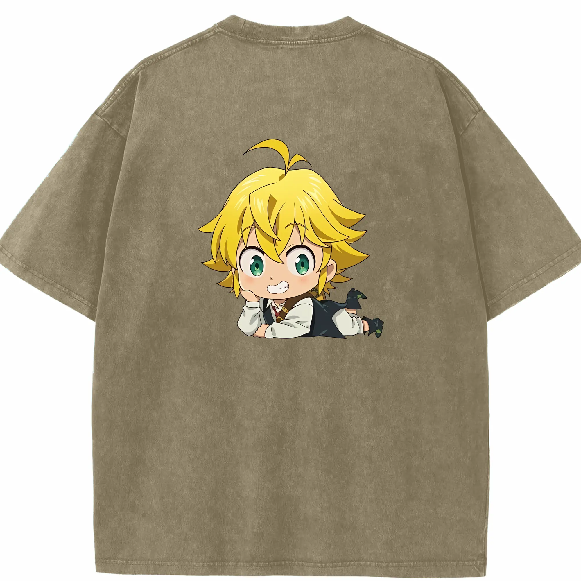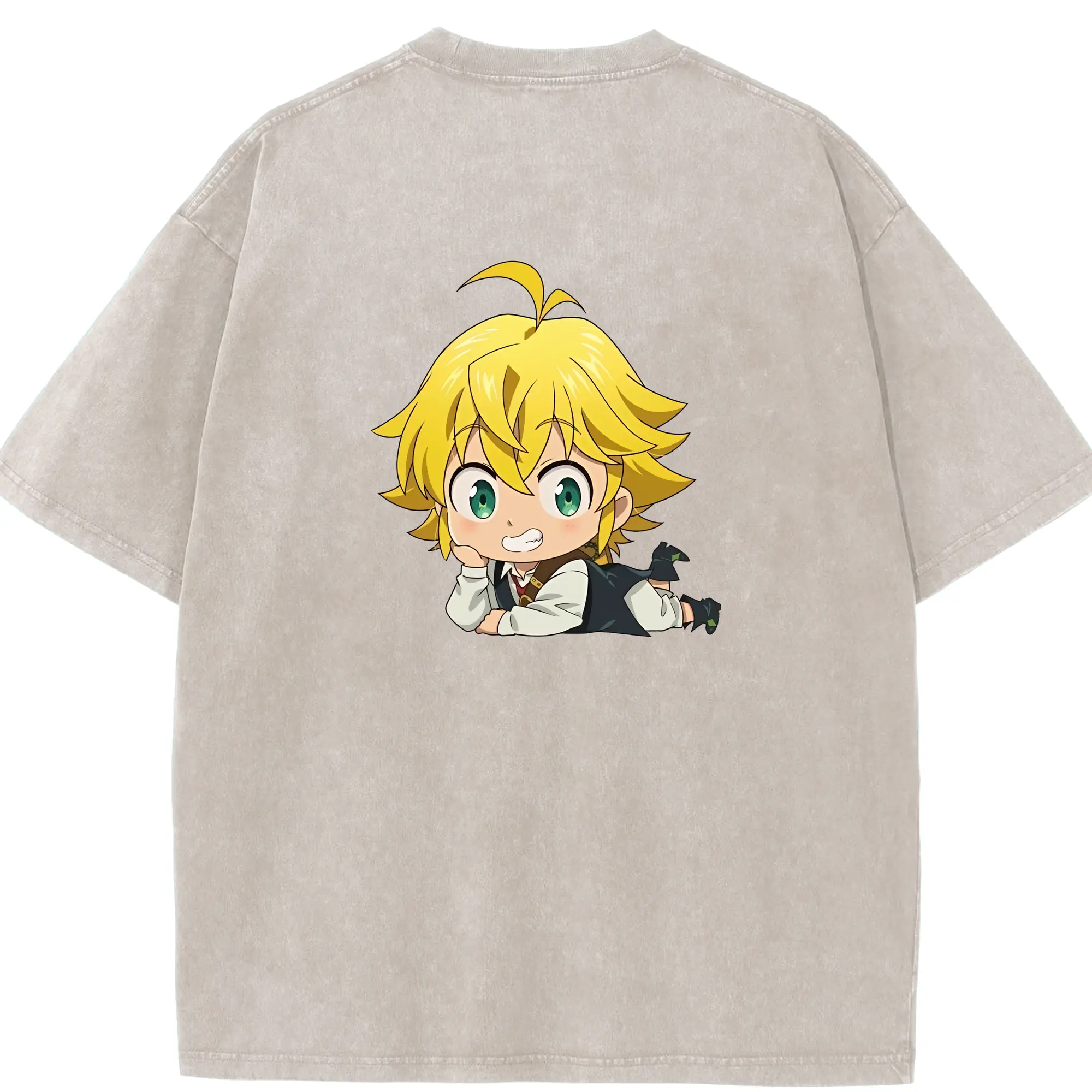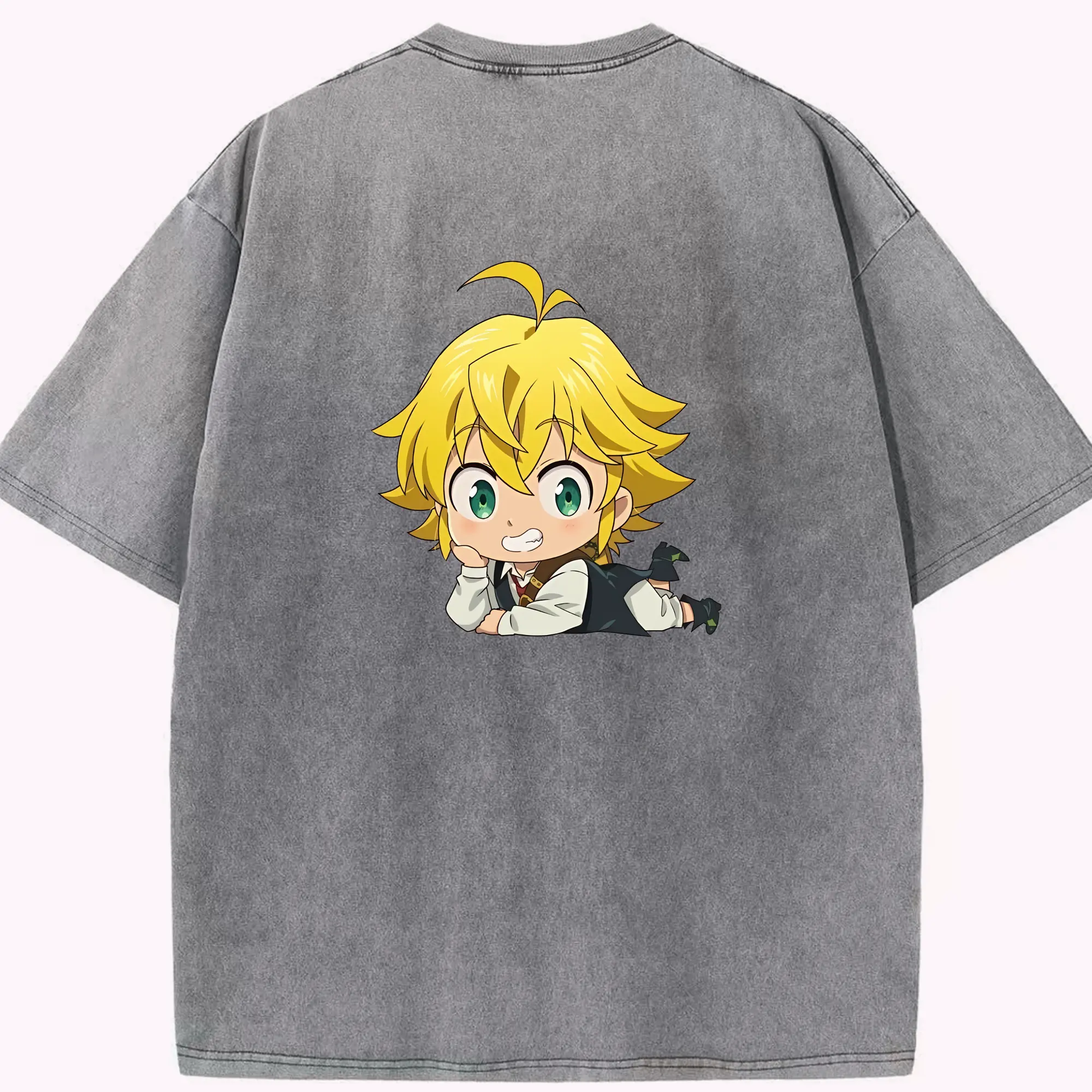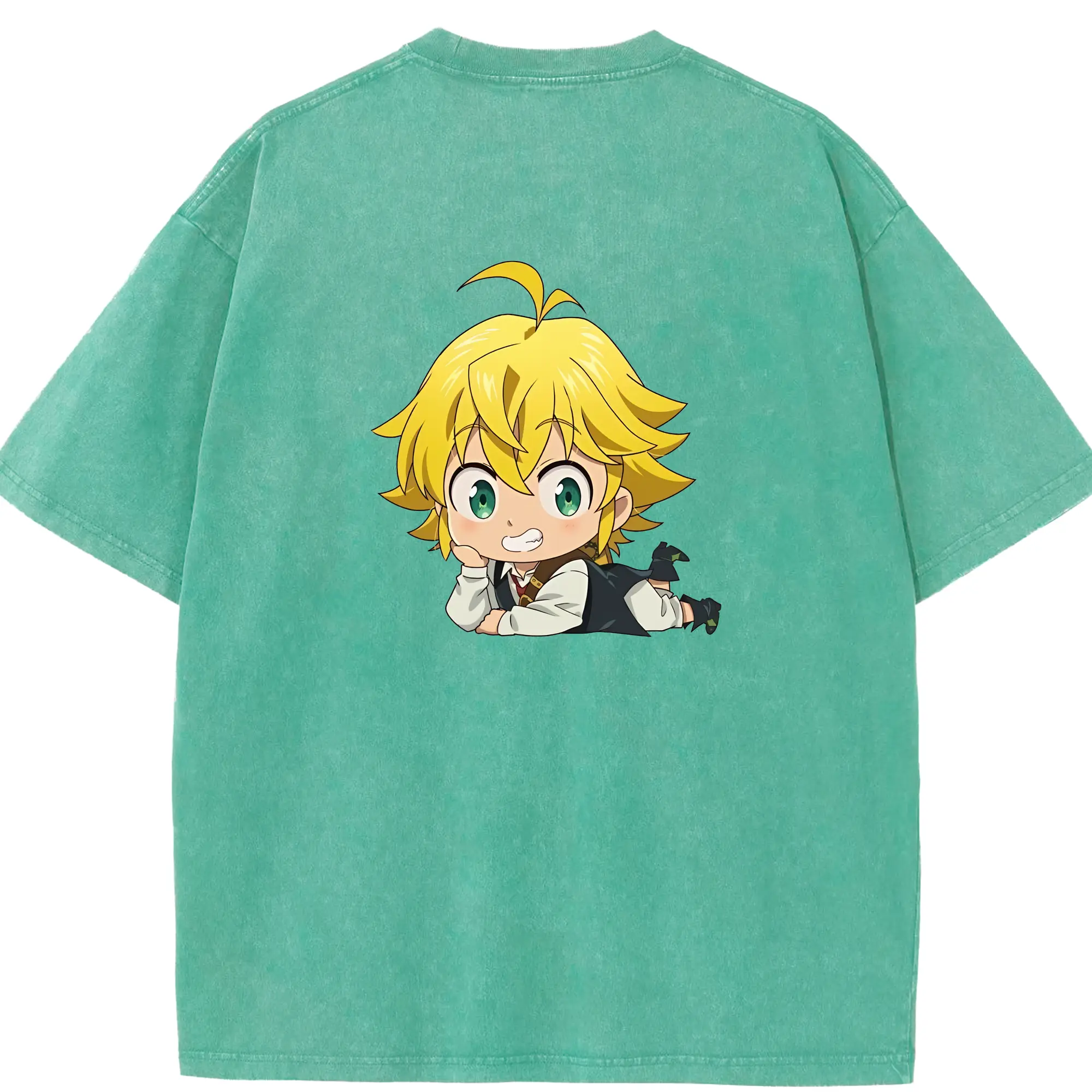 七つの大罪 グッズ メリオダス - 綿100% ヴィンテージ風 半袖Tシャツ ・ フロントプリント ・ 柔らか肌触り ・ 通気性 快適 ・ スポーツ カジュアル 外出用
