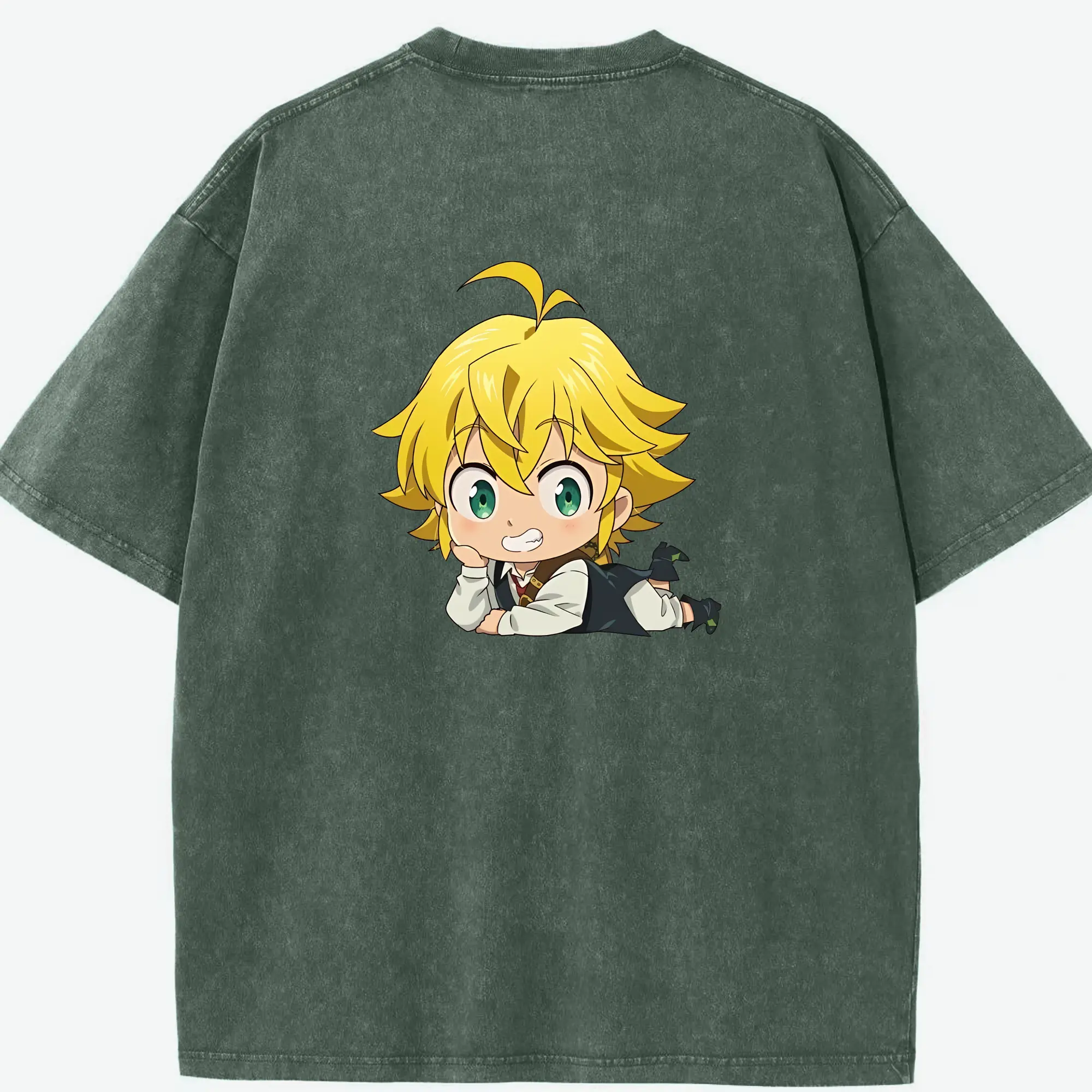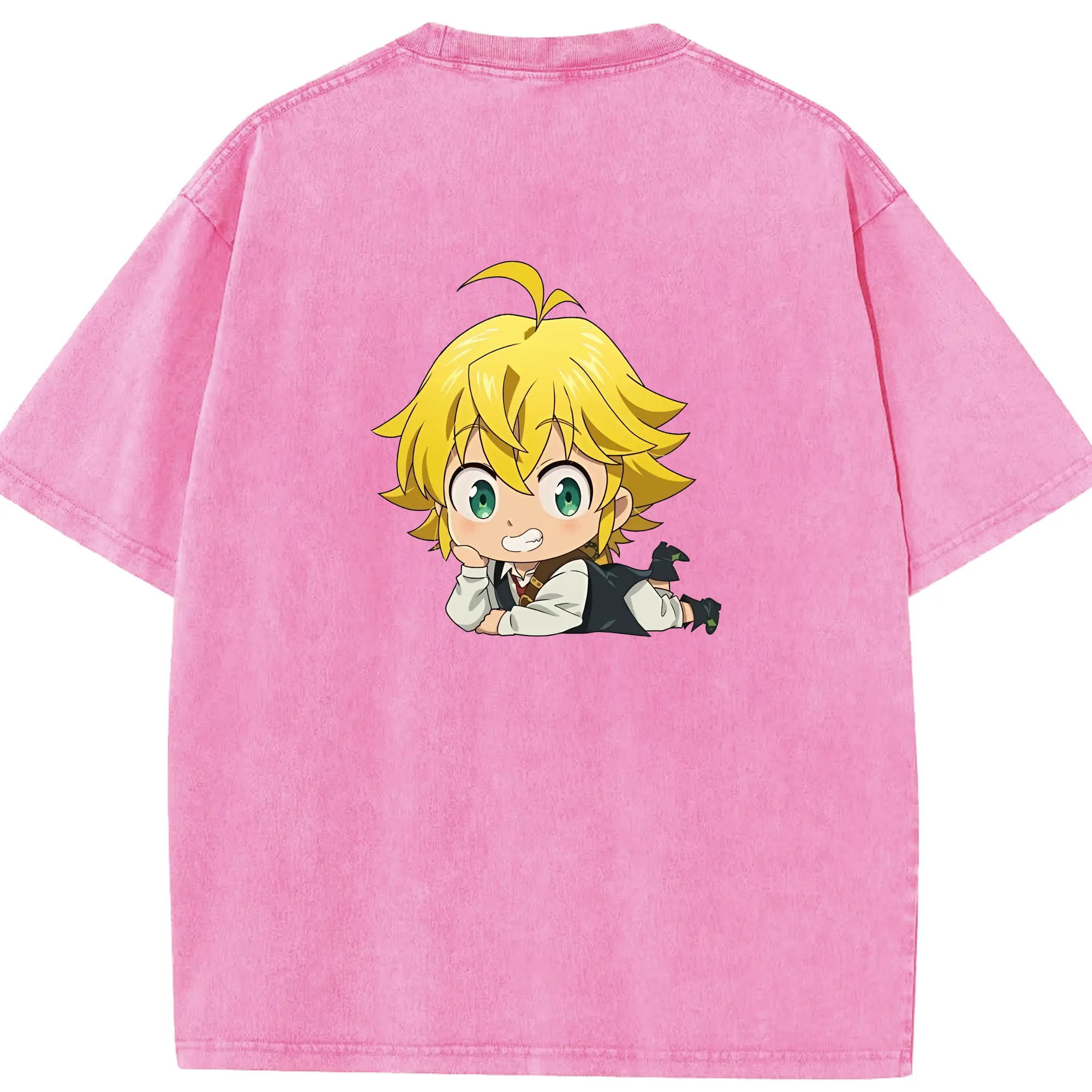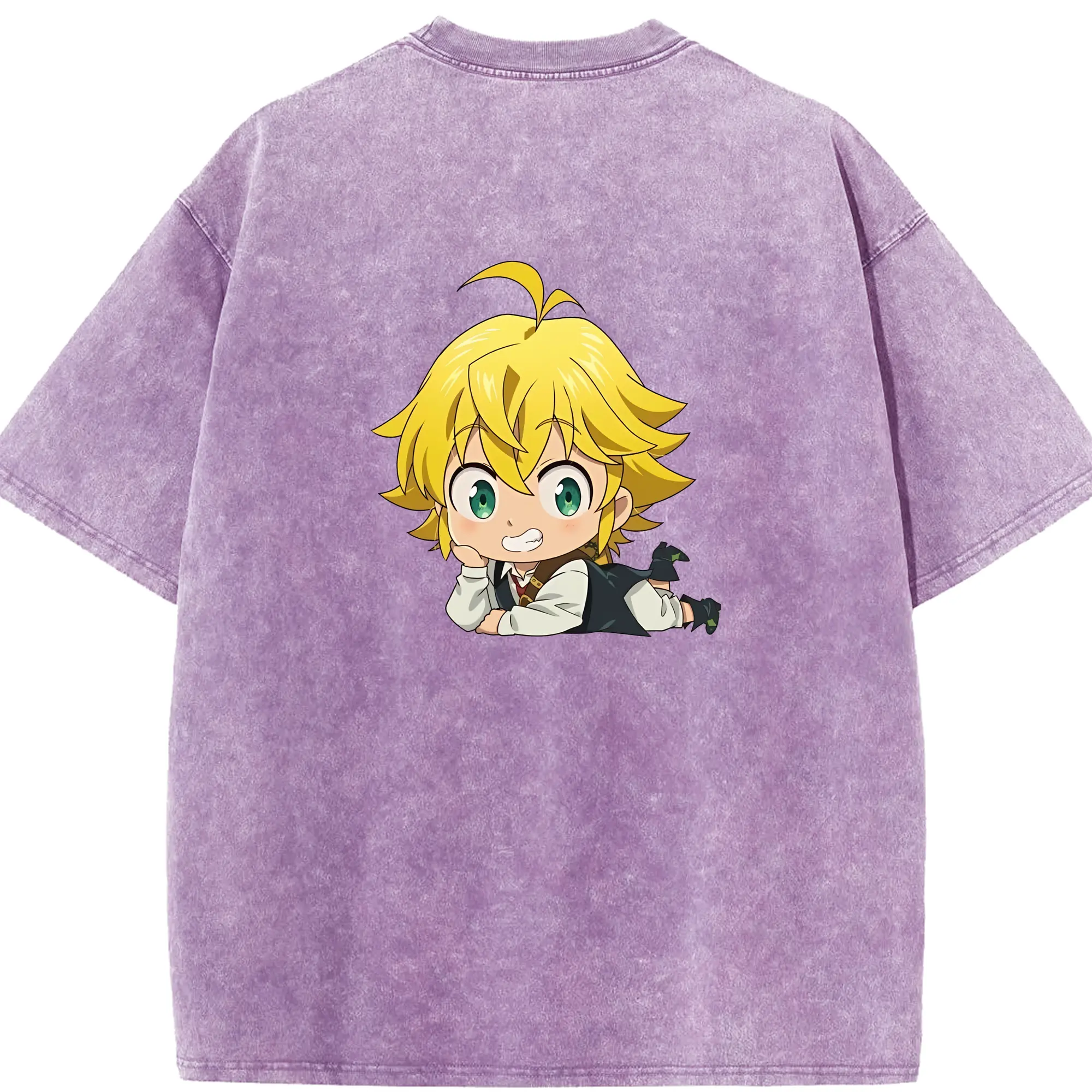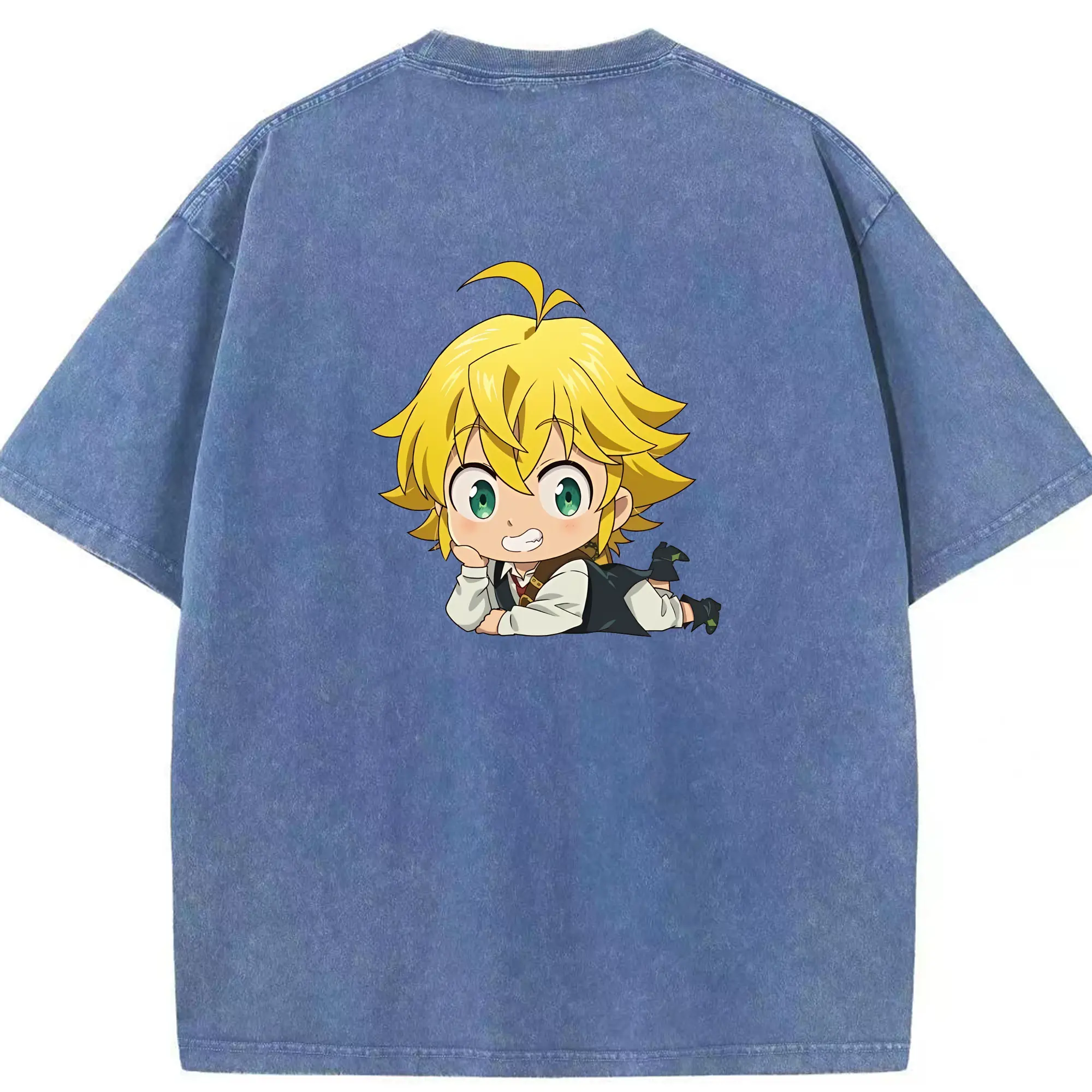 七つの大罪 グッズ メリオダス - 綿100% ヴィンテージ風 半袖Tシャツ ・ フロントプリント ・ 柔らか肌触り ・ 通気性 快適 ・ スポーツ カジュアル 外出用