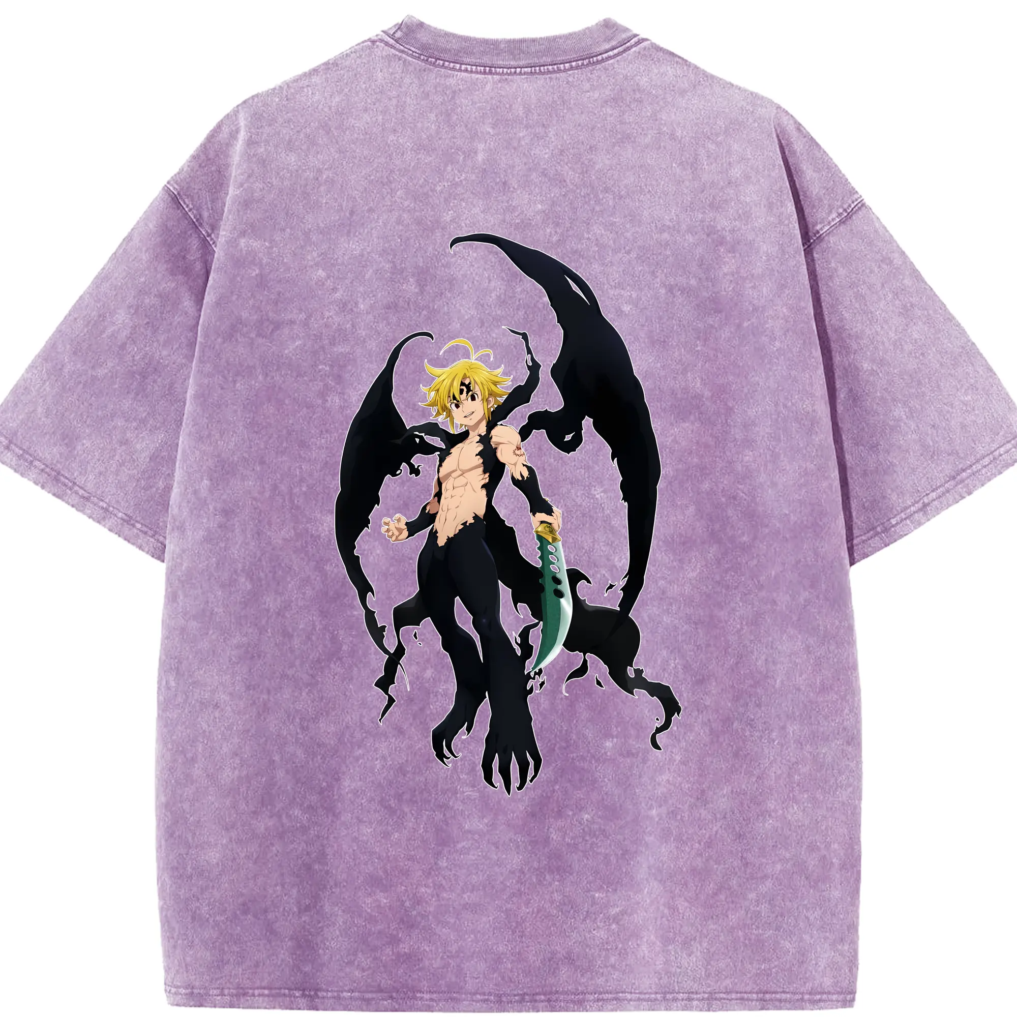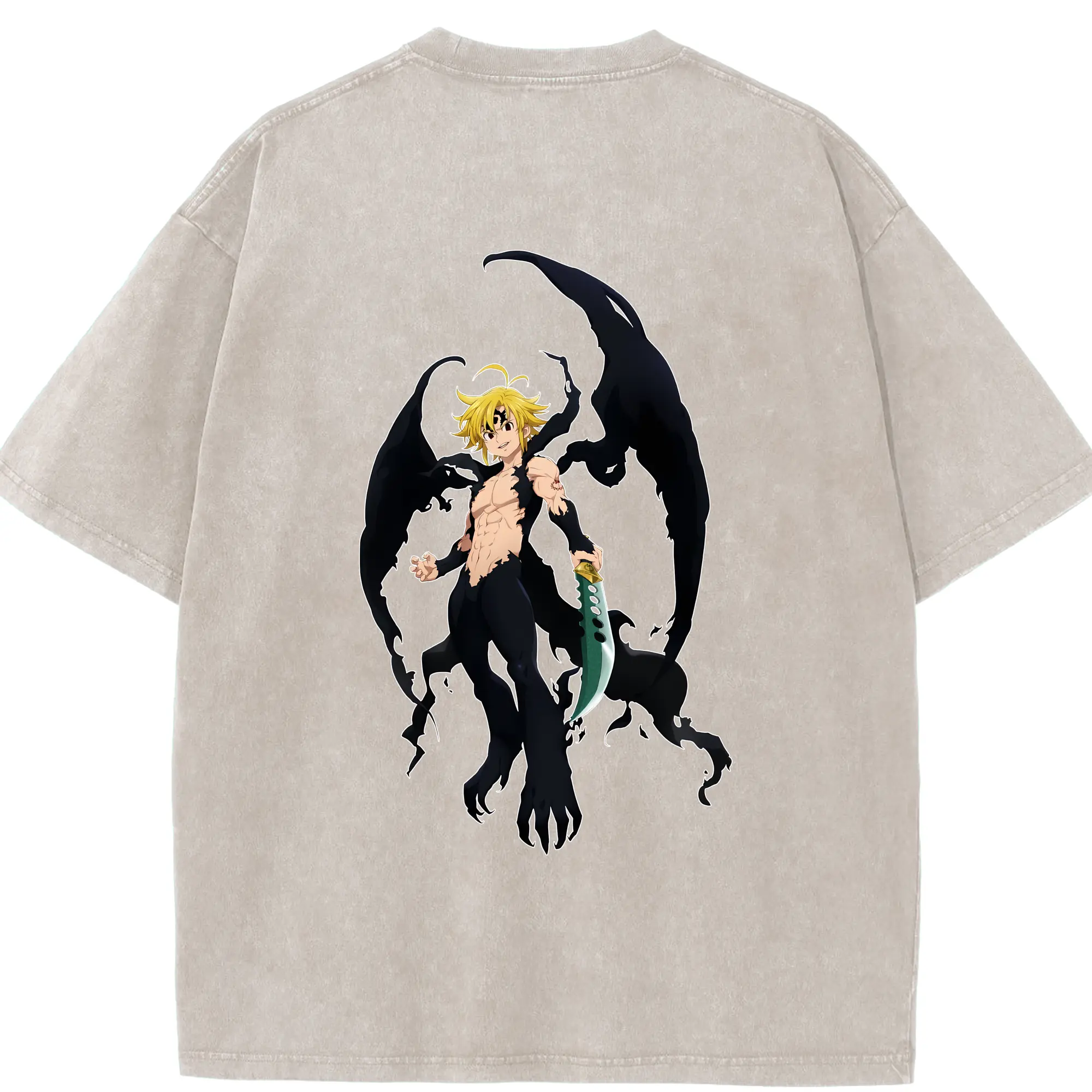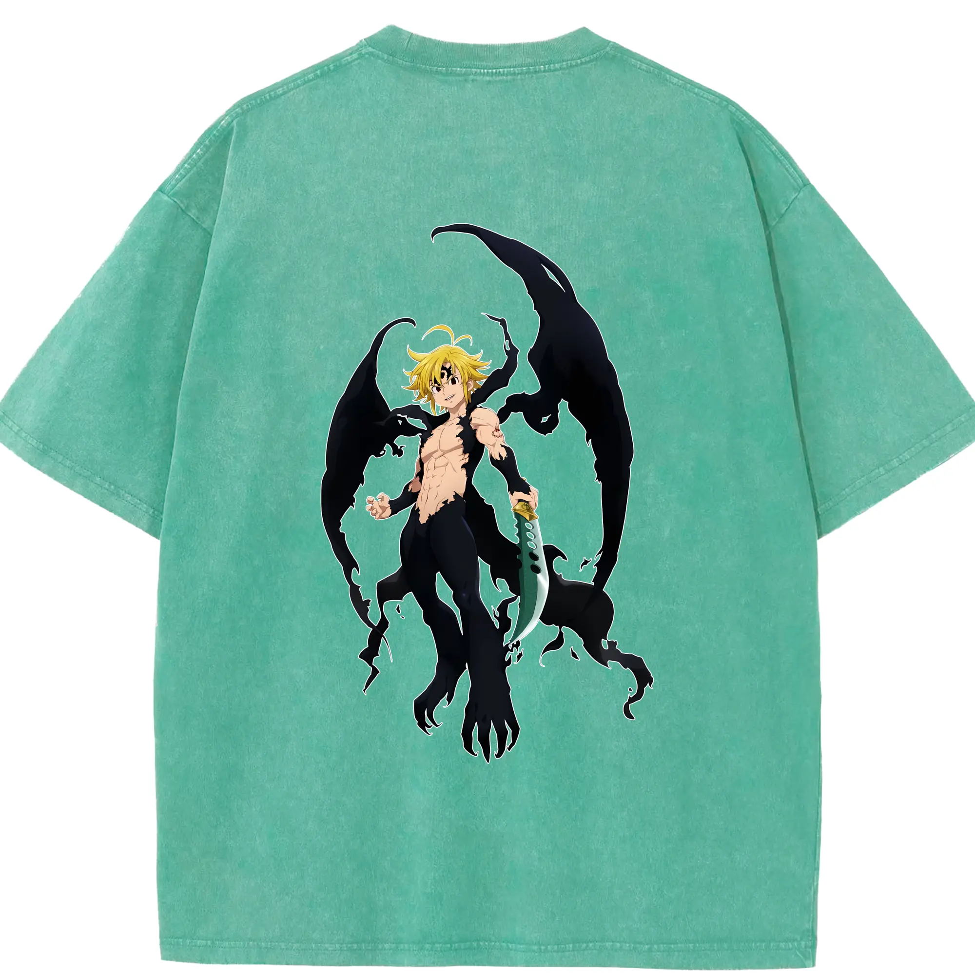 七つの大罪 グッズ メリオダス - 綿100% ヴィンテージ風 半袖Tシャツ ・ フロントプリント ・ 柔らか肌触り ・ 通気性 快適 ・ スポーツ カジュアル 外出用