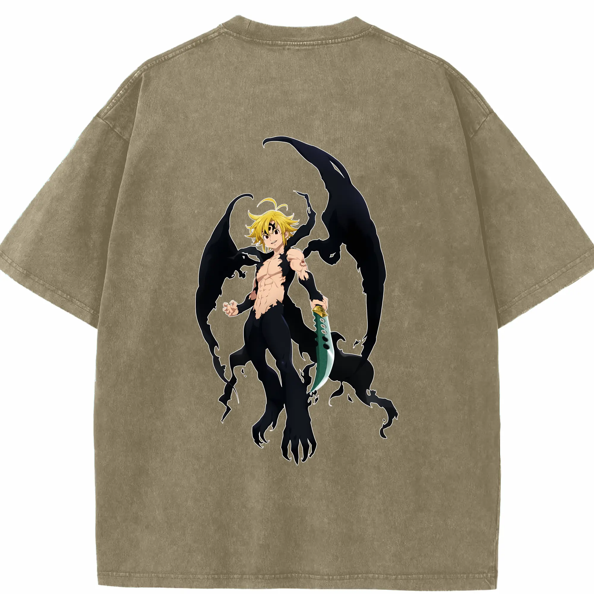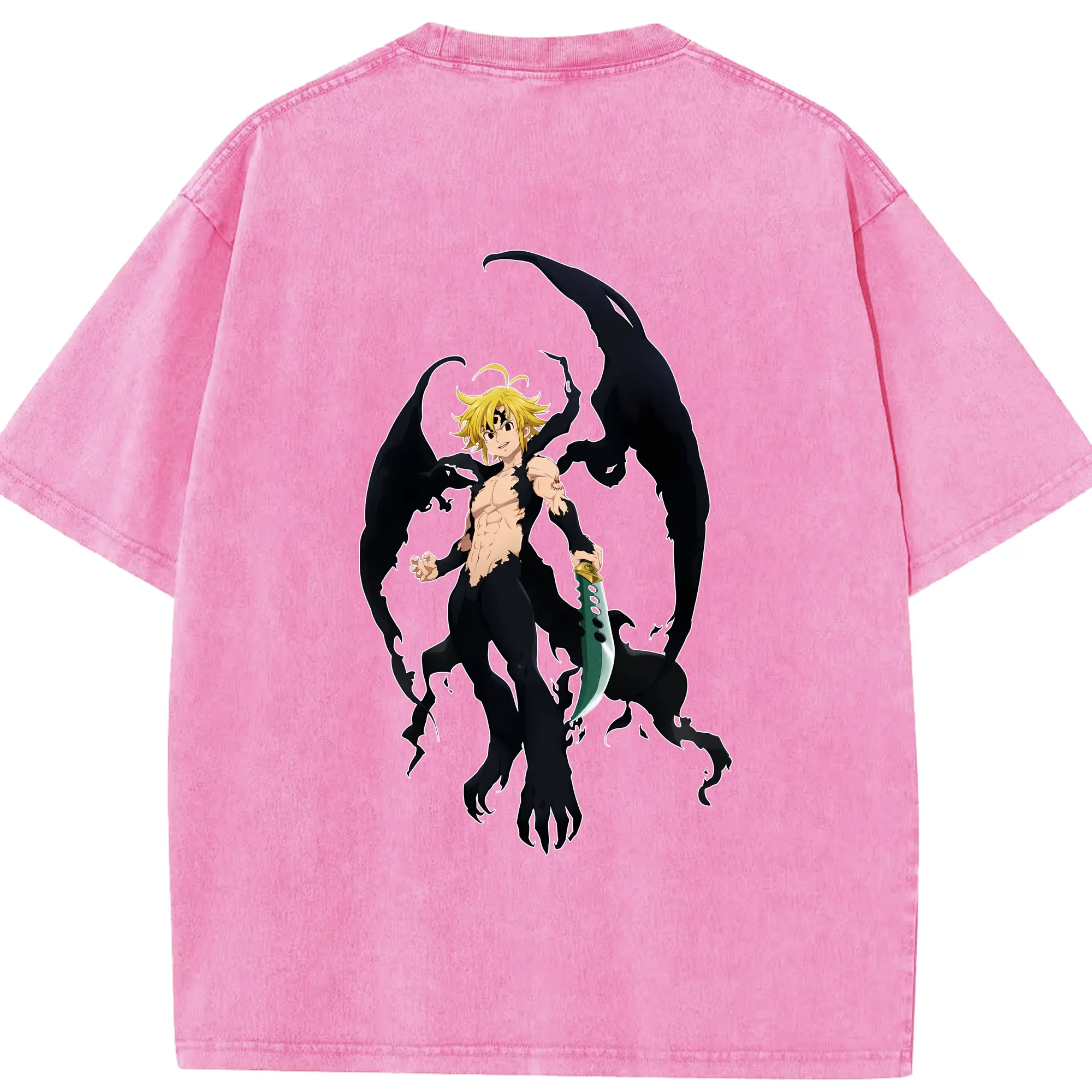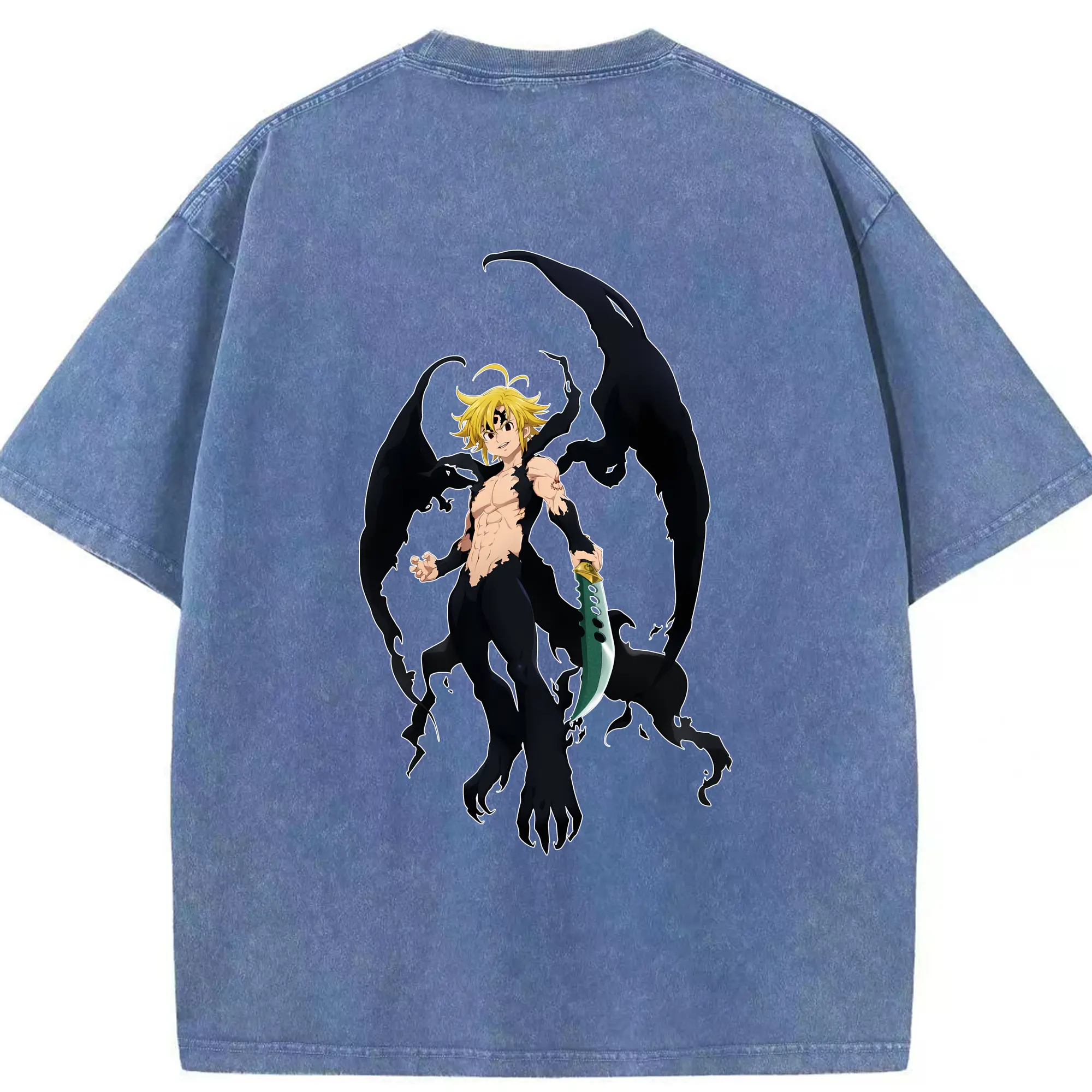 七つの大罪 グッズ メリオダス - 綿100% ヴィンテージ風 半袖Tシャツ ・ フロントプリント ・ 柔らか肌触り ・ 通気性 快適 ・ スポーツ カジュアル 外出用