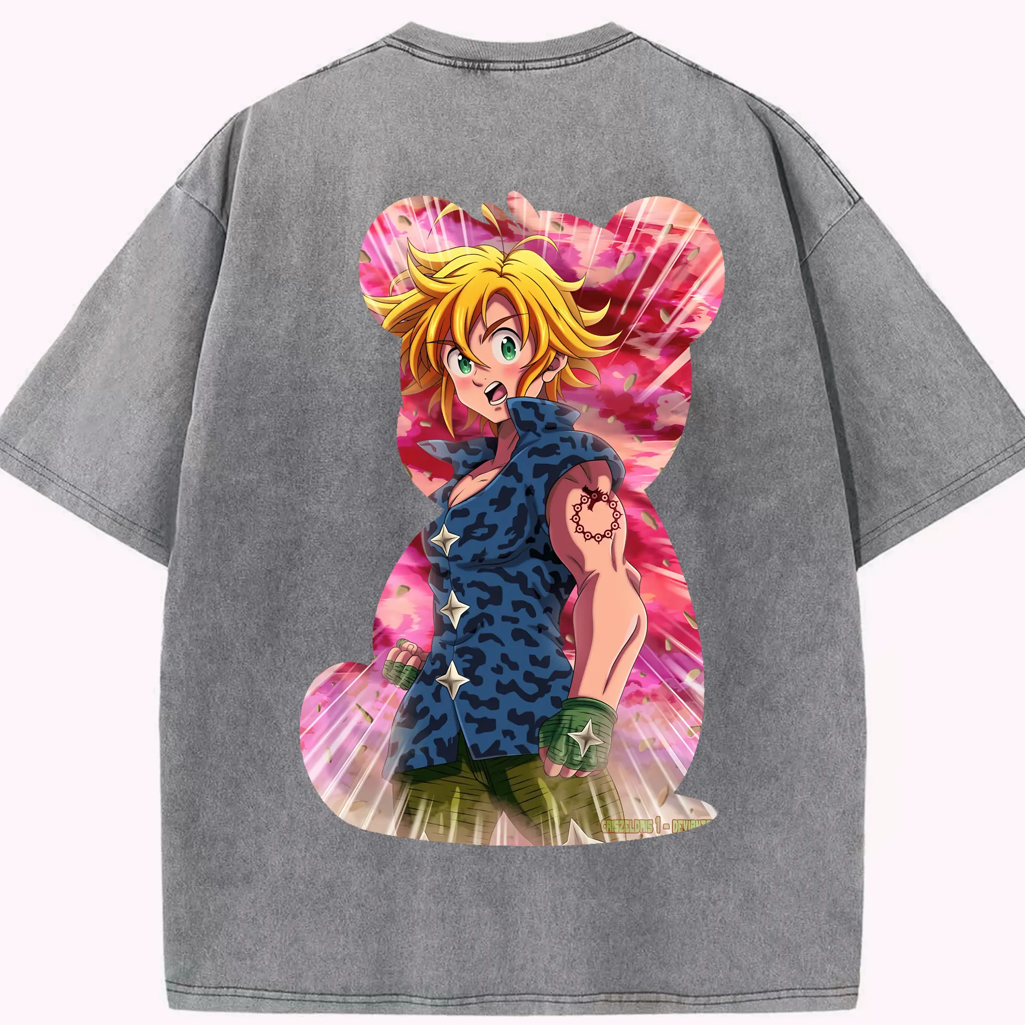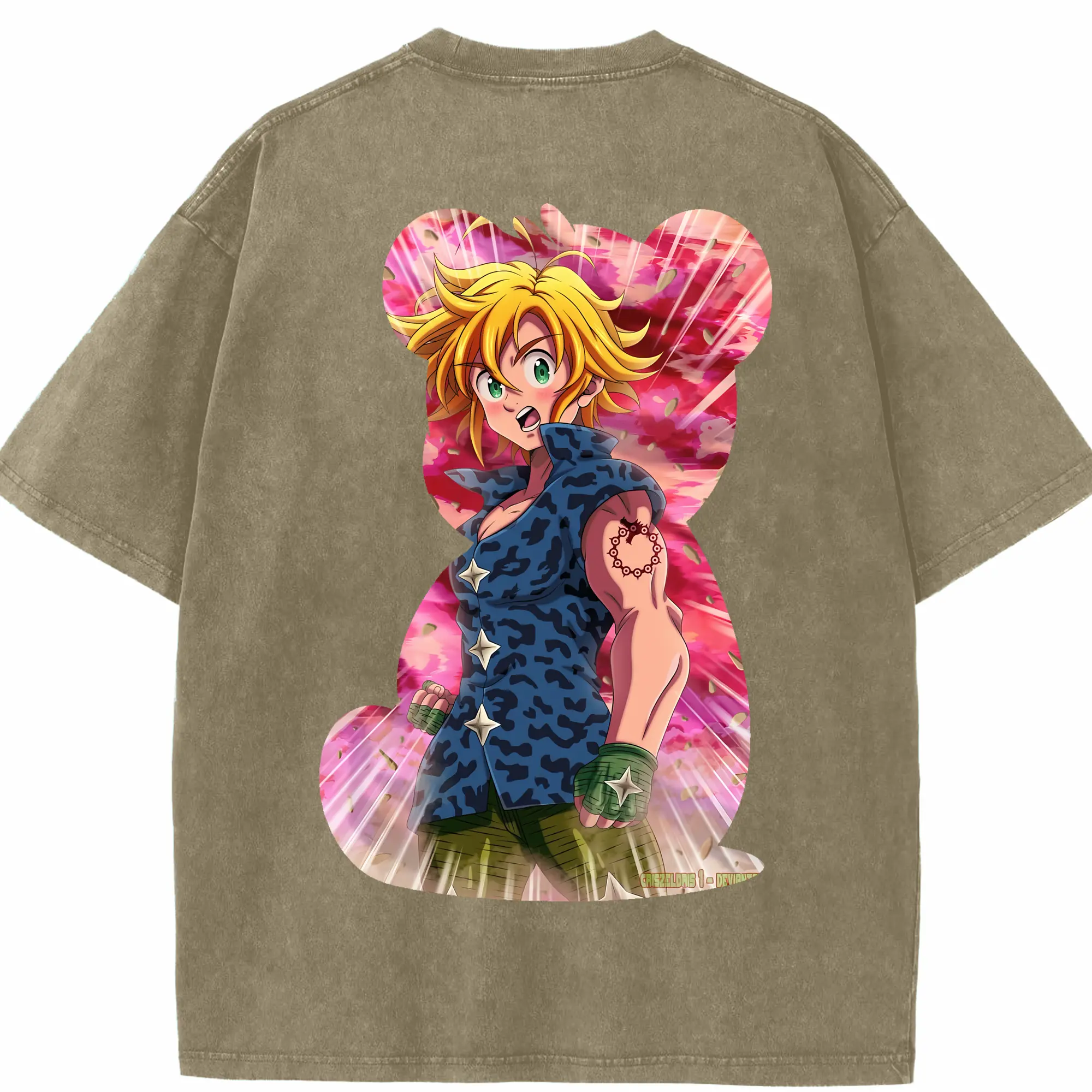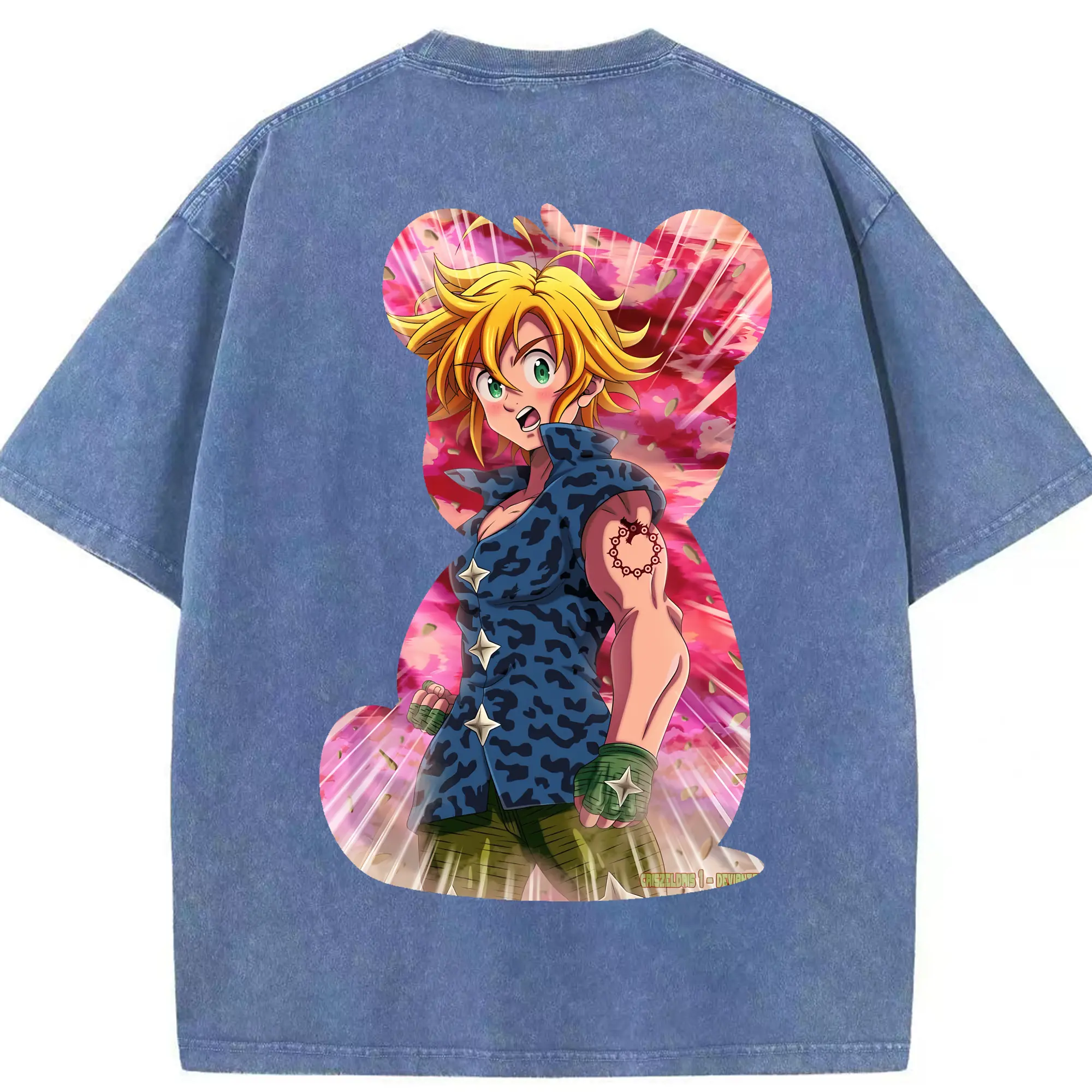 七つの大罪 グッズ メリオダス - 綿100% ヴィンテージ風 半袖Tシャツ ・ フロントプリント ・ 柔らか肌触り ・ 通気性 快適 ・ スポーツ カジュアル 外出用