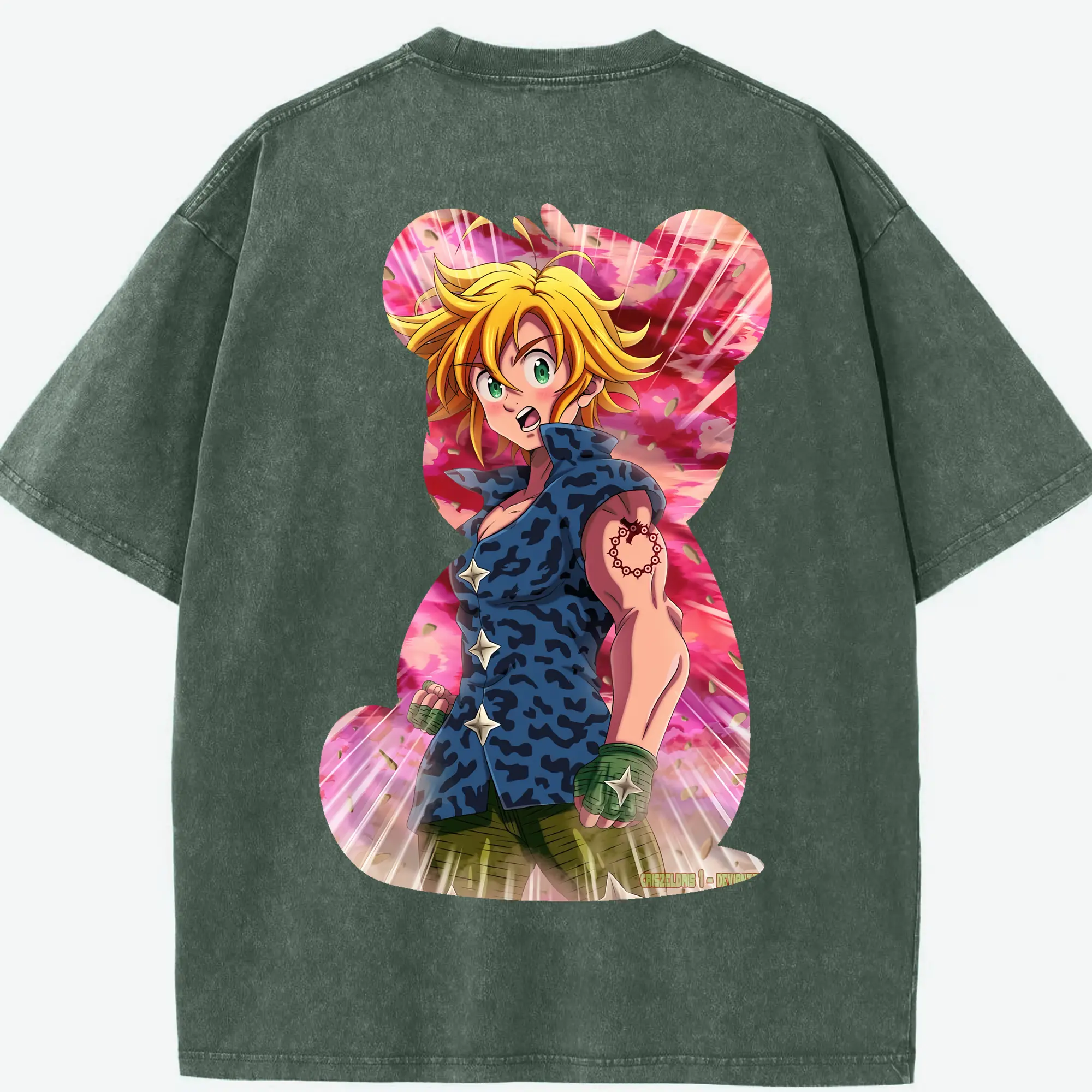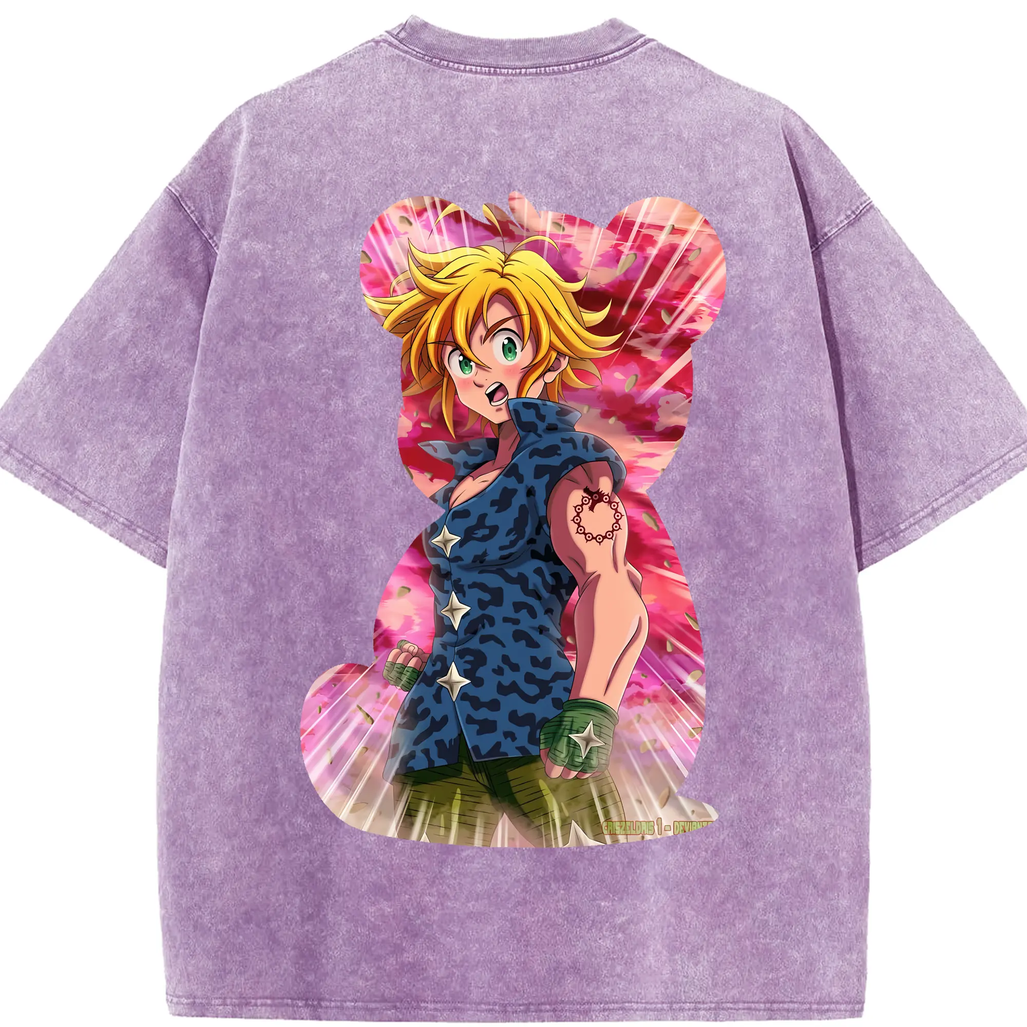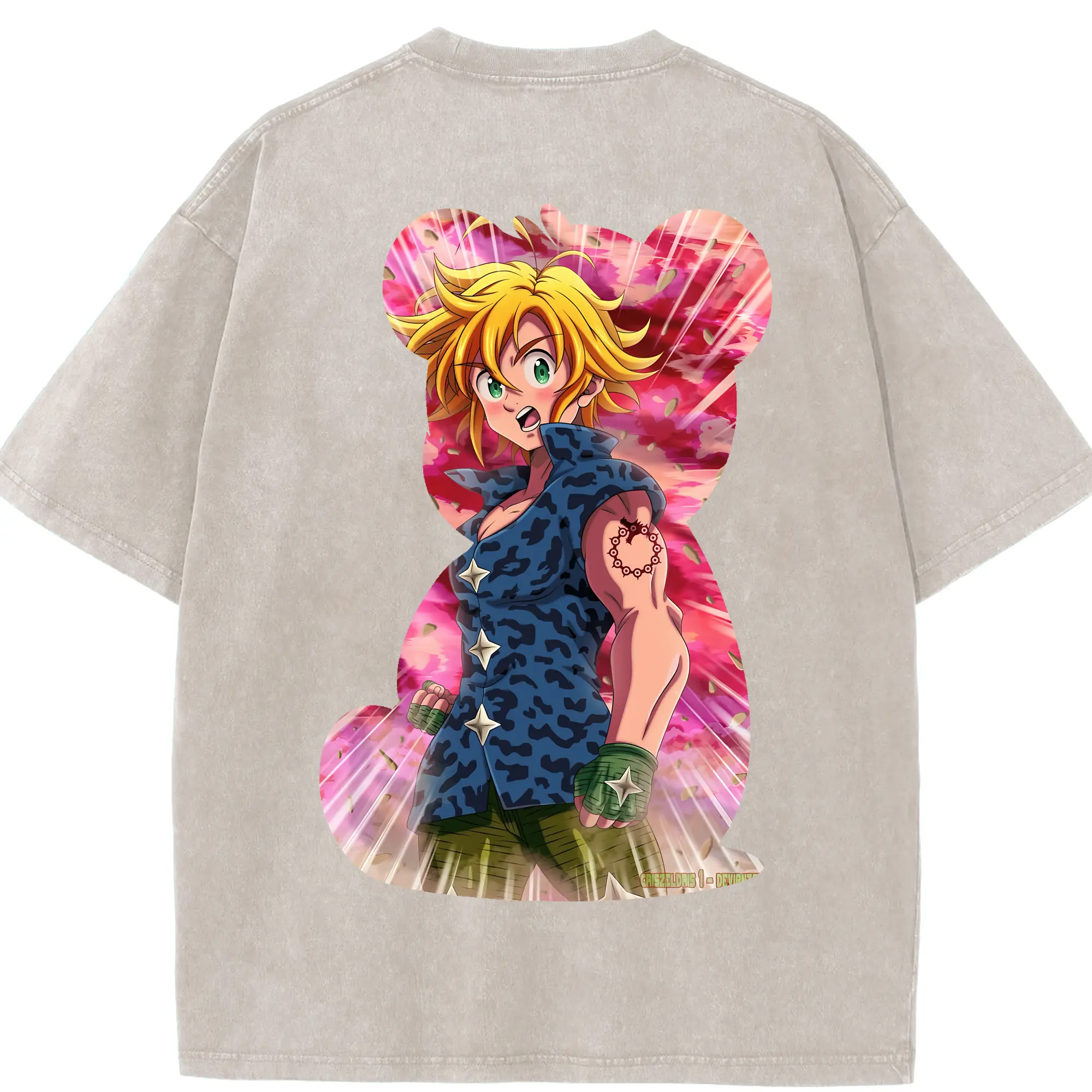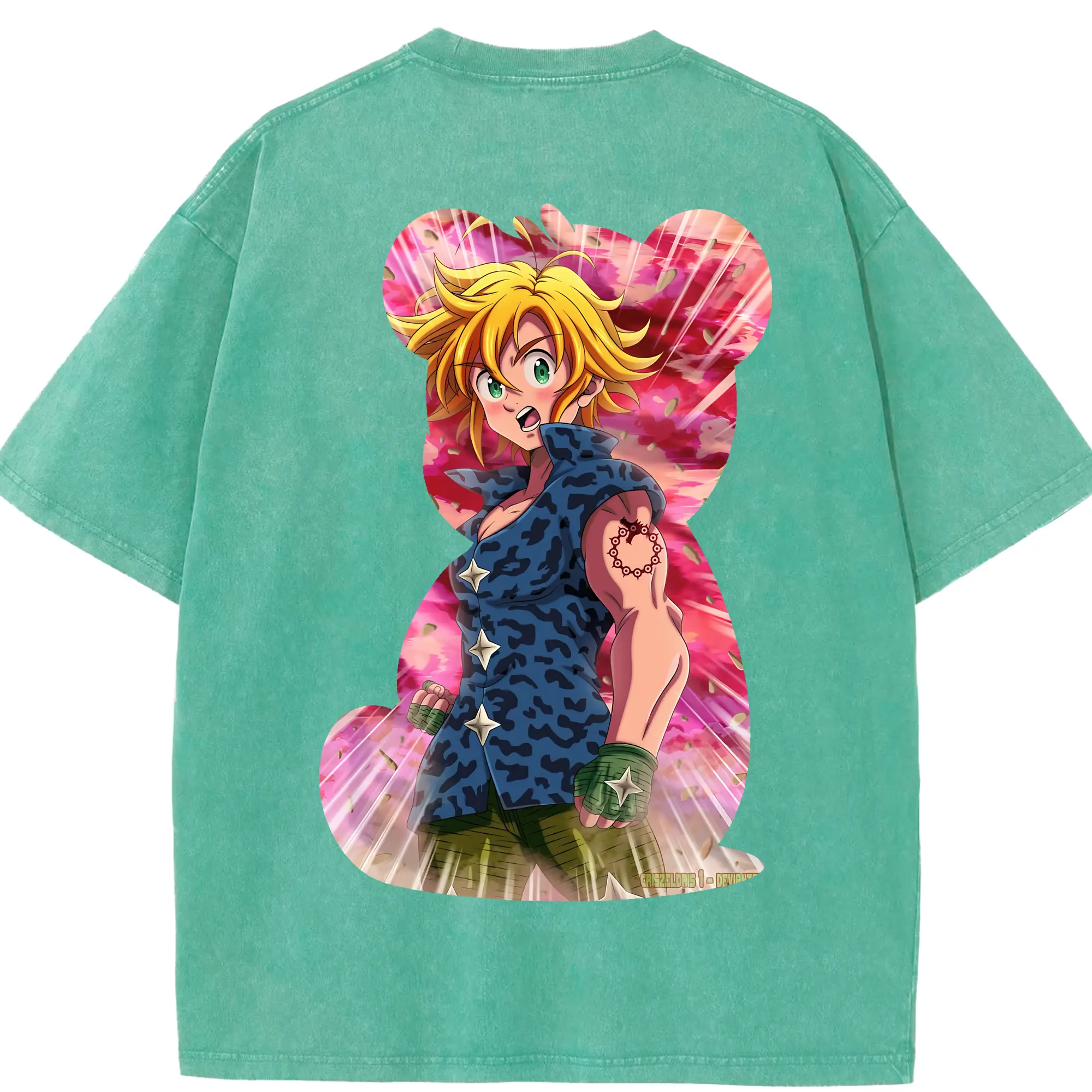 七つの大罪 グッズ メリオダス - 綿100% ヴィンテージ風 半袖Tシャツ ・ フロントプリント ・ 柔らか肌触り ・ 通気性 快適 ・ スポーツ カジュアル 外出用