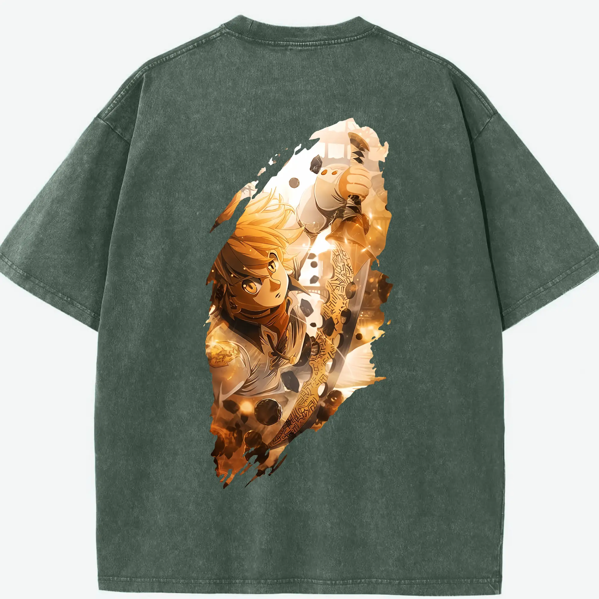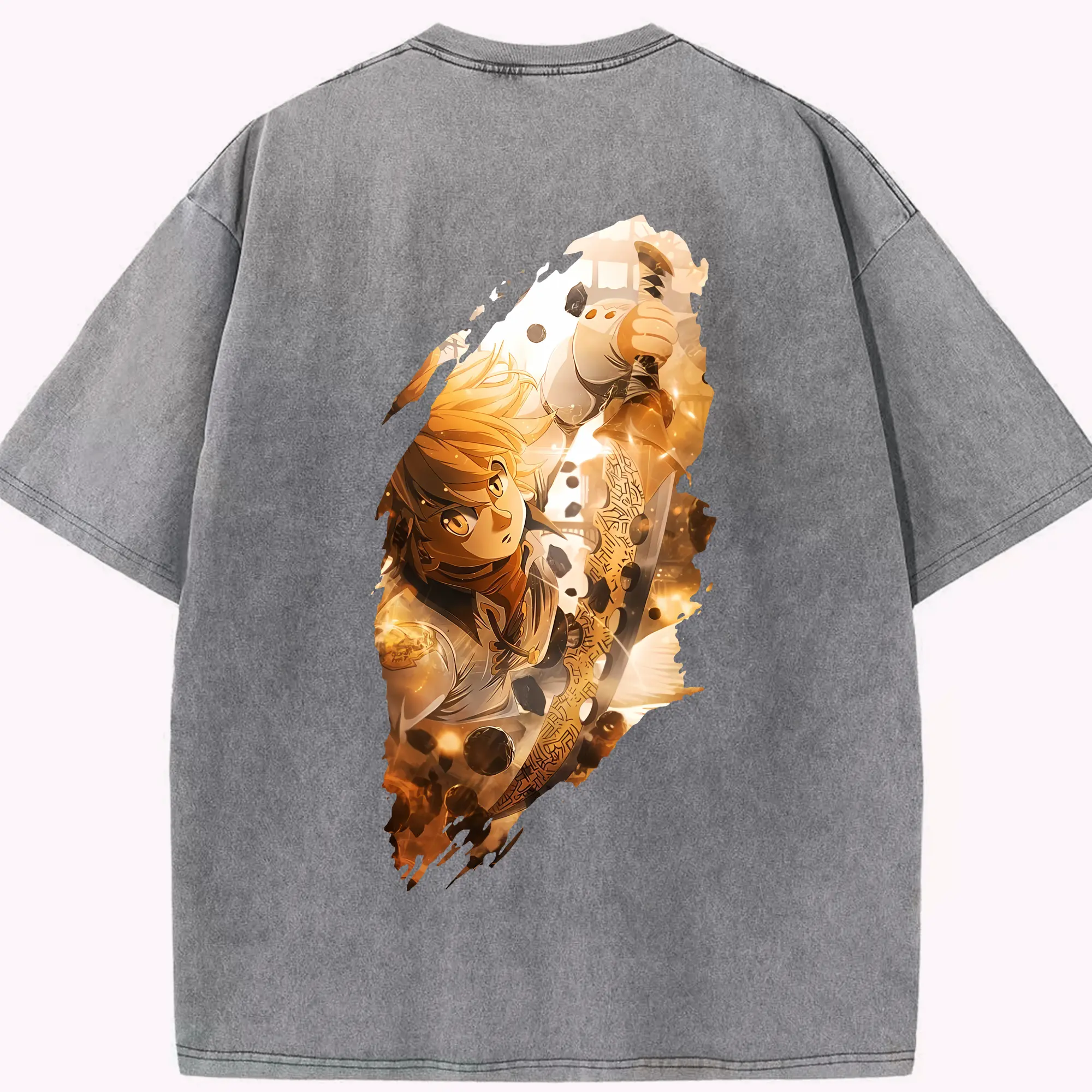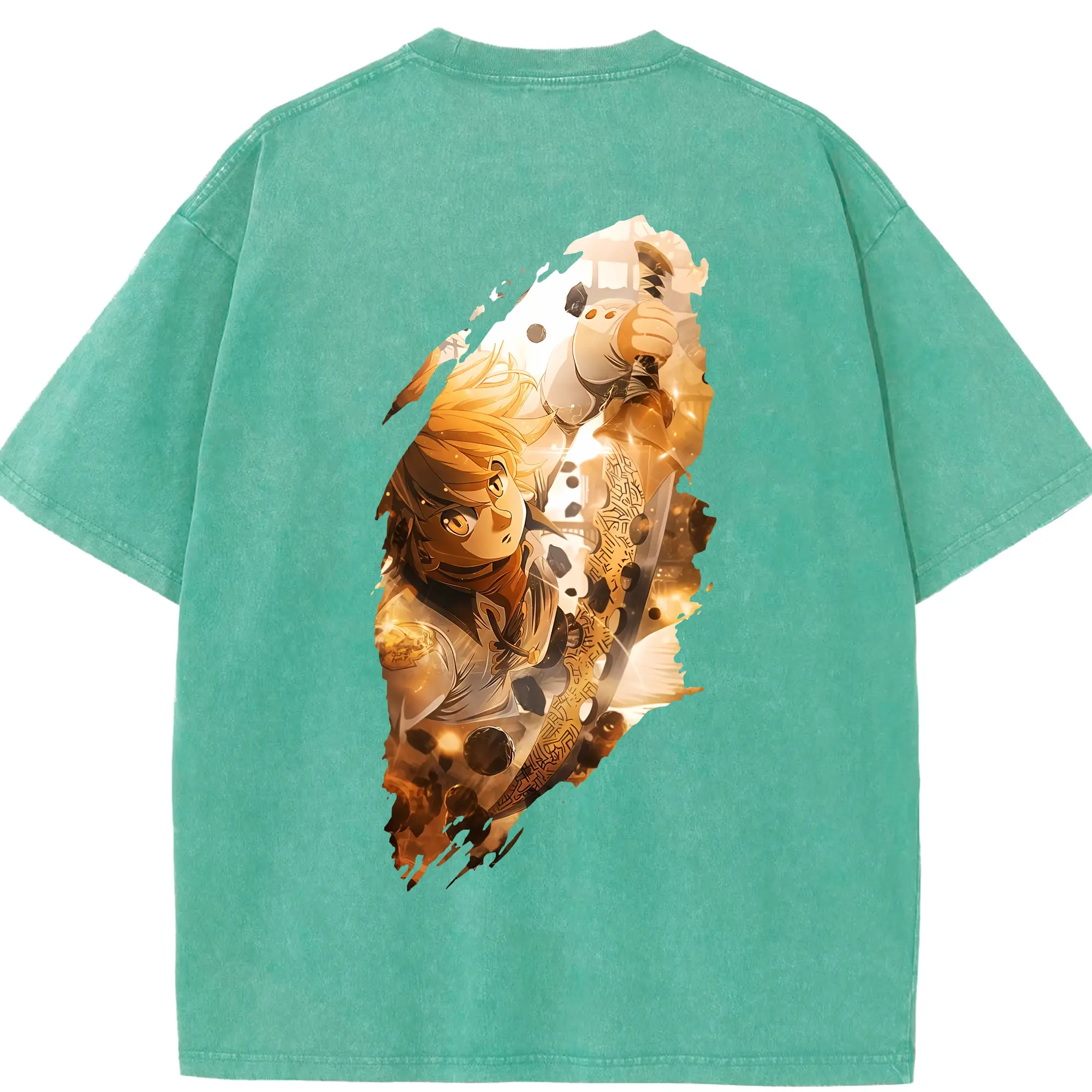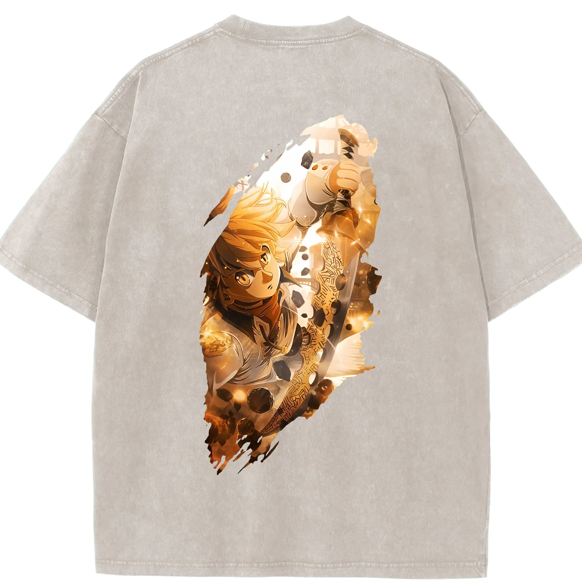 ナルト グッズ 綱手 - 綿100% ヴィンテージ風 半袖Tシャツ ・ 背面プリント ・ 柔らか肌触り ・ 通気性 快適 ・ スポーツ カジュアル 外出用