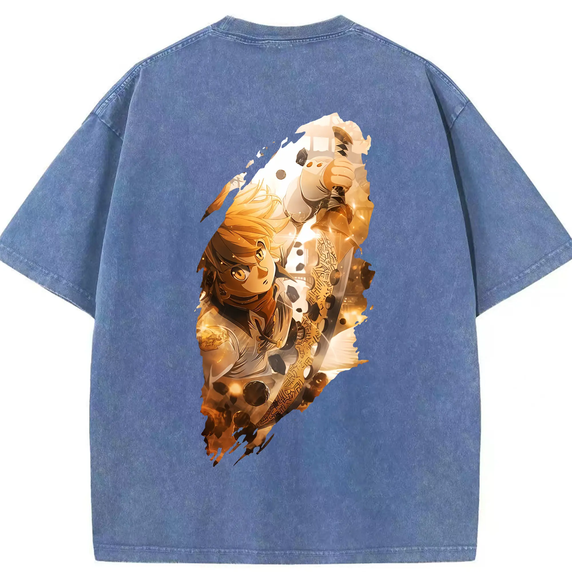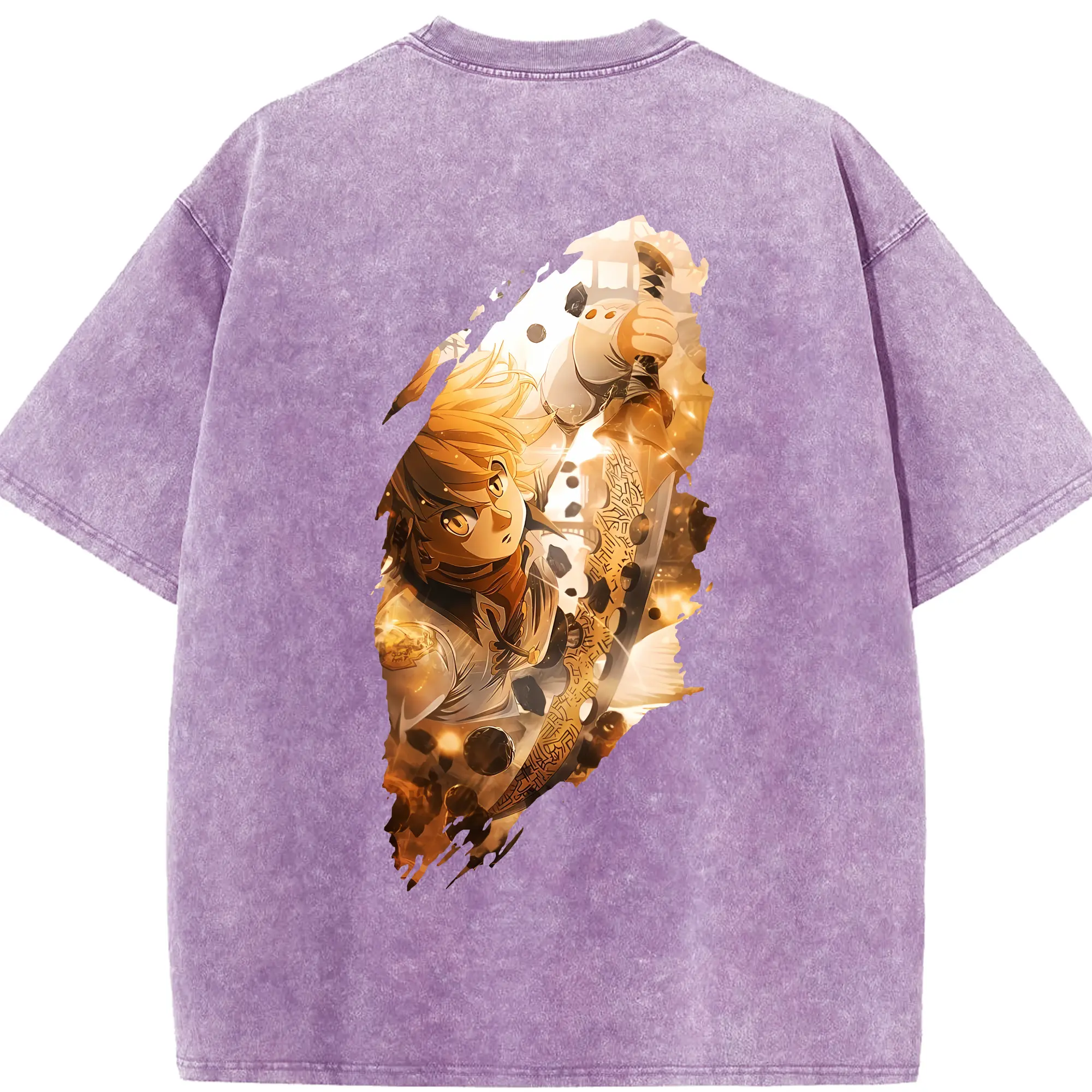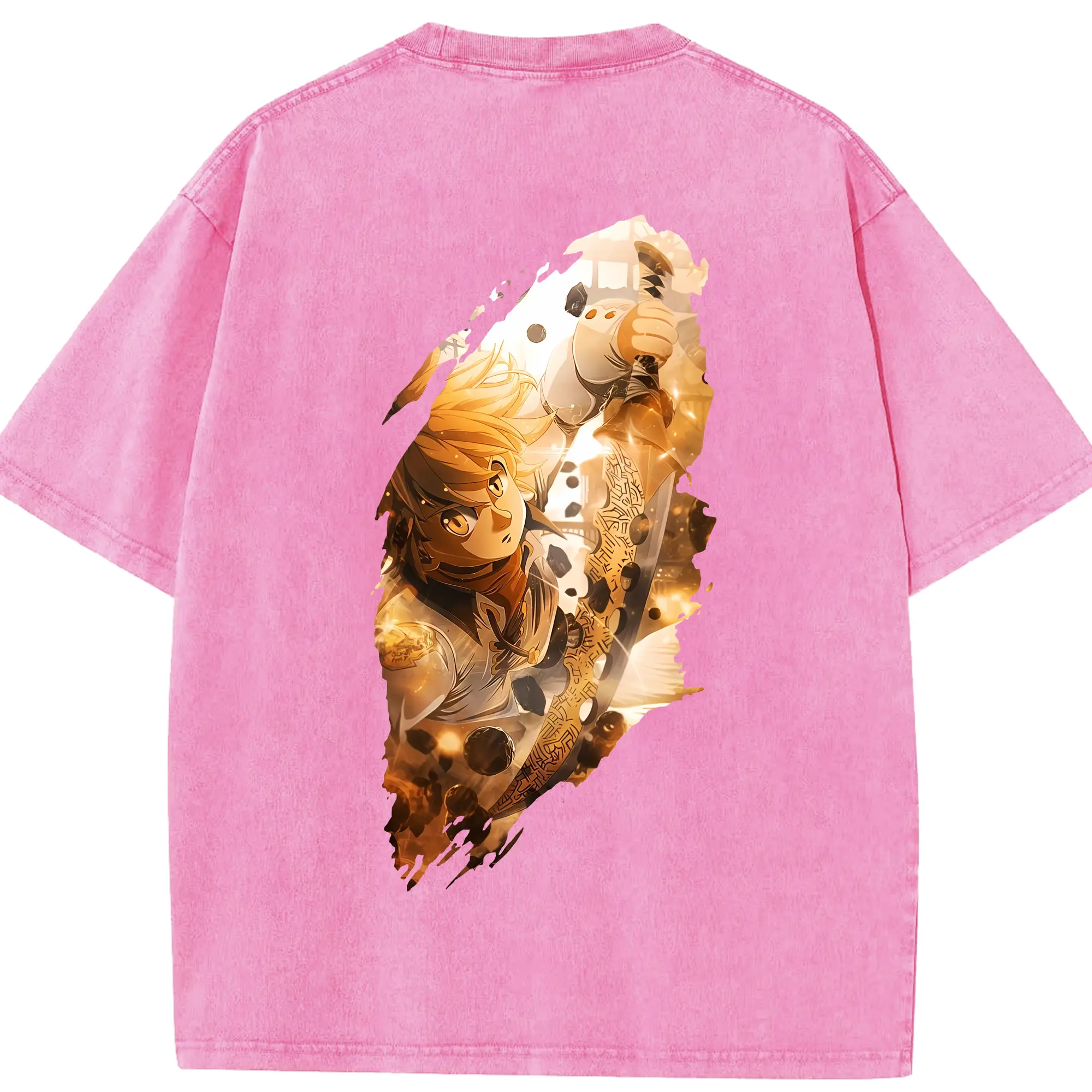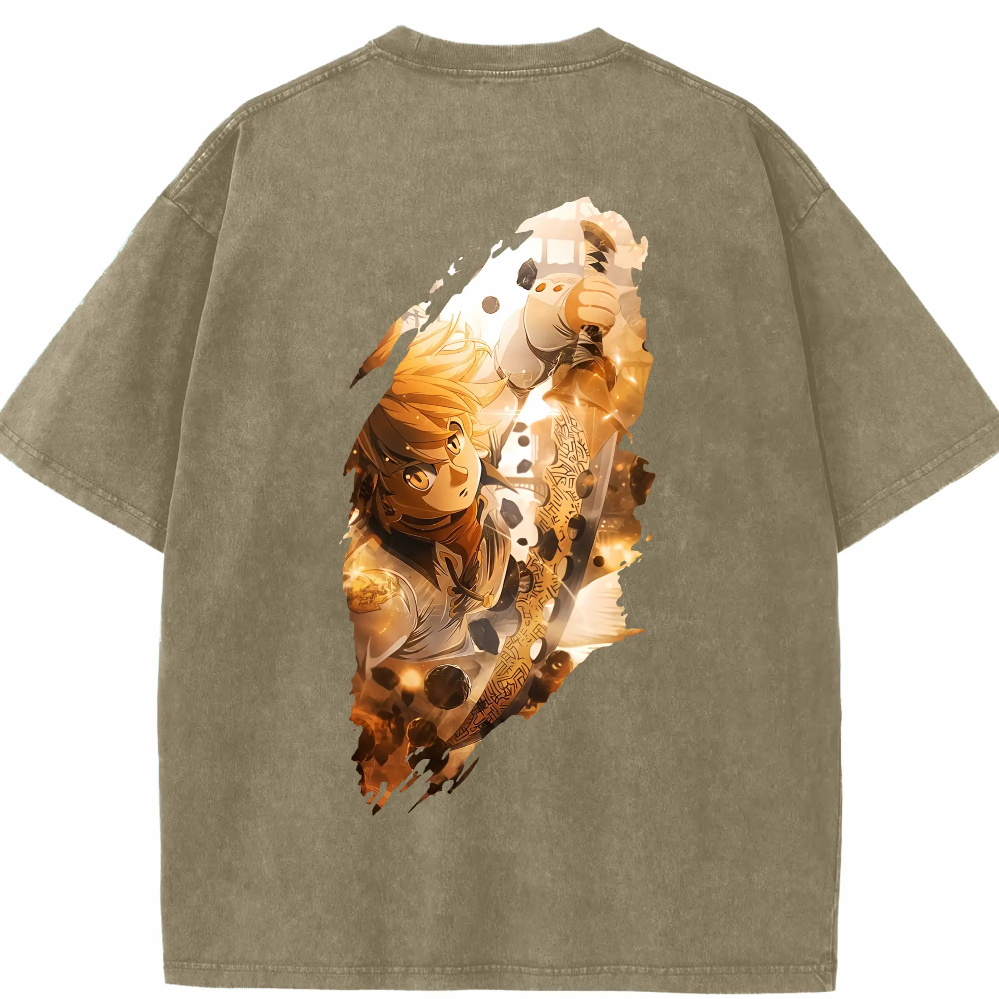 ナルト グッズ 綱手 - 綿100% ヴィンテージ風 半袖Tシャツ ・ 背面プリント ・ 柔らか肌触り ・ 通気性 快適 ・ スポーツ カジュアル 外出用