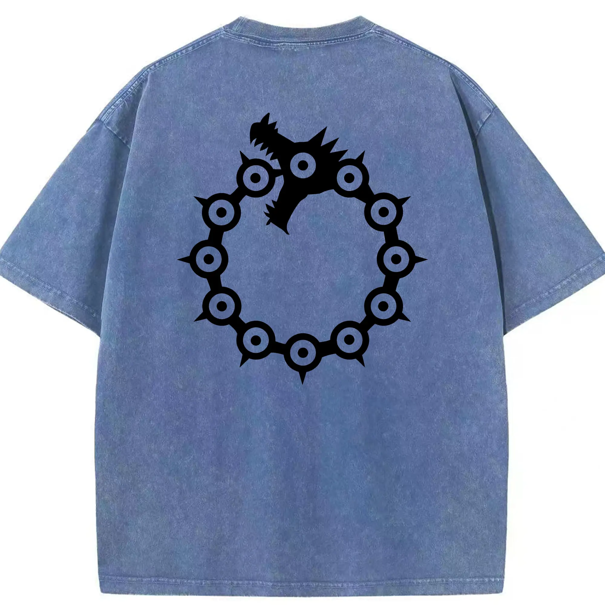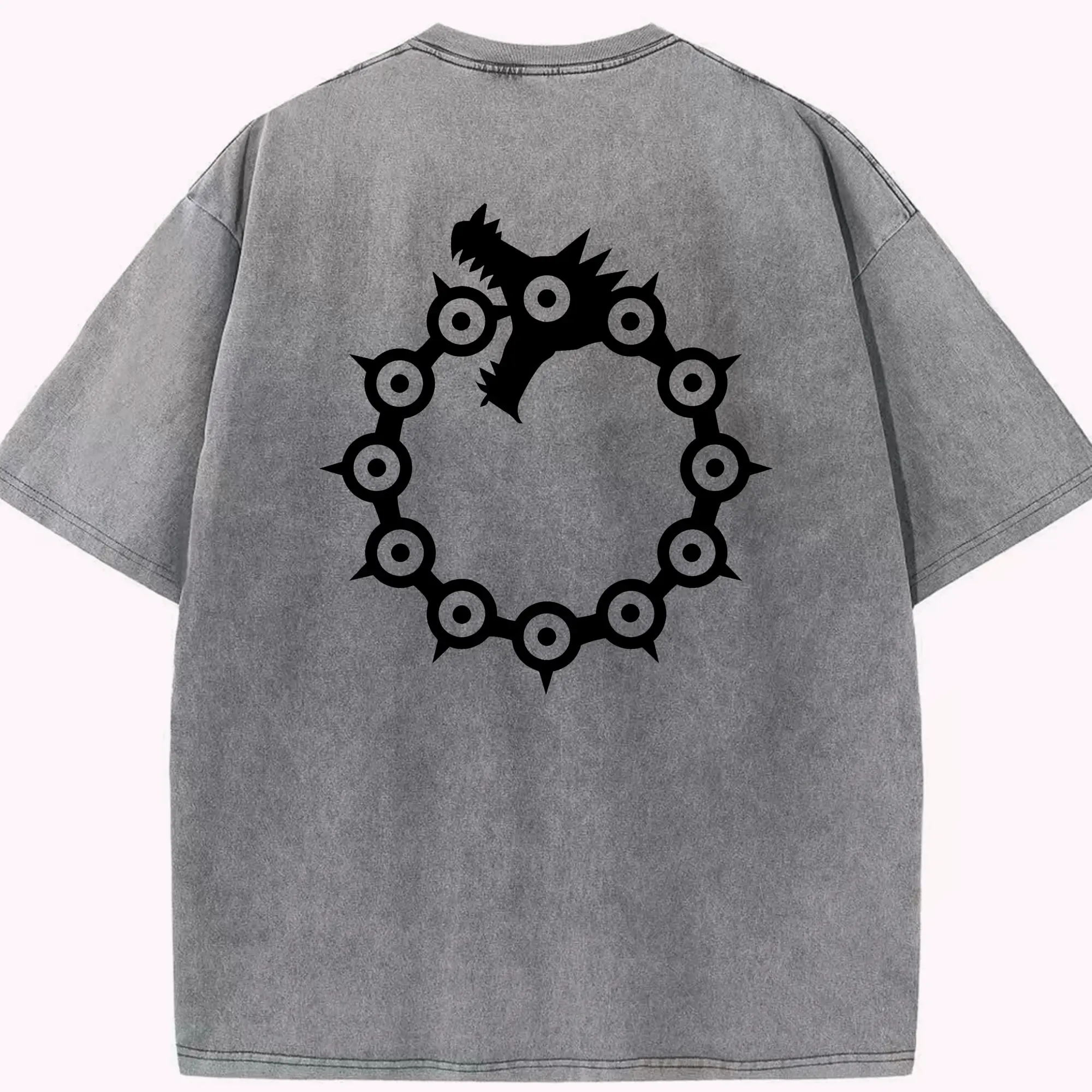 七つの大罪 グッズ メリオダス - 綿100% ヴィンテージ風 半袖Tシャツ ・ フロントプリント ・ 柔らか肌触り ・ 通気性 快適 ・ スポーツ カジュアル 外出用