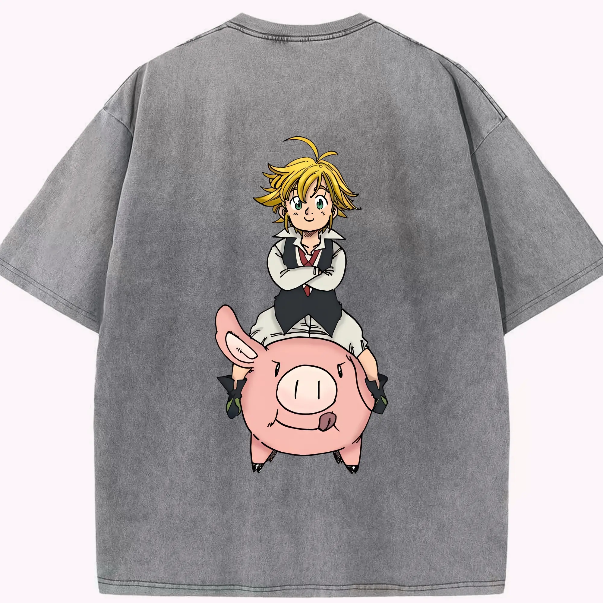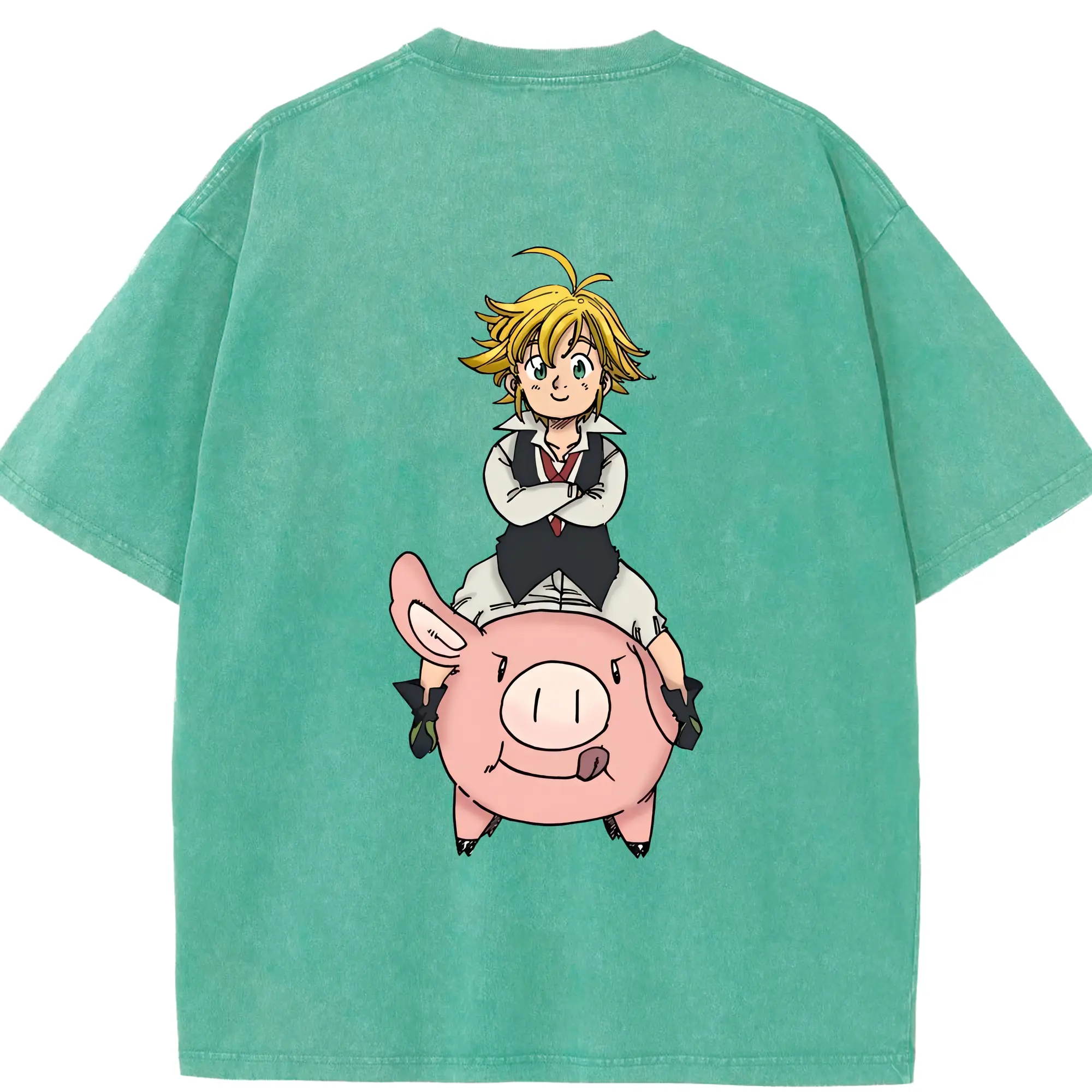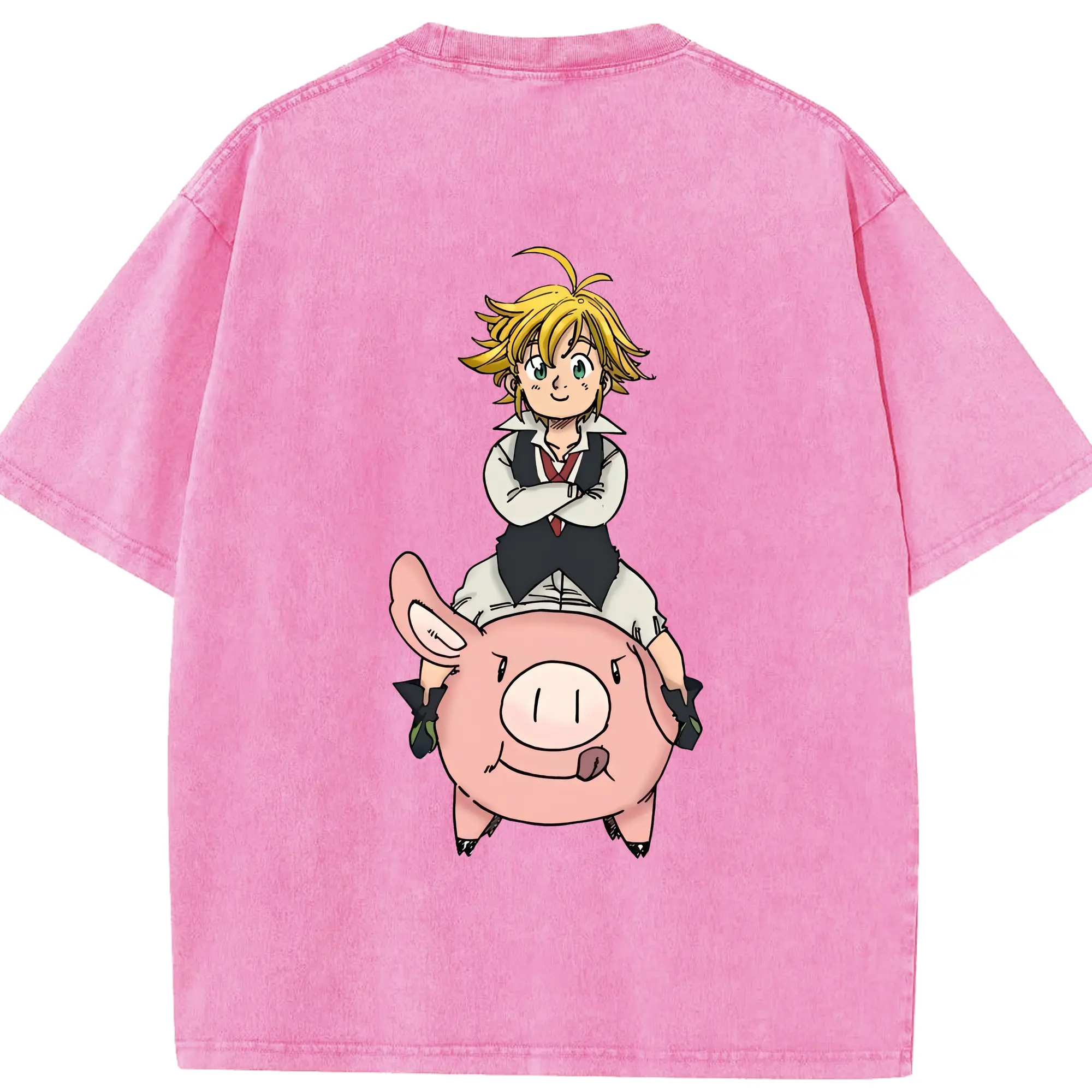 七つの大罪 グッズ メリオダス - 綿100% ヴィンテージ風 半袖Tシャツ ・ フロントプリント ・ 柔らか肌触り ・ 通気性 快適 ・ スポーツ カジュアル 外出用
