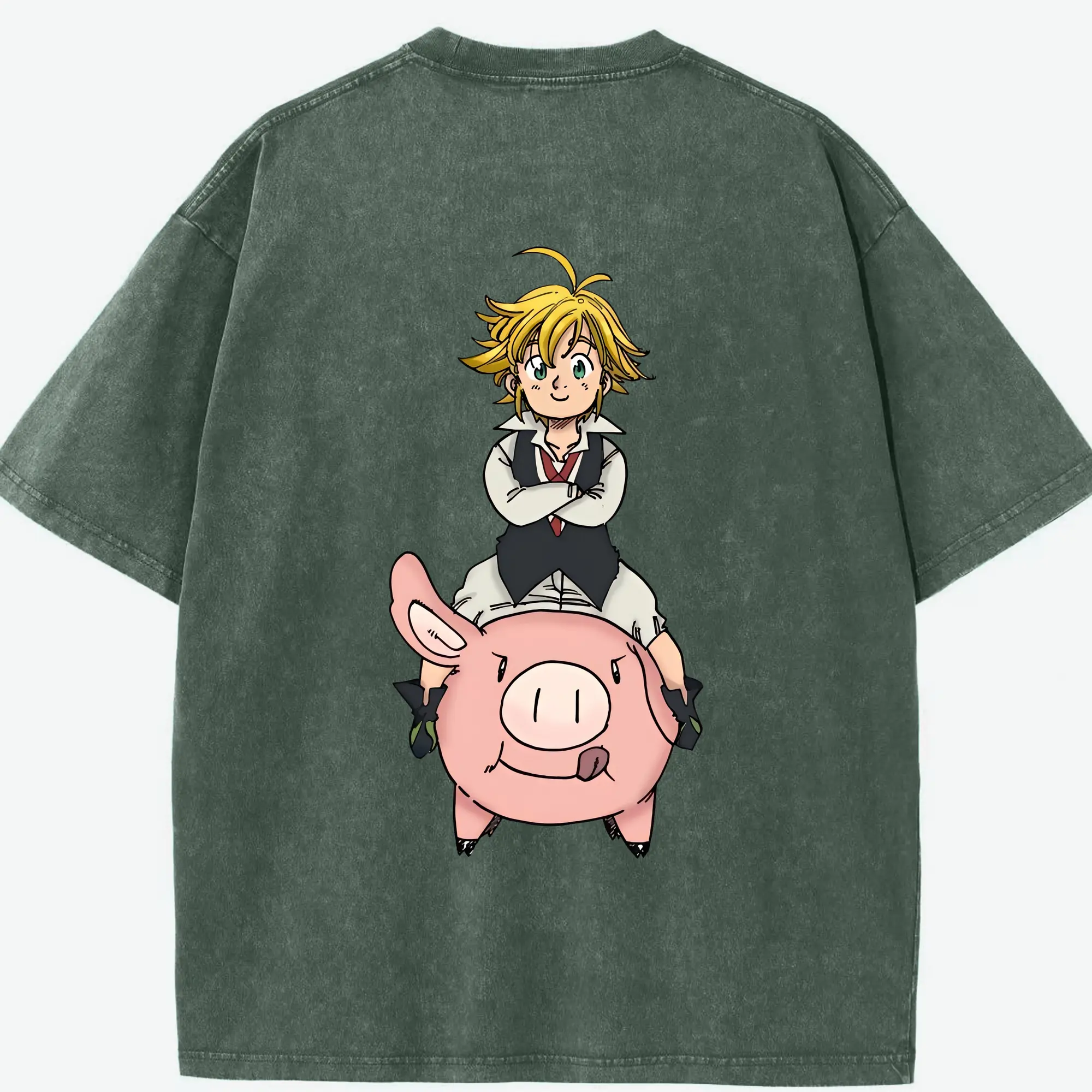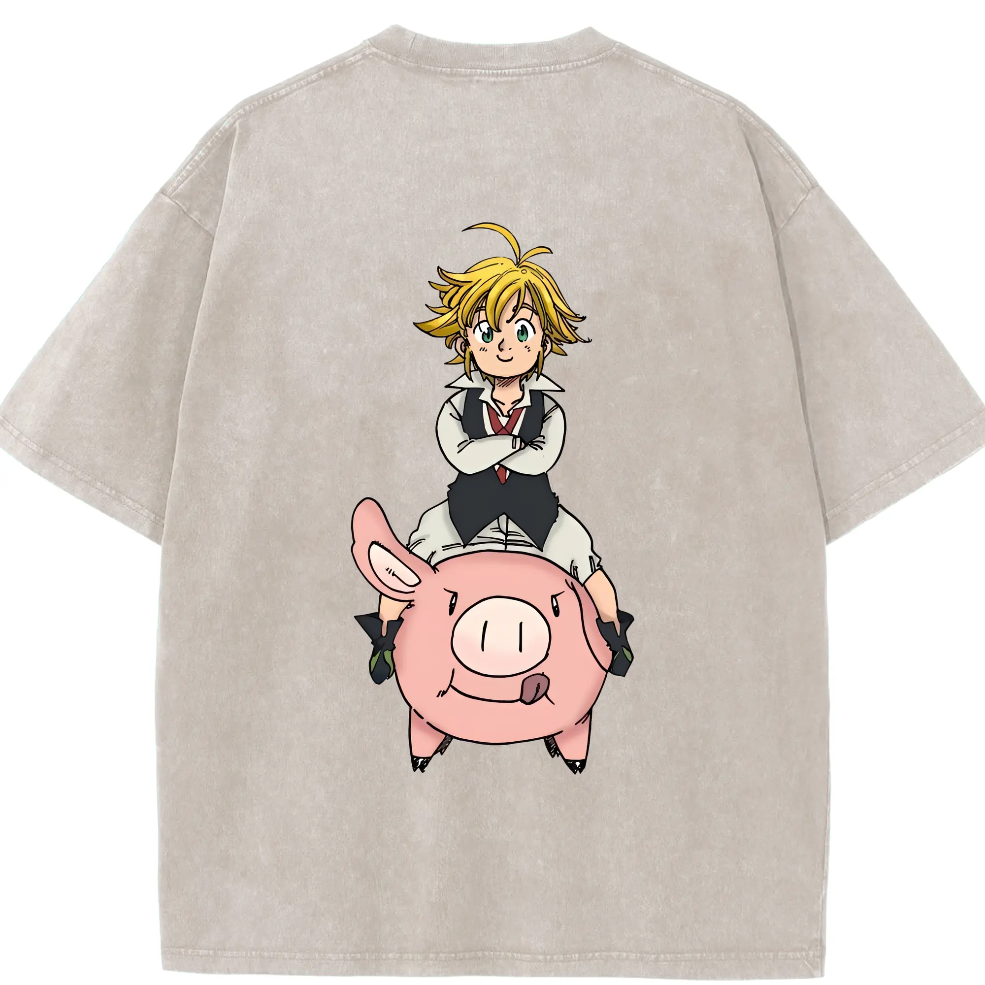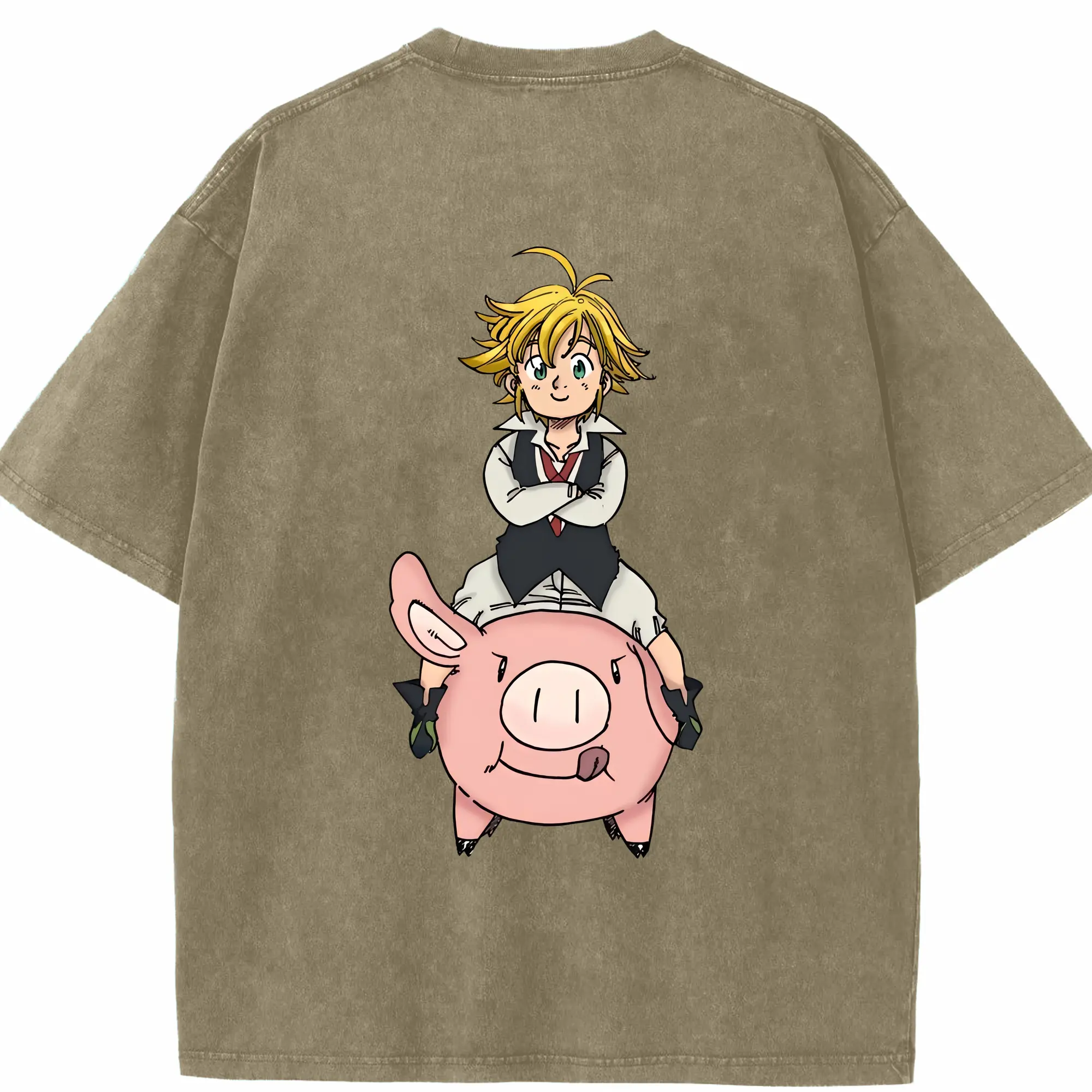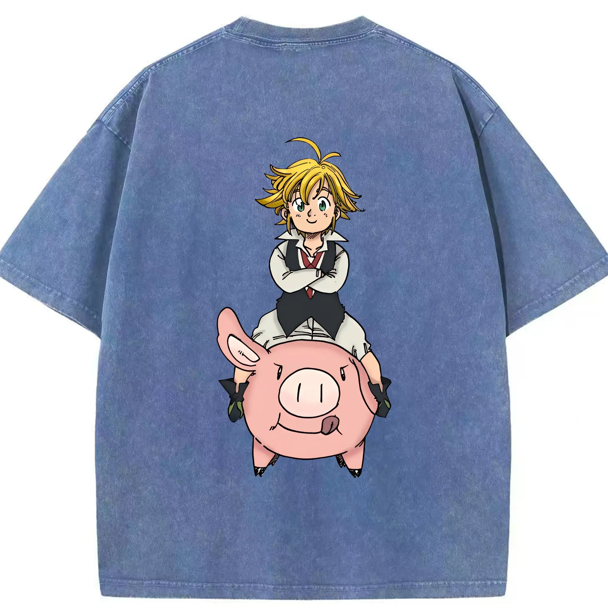 七つの大罪 グッズ メリオダス - 綿100% ヴィンテージ風 半袖Tシャツ ・ フロントプリント ・ 柔らか肌触り ・ 通気性 快適 ・ スポーツ カジュアル 外出用