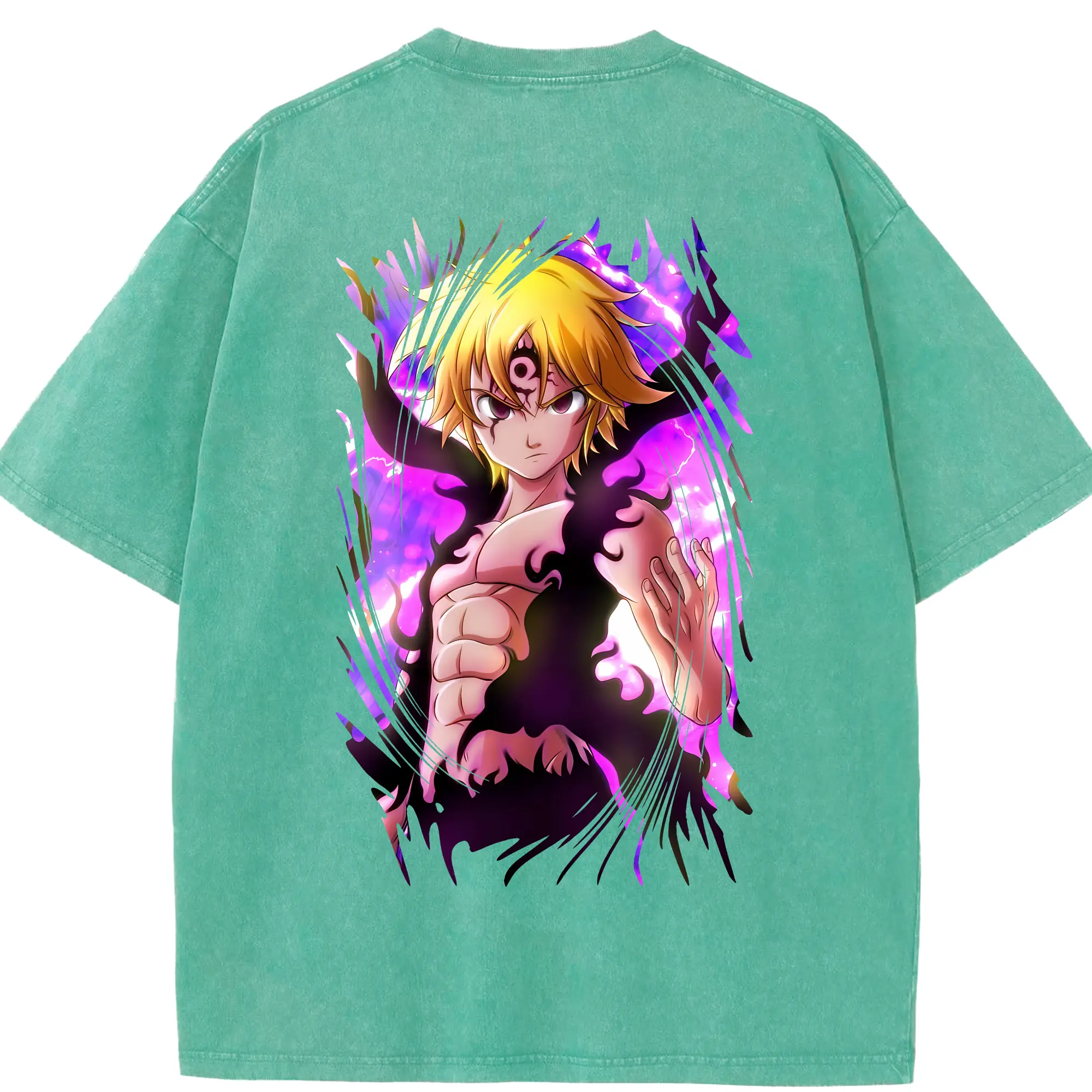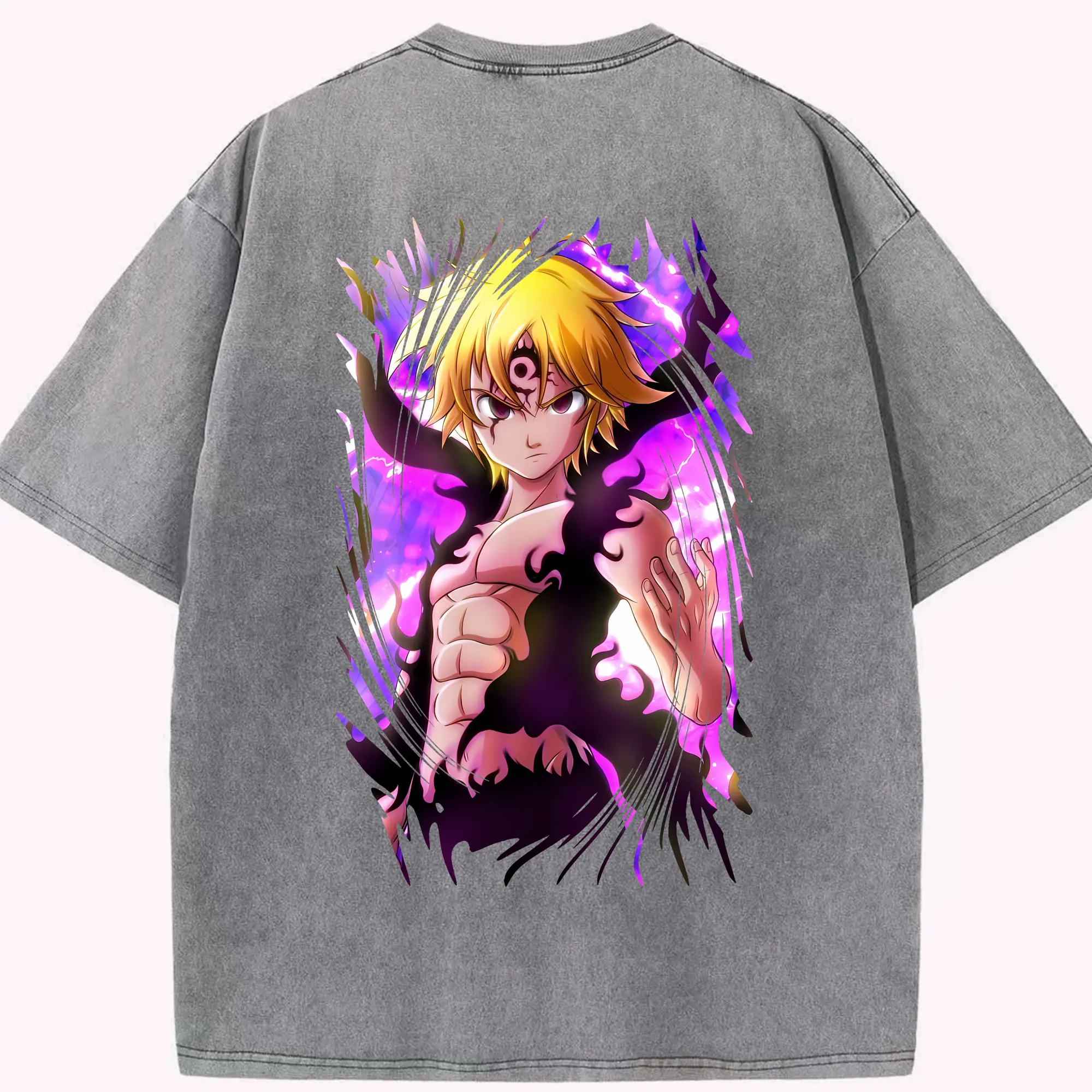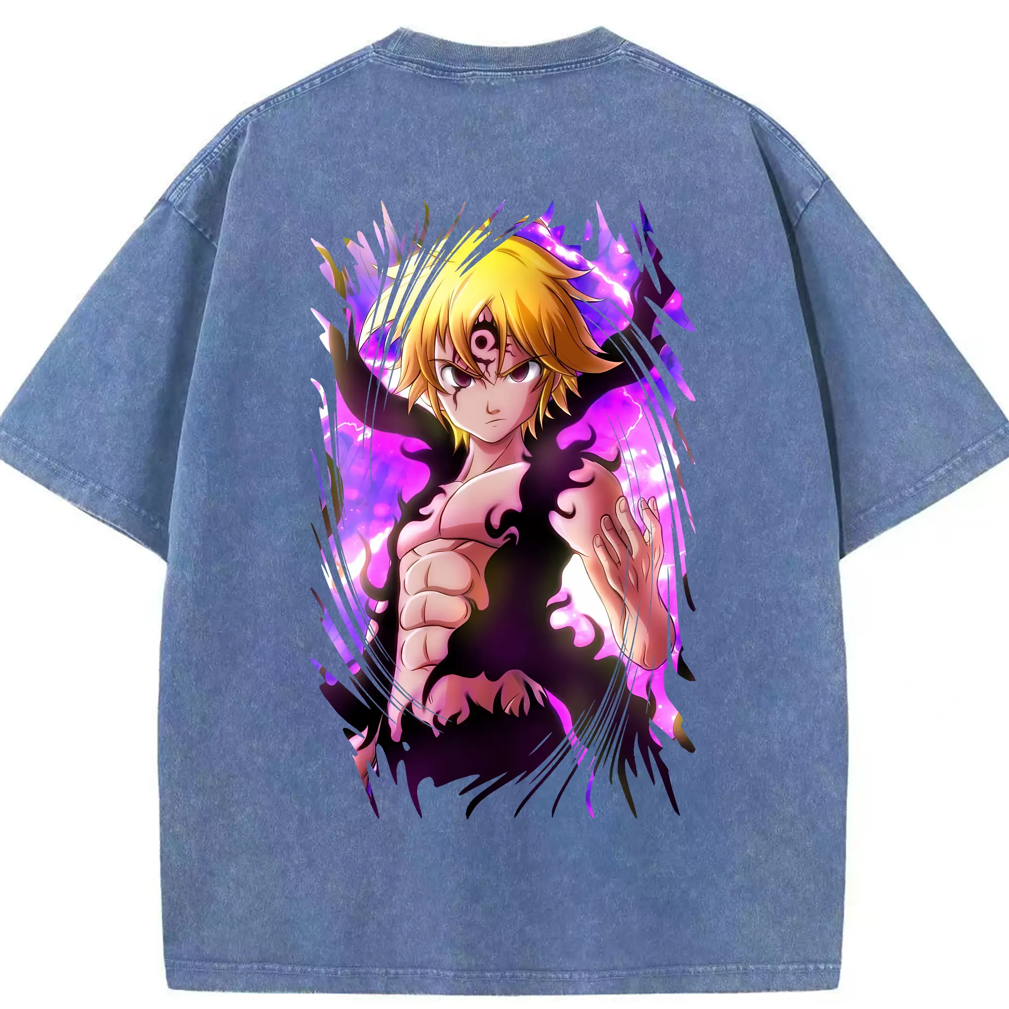 七つの大罪 グッズ メリオダス - 綿100% ヴィンテージ風 半袖Tシャツ ・ フロントプリント ・ 柔らか肌触り ・ 通気性 快適 ・ スポーツ カジュアル 外出用