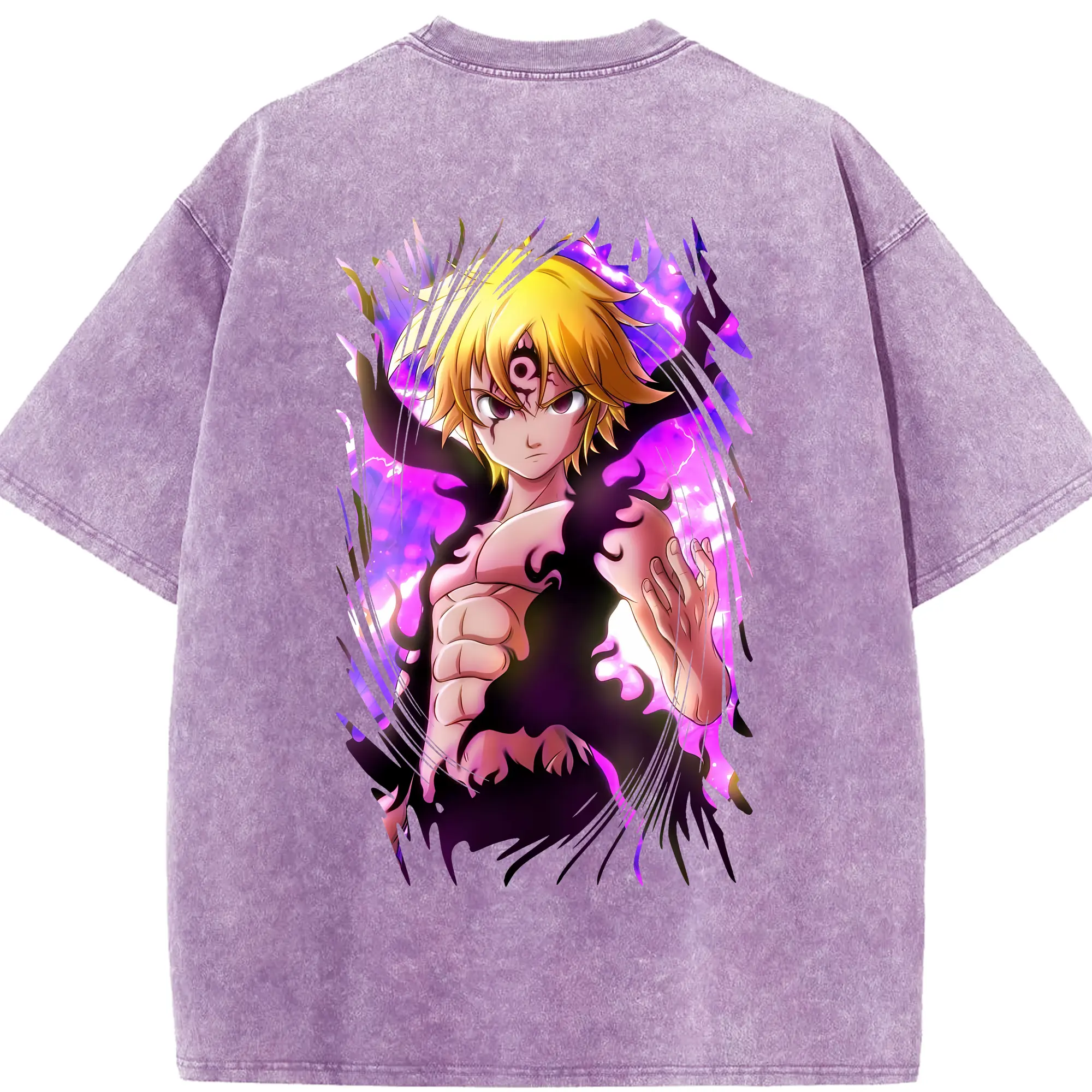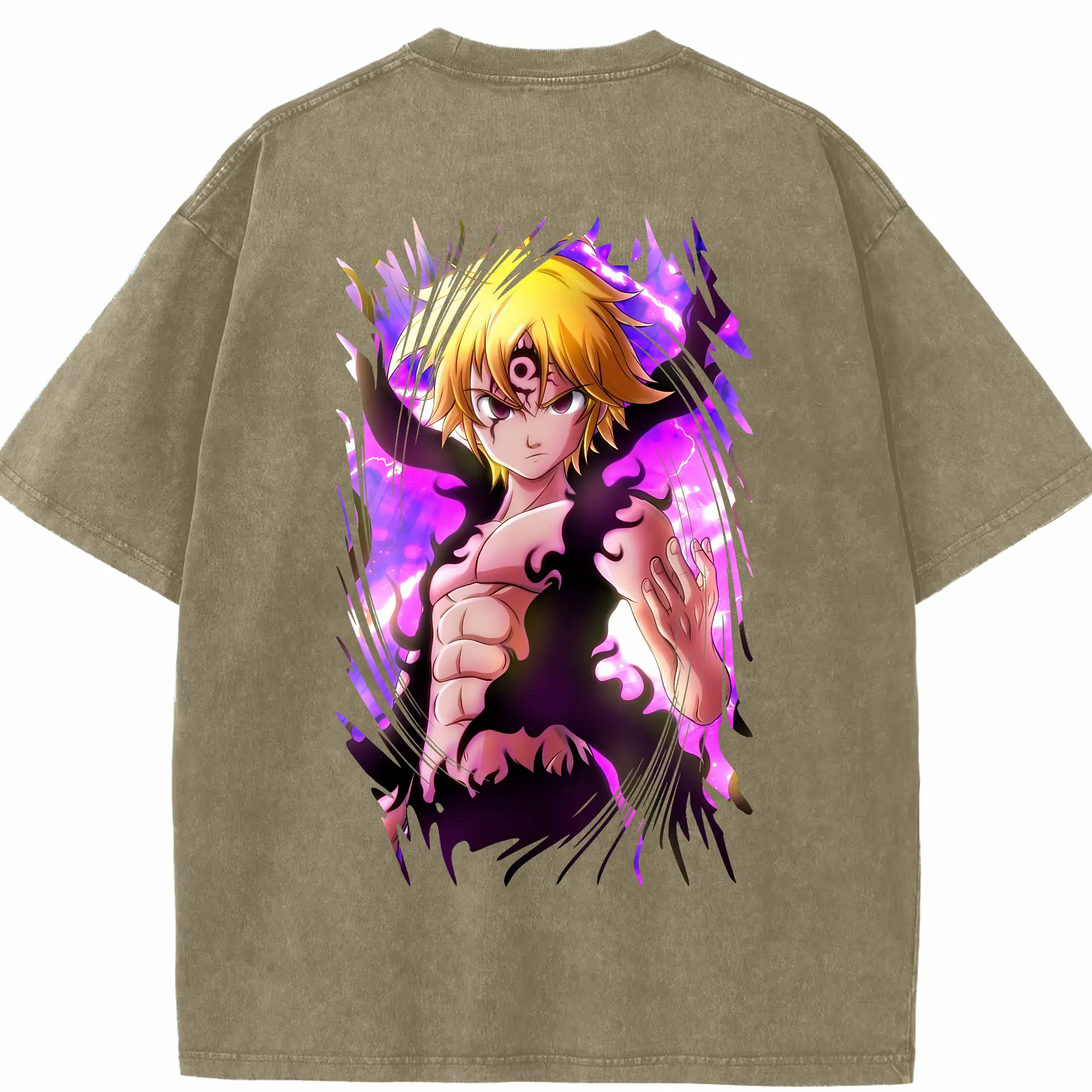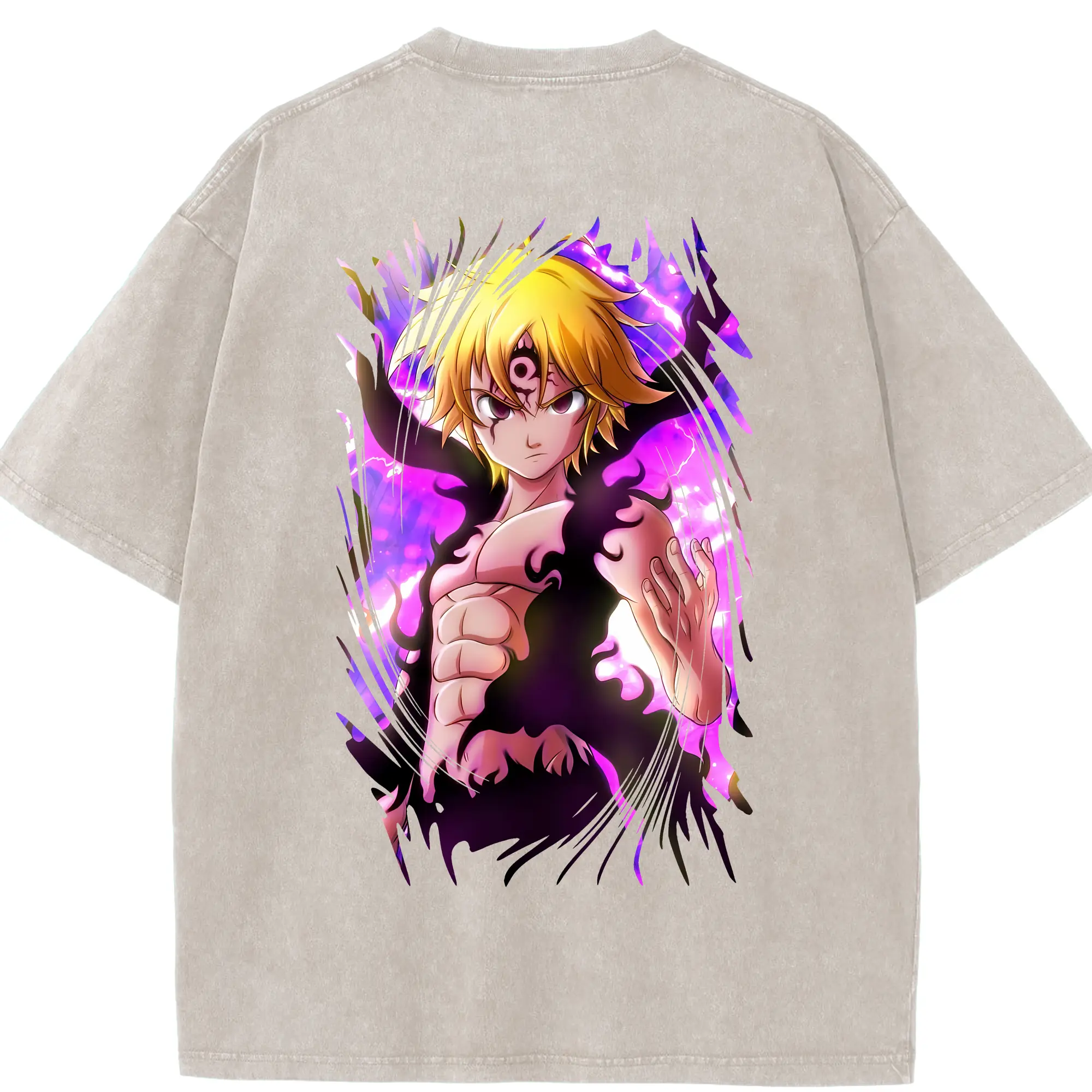 七つの大罪 グッズ メリオダス - 綿100% ヴィンテージ風 半袖Tシャツ ・ フロントプリント ・ 柔らか肌触り ・ 通気性 快適 ・ スポーツ カジュアル 外出用