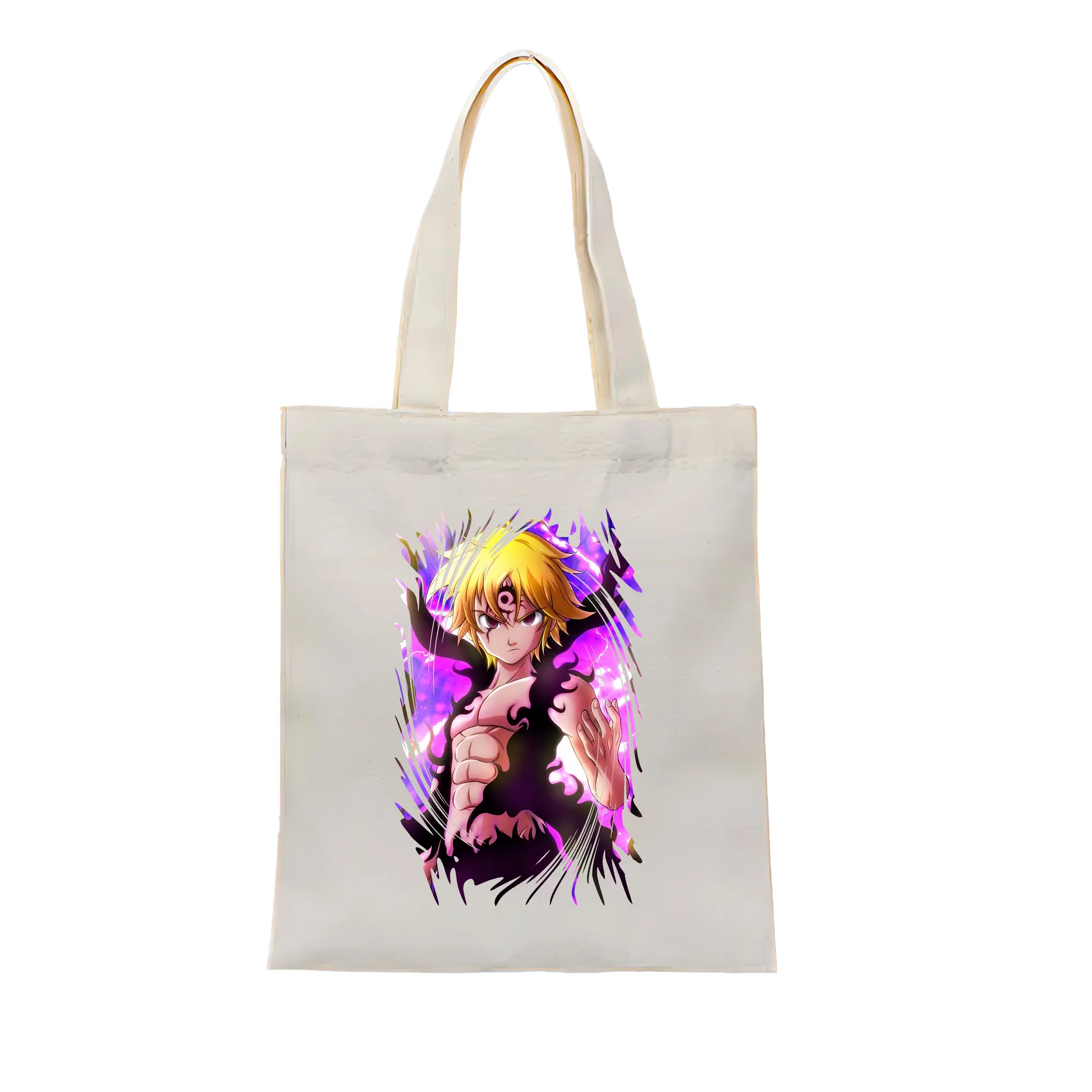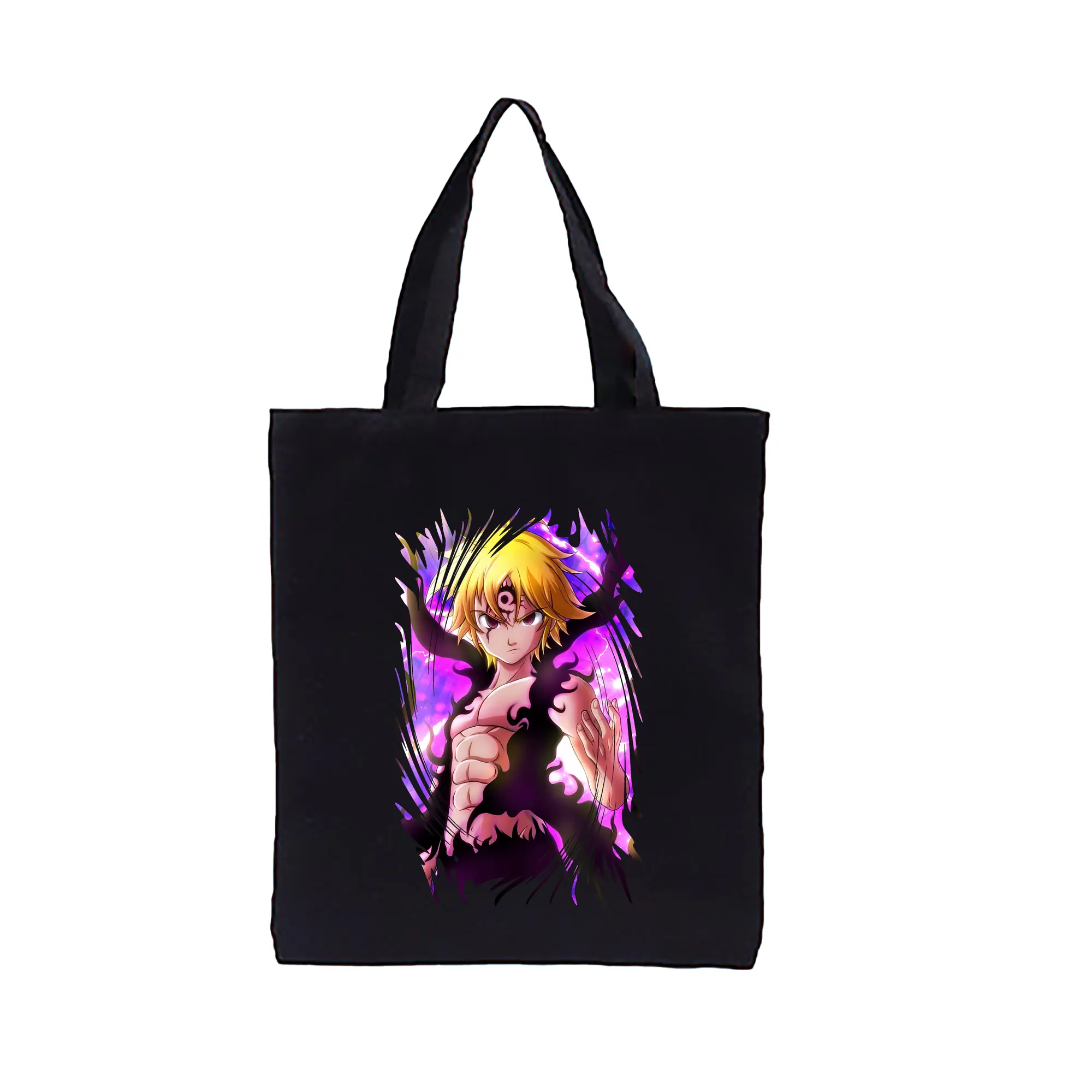 七つの大罪 グッズ メリオダス - 縦型キャンバス手提げバッグ(トートバッグ) ・ キャンバス素材 ・ ショッピング用 ・ 軽量 丈夫 お手入れ簡単