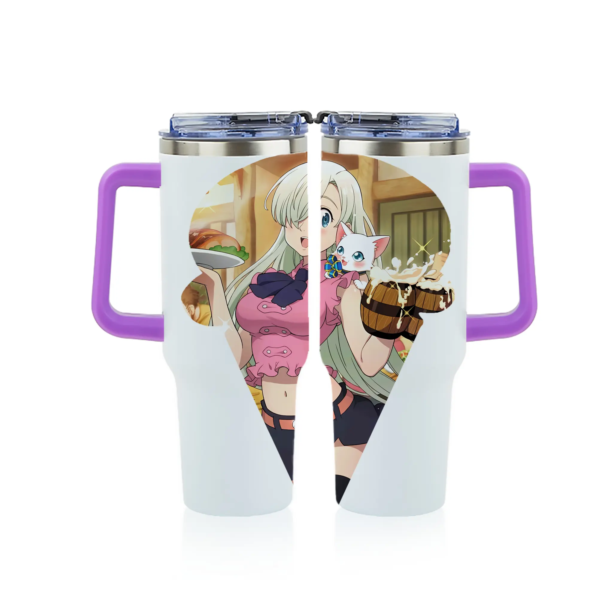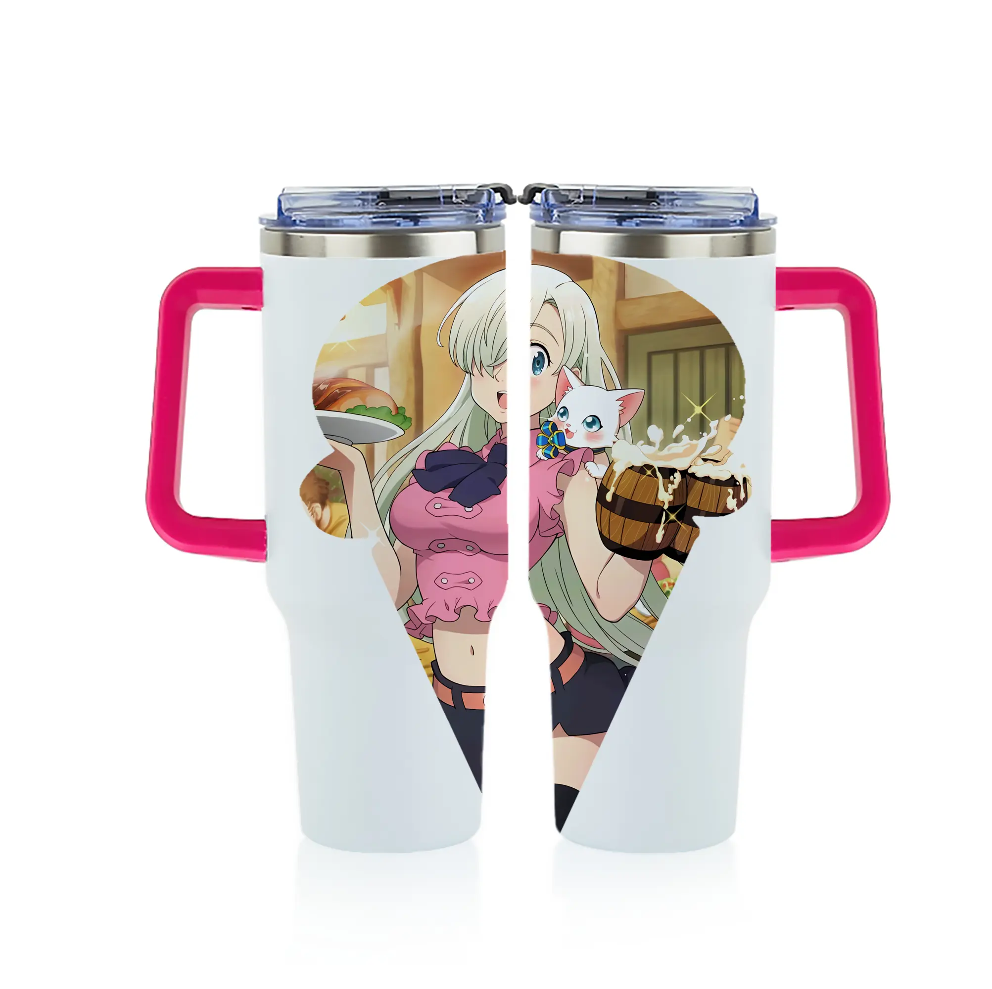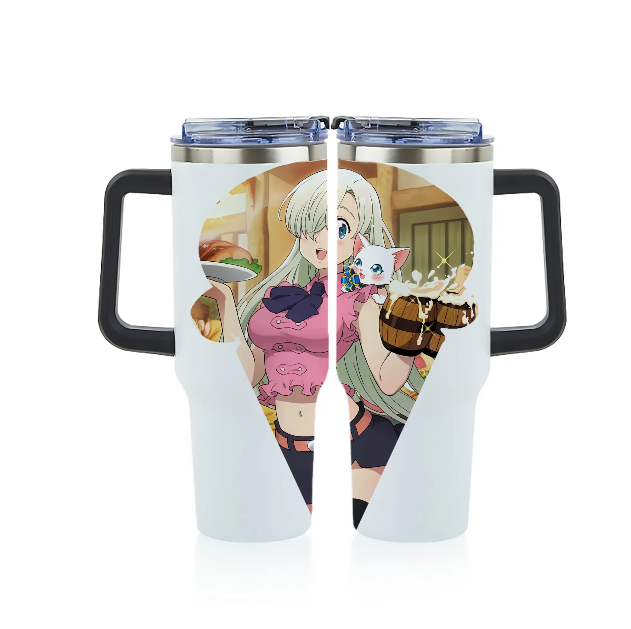 七つの大罪 グッズ エリザベス - 1200mL フルプリント車用タンブラー ・ 304ステンレス 内側 ・ 201ステンレス 外側 ・ 保温 保冷 ・ 通勤 ドライブ アウトドア用