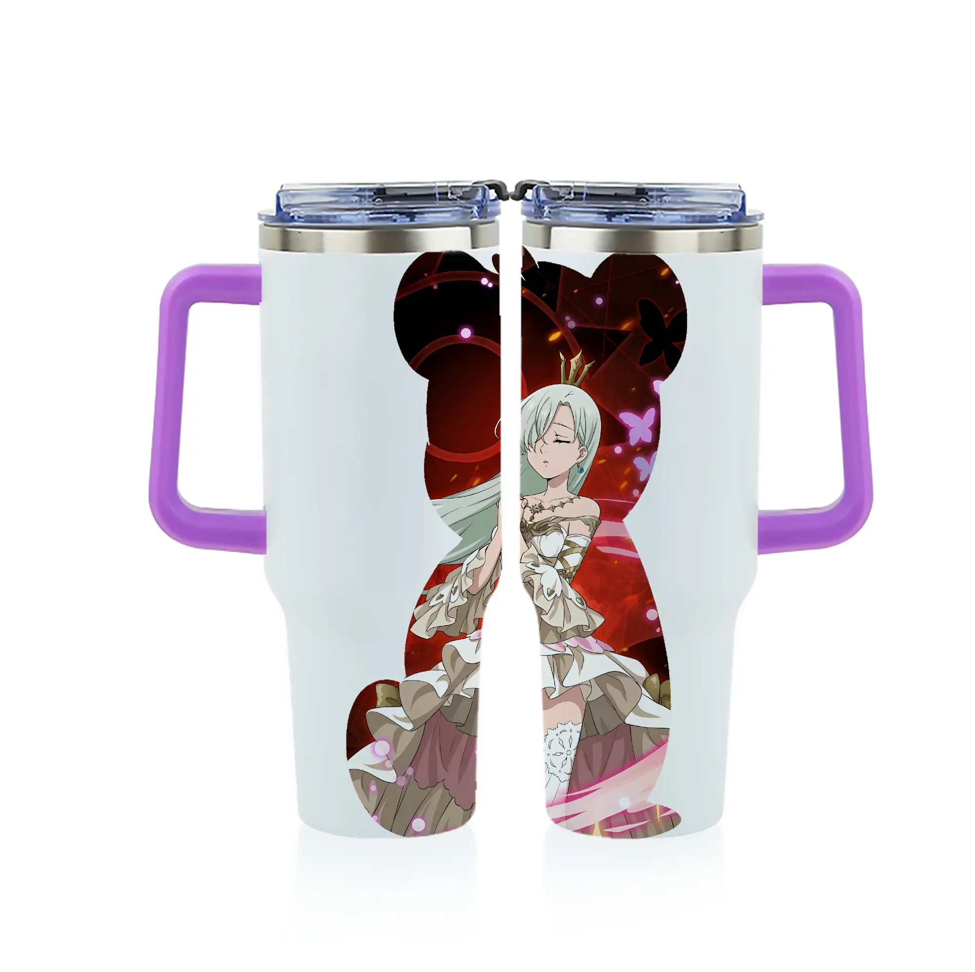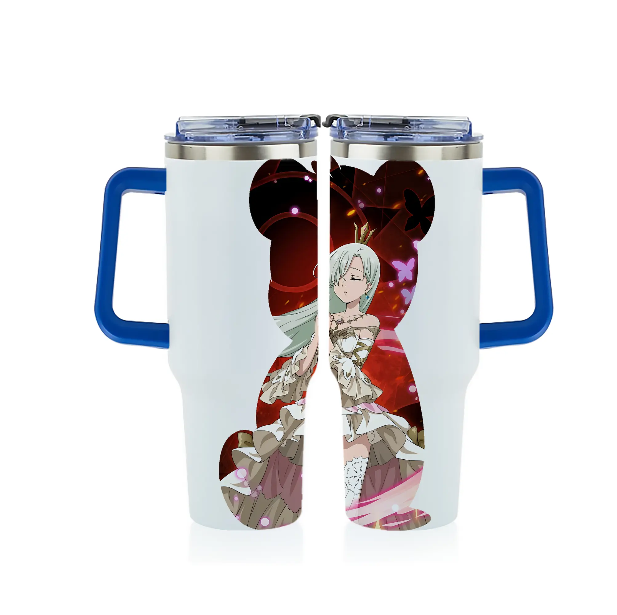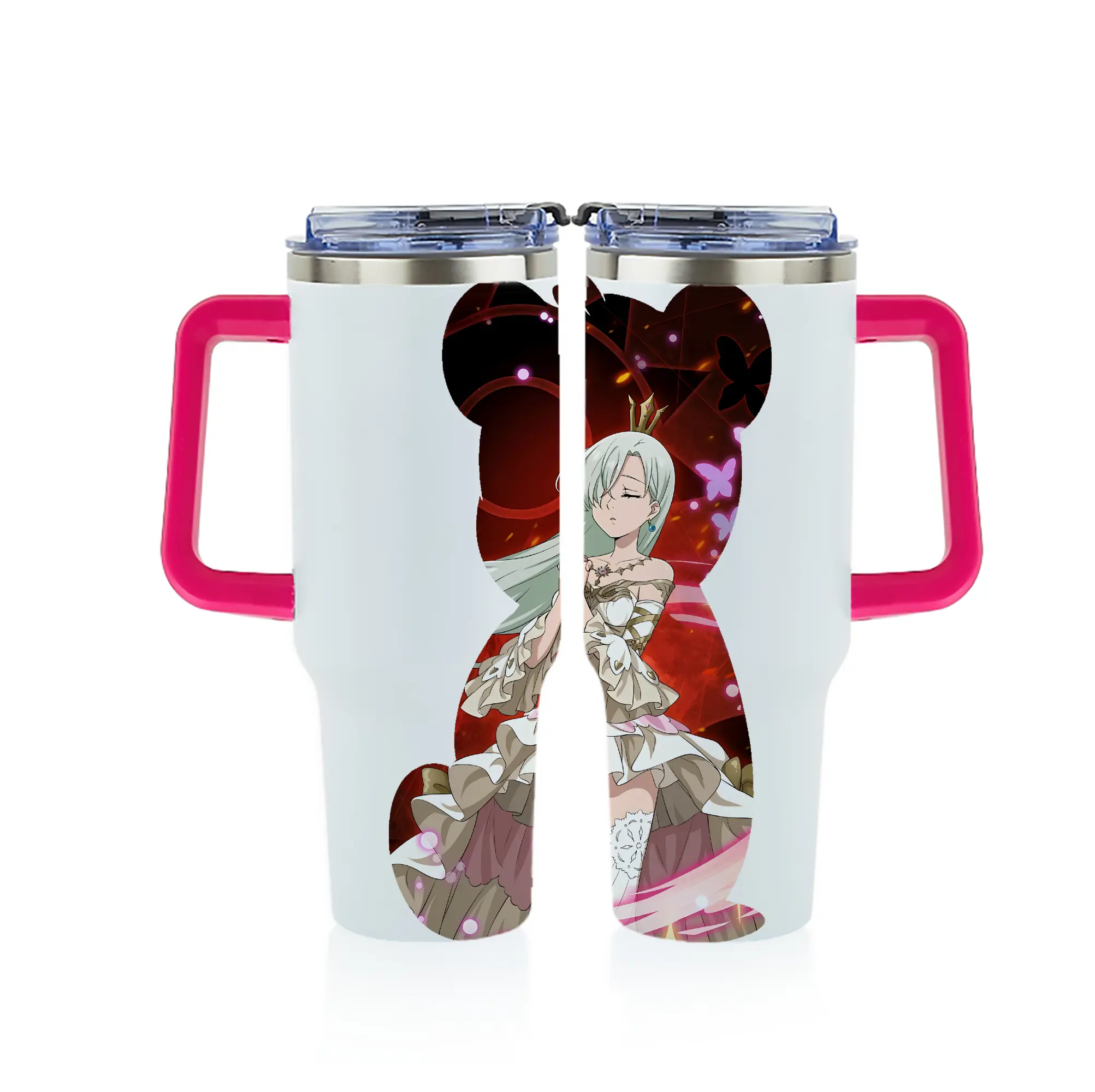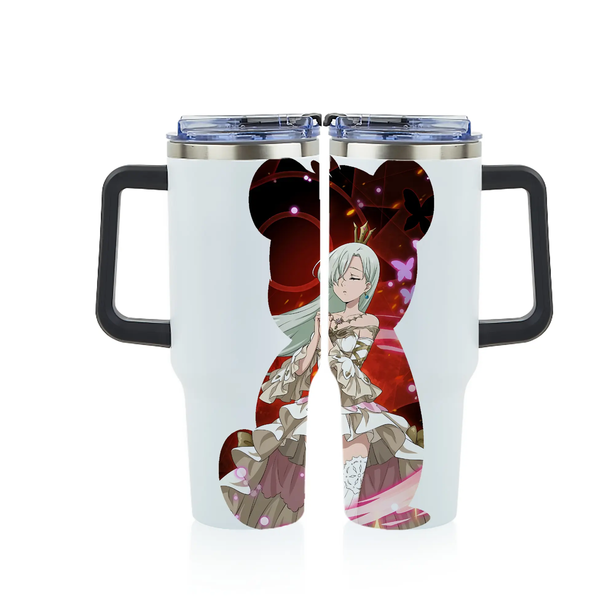 七つの大罪 グッズ エリザベス - 1200mL フルプリント車用タンブラー ・ 304ステンレス 内側 ・ 201ステンレス 外側 ・ 保温 保冷 ・ 通勤 ドライブ アウトドア用