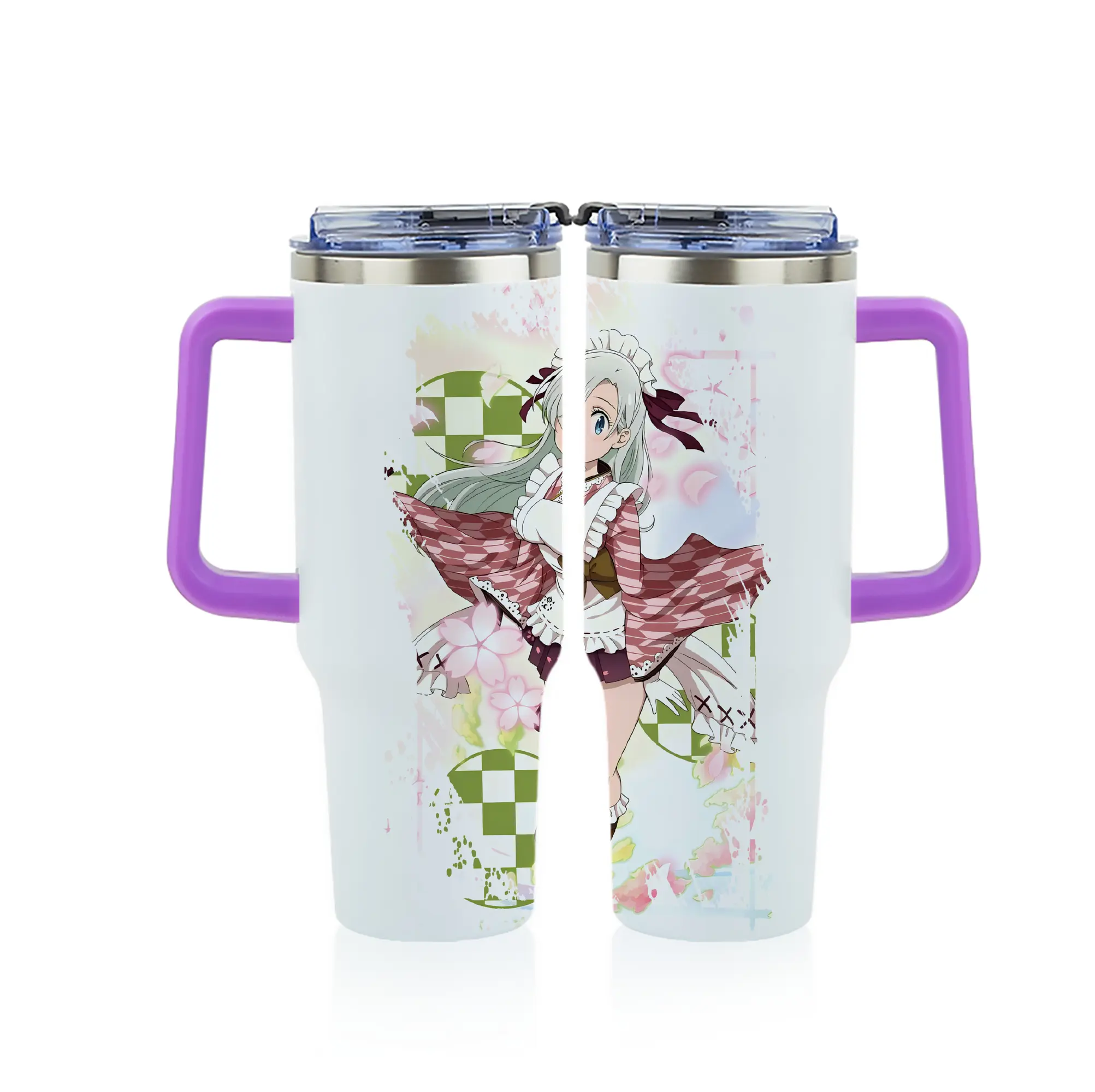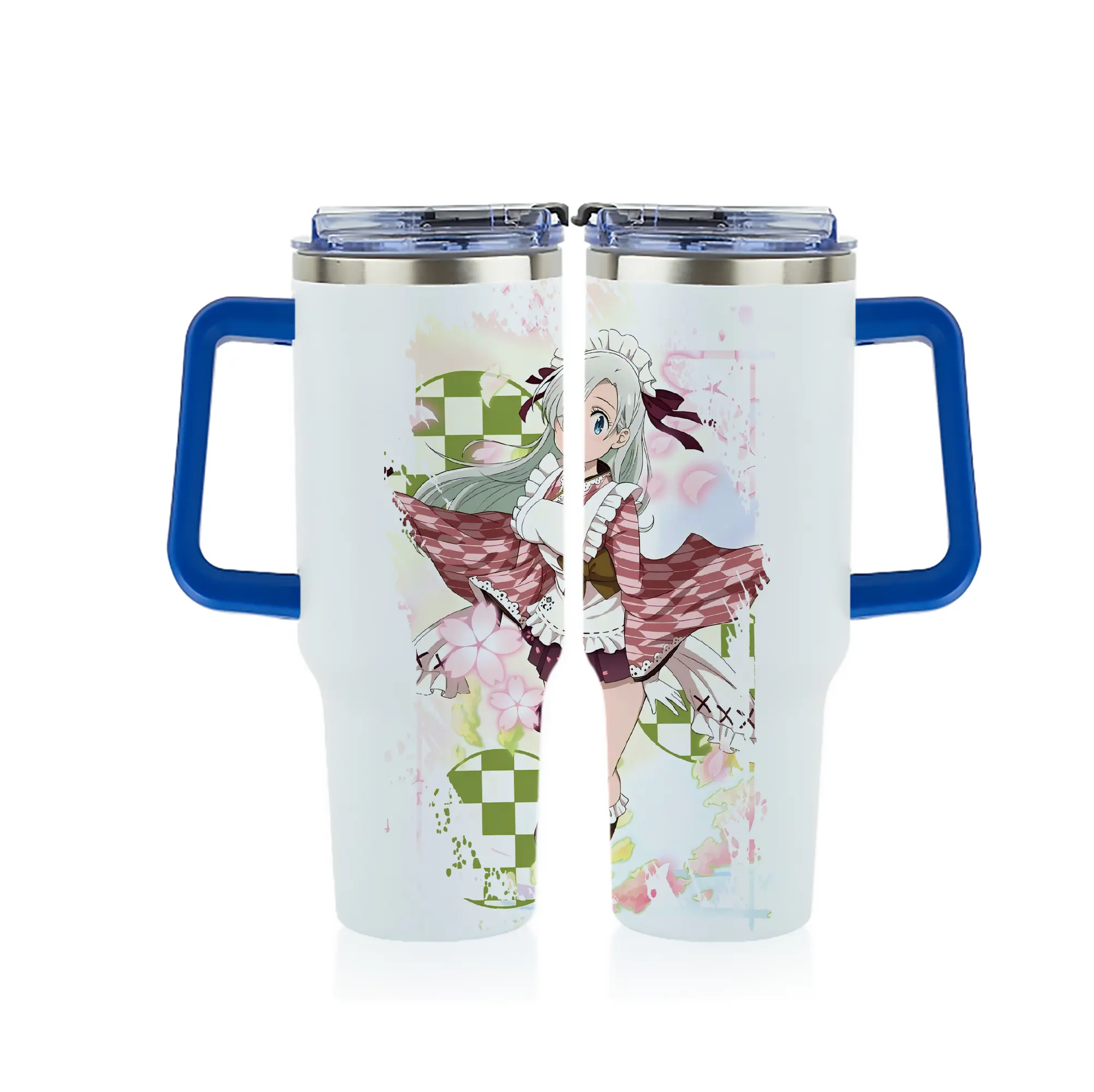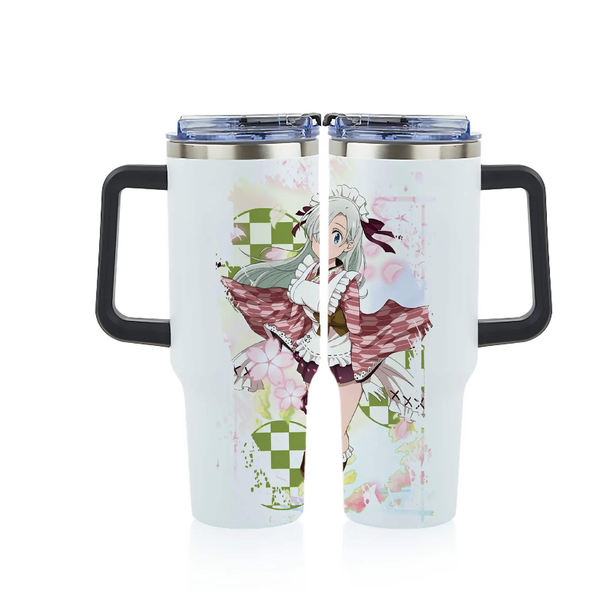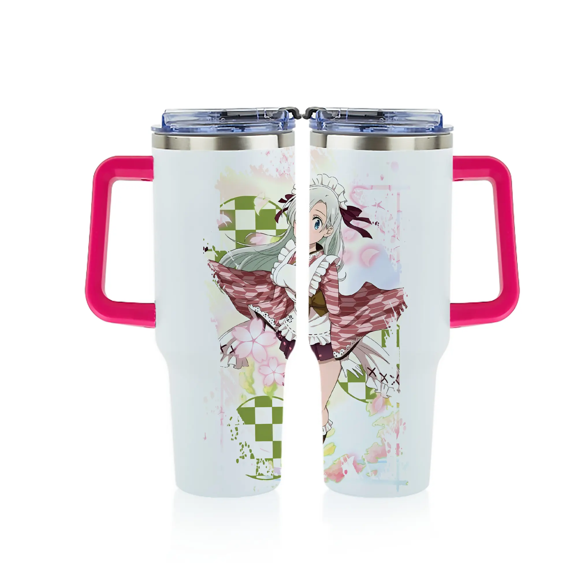七つの大罪 グッズ エリザベス - 1200mL フルプリント車用タンブラー ・ 304ステンレス 内側 ・ 201ステンレス 外側 ・ 保温 保冷 ・ 通勤 ドライブ アウトドア用