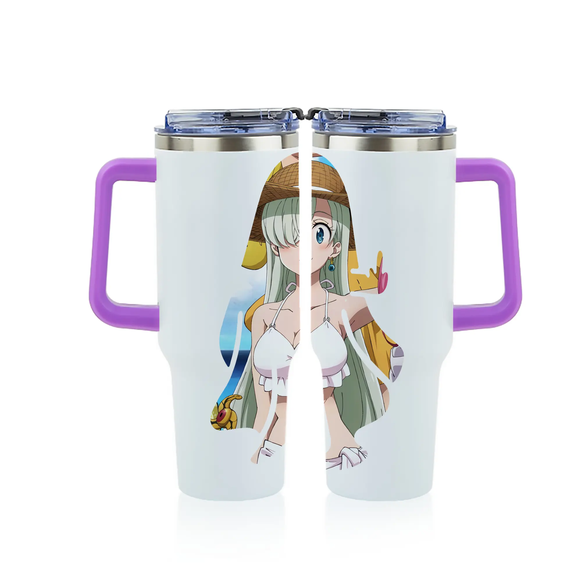 七つの大罪 グッズ エリザベス - 1200mL フルプリント車用タンブラー ・ 304ステンレス 内側 ・ 201ステンレス 外側 ・ 保温 保冷 ・ 通勤 ドライブ アウトドア用