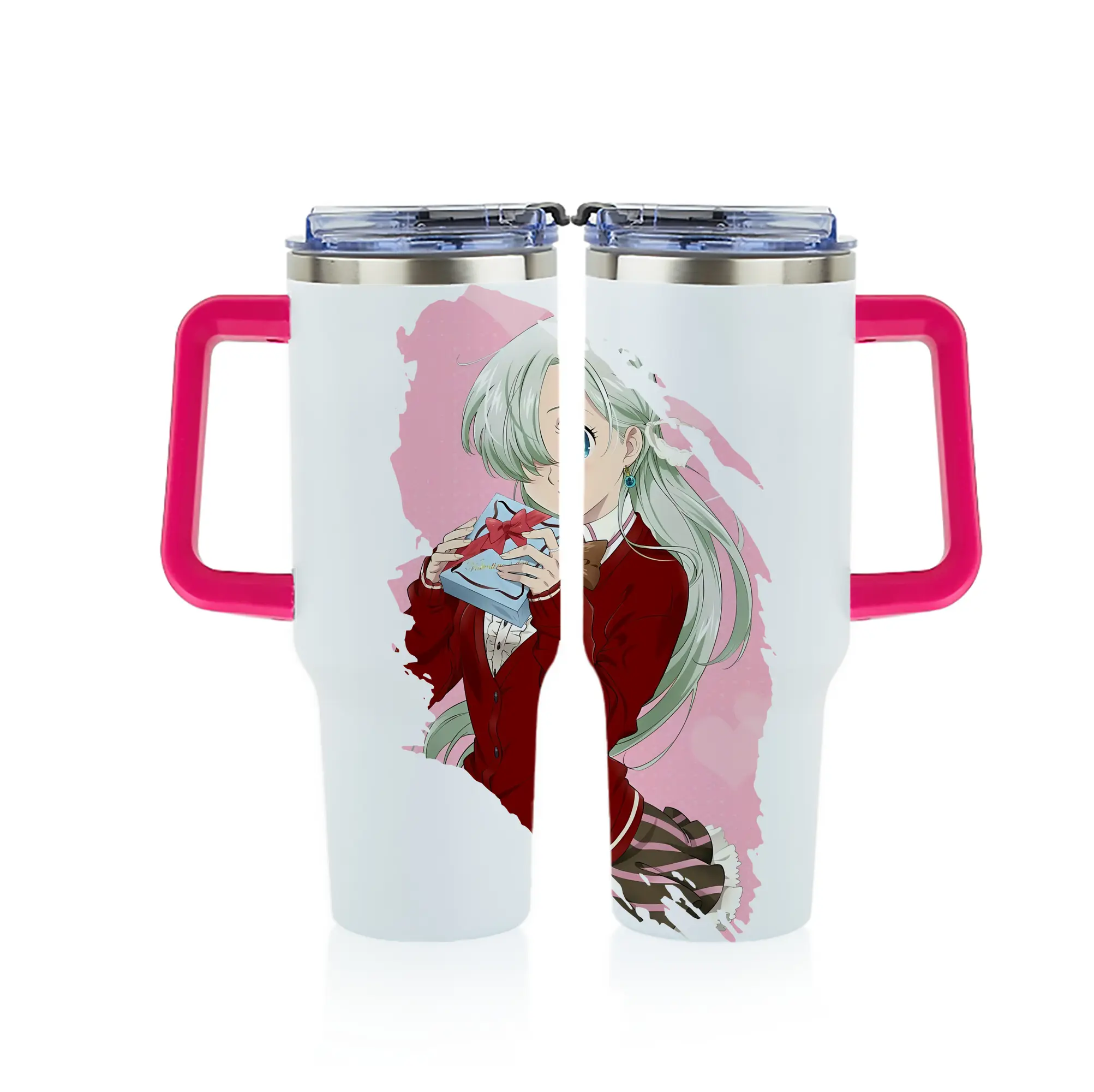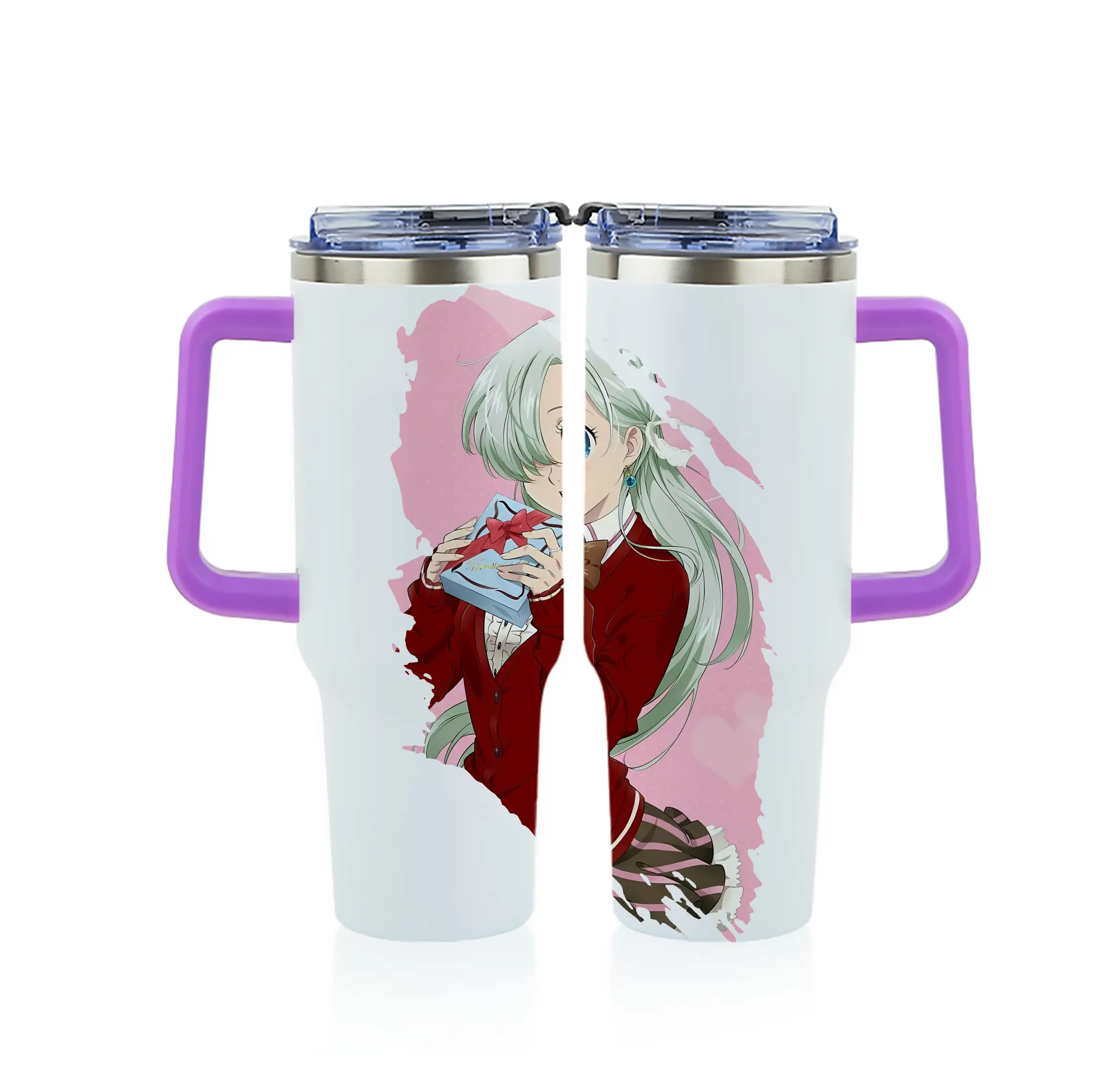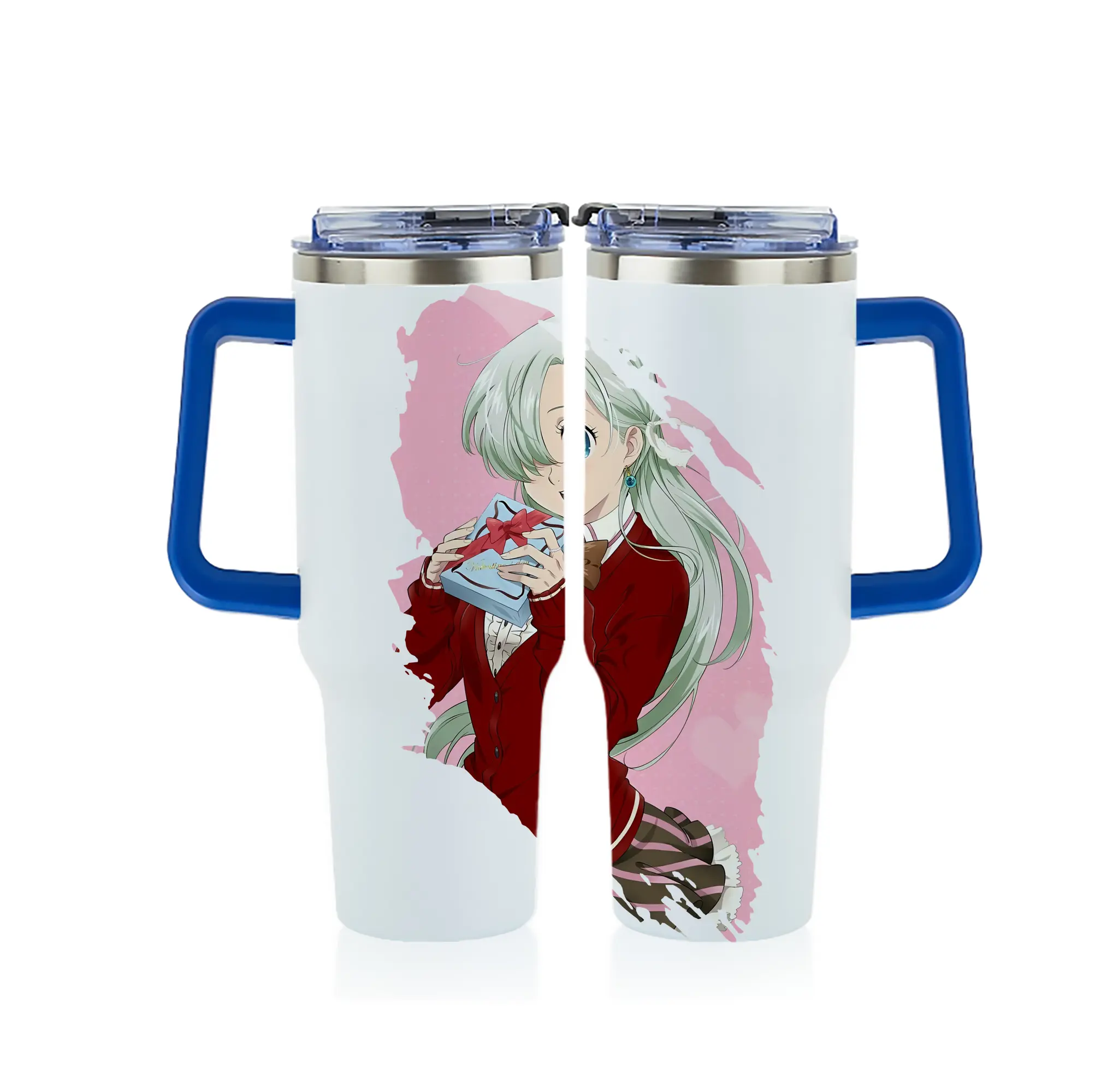 七つの大罪 グッズ エリザベス - 1200mL フルプリント車用タンブラー ・ 304ステンレス 内側 ・ 201ステンレス 外側 ・ 保温 保冷 ・ 通勤 ドライブ アウトドア用