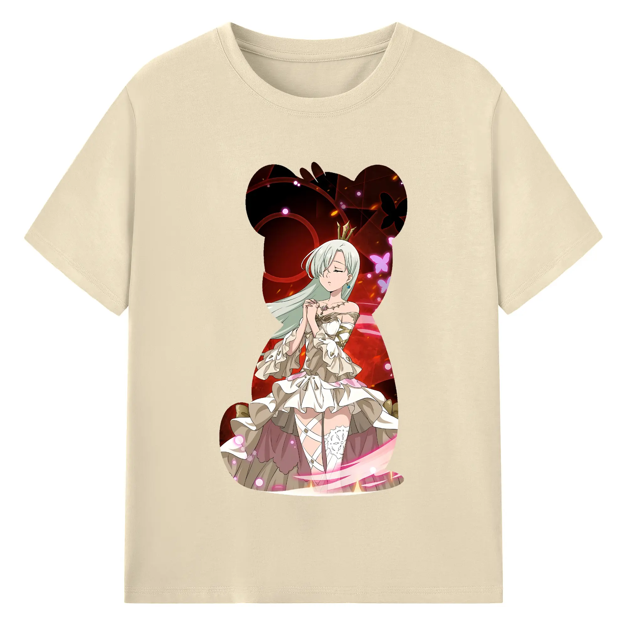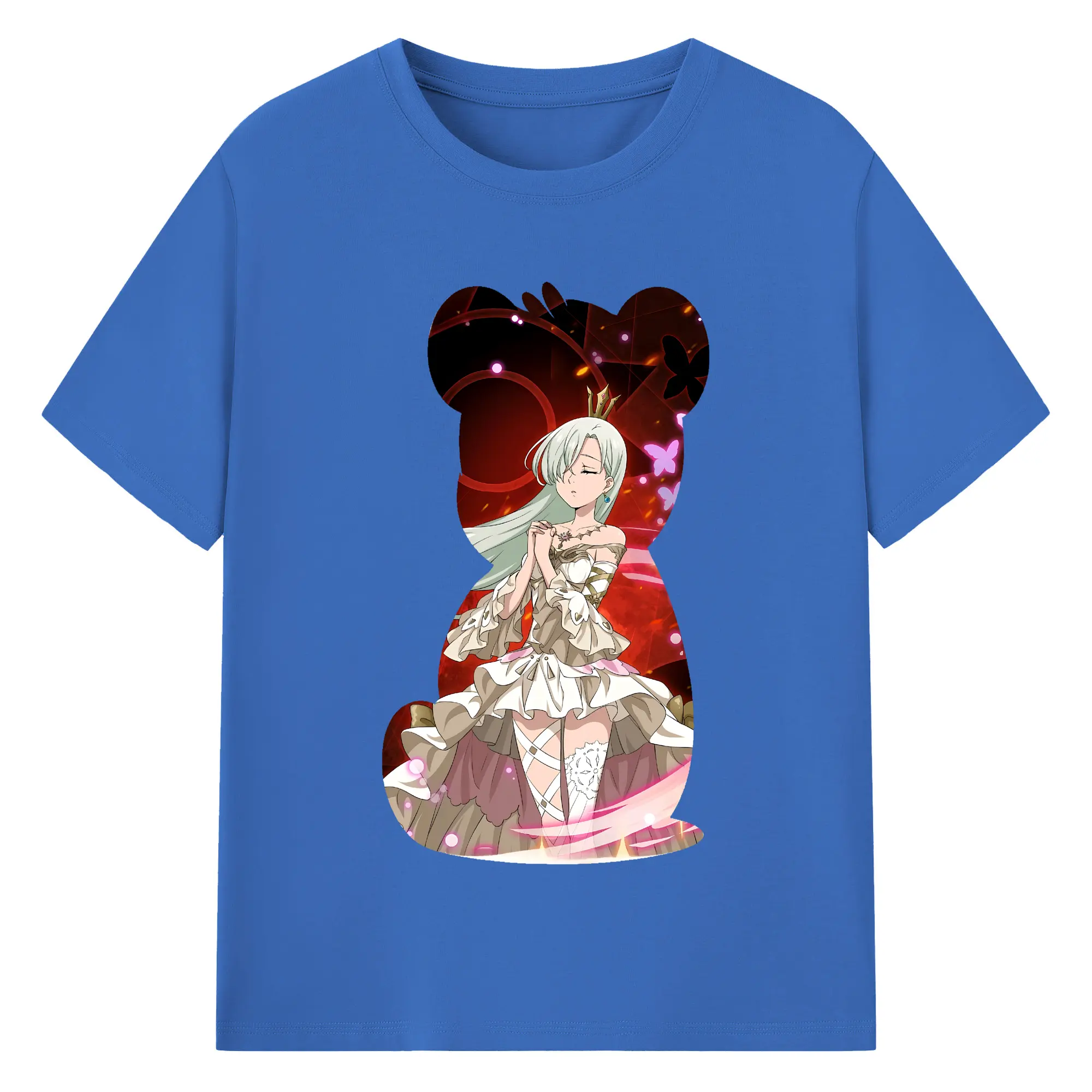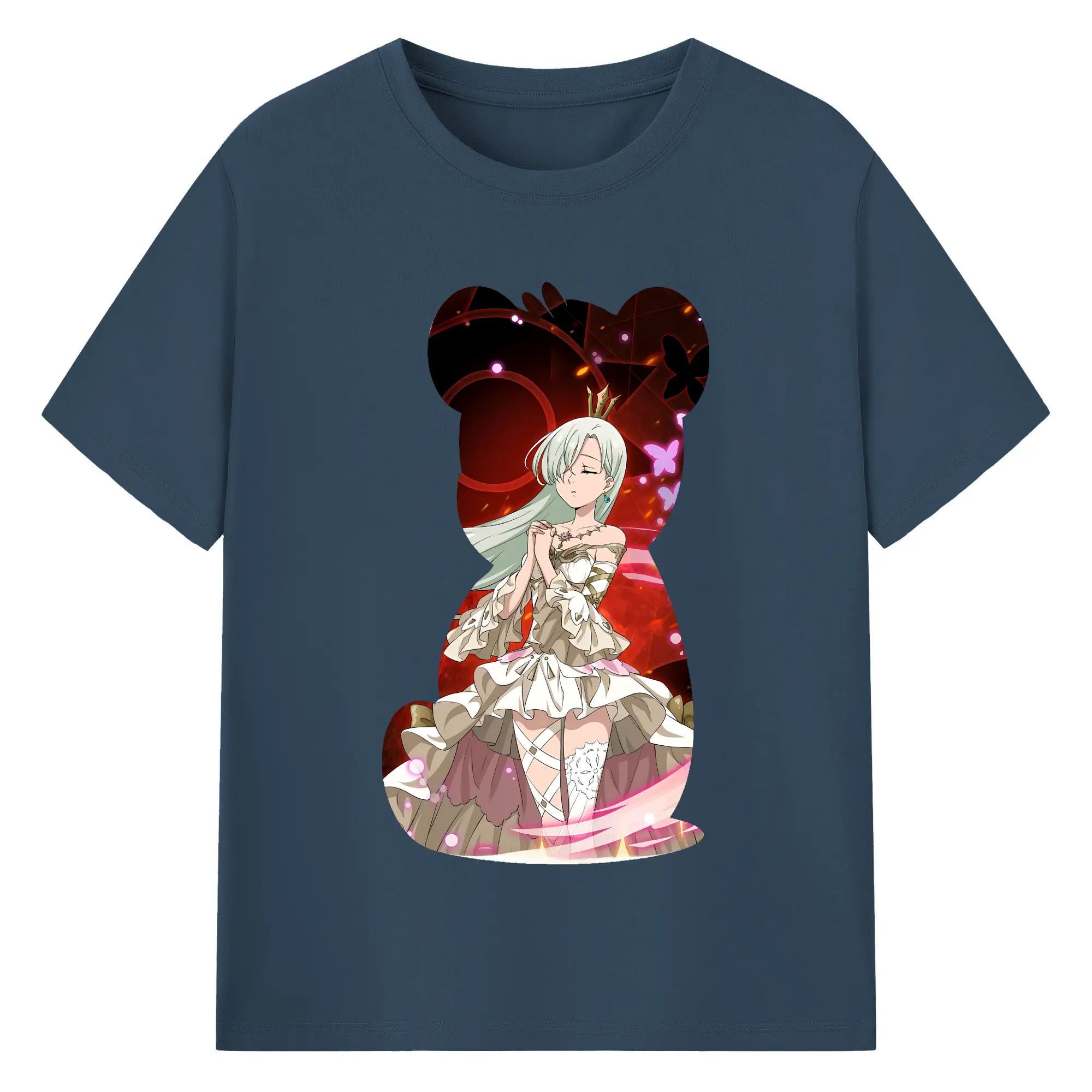 七つの大罪 グッズ エリザベス - 綿100% 半袖Tシャツ ・ バックプリント ・ 快適 通気性 ・ 日常使い 散歩 スポーツ用
