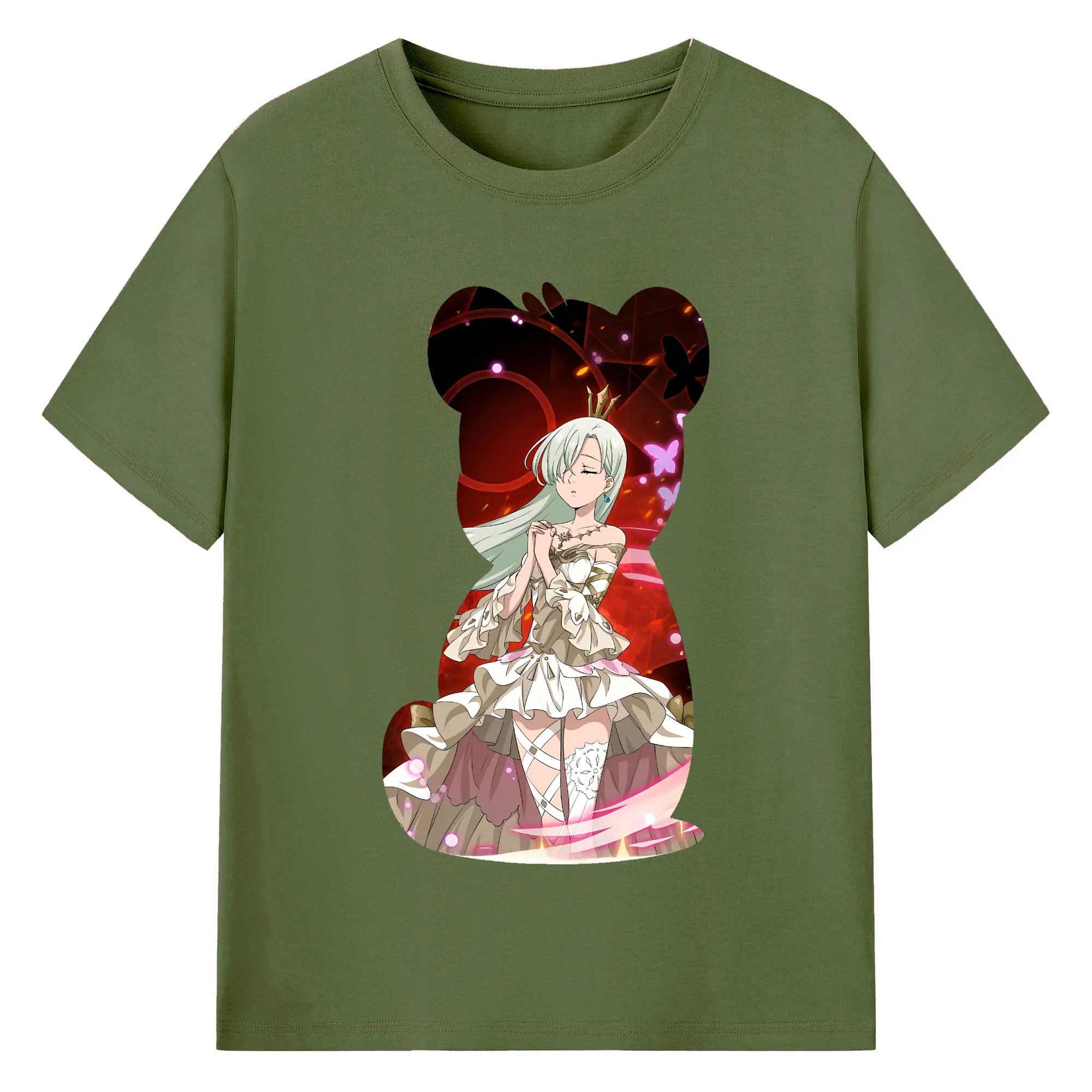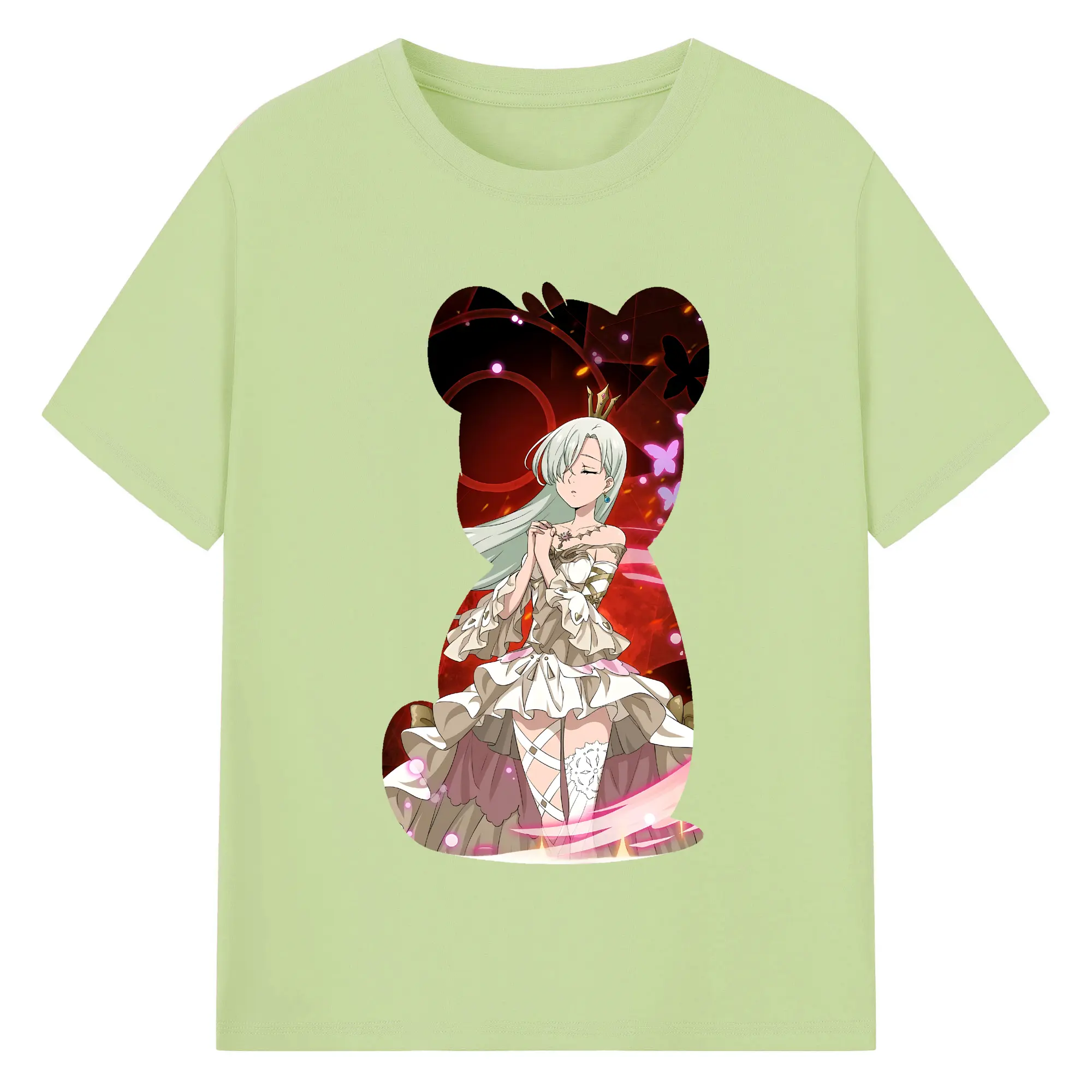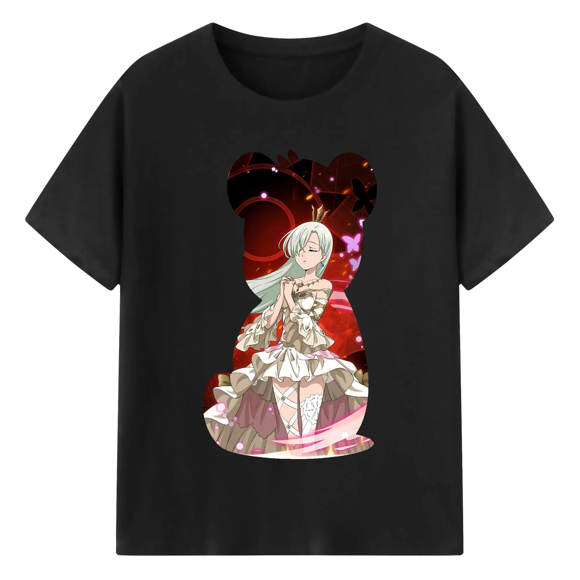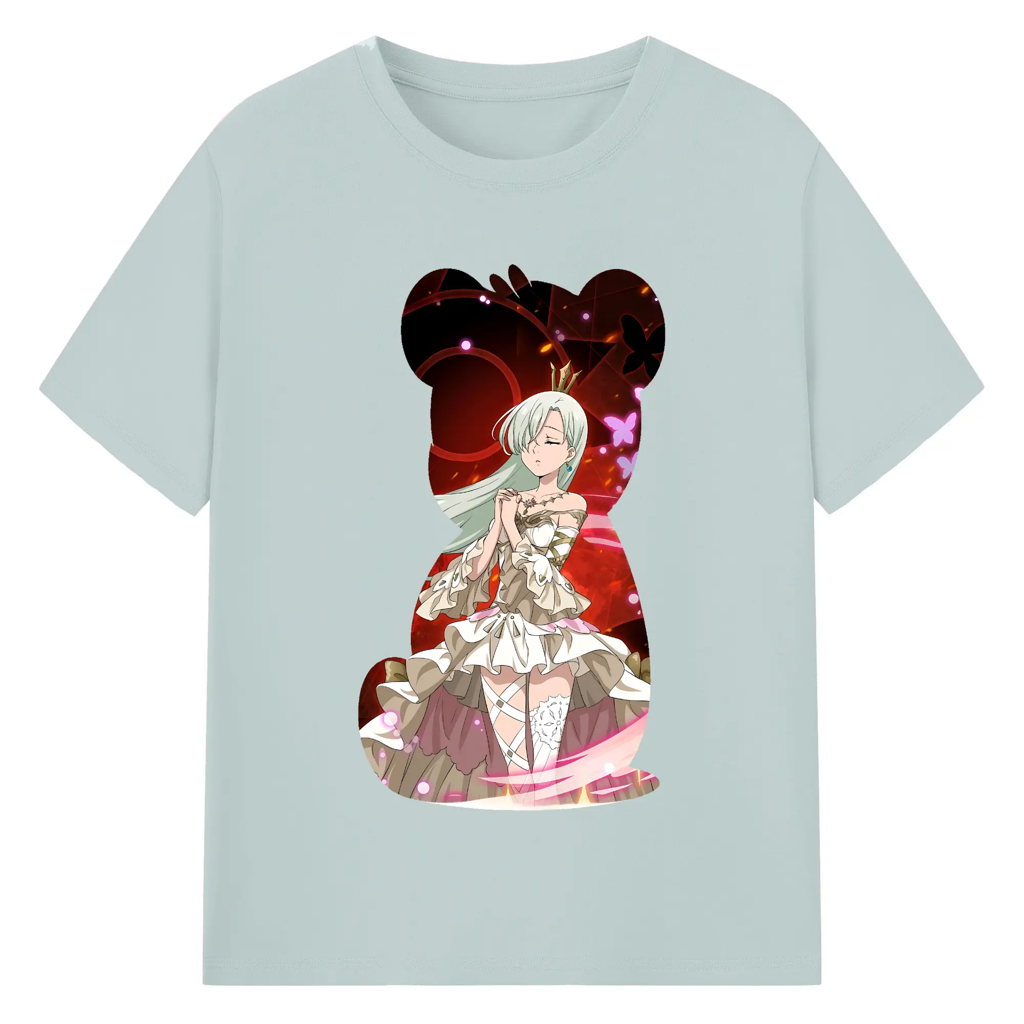 七つの大罪 グッズ エリザベス - 綿100% 半袖Tシャツ ・ バックプリント ・ 快適 通気性 ・ 日常使い 散歩 スポーツ用