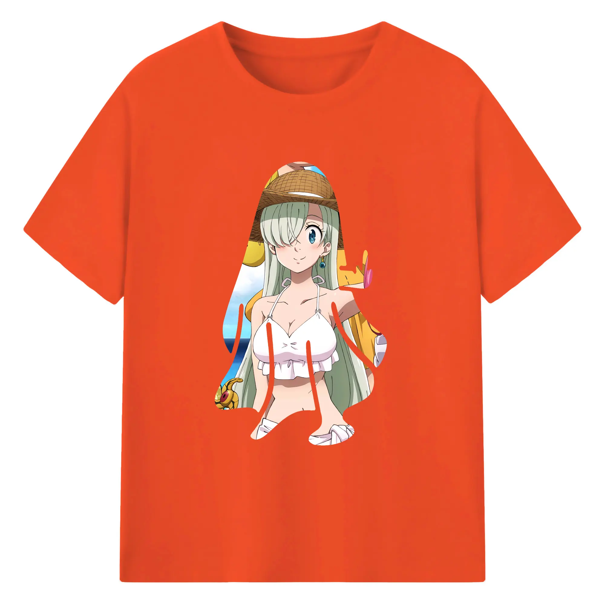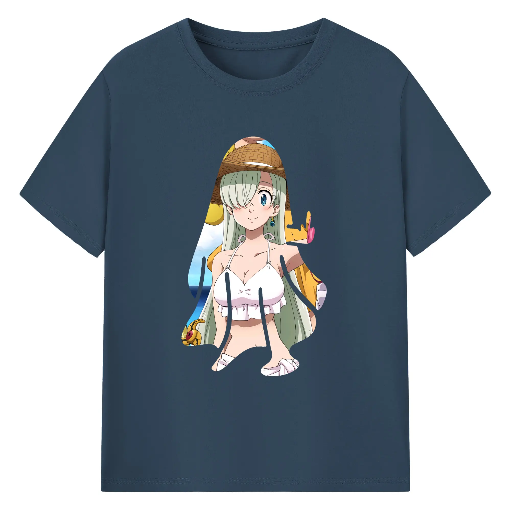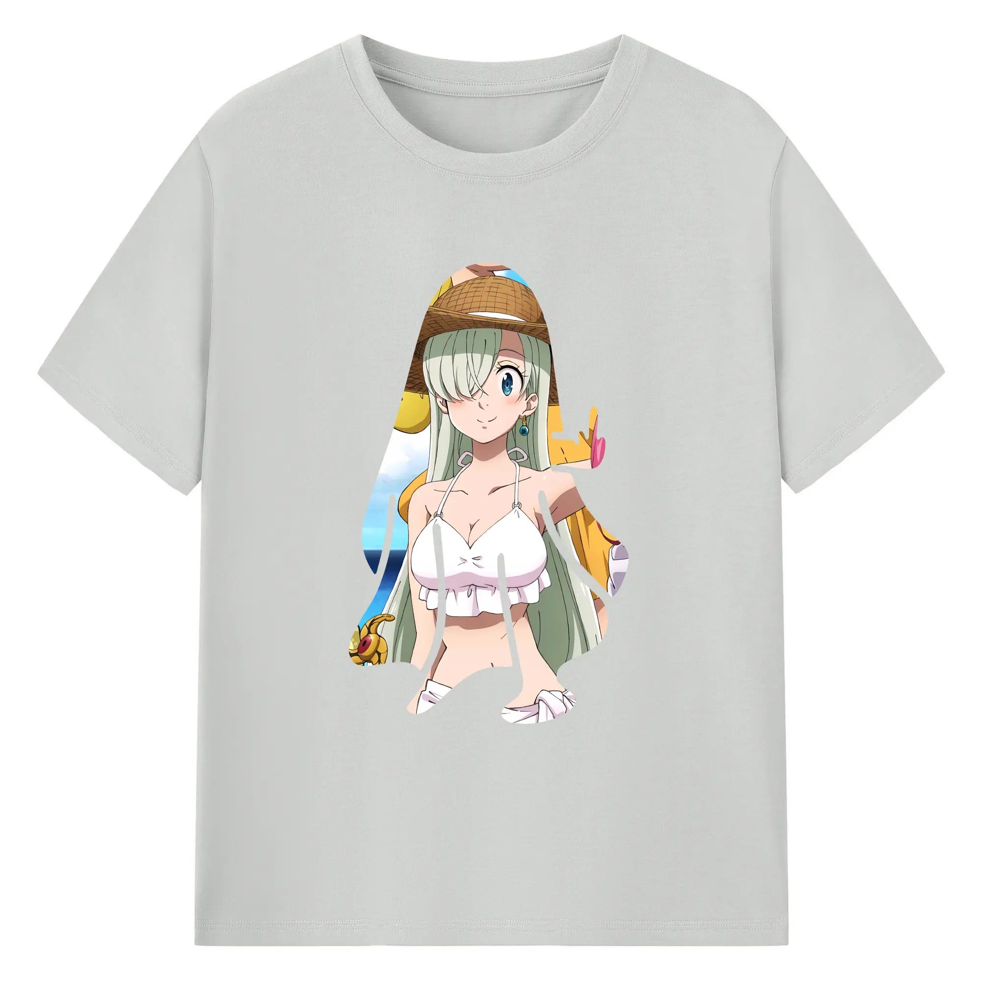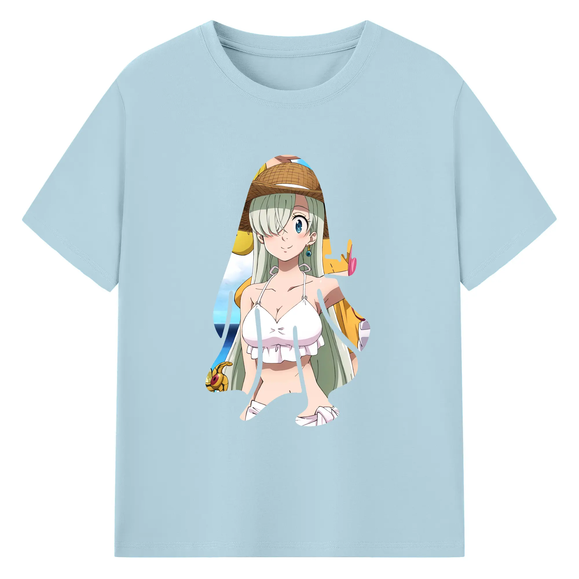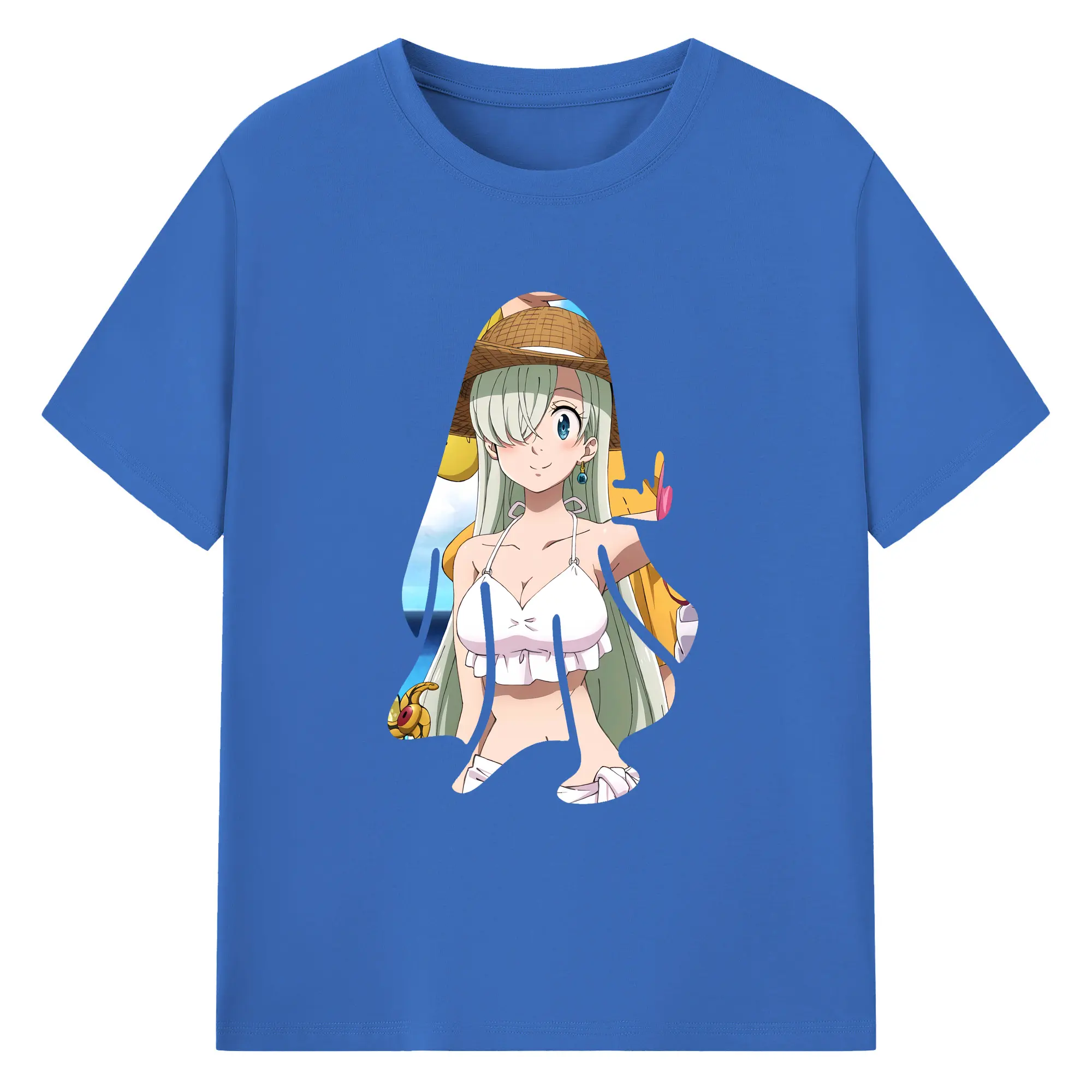七つの大罪 グッズ エリザベス - 綿100% 半袖Tシャツ ・ バックプリント ・ 快適 通気性 ・ 日常使い 散歩 スポーツ用