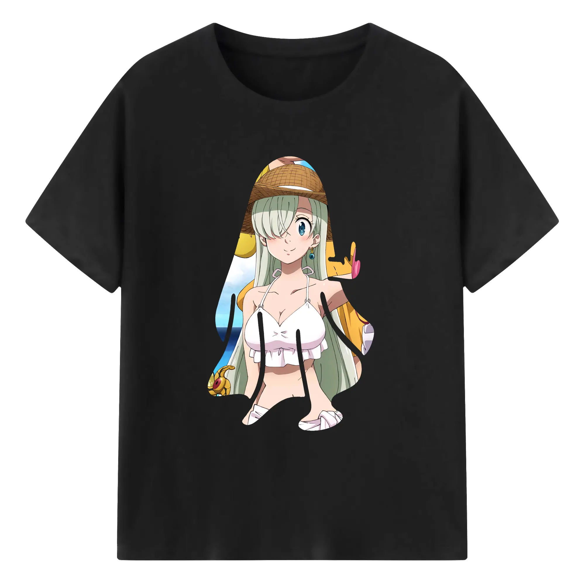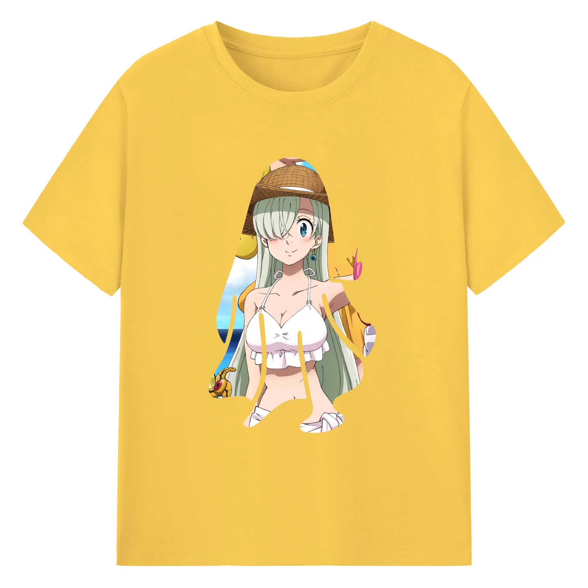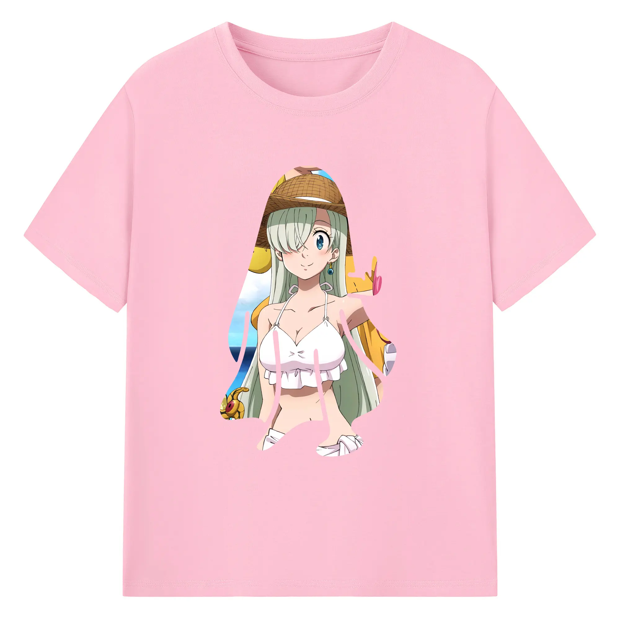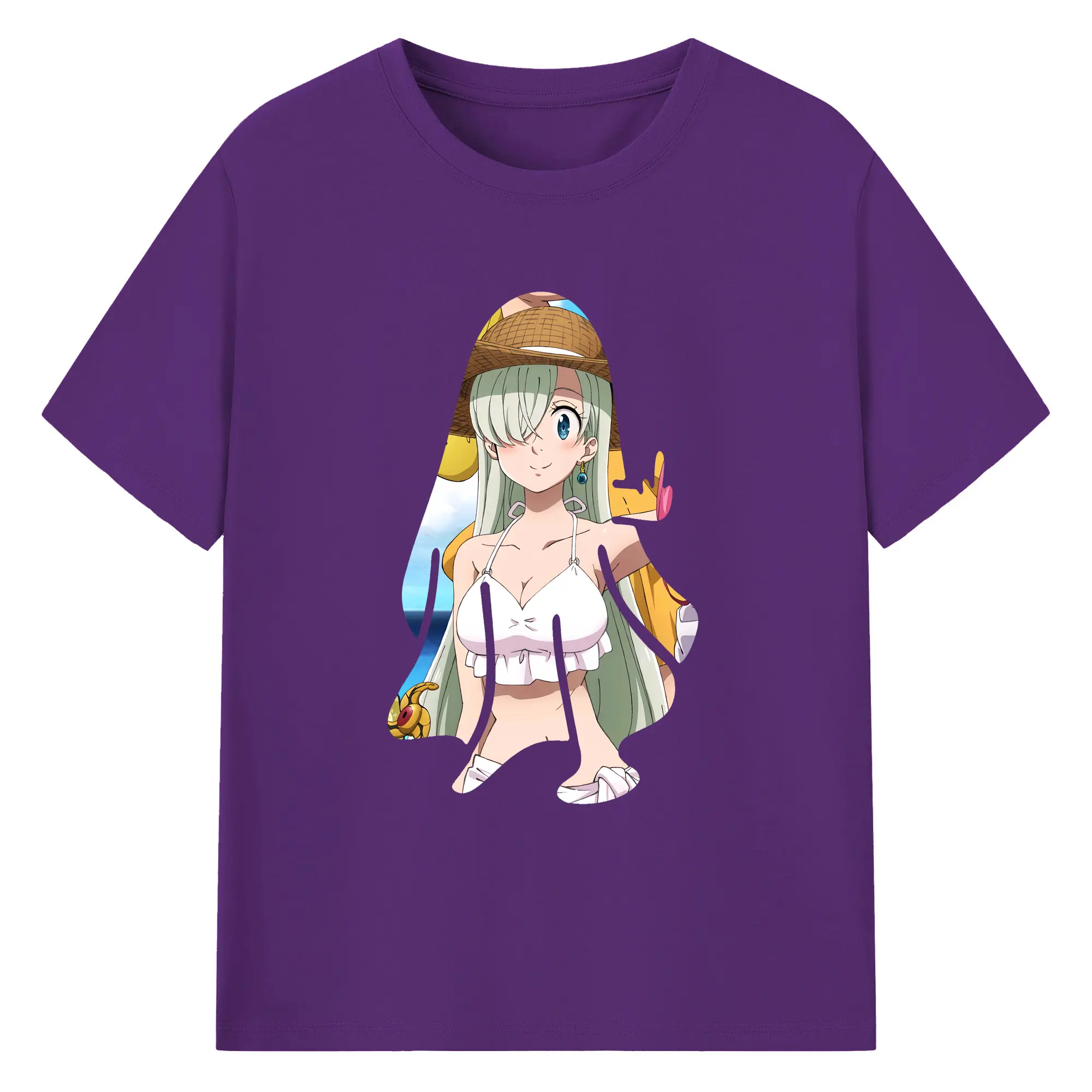 七つの大罪 グッズ エリザベス - 綿100% 半袖Tシャツ ・ バックプリント ・ 快適 通気性 ・ 日常使い 散歩 スポーツ用