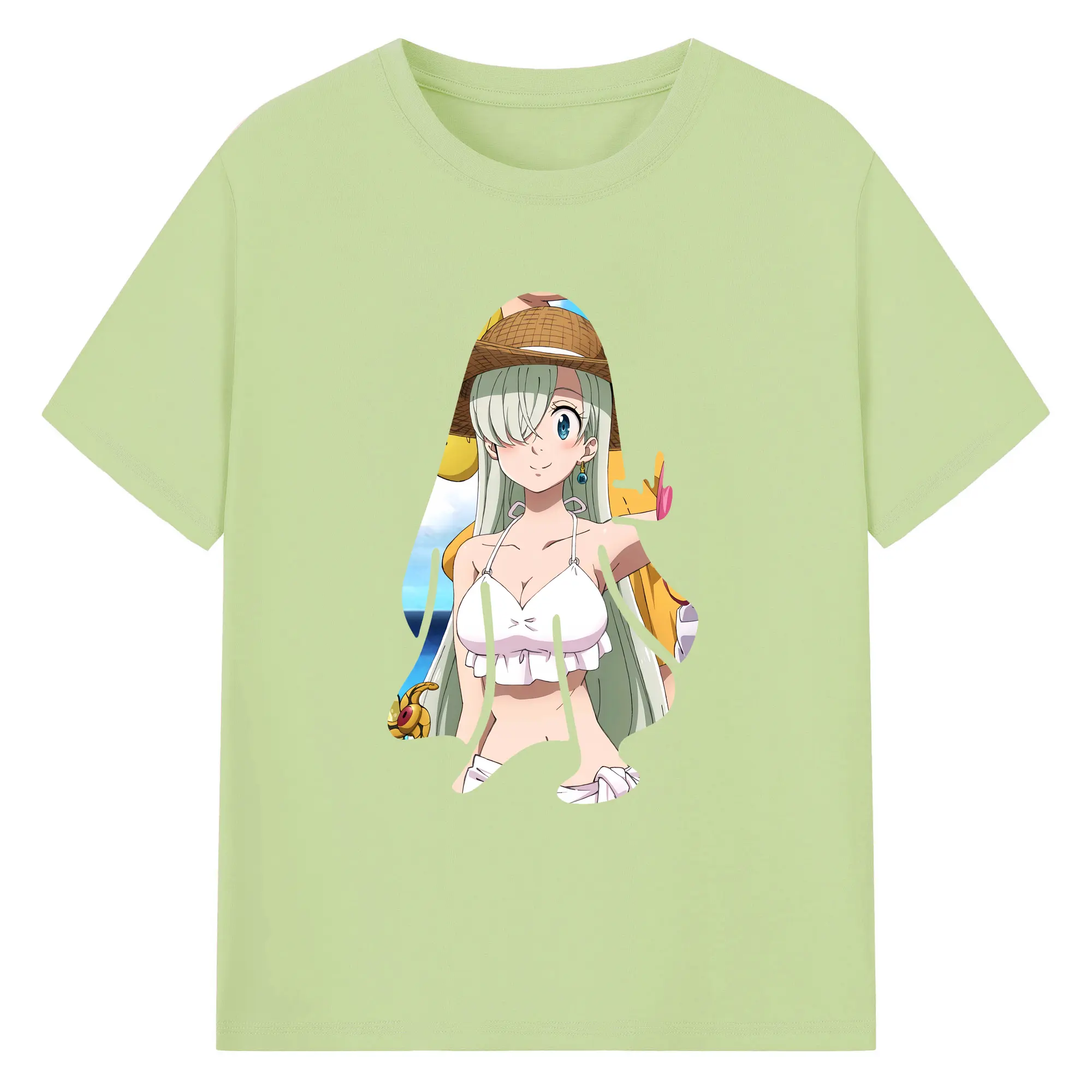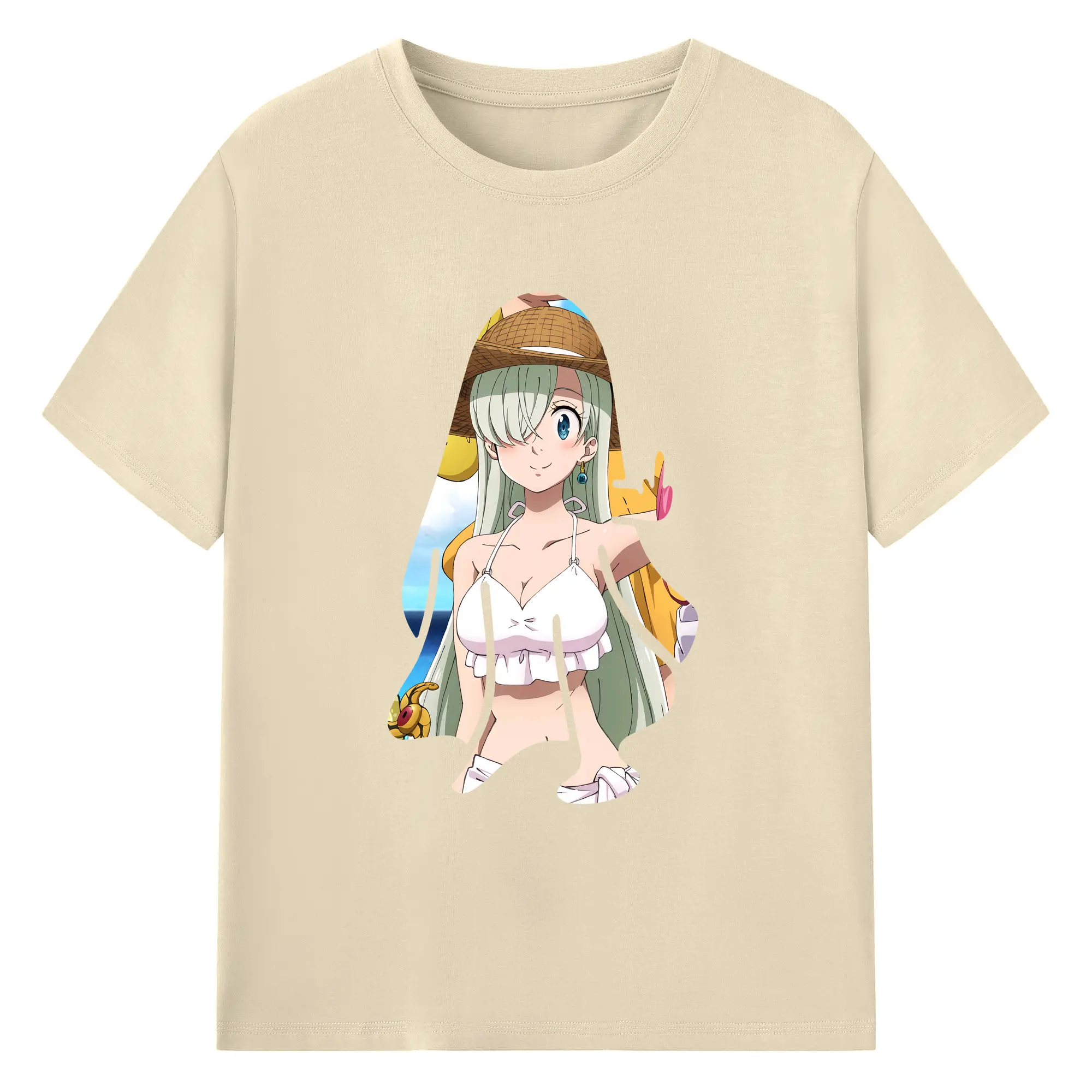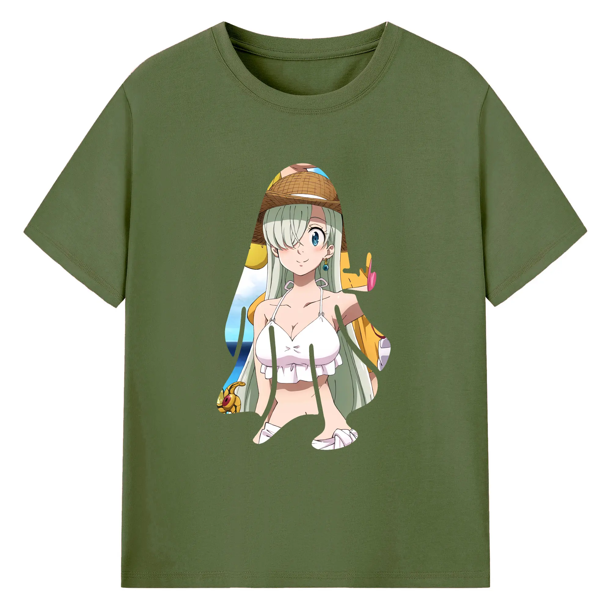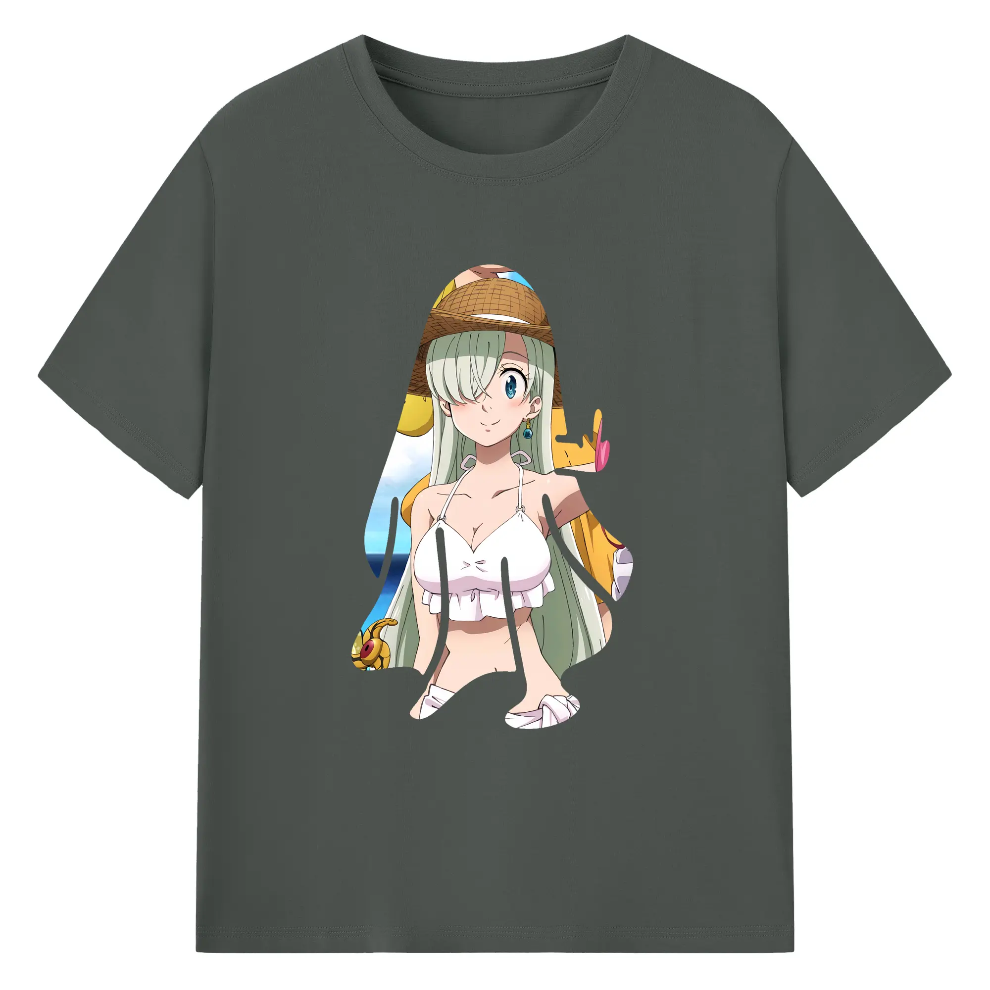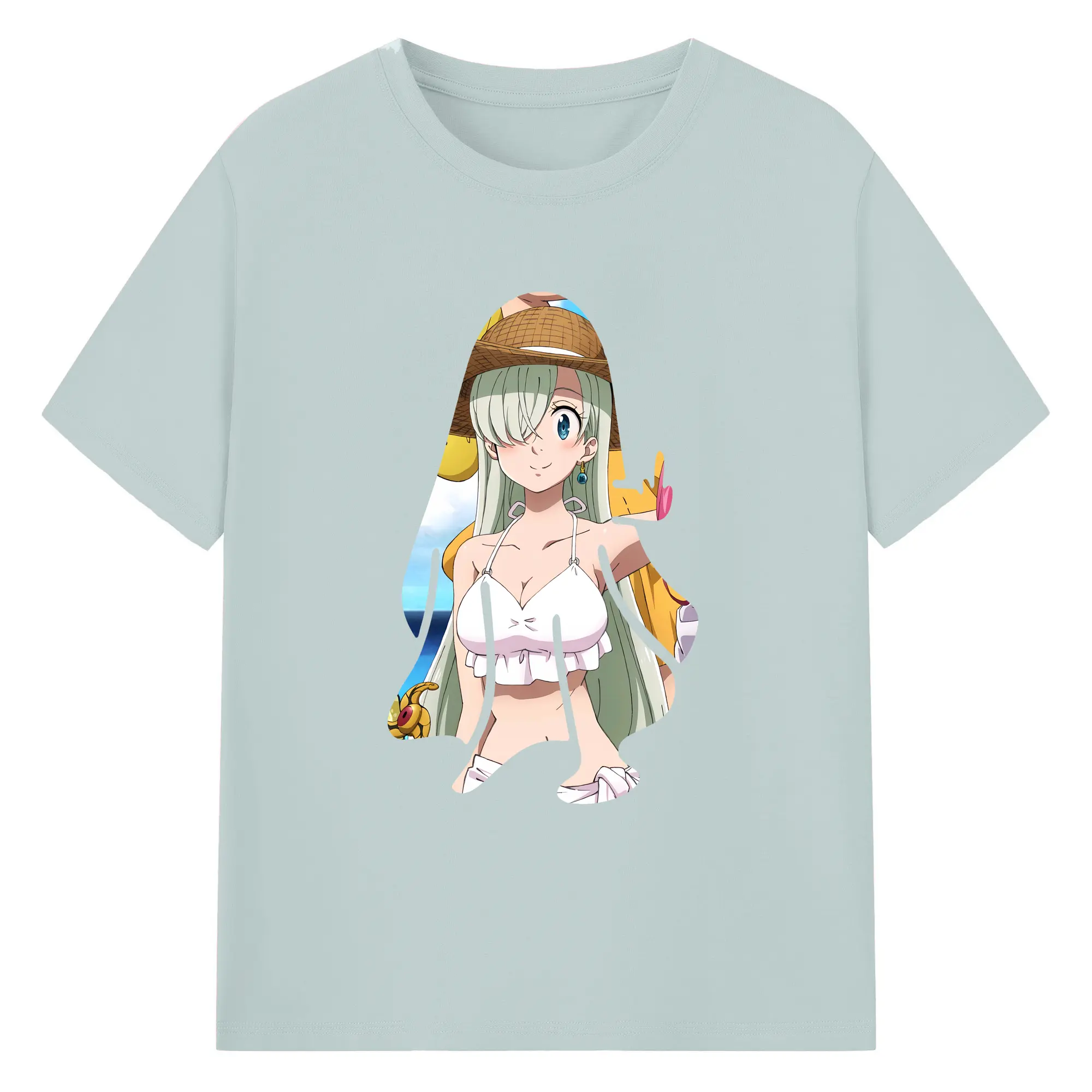七つの大罪 グッズ エリザベス - 綿100% 半袖Tシャツ ・ バックプリント ・ 快適 通気性 ・ 日常使い 散歩 スポーツ用