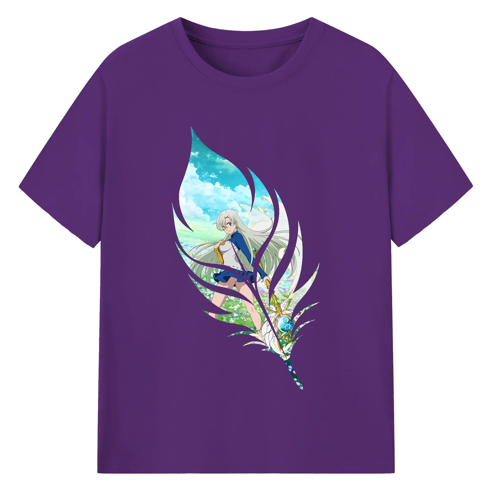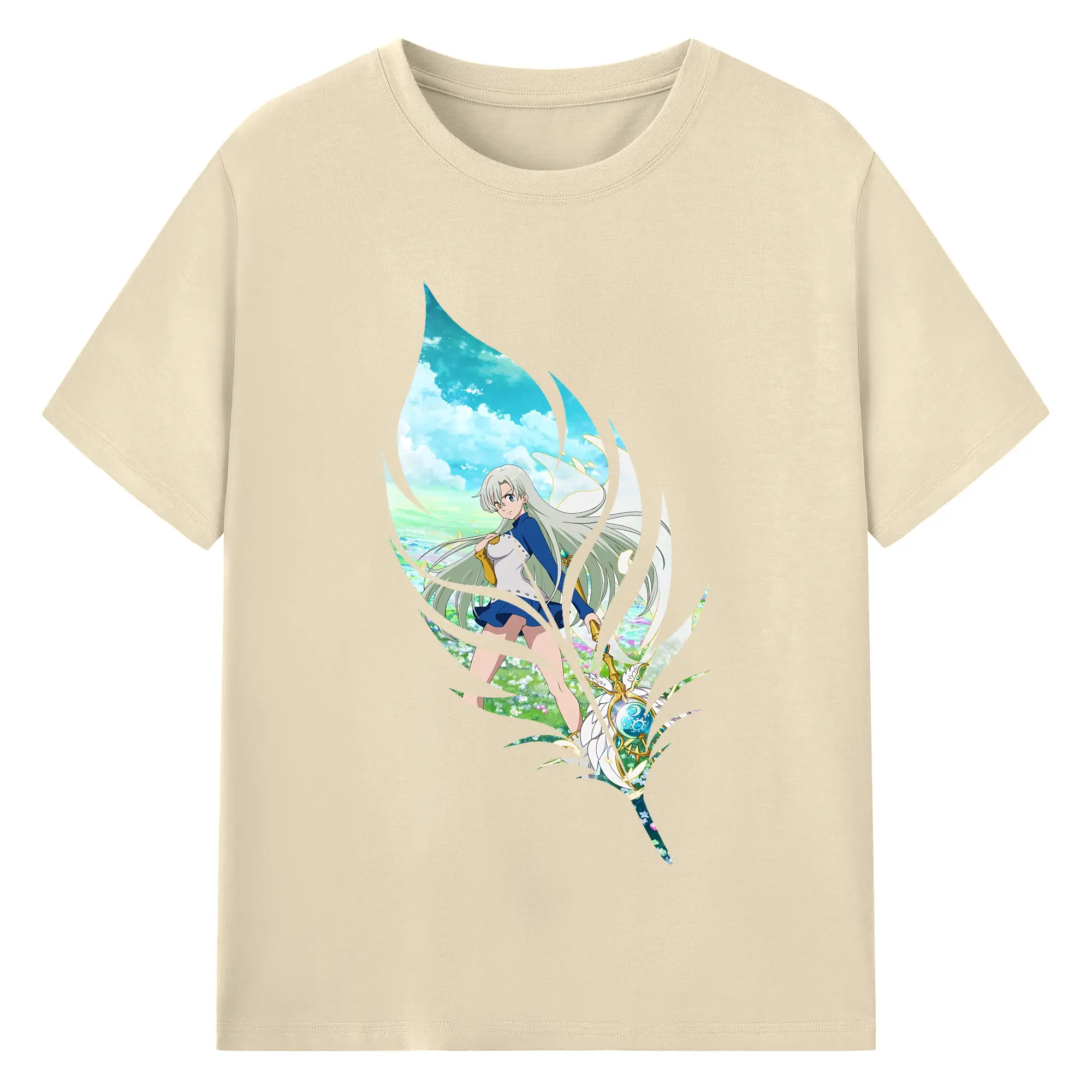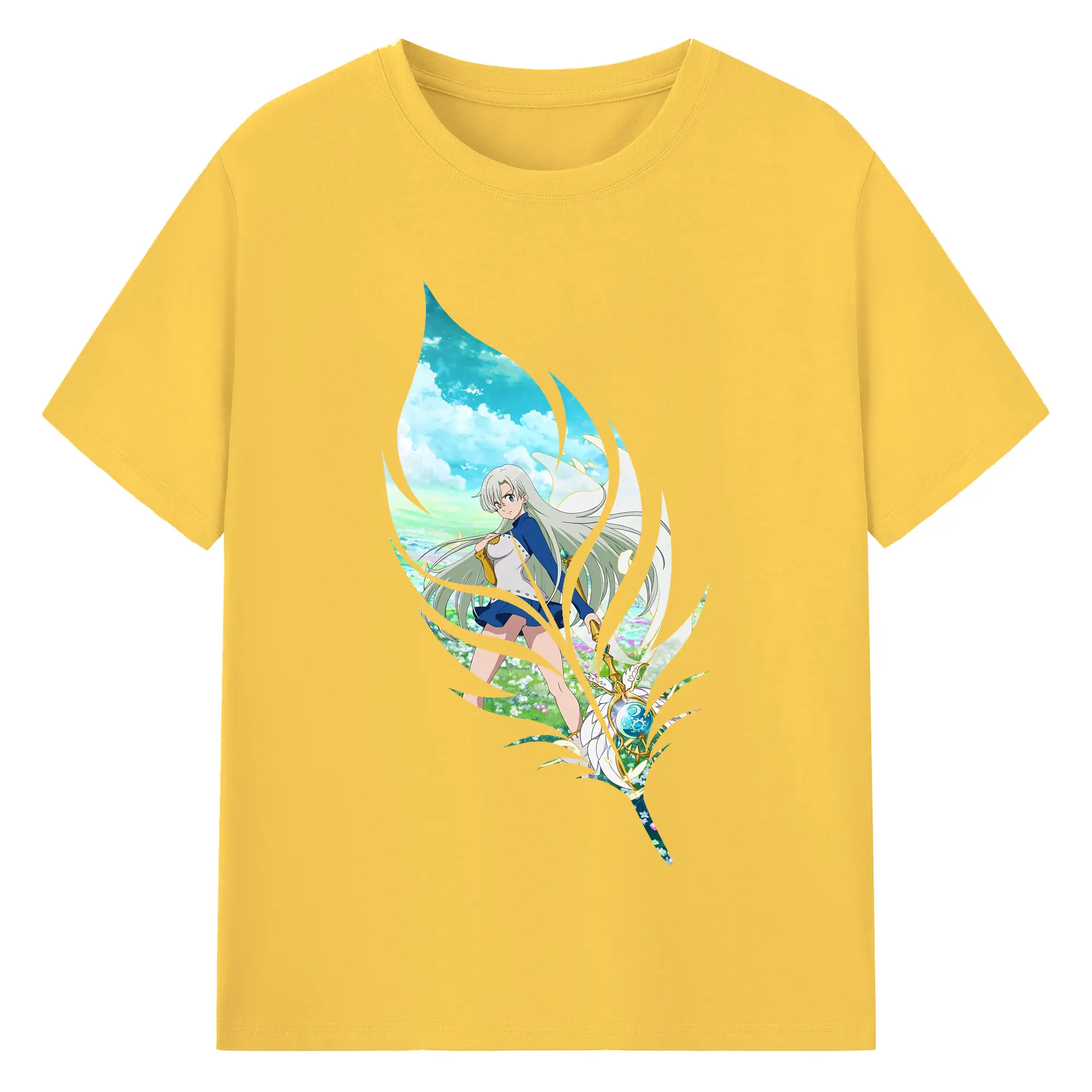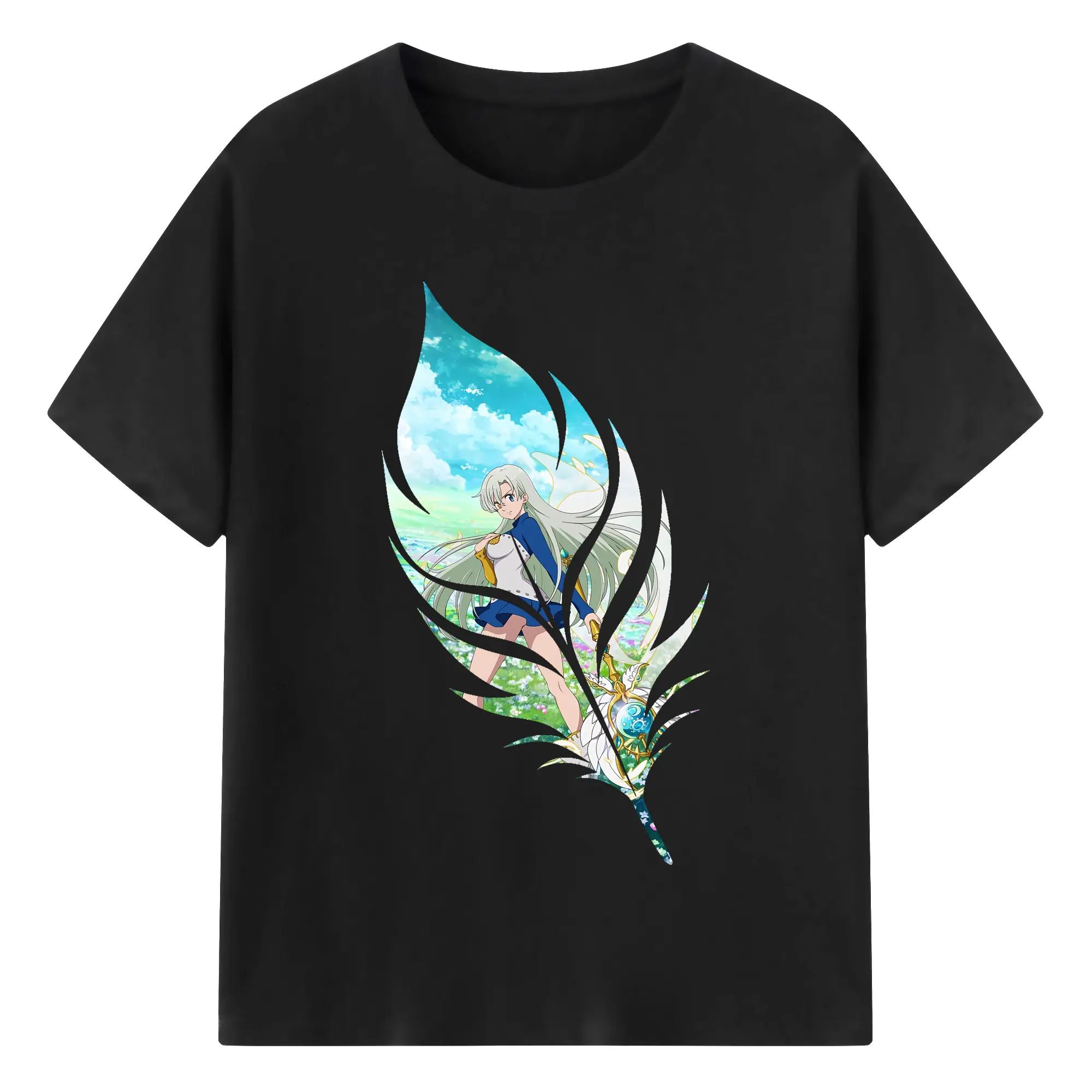 七つの大罪 グッズ エリザベス - 綿100% 半袖Tシャツ ・ バックプリント ・ 快適 通気性 ・ 日常使い 散歩 スポーツ用