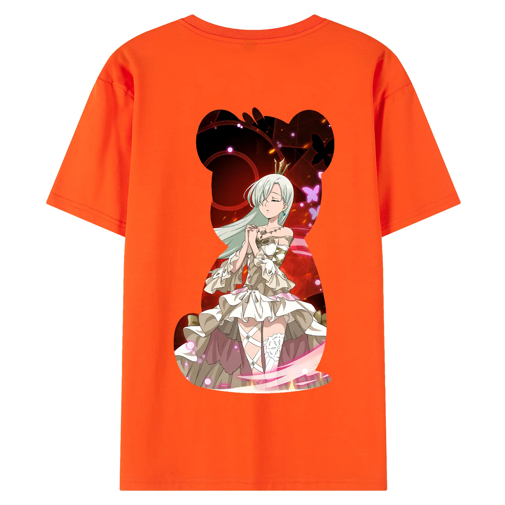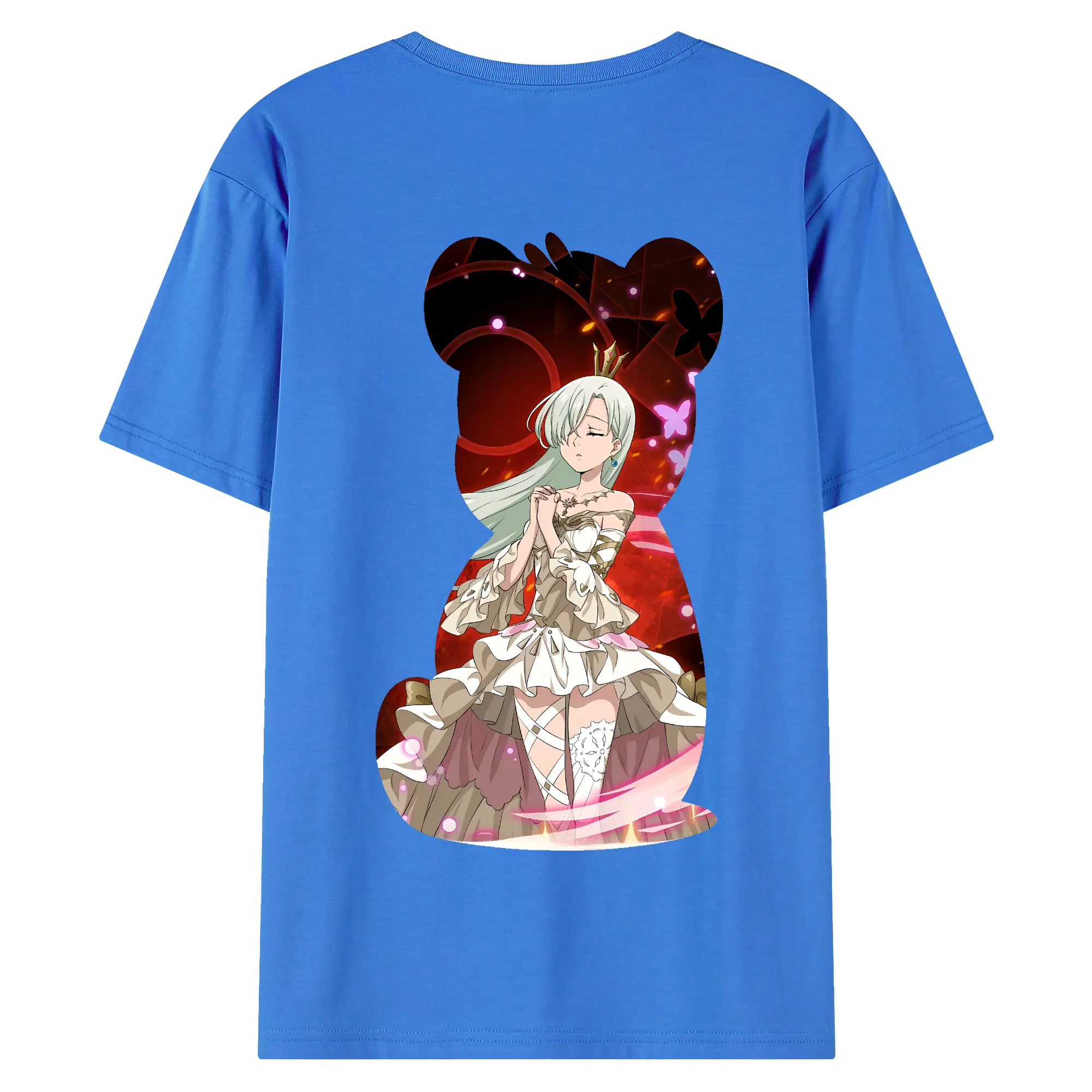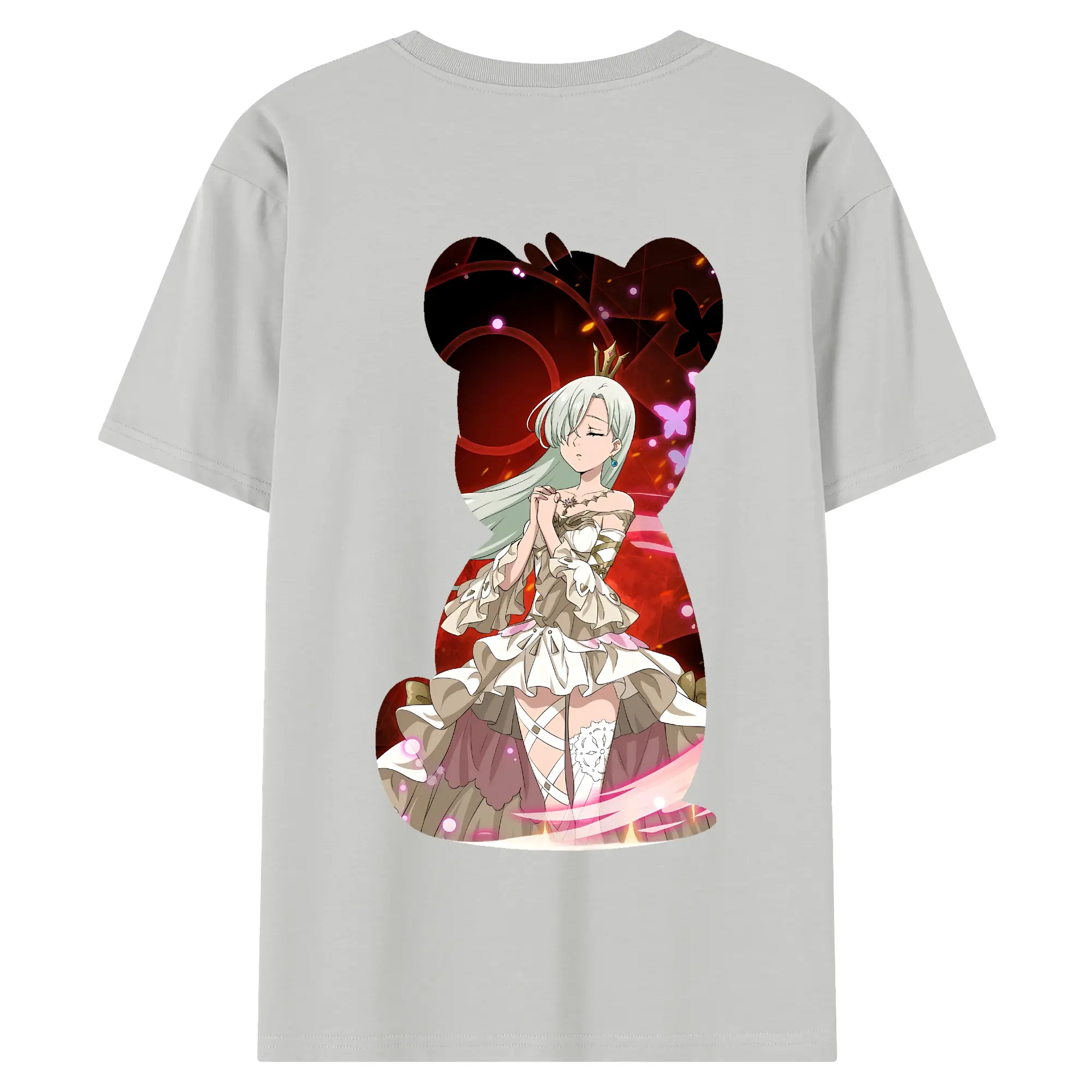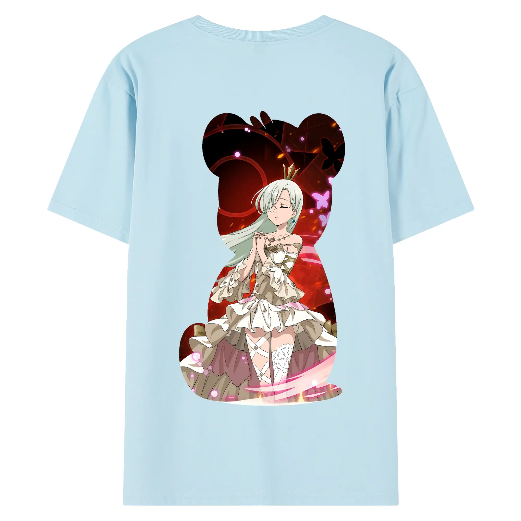 七つの大罪 グッズ エリザベス - 綿100% ヴィンテージ風 半袖Tシャツ ・ 背面プリント ・ 柔らか肌触り ・ 通気性 快適 ・ スポーツ カジュアル 外出用