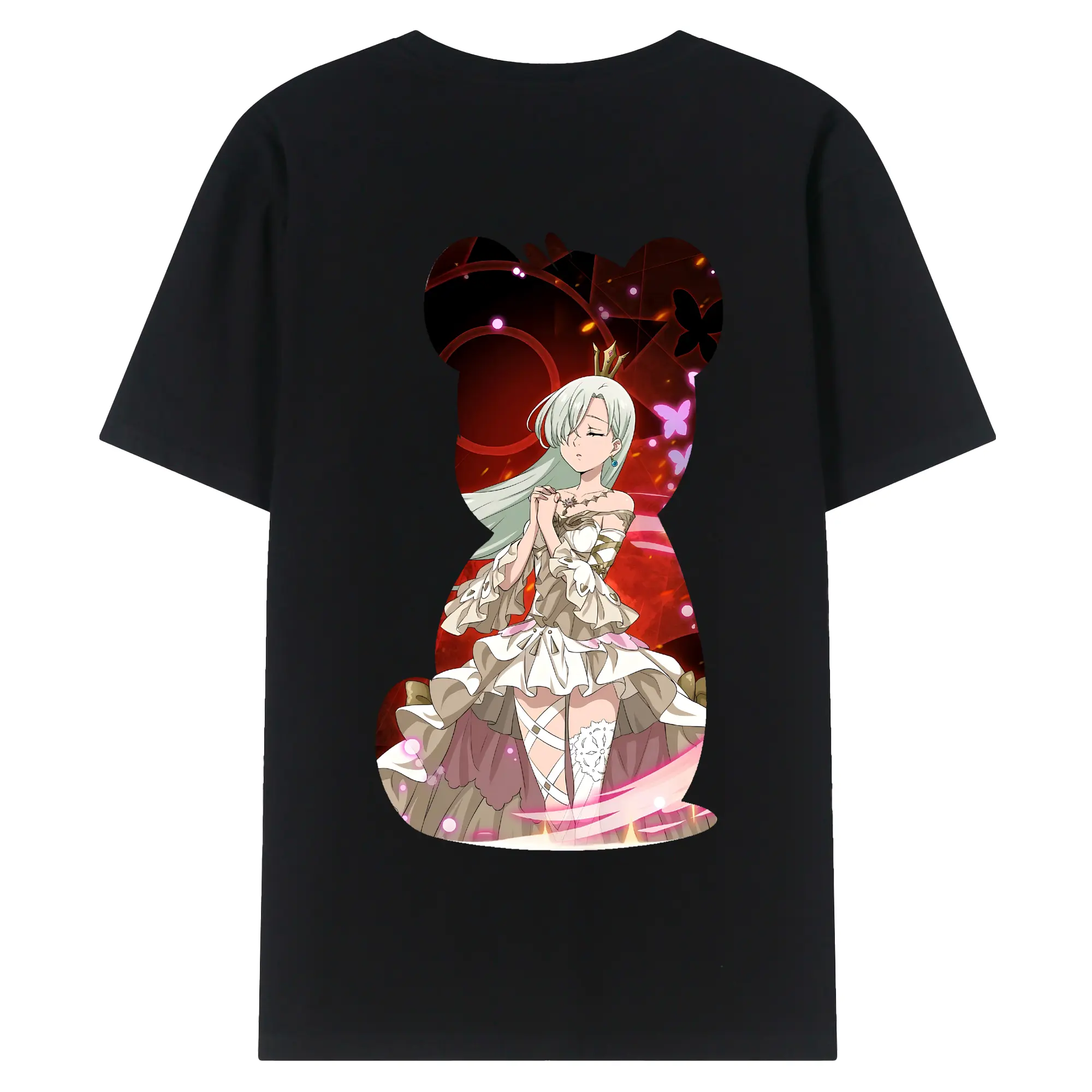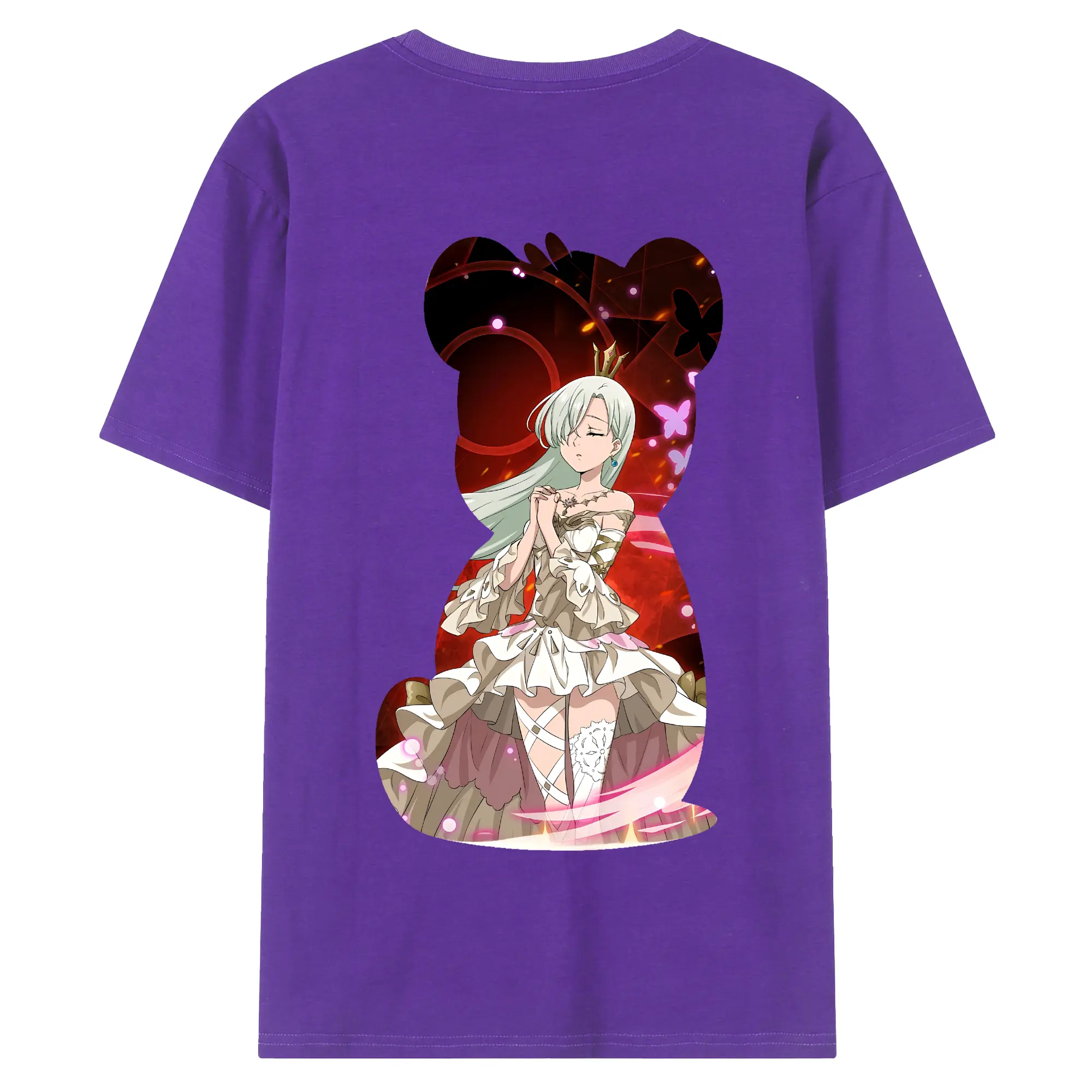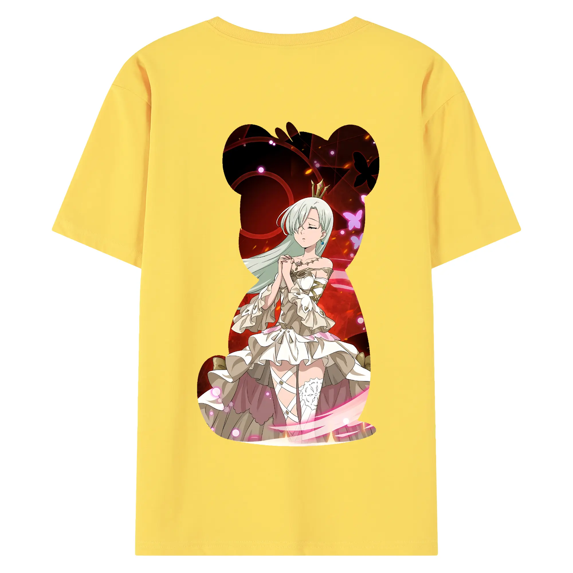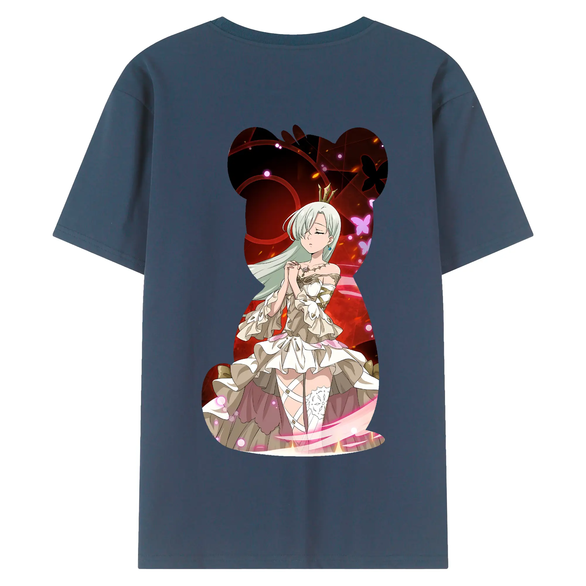 七つの大罪 グッズ エリザベス - 綿100% ヴィンテージ風 半袖Tシャツ ・ 背面プリント ・ 柔らか肌触り ・ 通気性 快適 ・ スポーツ カジュアル 外出用