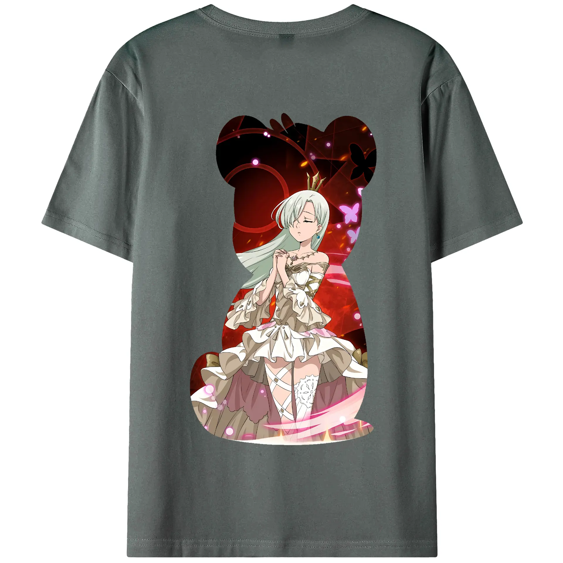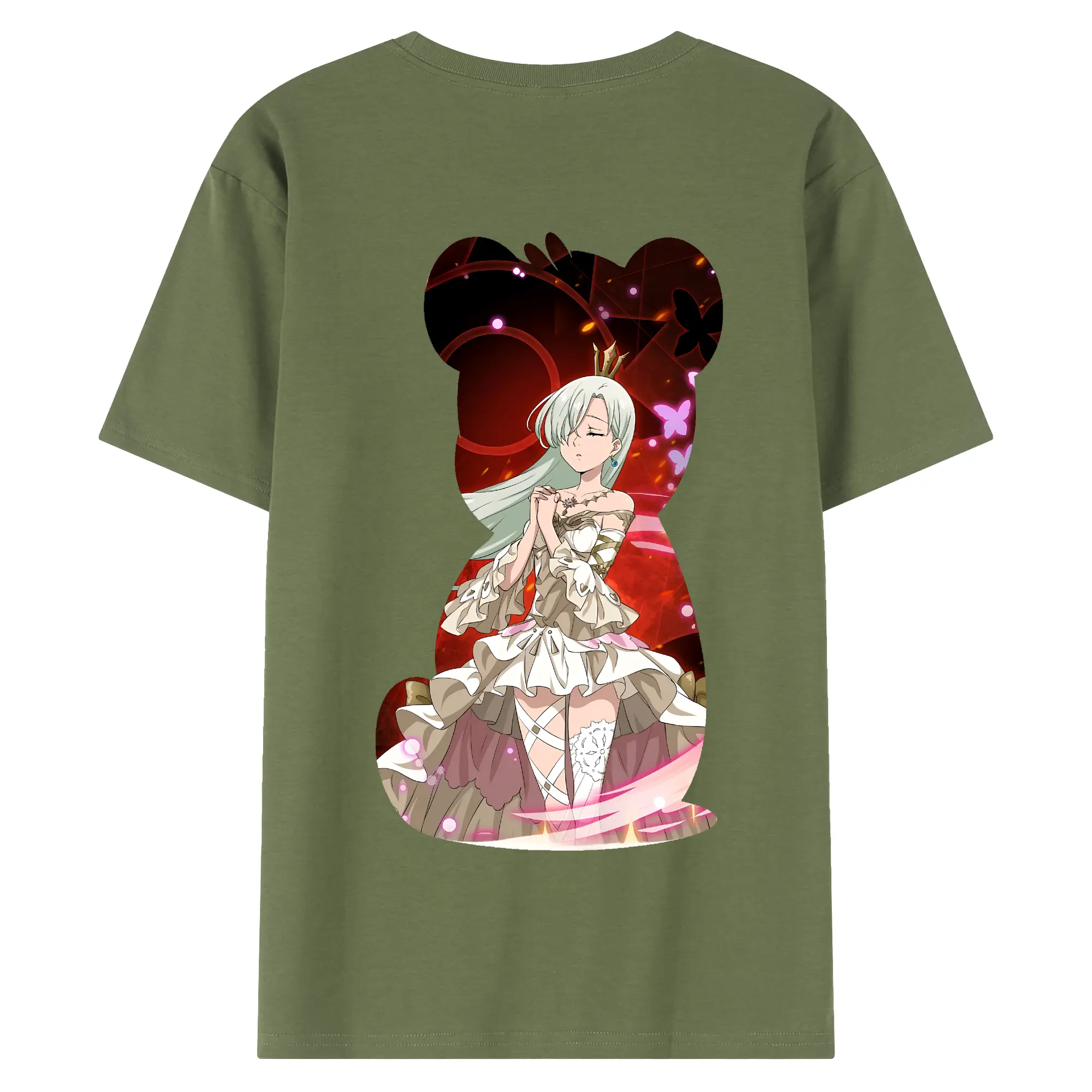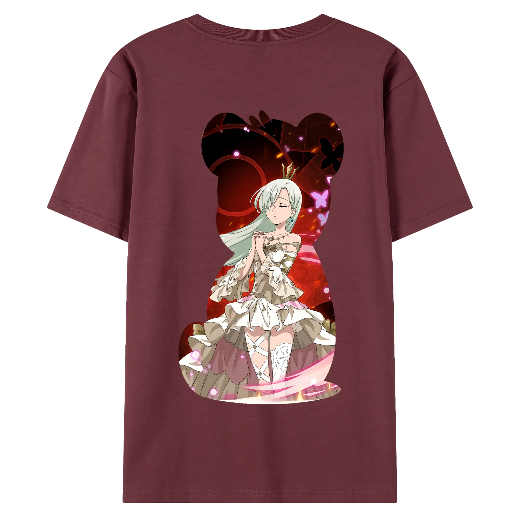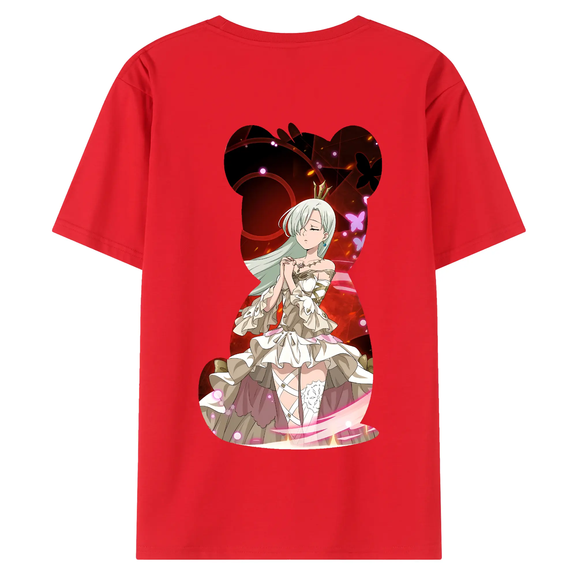 七つの大罪 グッズ エリザベス - 綿100% ヴィンテージ風 半袖Tシャツ ・ 背面プリント ・ 柔らか肌触り ・ 通気性 快適 ・ スポーツ カジュアル 外出用