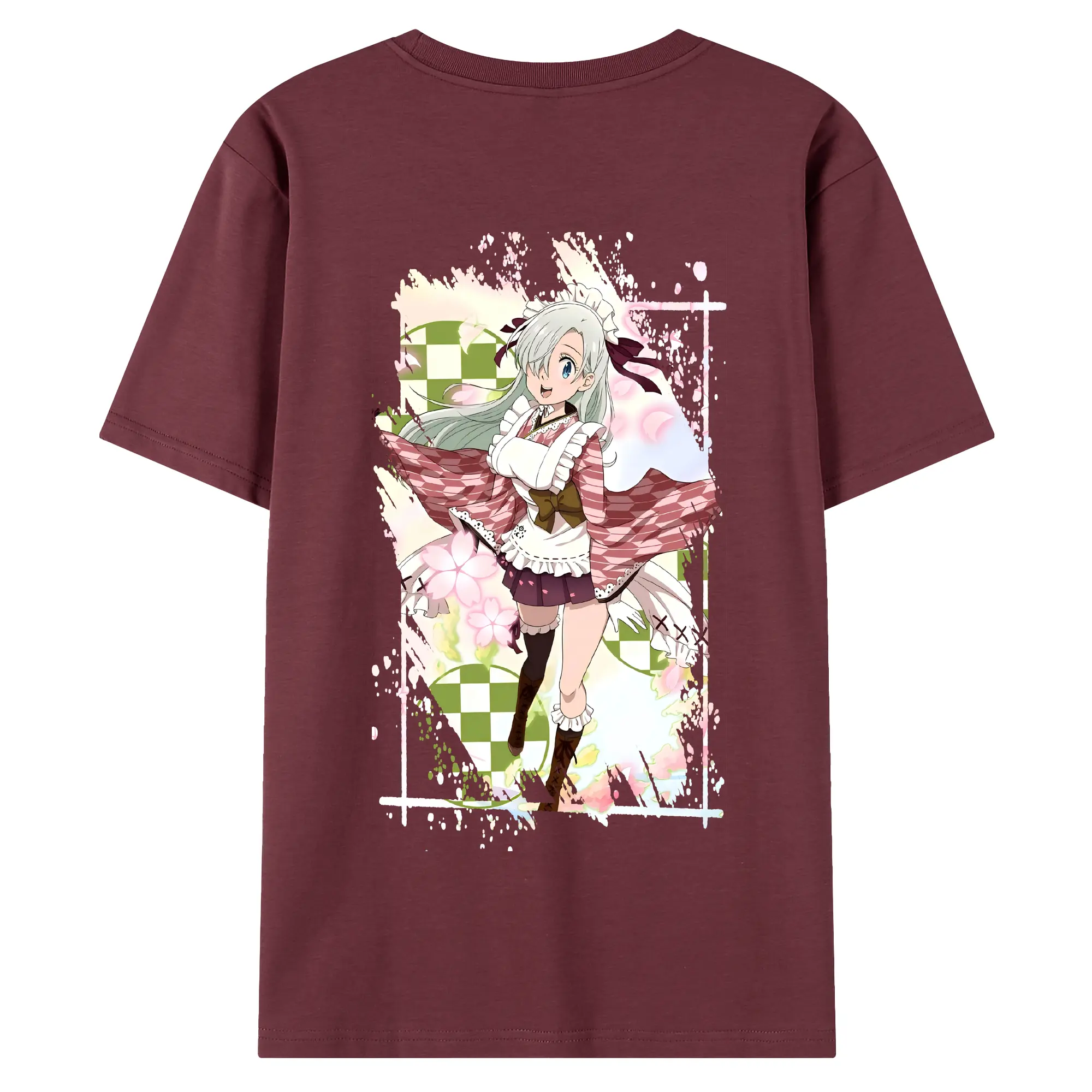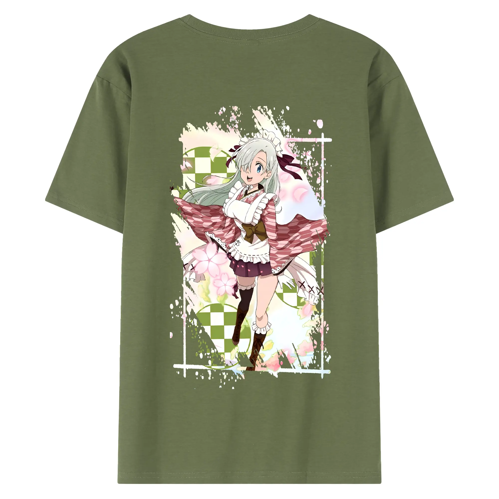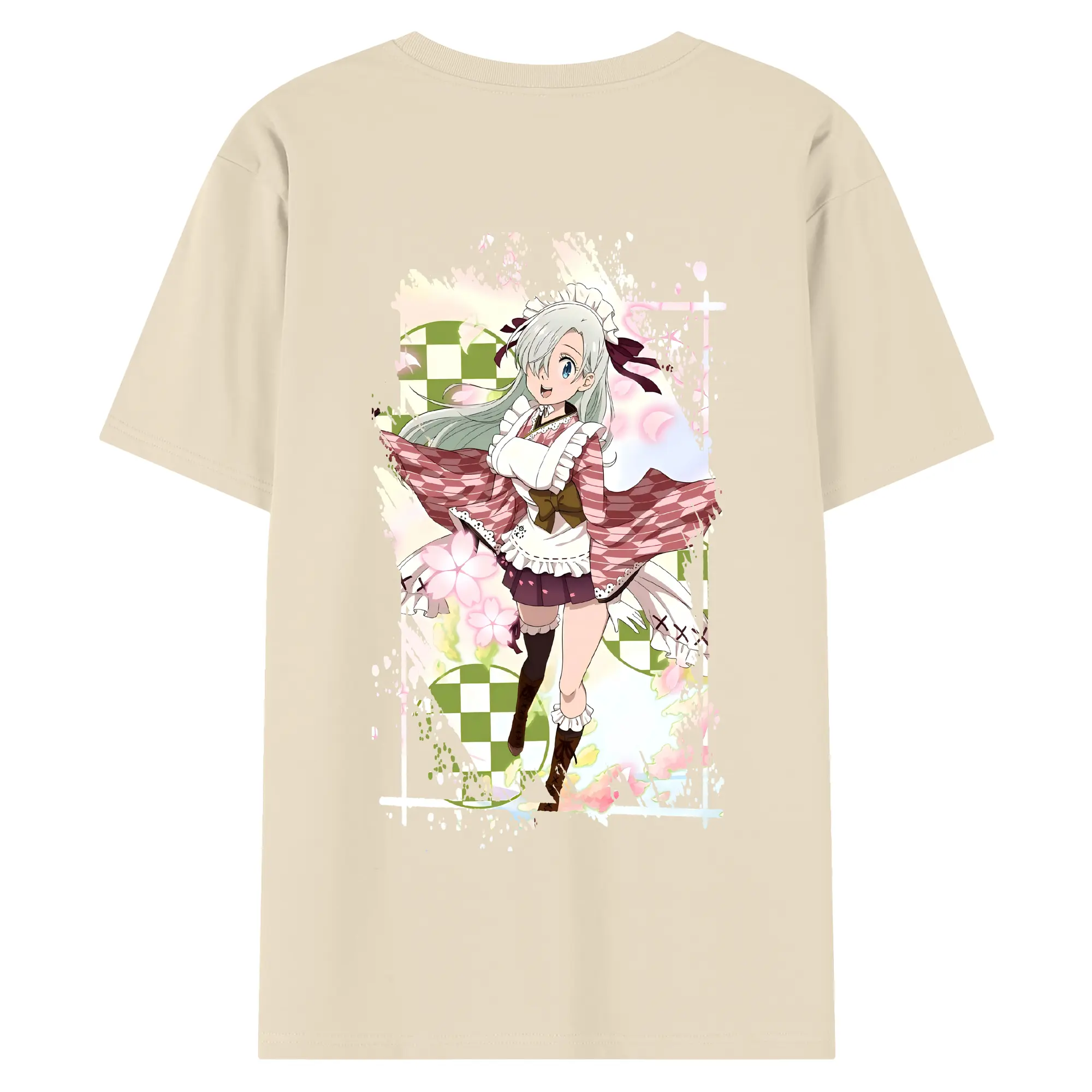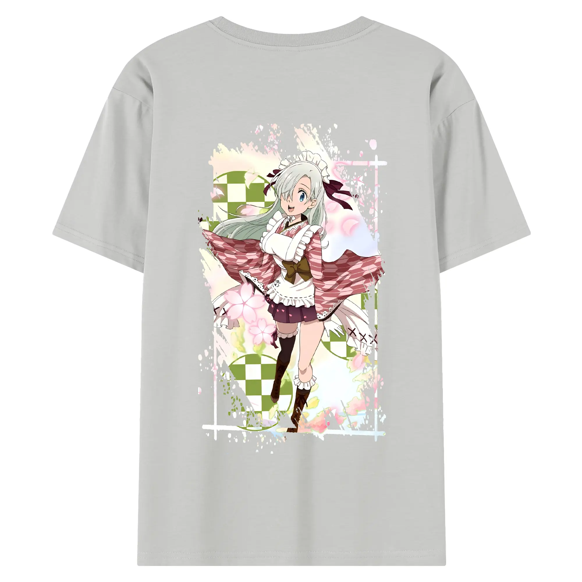 七つの大罪 グッズ エリザベス - 綿100% ヴィンテージ風 半袖Tシャツ ・ 背面プリント ・ 柔らか肌触り ・ 通気性 快適 ・ スポーツ カジュアル 外出用