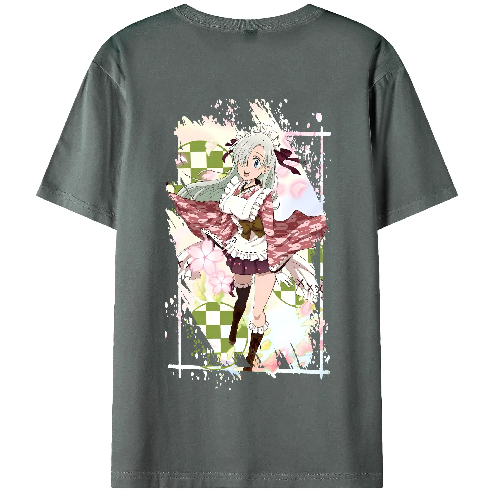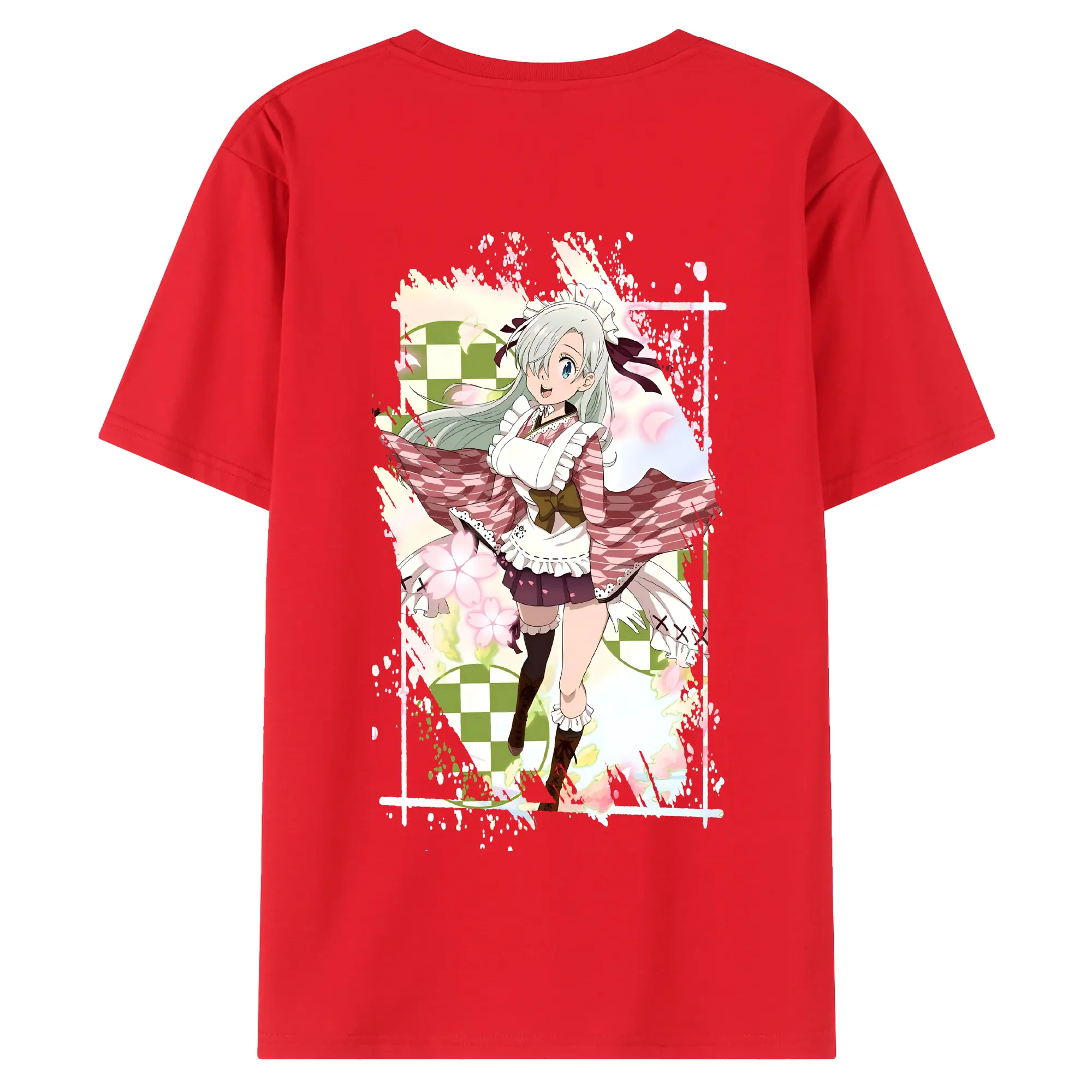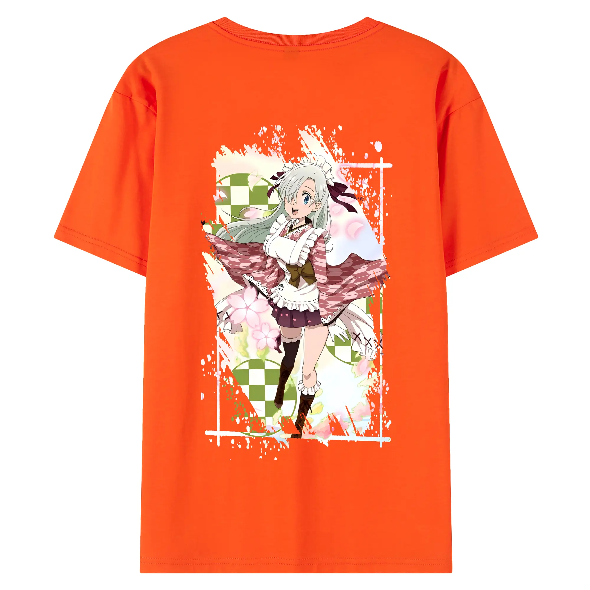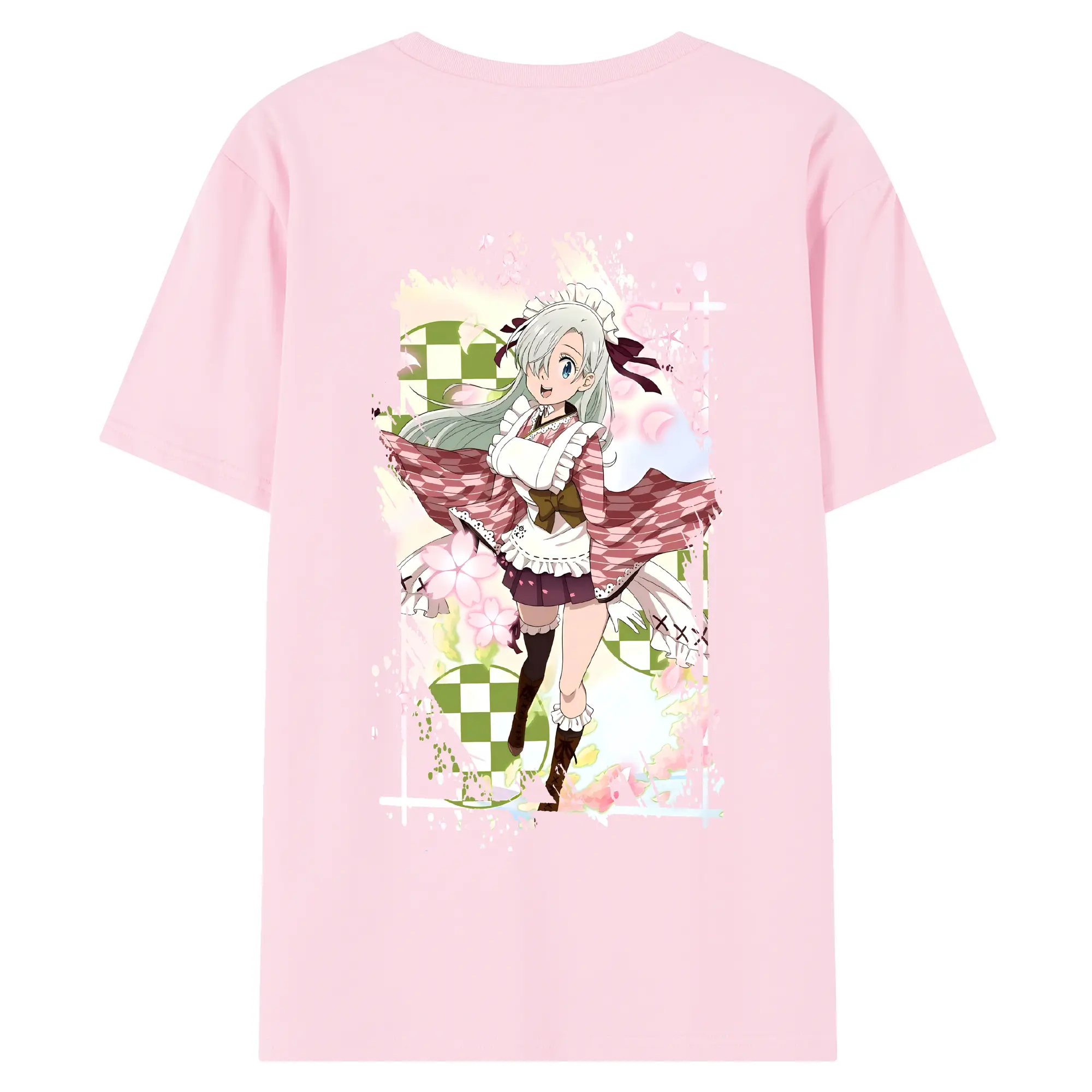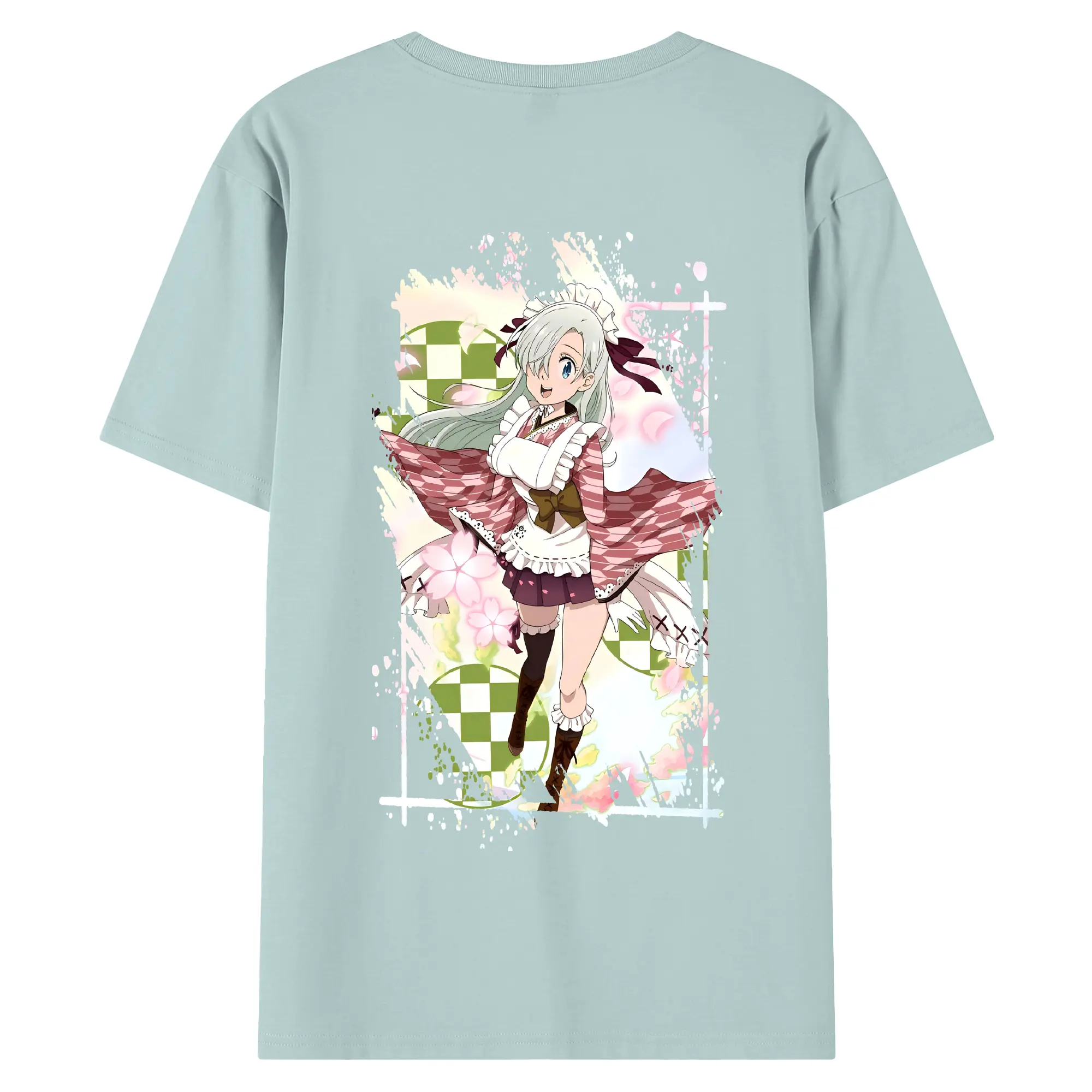 七つの大罪 グッズ エリザベス - 綿100% 半袖Tシャツ ・ フロントプリント ・ 快適 通気性 ・ 日常使い 散歩 スポーツ用