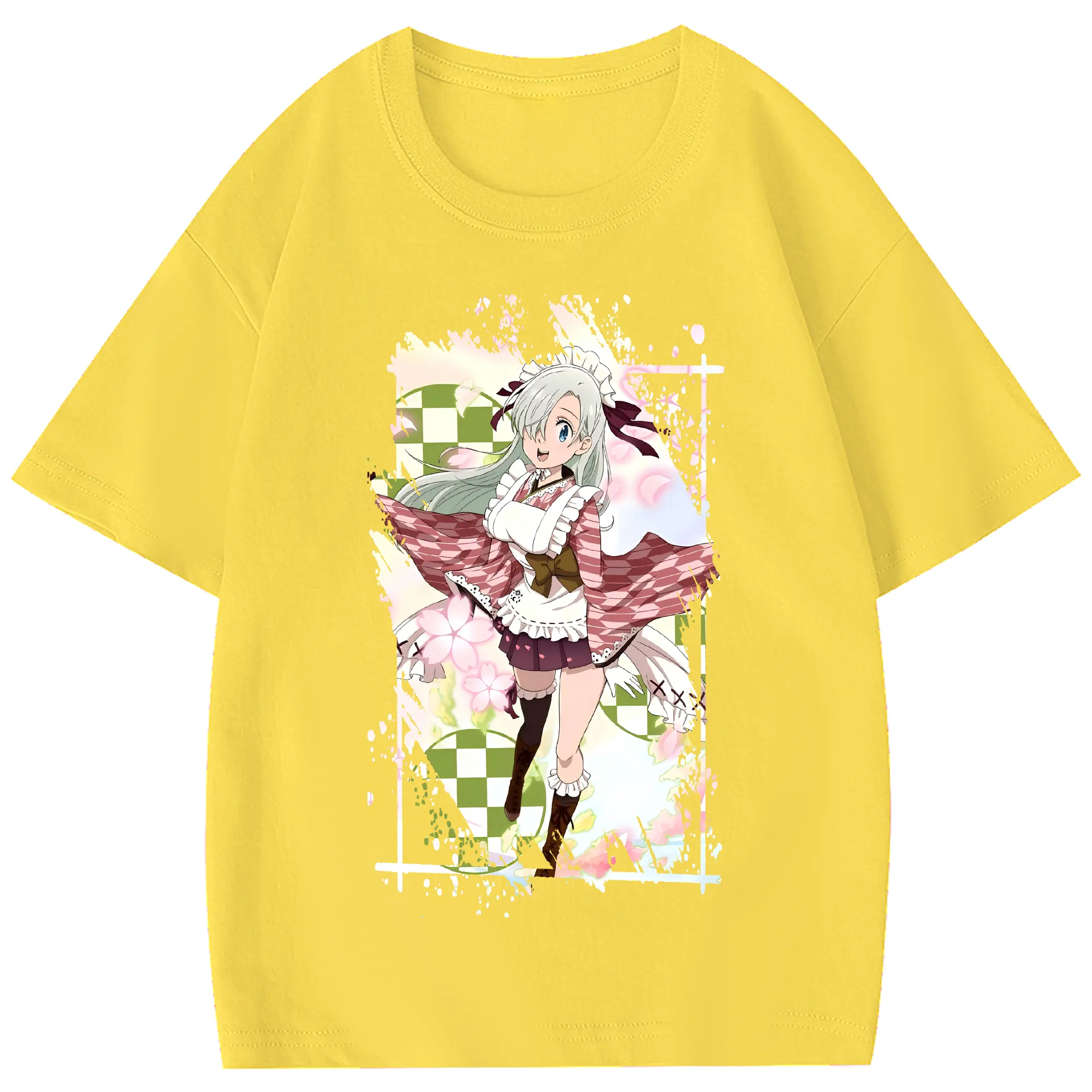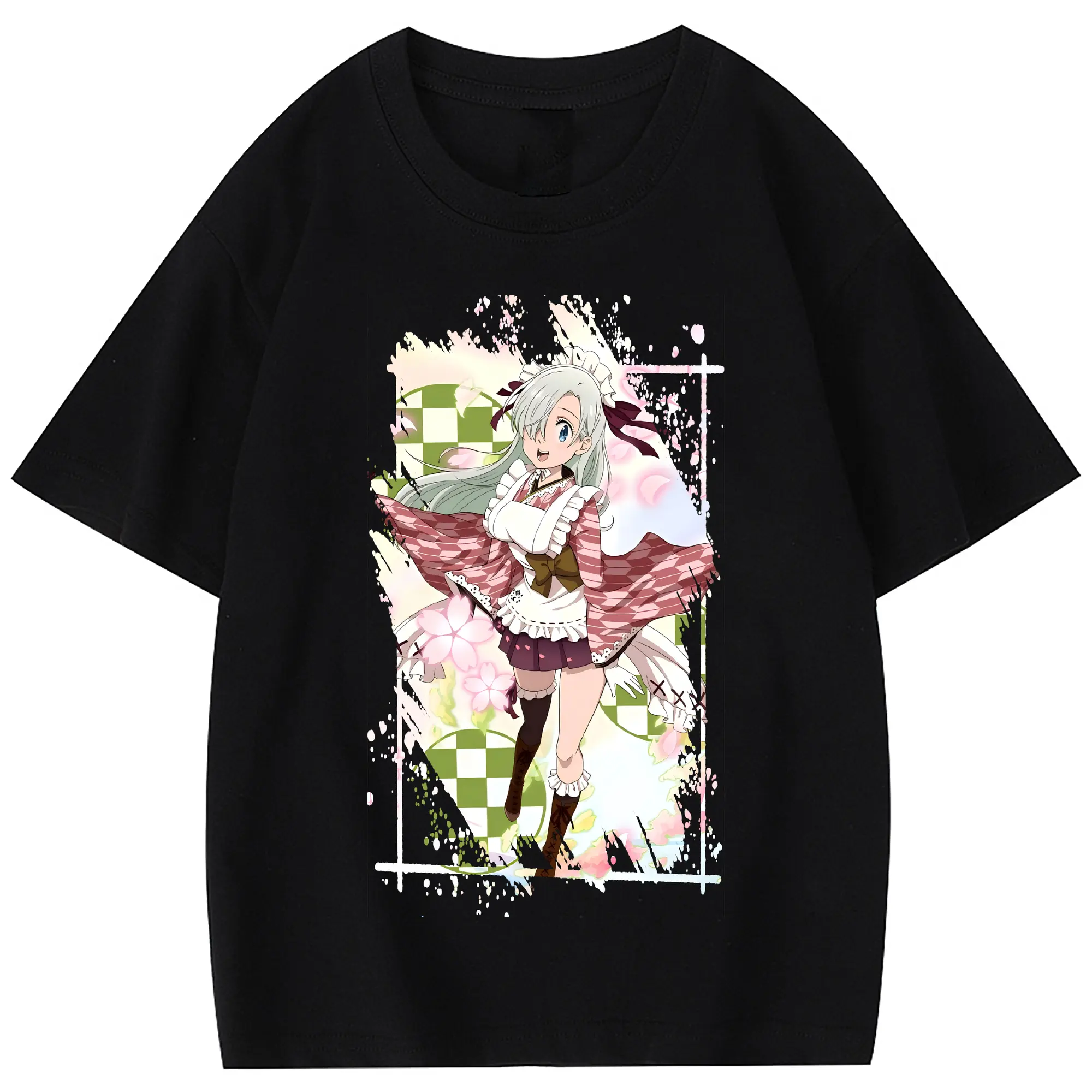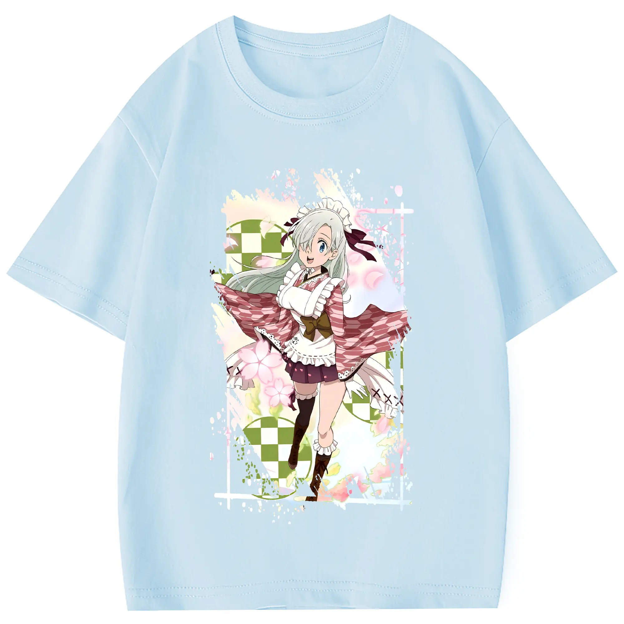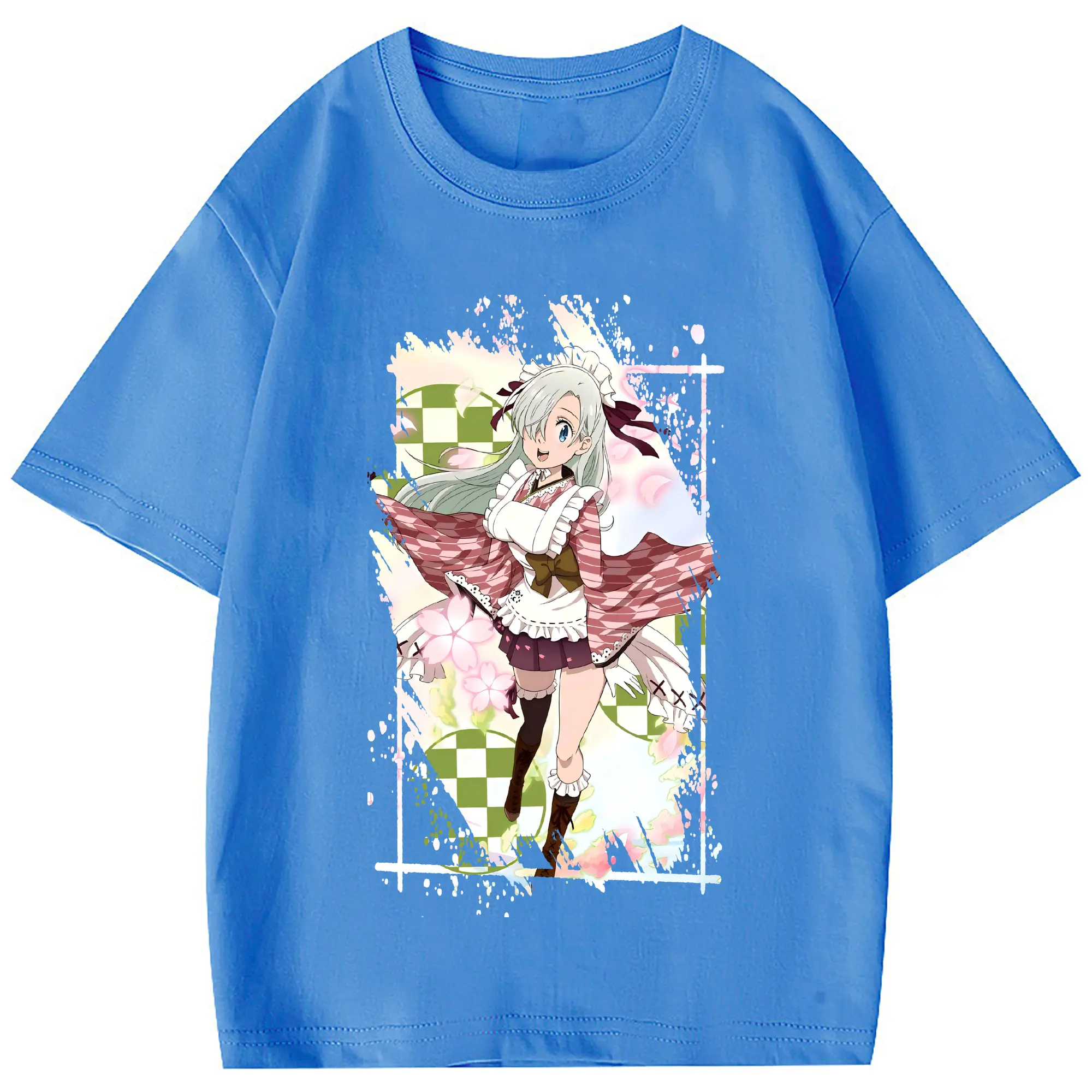 七つの大罪 グッズ エリザベス - 綿100% 半袖Tシャツ ・ フロントプリント ・ 快適 通気性 ・ 日常使い 散歩 スポーツ用