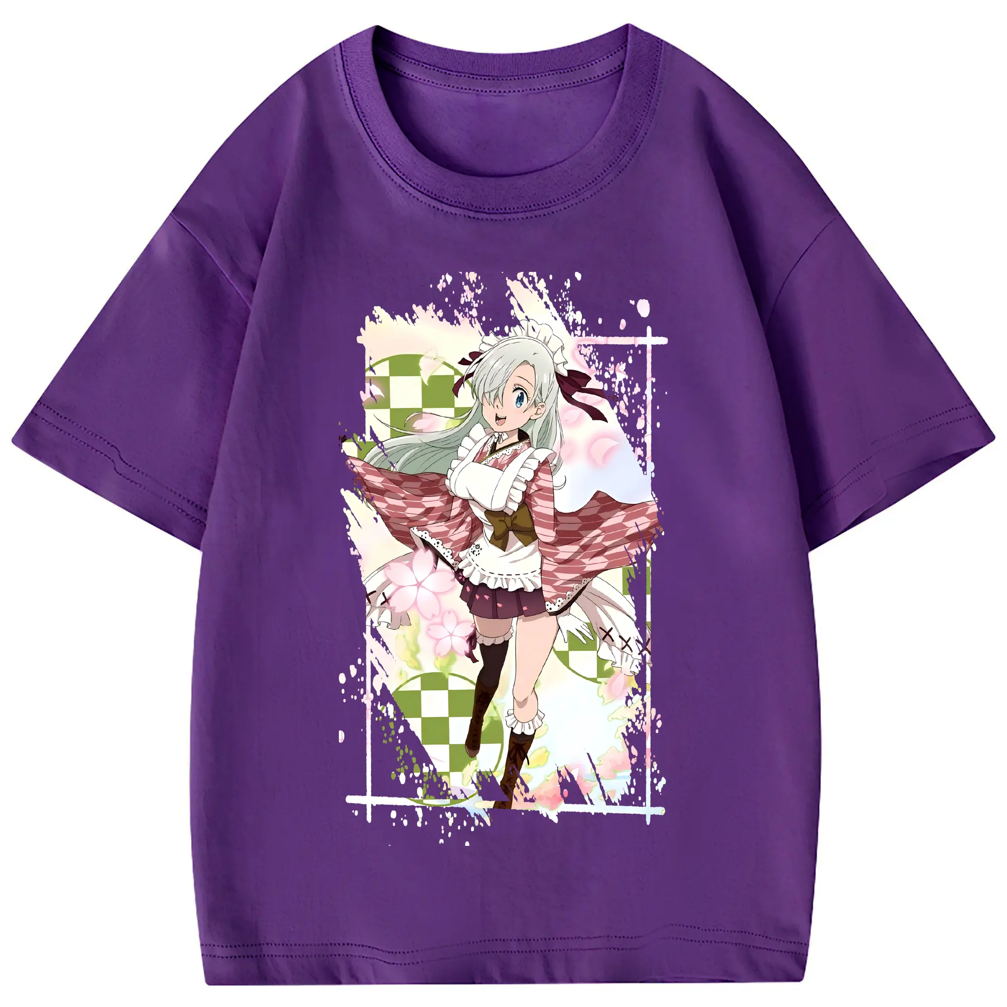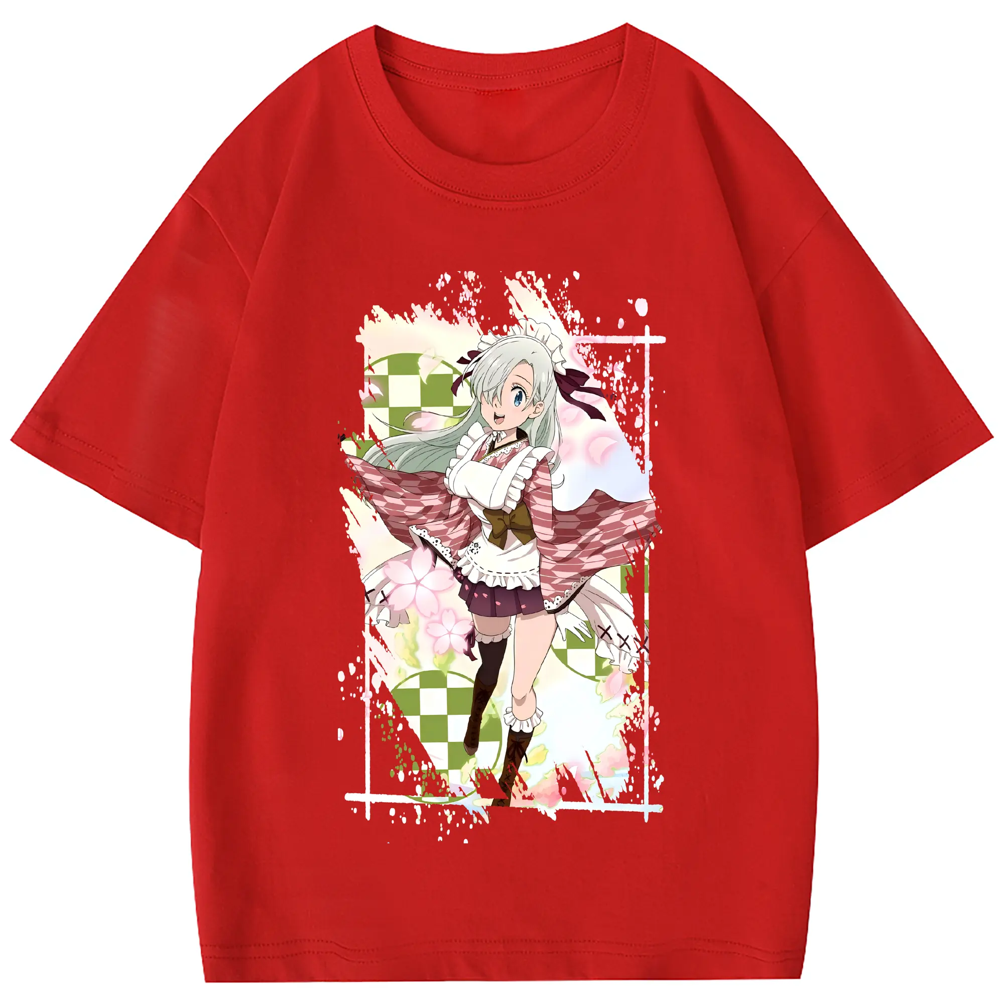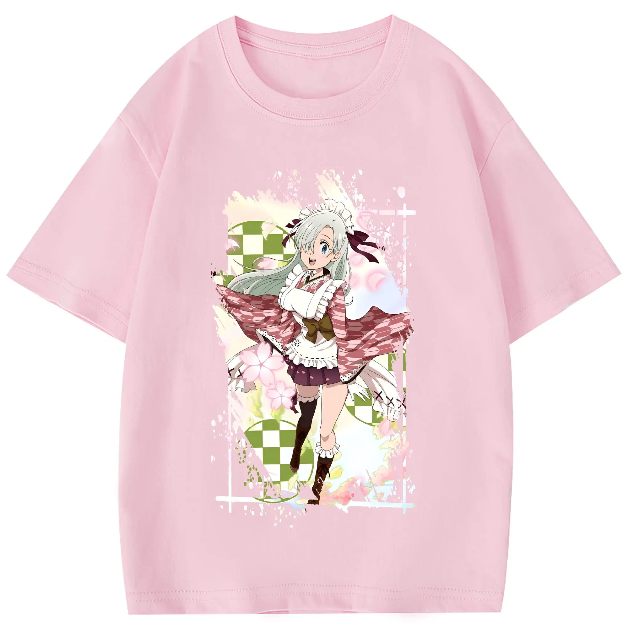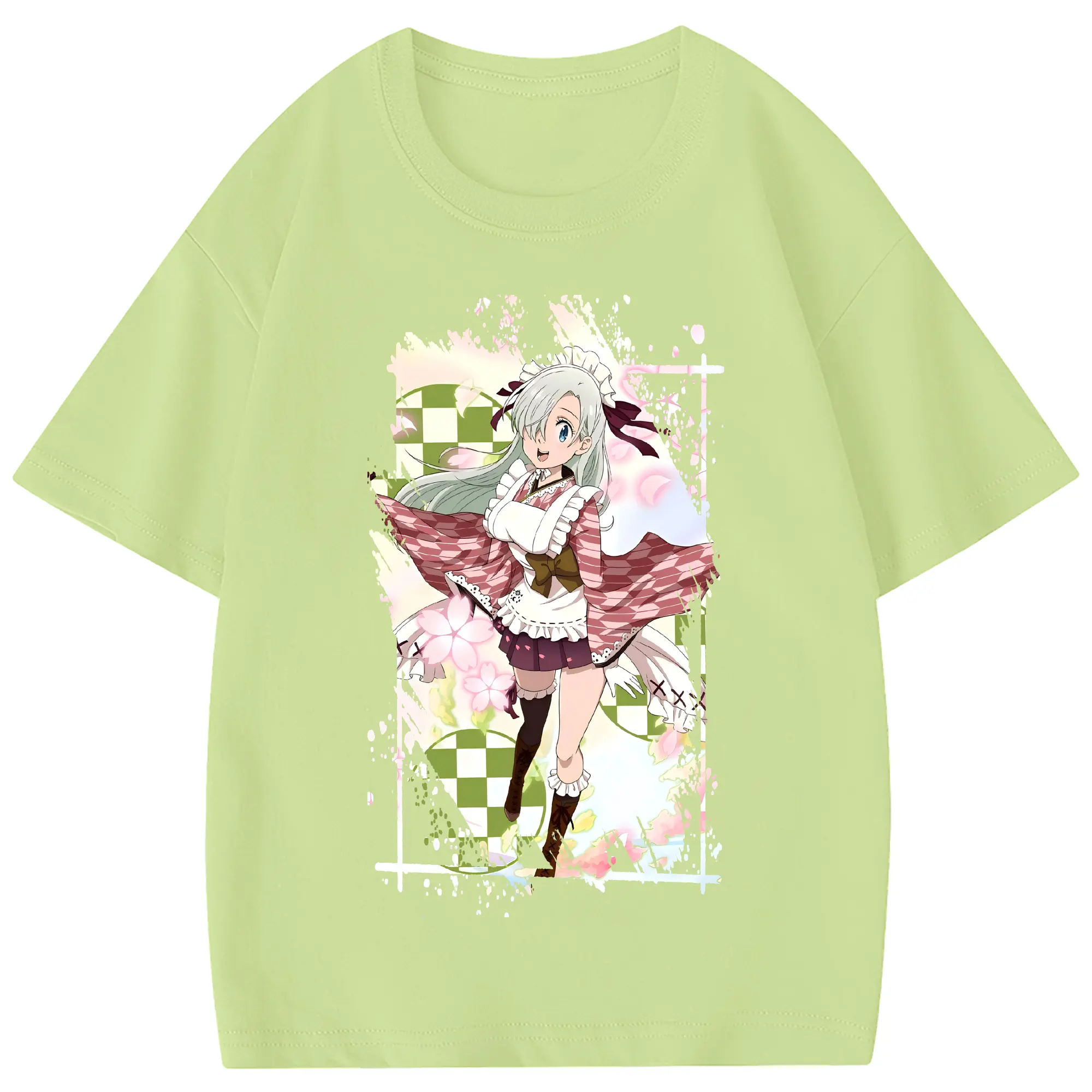 七つの大罪 グッズ エリザベス - 綿100% 半袖Tシャツ ・ フロントプリント ・ 快適 通気性 ・ 日常使い 散歩 スポーツ用