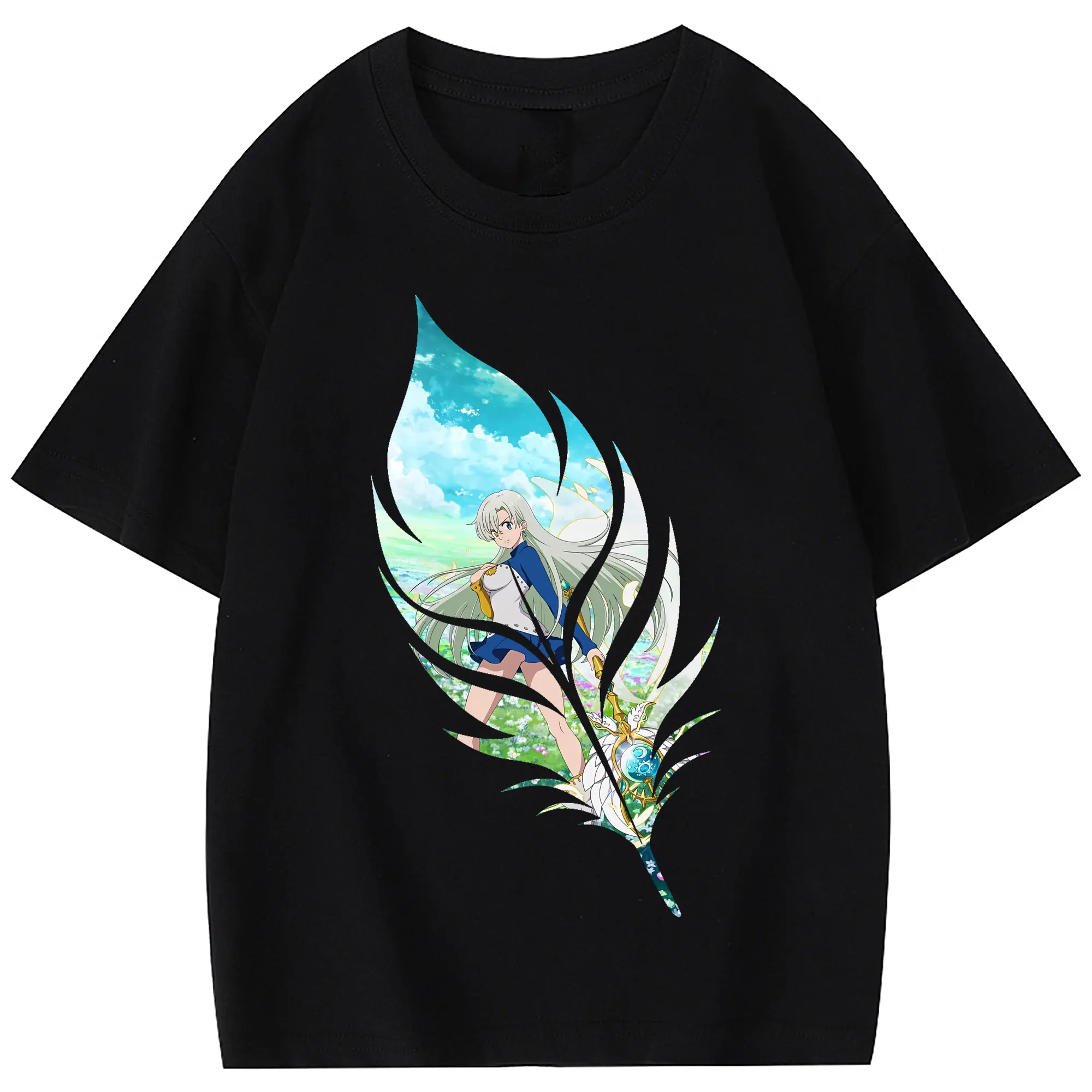 七つの大罪 グッズ エリザベス - 綿100% 半袖Tシャツ ・ フロントプリント ・ 快適 通気性 ・ 日常使い 散歩 スポーツ用