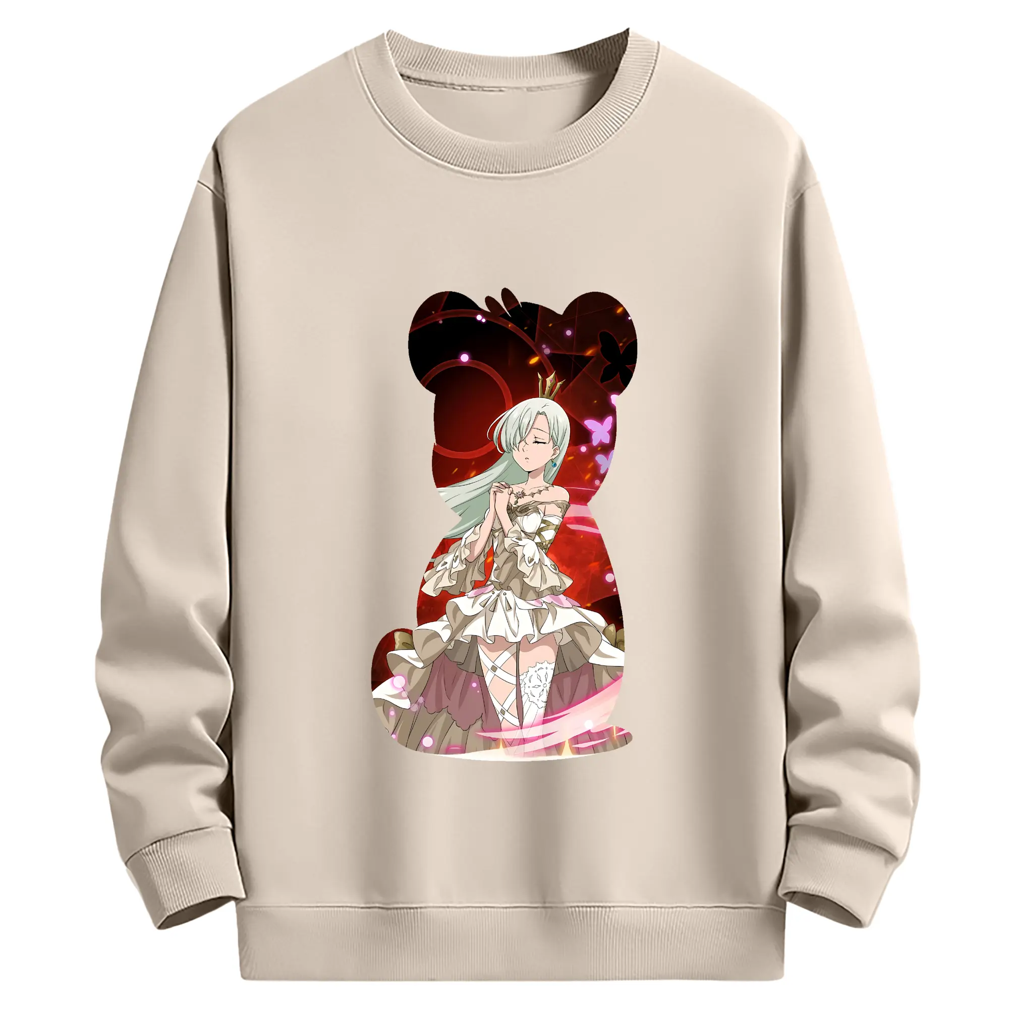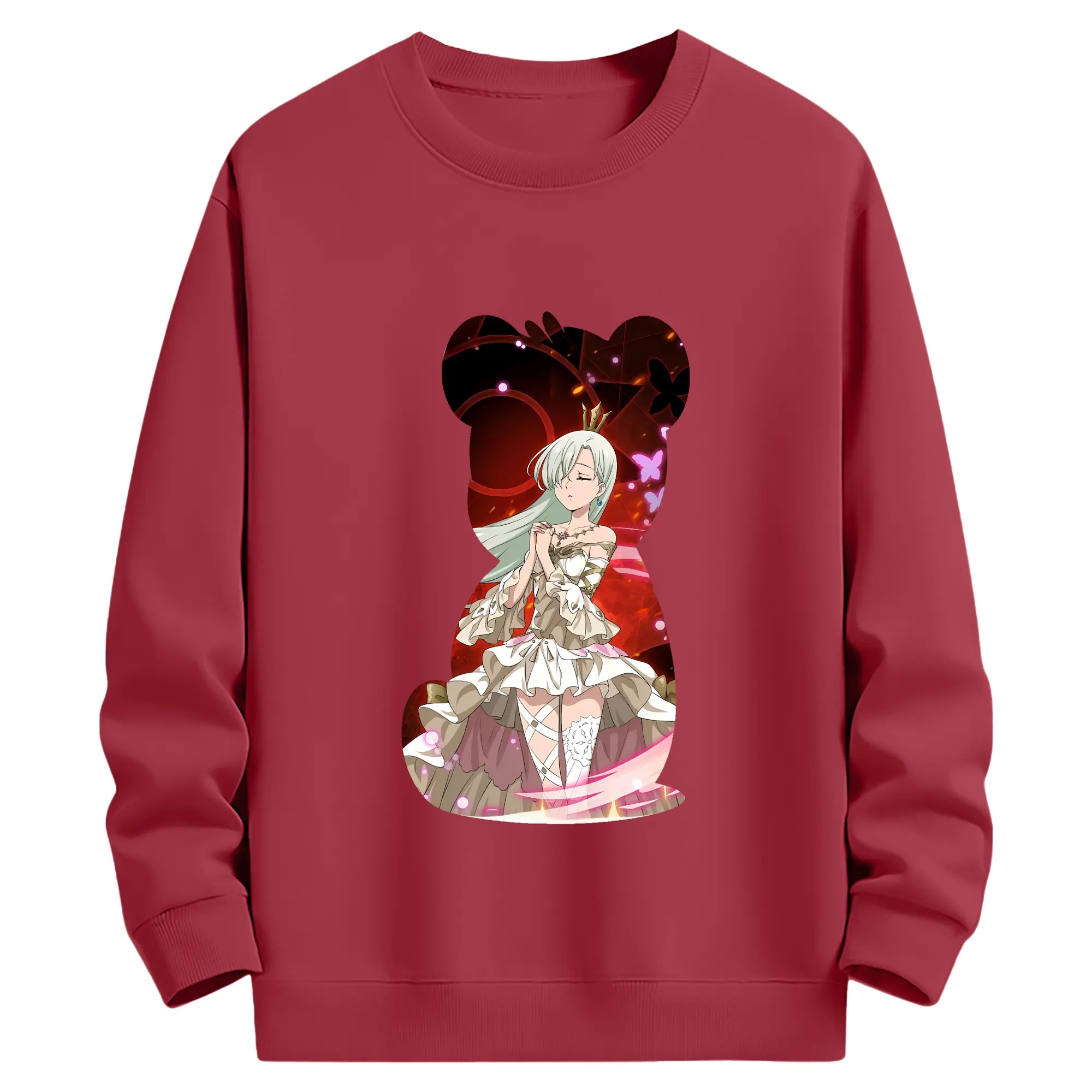 七つの大罪 グッズ エリザベス - 薄手 クルーネック スウェット 裏毛260g · ポリエステル 春秋向け カジュアル 男女兼用 · トレーナー デイリー スポーツ 散歩に最適