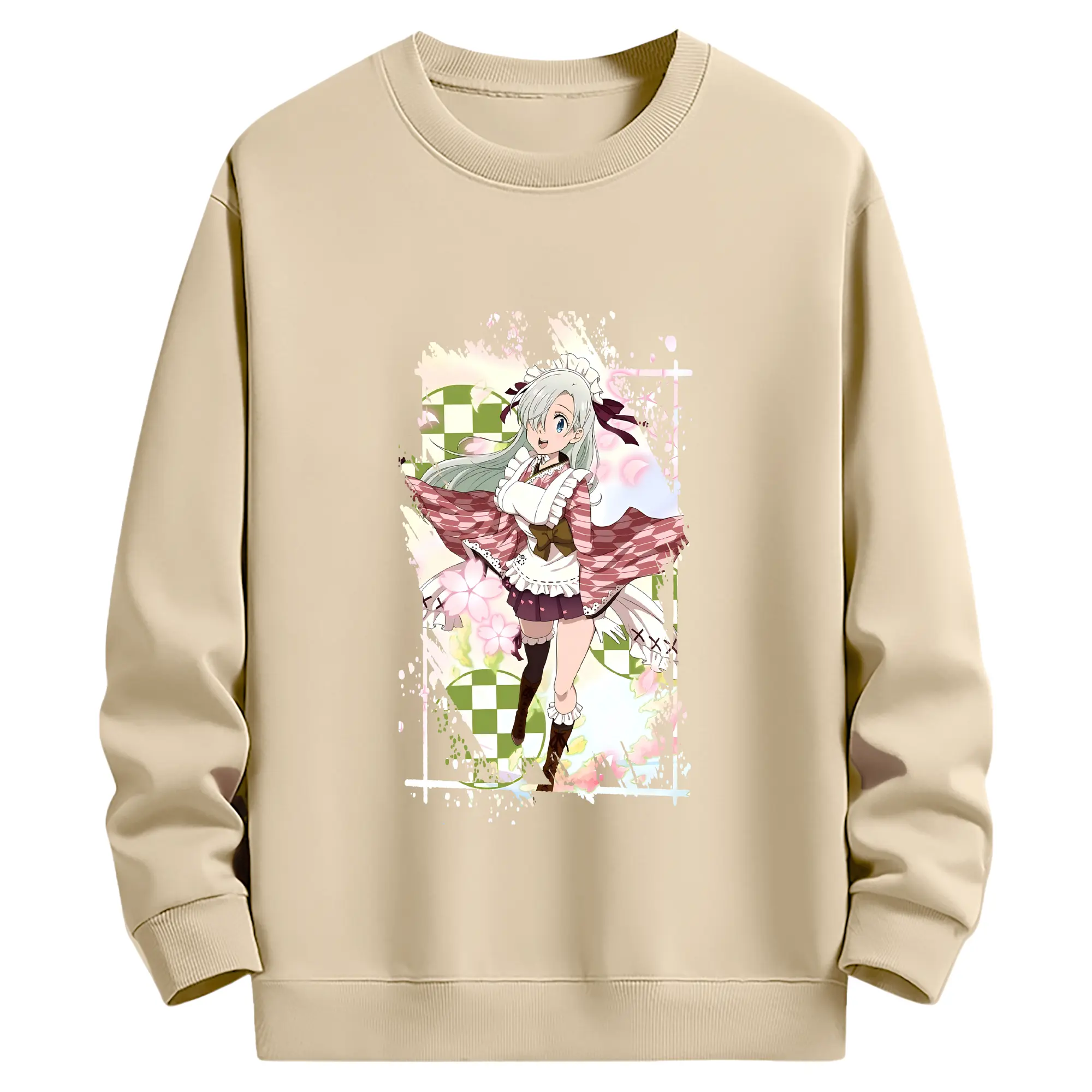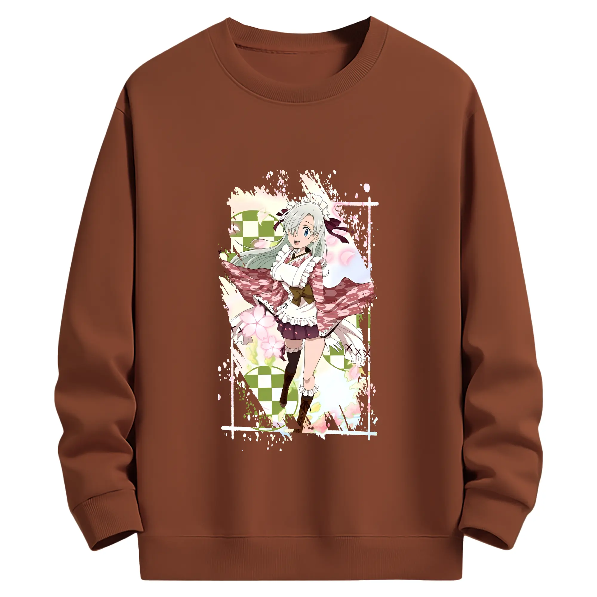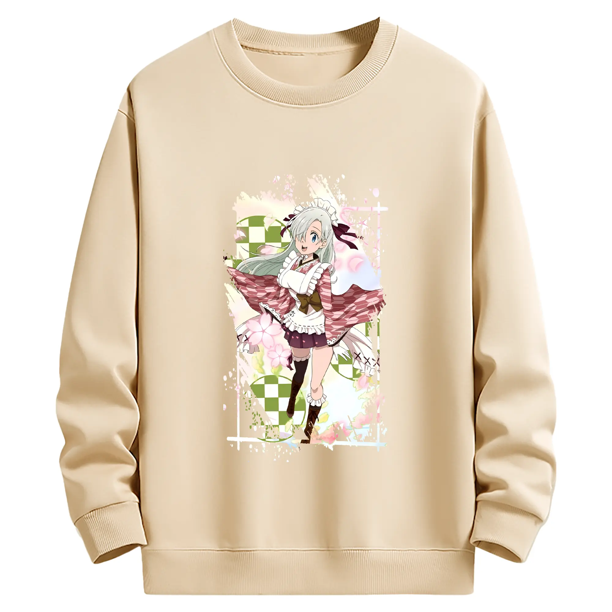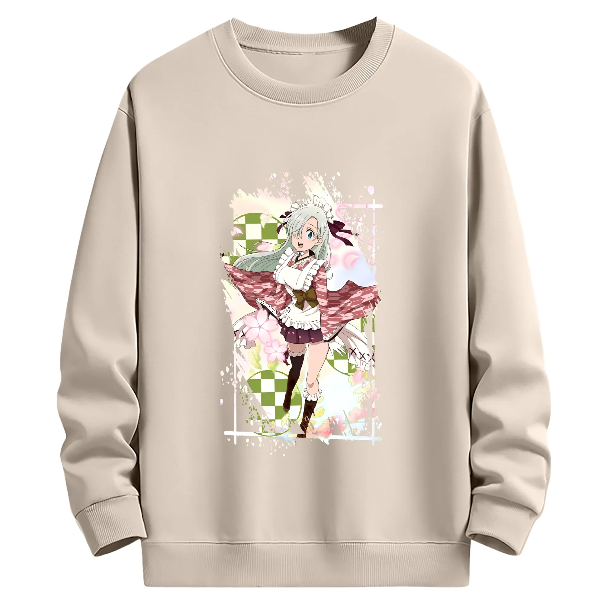 七つの大罪 グッズ エリザベス - 薄手 クルーネック スウェット 裏毛260g · ポリエステル 春秋向け カジュアル 男女兼用 · トレーナー デイリー スポーツ 散歩に最適