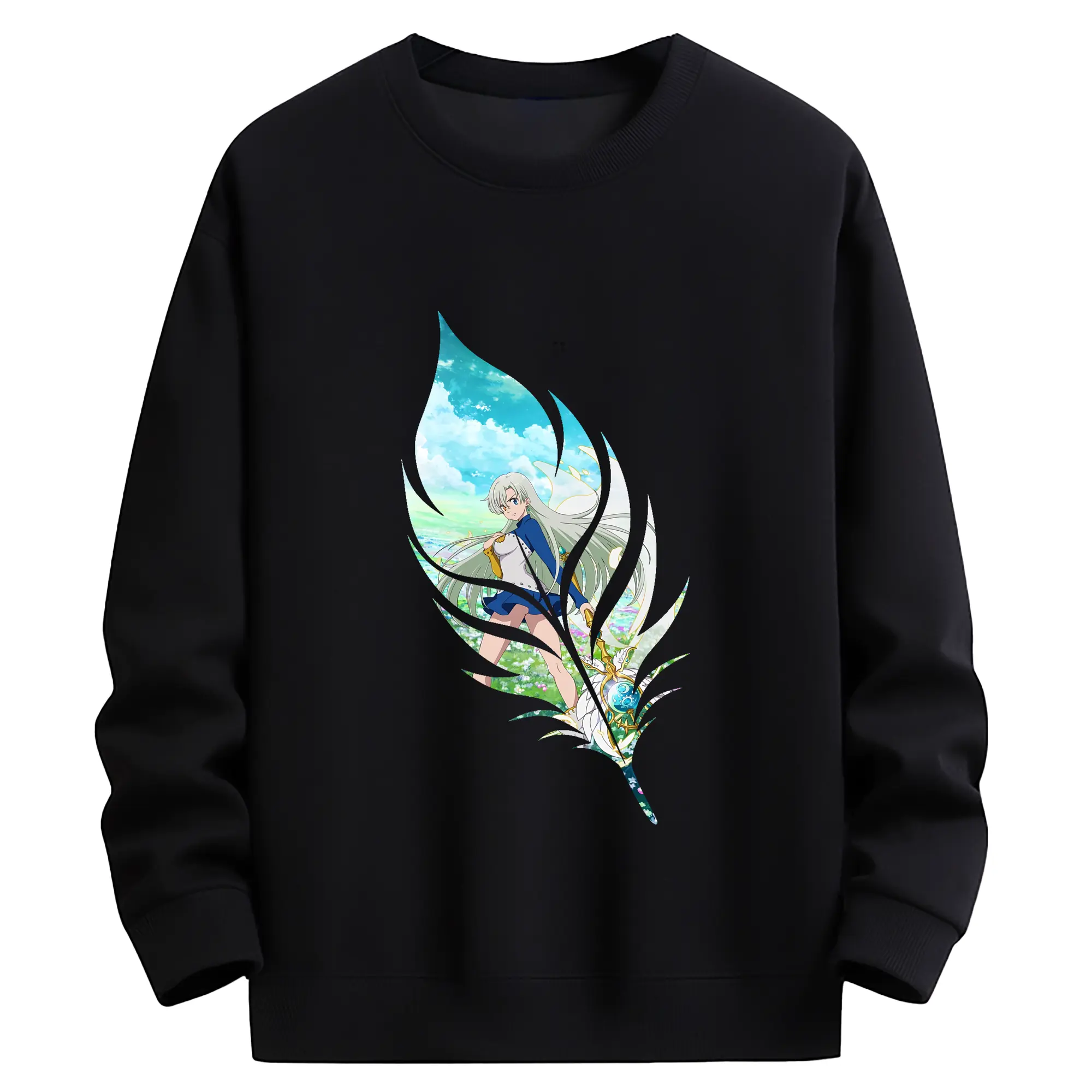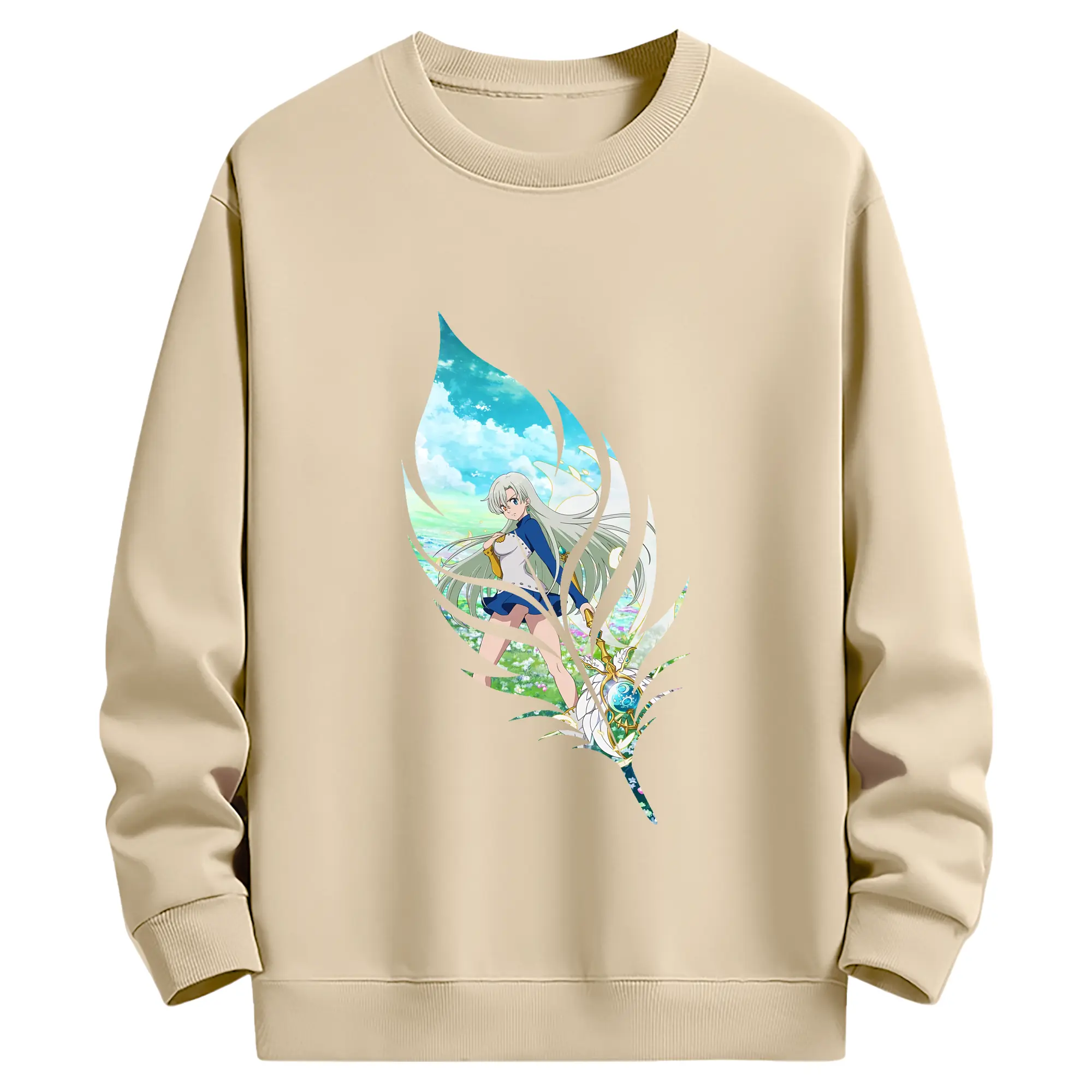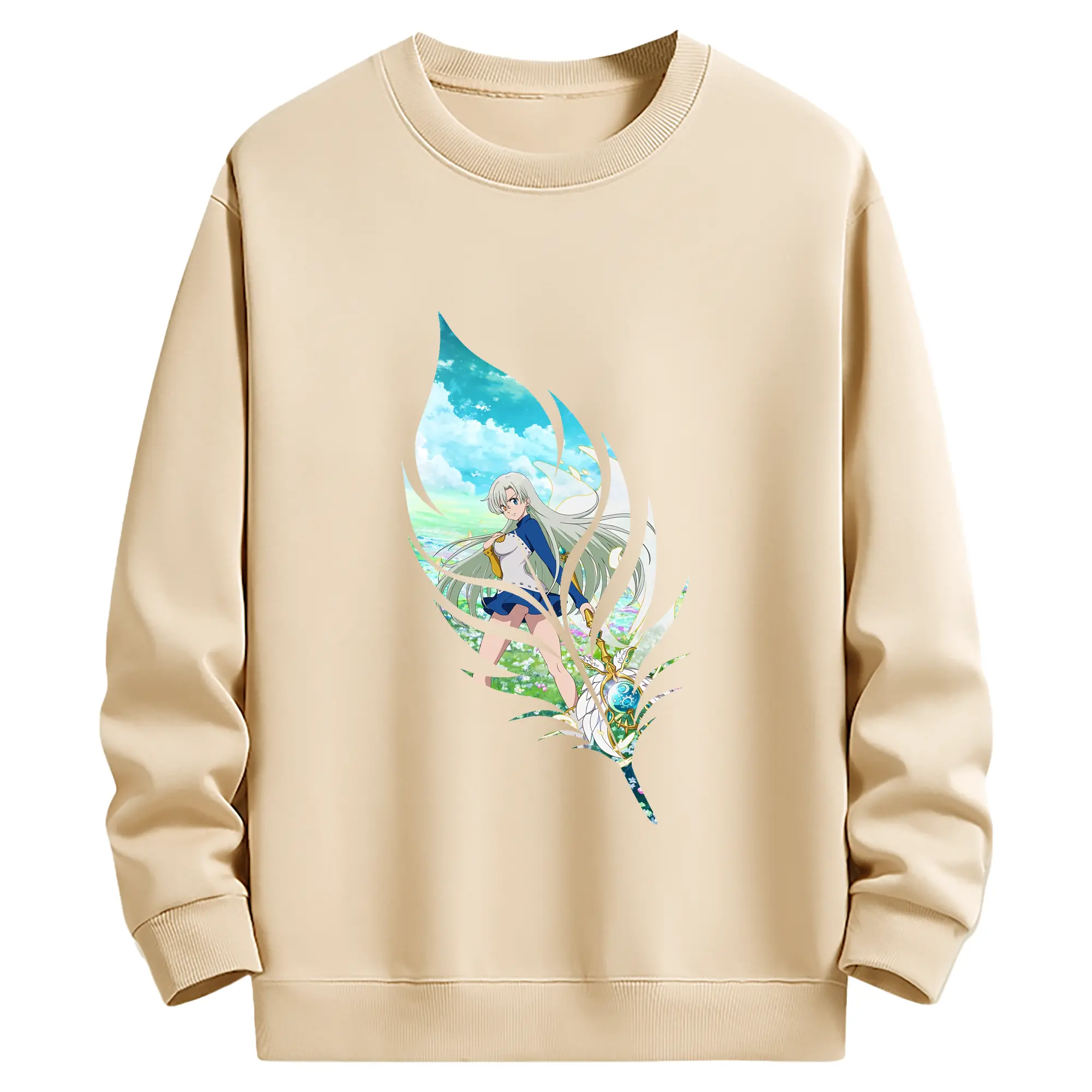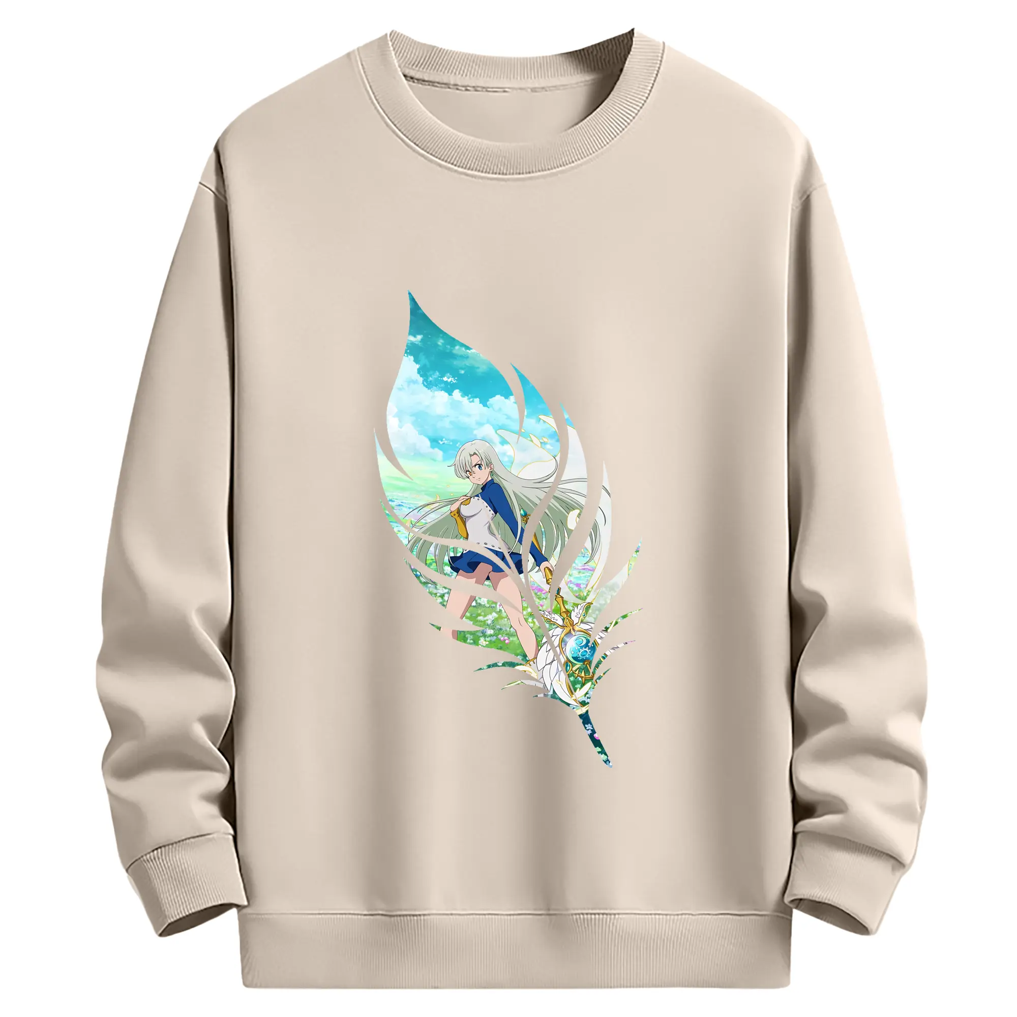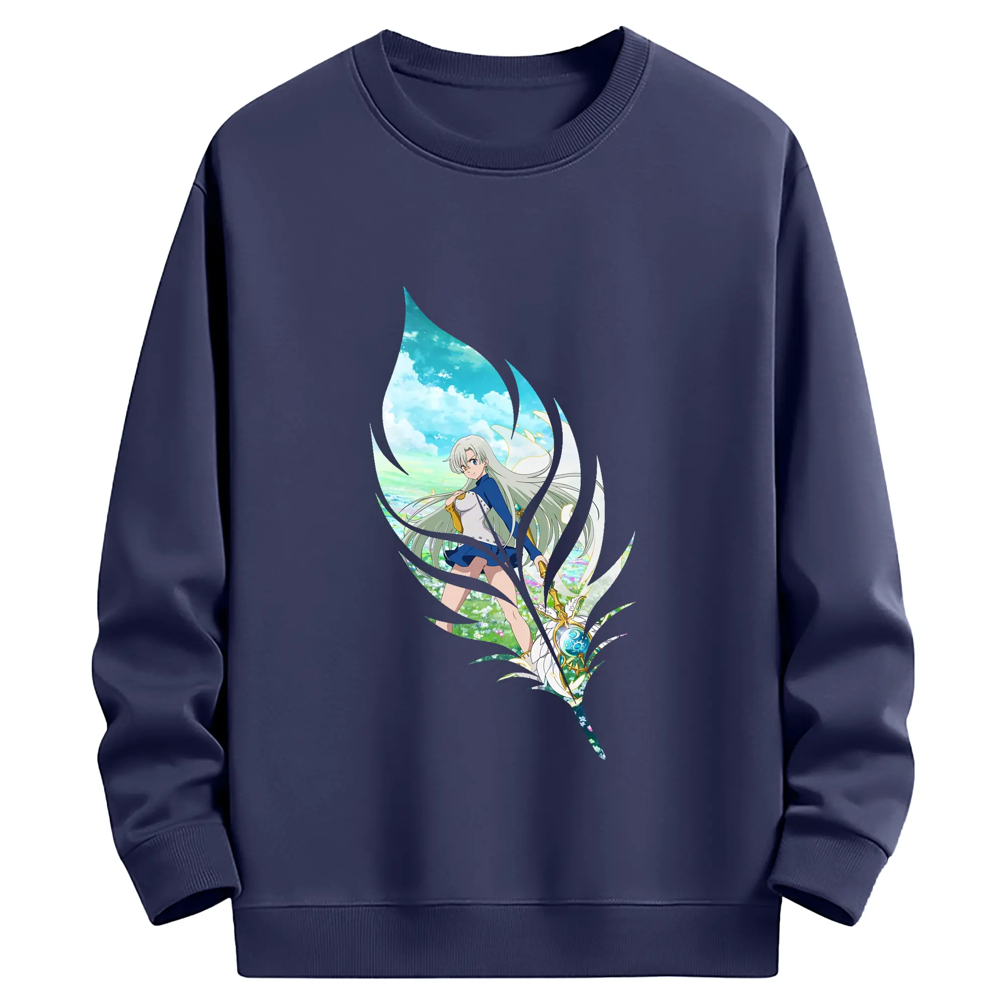七つの大罪 グッズ エリザベス - 薄手 クルーネック スウェット 裏毛260g · ポリエステル 春秋向け カジュアル 男女兼用 · トレーナー デイリー スポーツ 散歩に最適