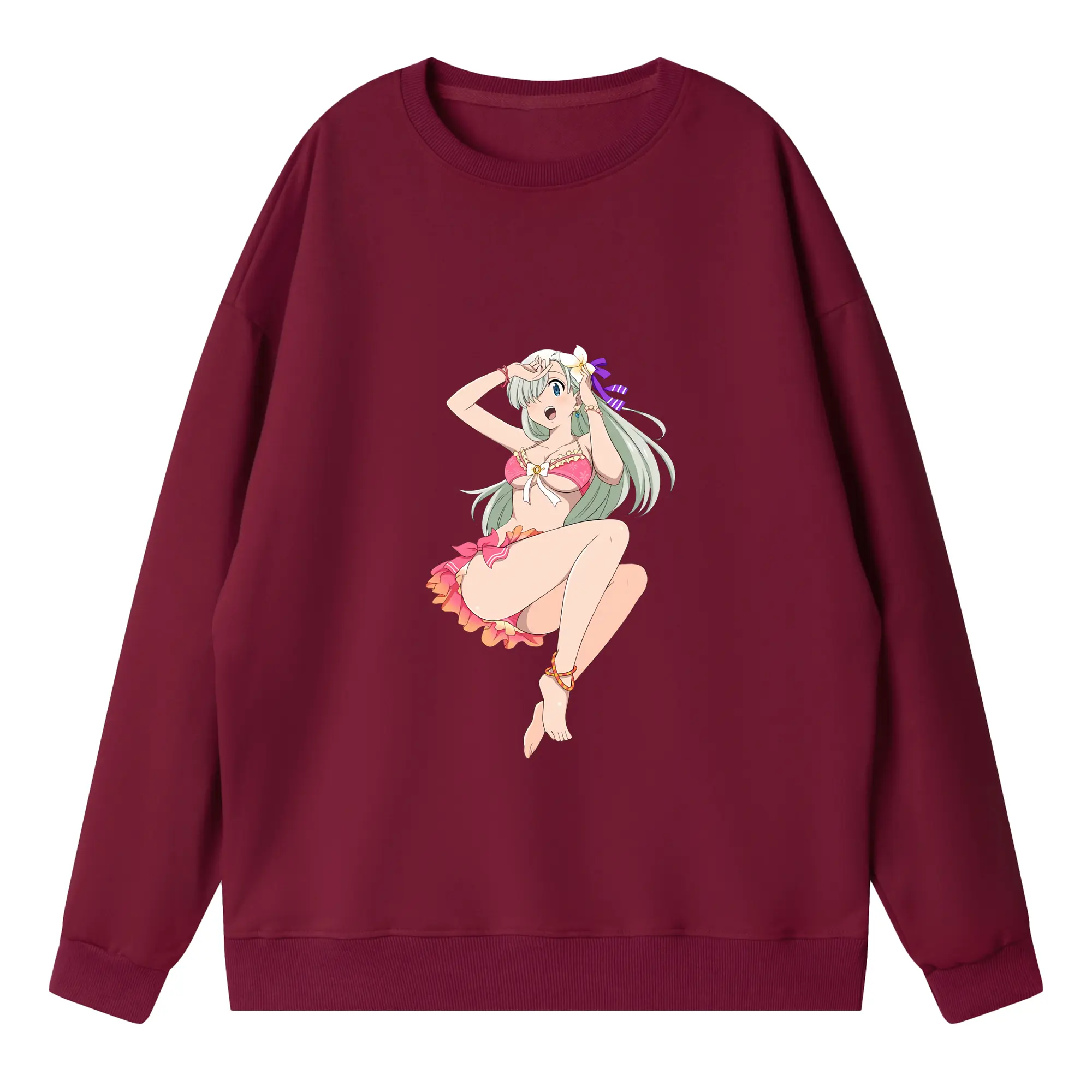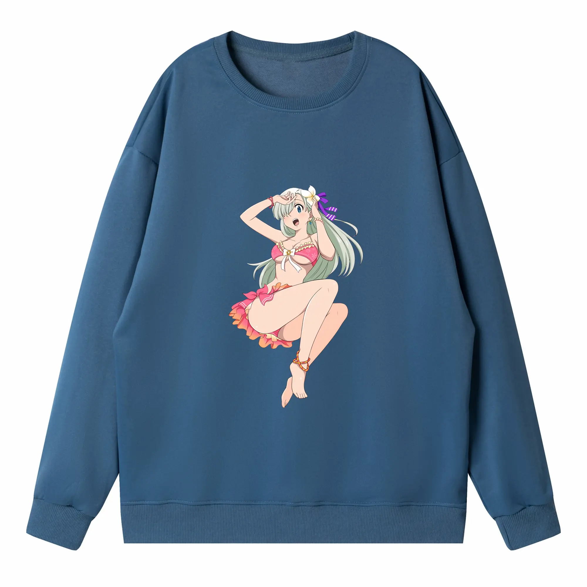 七つの大罪 グッズ エリザベス - 高品質 クルーネック スウェット ・ コットン59% ポリエステル41% ・ ユニセックス 長袖 トレーナー ・ カジュアル デイリー スポーツ 散歩用
