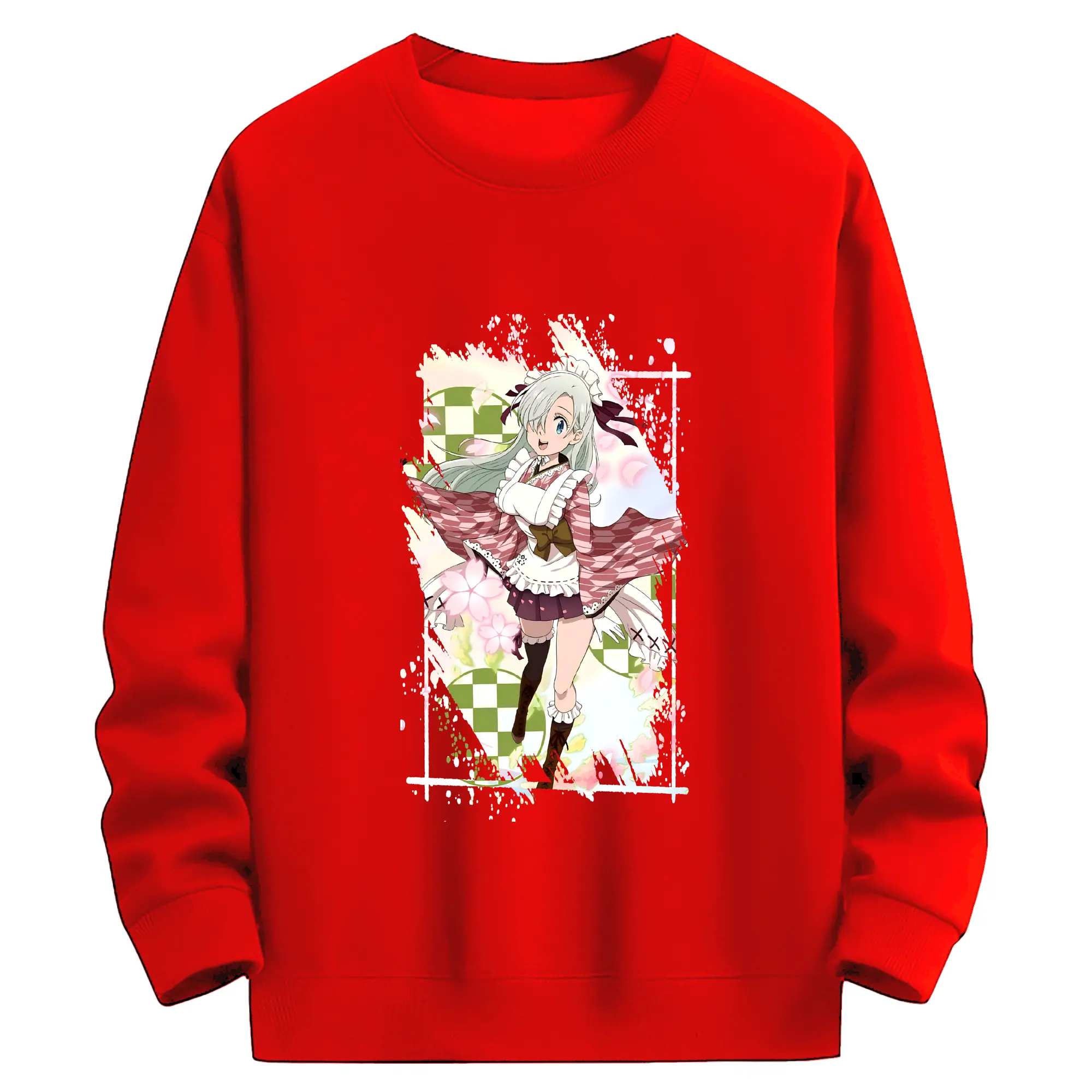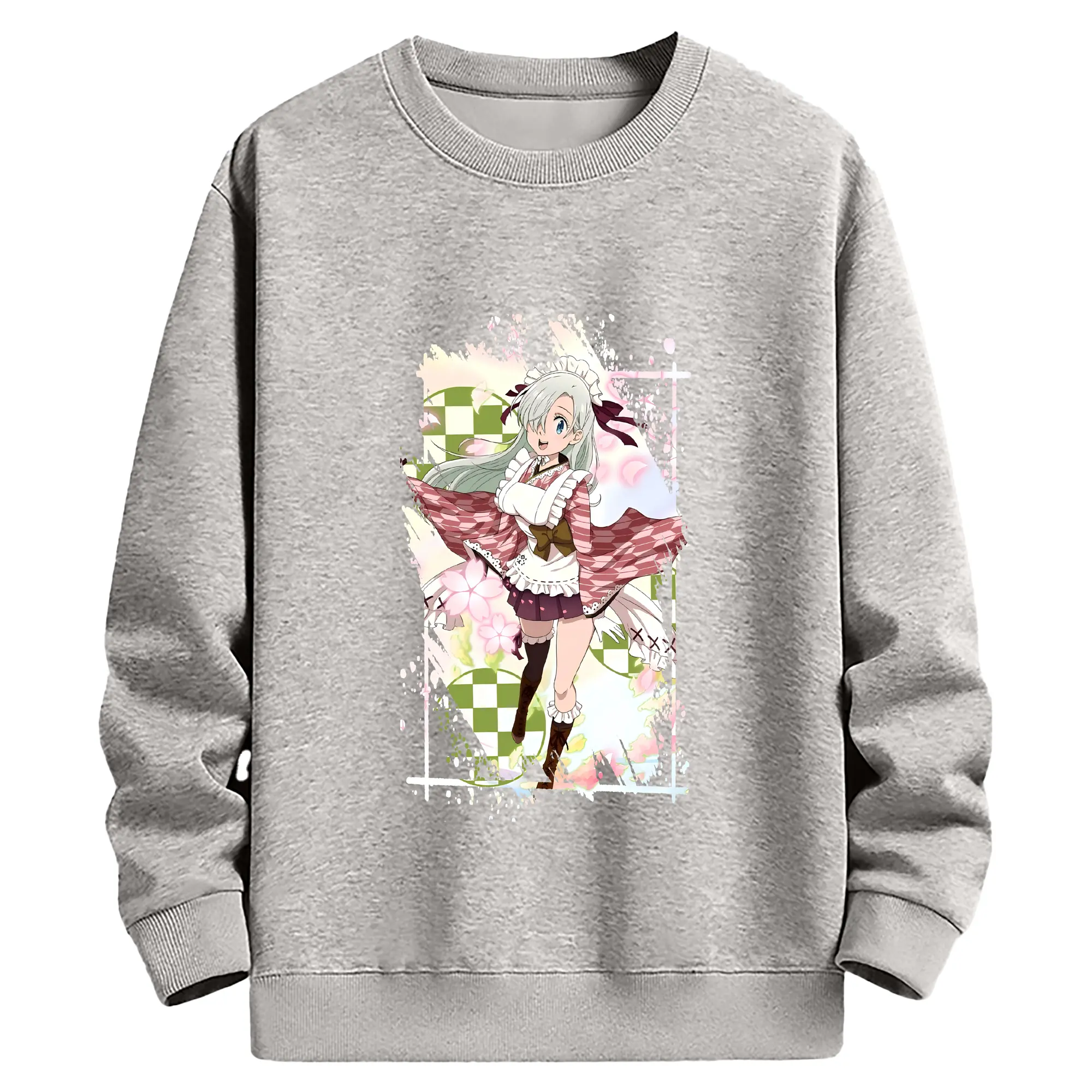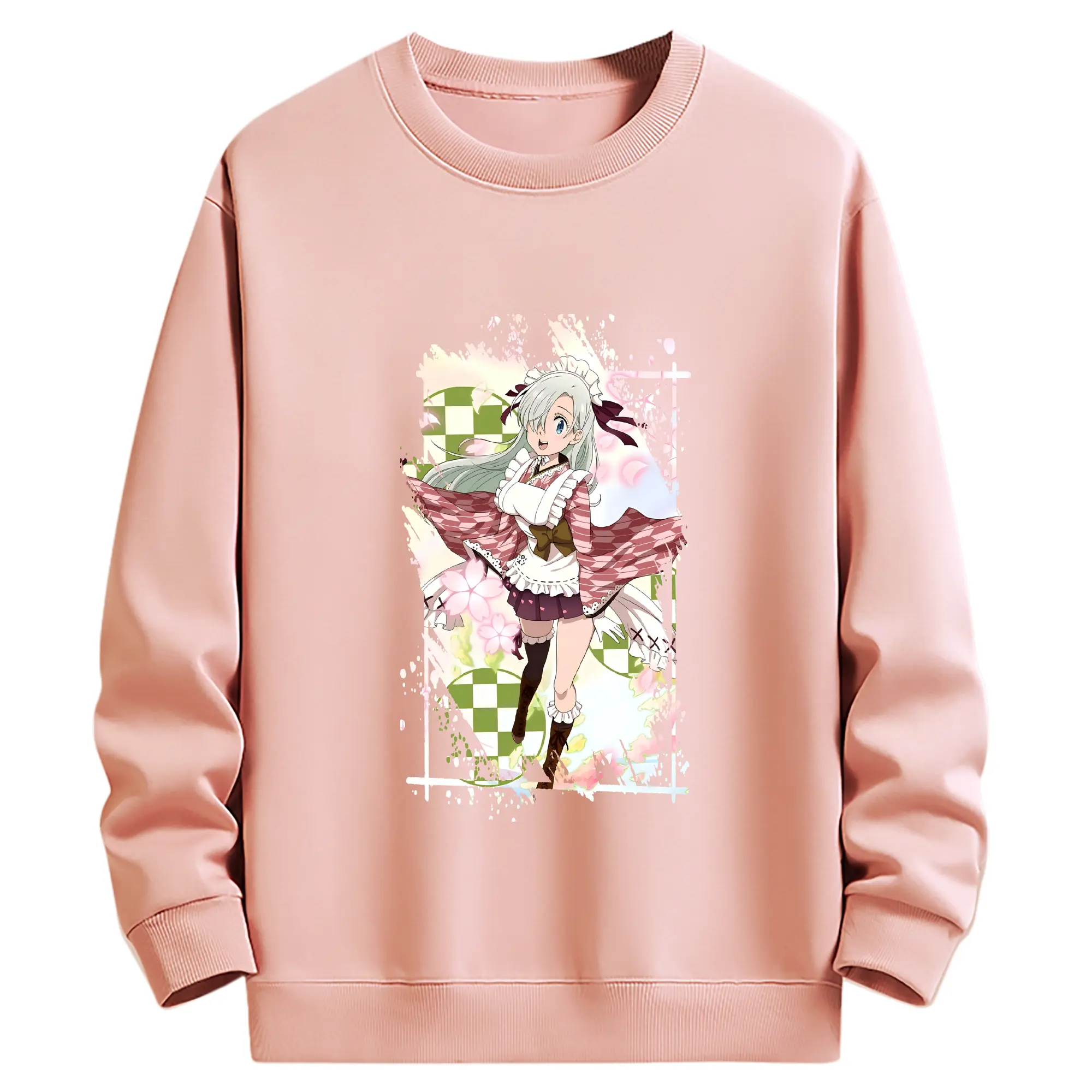 七つの大罪 グッズ エリザベス - 薄手 クルーネック スウェット 裏毛260g · ポリエステル 春秋向け カジュアル 男女兼用 · トレーナー デイリー スポーツ 散歩に最適